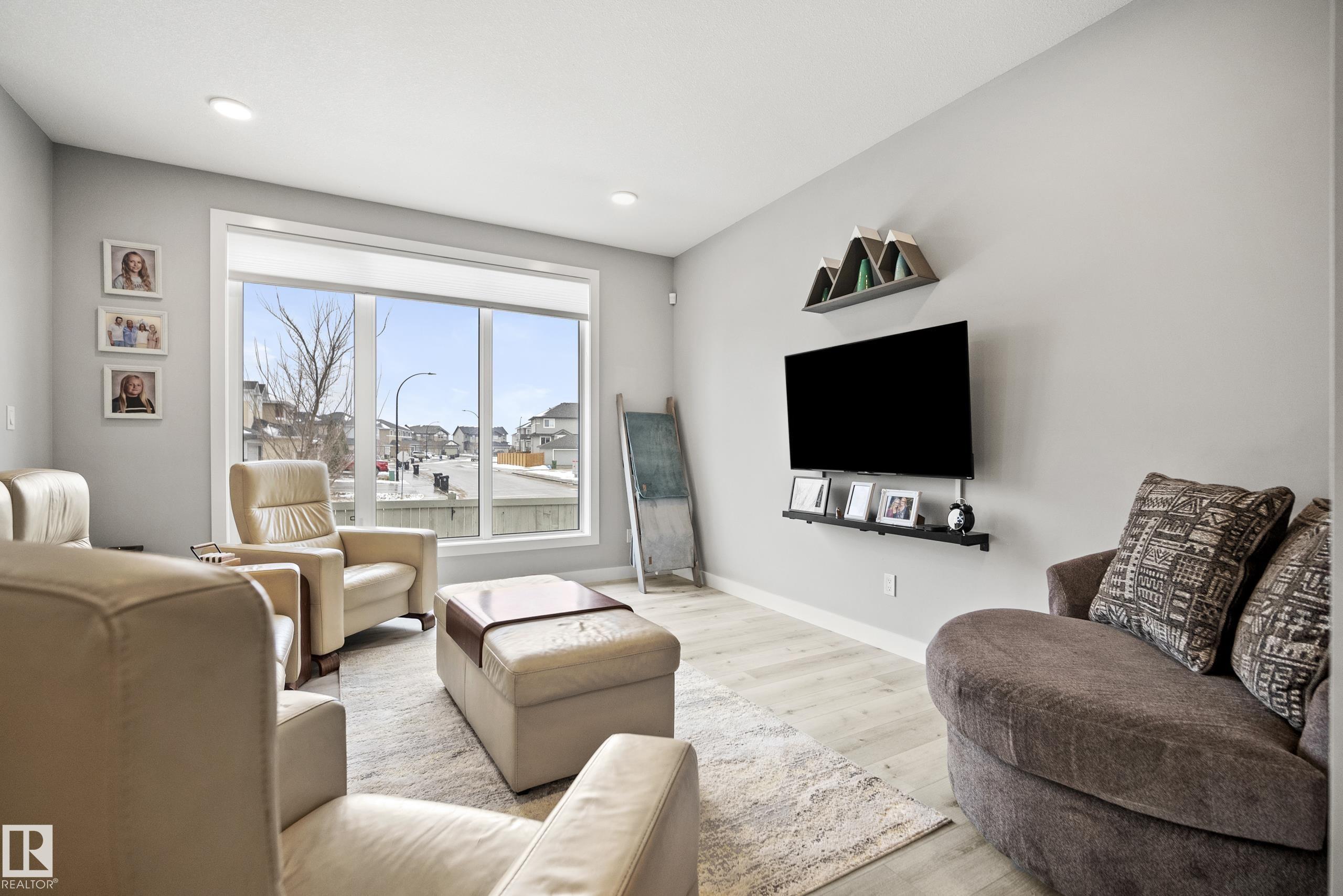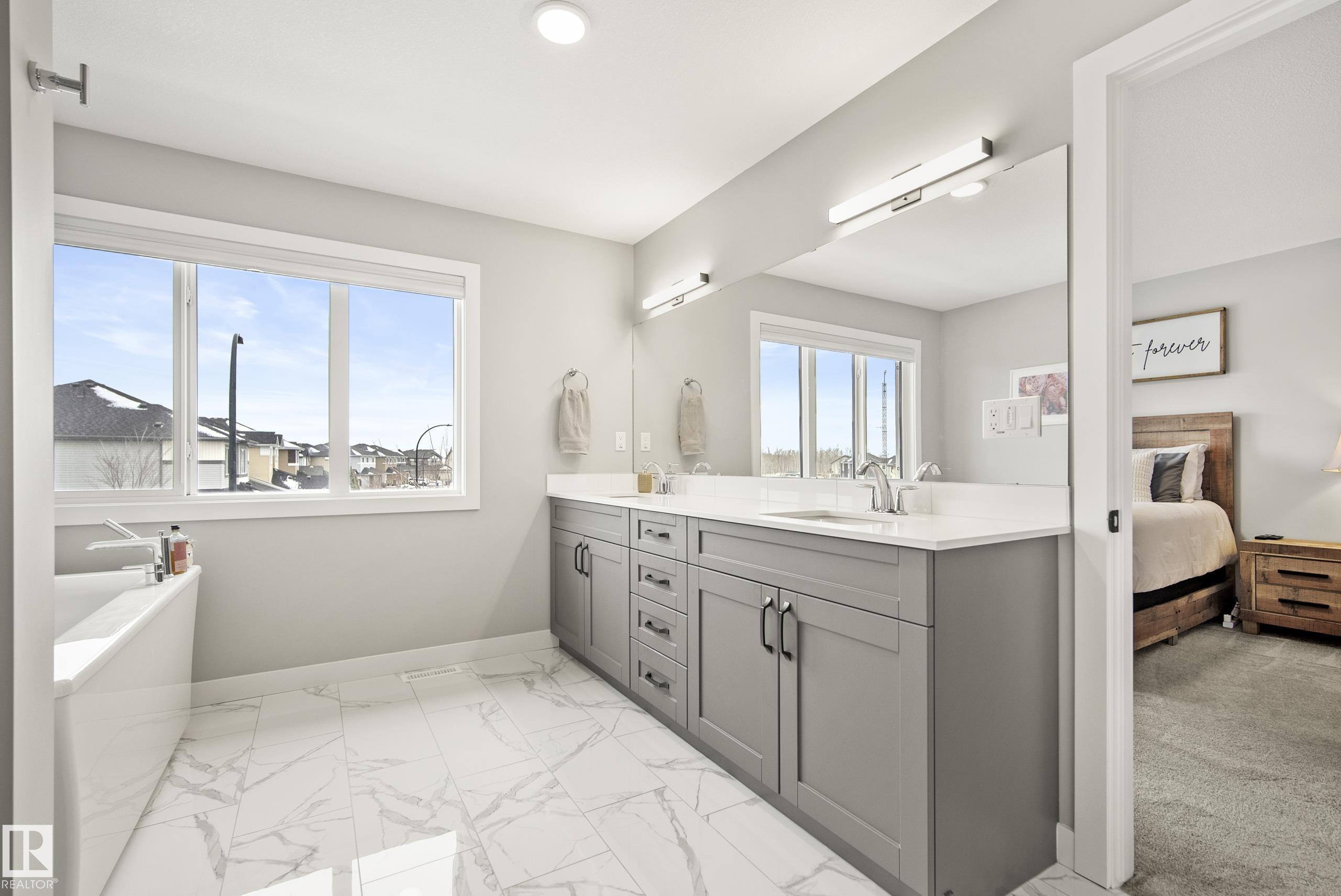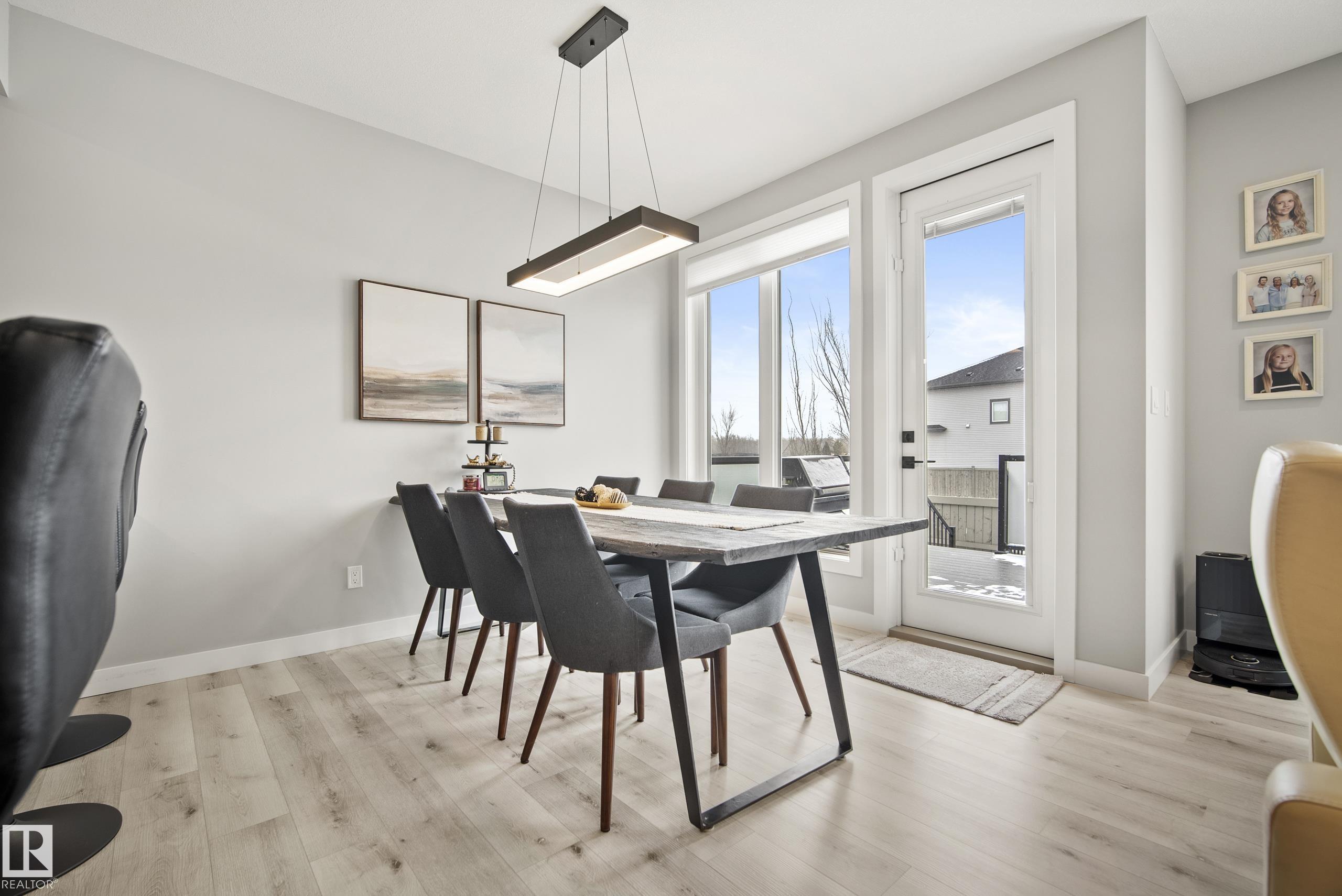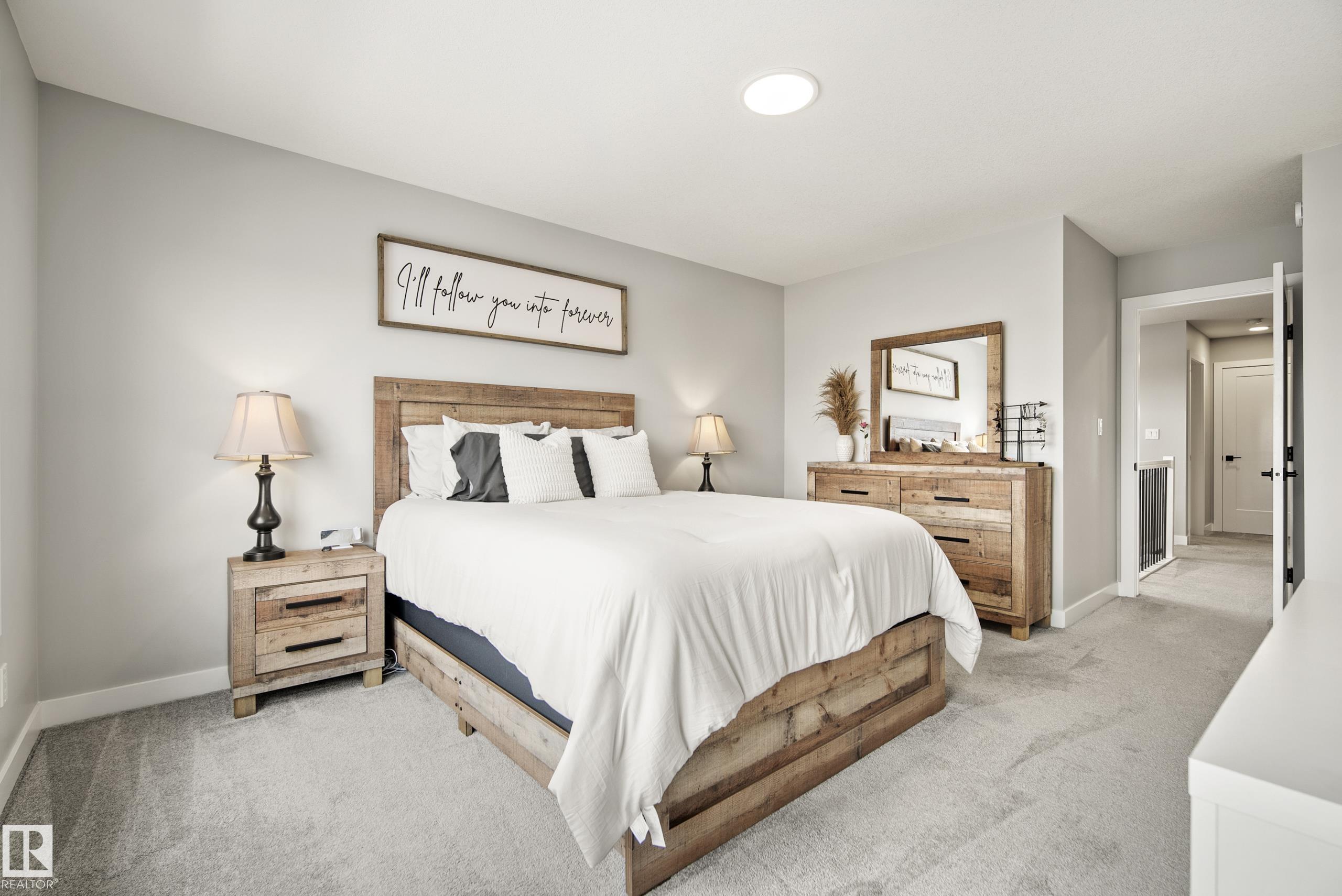 Located in a quiet cul-de-sac in the sought-after community of Robinson Leduc, this beautiful 1947 sq ft two-story home offers the perfect blend of modern comfort and functional design. This stunning property boasts an oversized double car garage featuring an 8' garage door, and a main floor where floor-to-ceiling windows across the back fill the space with natural light. The inviting main level features a long island perfect for entertaining. Upstairs, you?ll find a spacious center bonus room, a dedicated laundry room for your convenience, and two well-appointed bedrooms. The primary suite is a true retreat, complete with a beautiful built-in closet and a luxurious 5-piece ensuite bath. Enjoy a low-maintenance lifestyle with a beautifully landscaped yard and a durable composite deck, ideal for outdoor relaxing or entertaining.