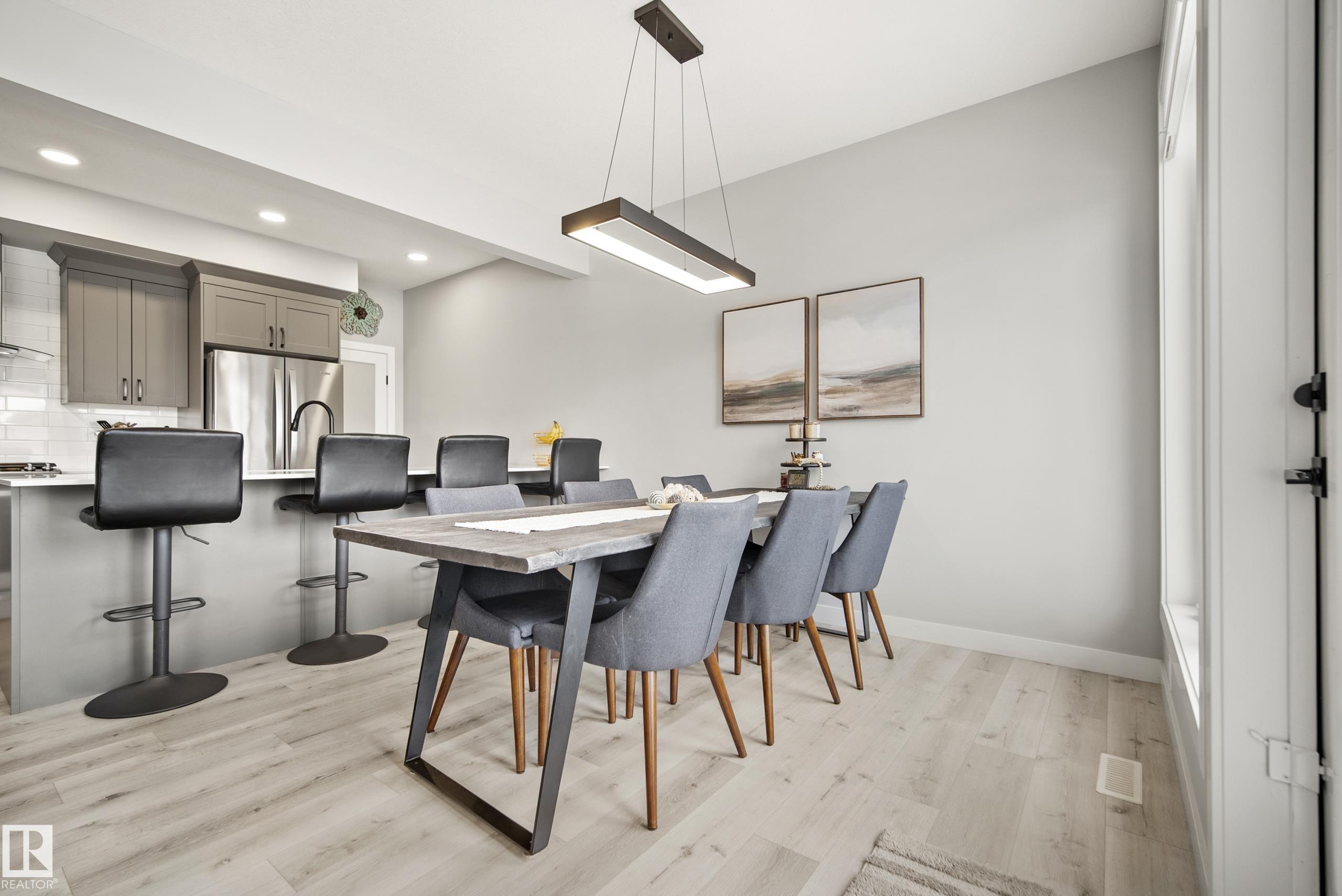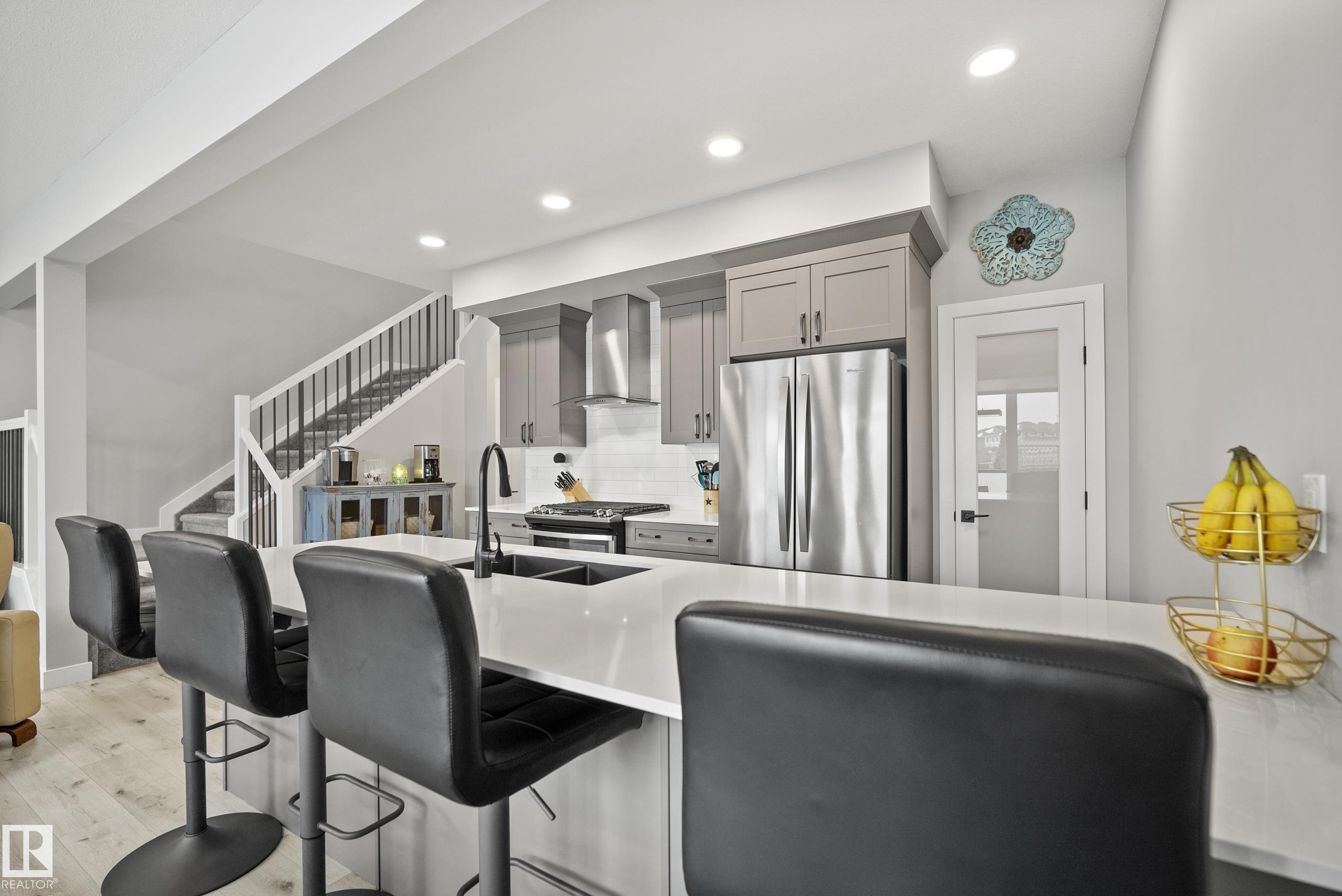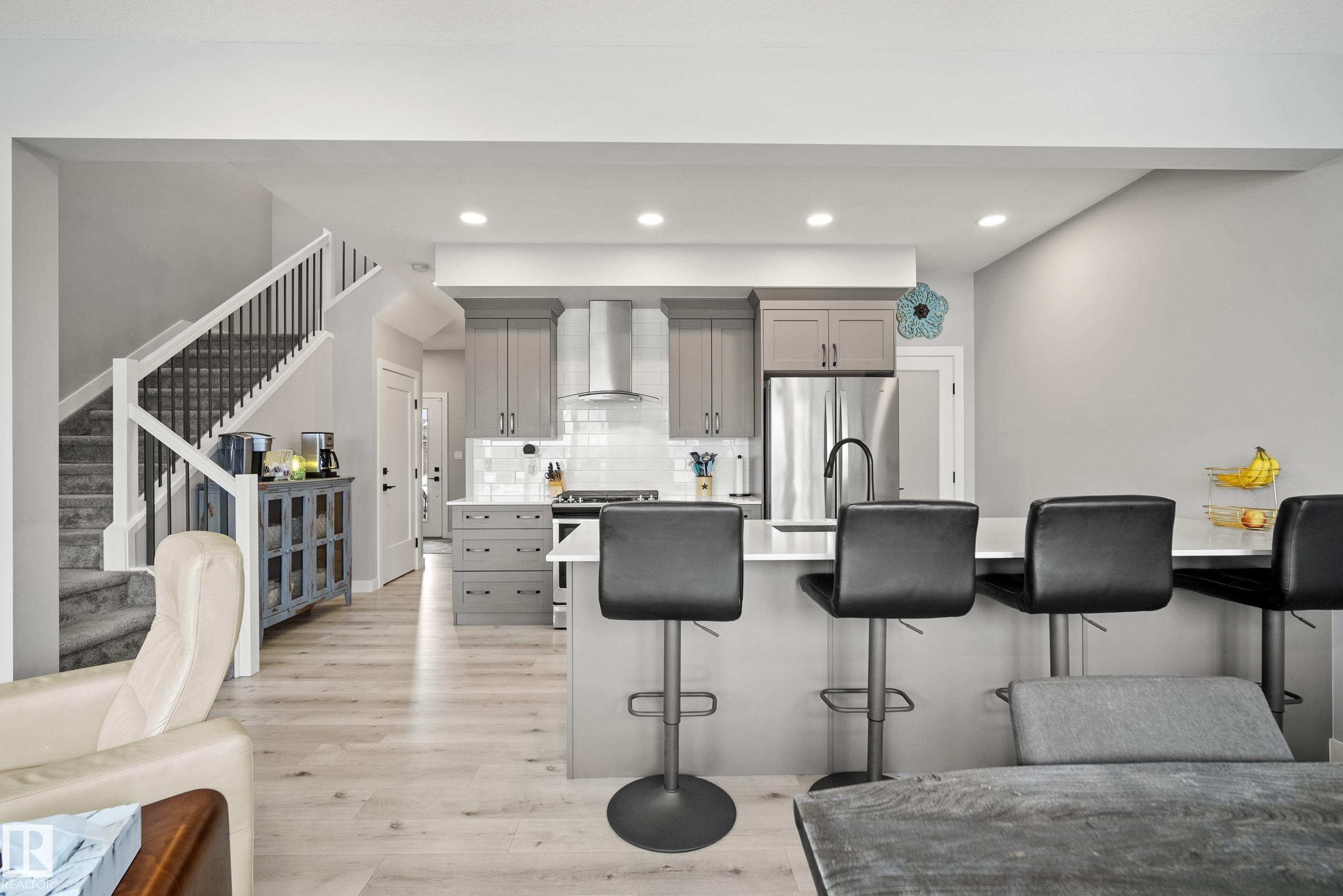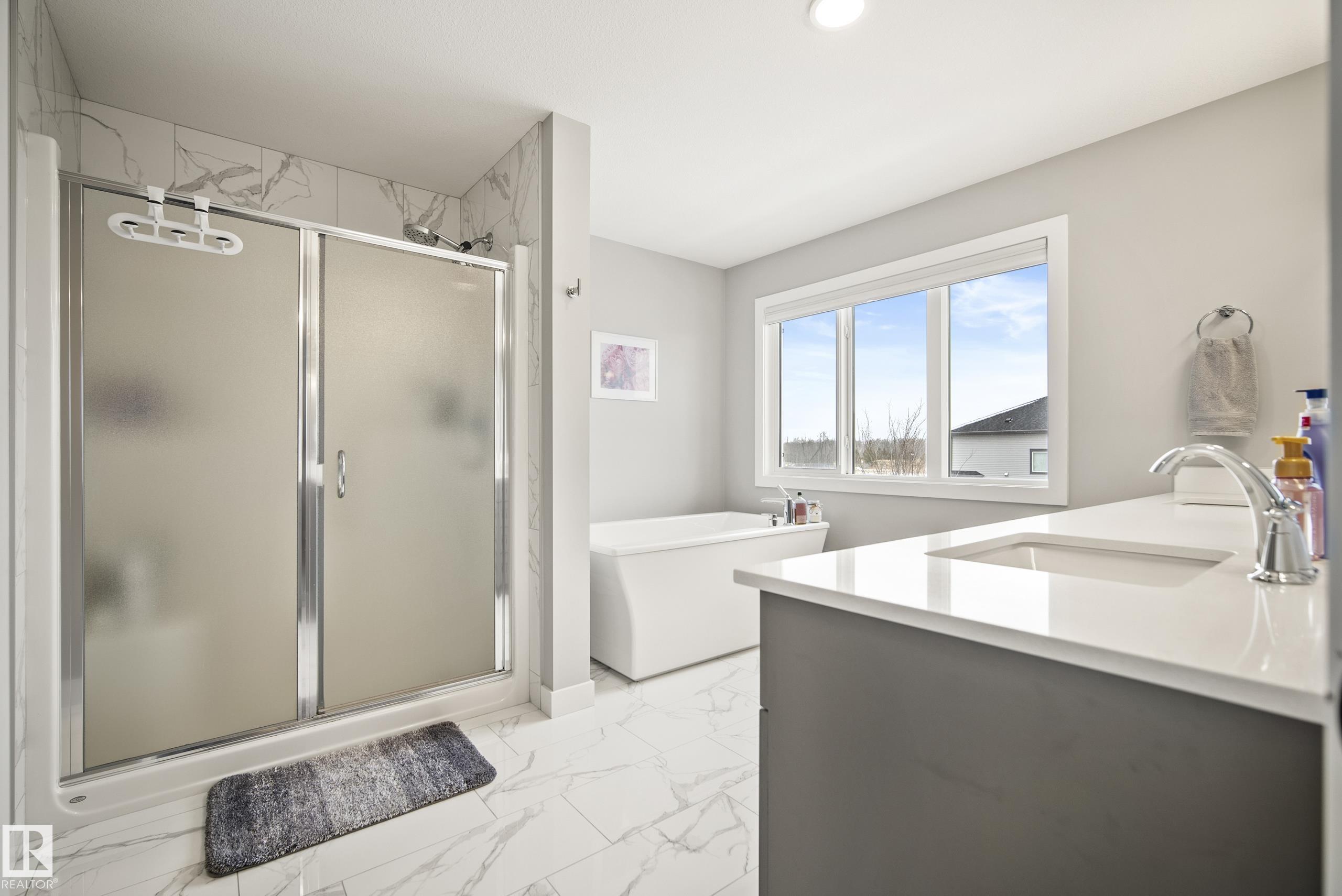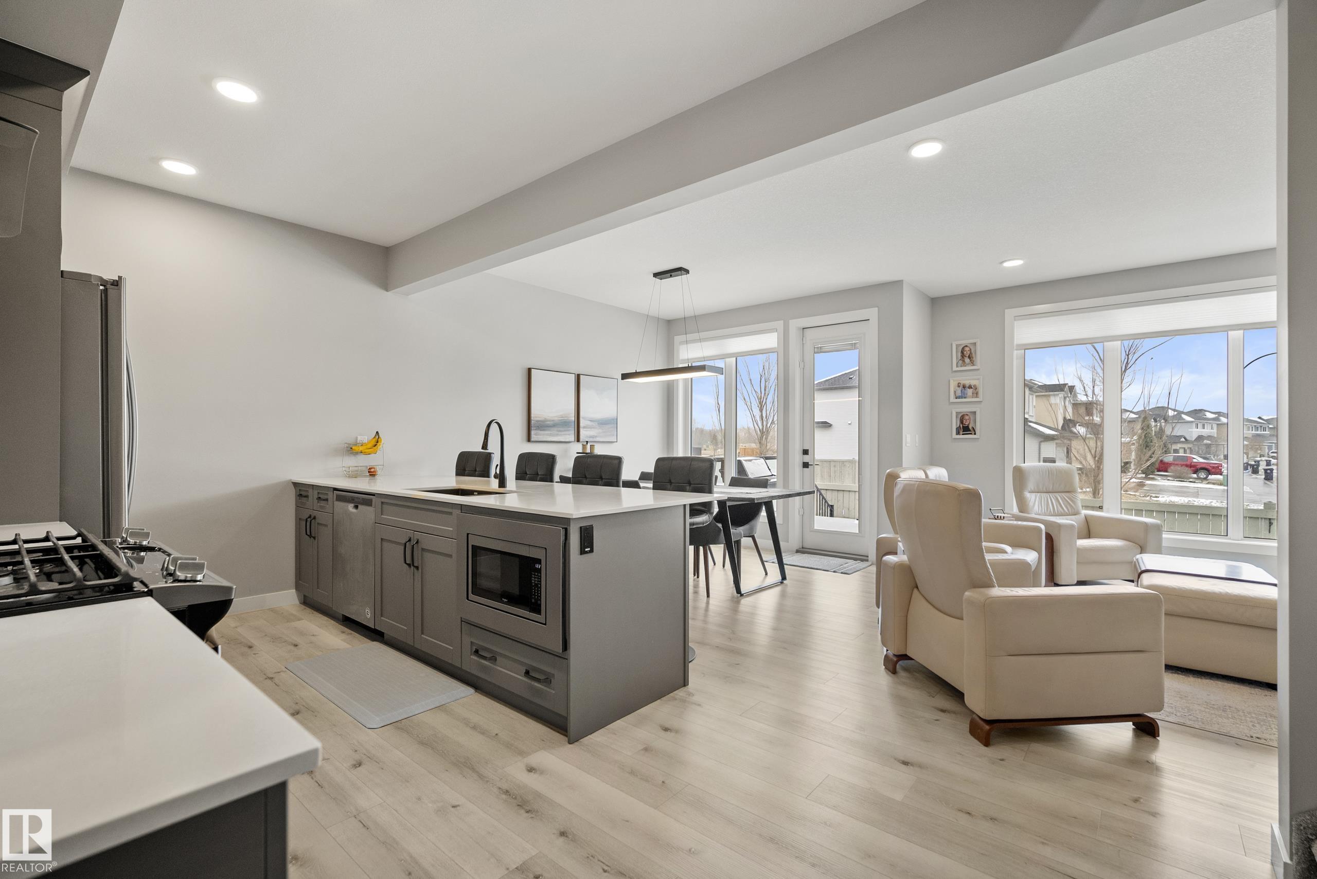 Located in a quiet cul-de-sac in the sought-after community of Robinson Leduc, this beautiful 1947 sq ft two-story home offers the perfect blend of modern comfort and functional design. This stunning property boasts an oversized double car garage featuring an 8' garage door, and a main floor where floor-to-ceiling windows across the back fill the space with natural light. The inviting main level features a long island perfect for entertaining. Upstairs, you?ll find a spacious center bonus room, a dedicated laundry room for your convenience, and two well-appointed bedrooms. The primary suite is a true retreat, complete with a beautiful built-in closet and a luxurious 5-piece ensuite bath. Enjoy a low-maintenance lifestyle with a beautifully landscaped yard and a durable composite deck, ideal for outdoor relaxing or entertaining.