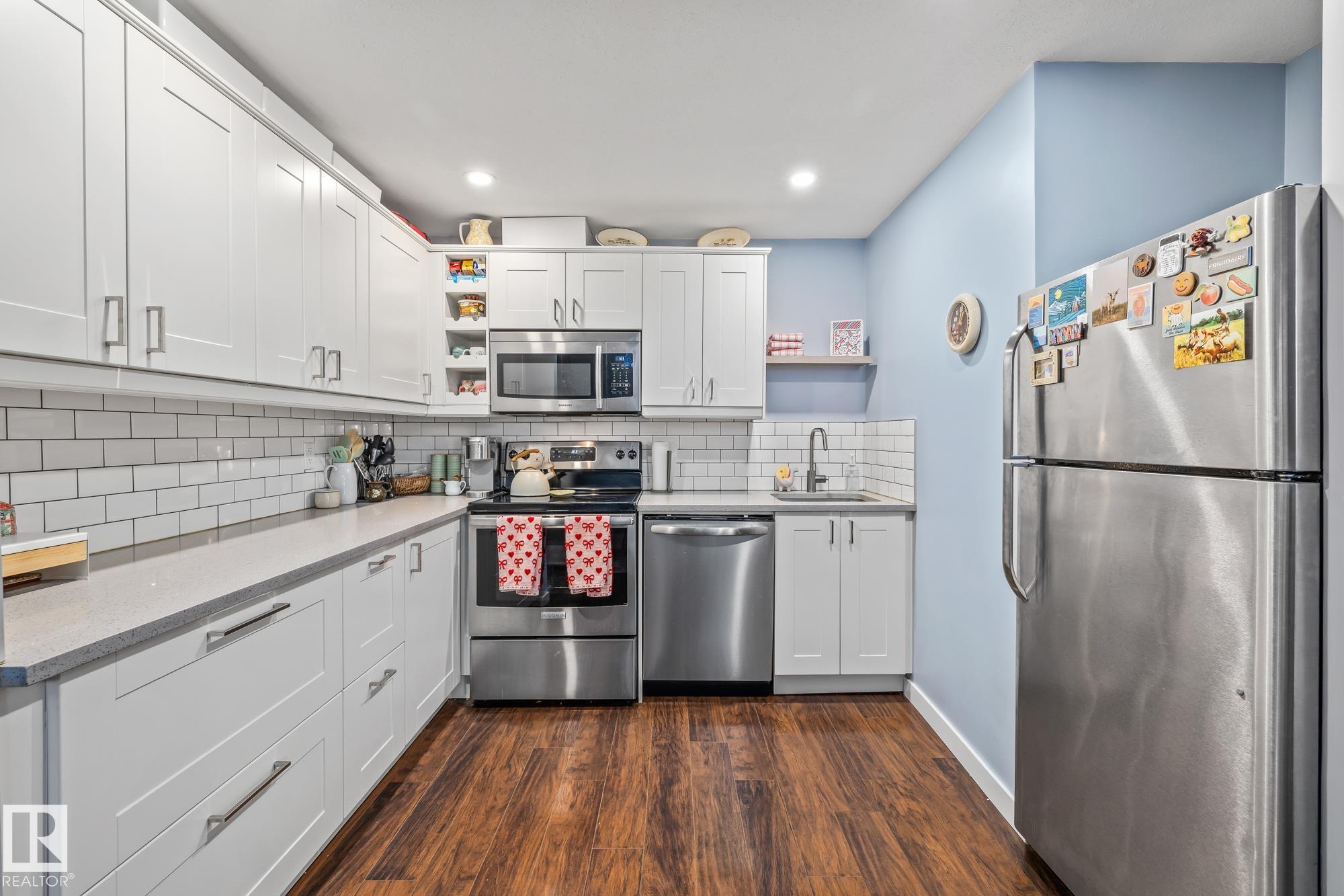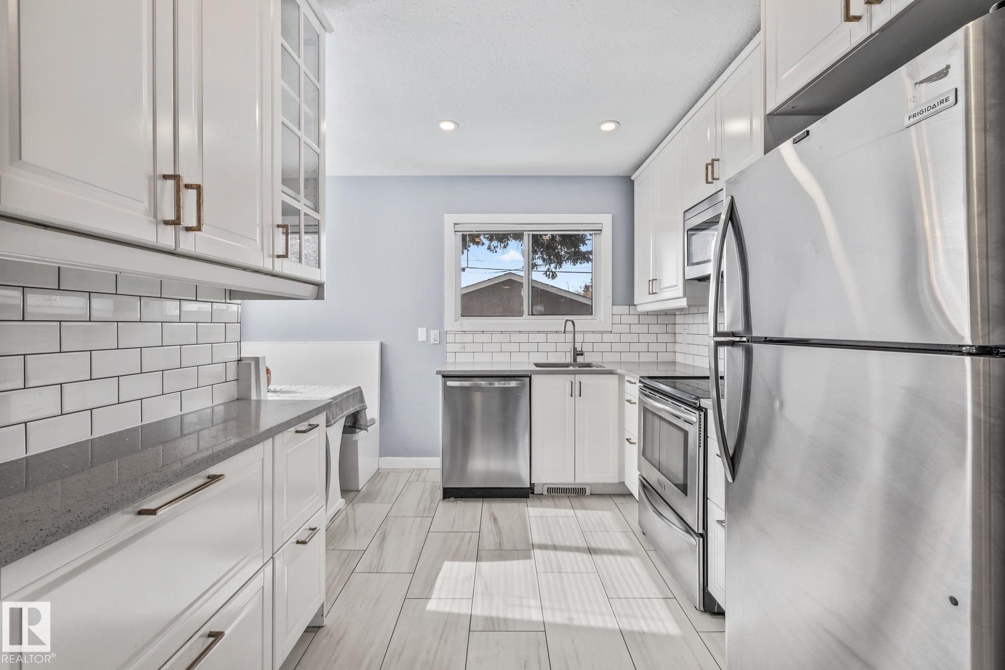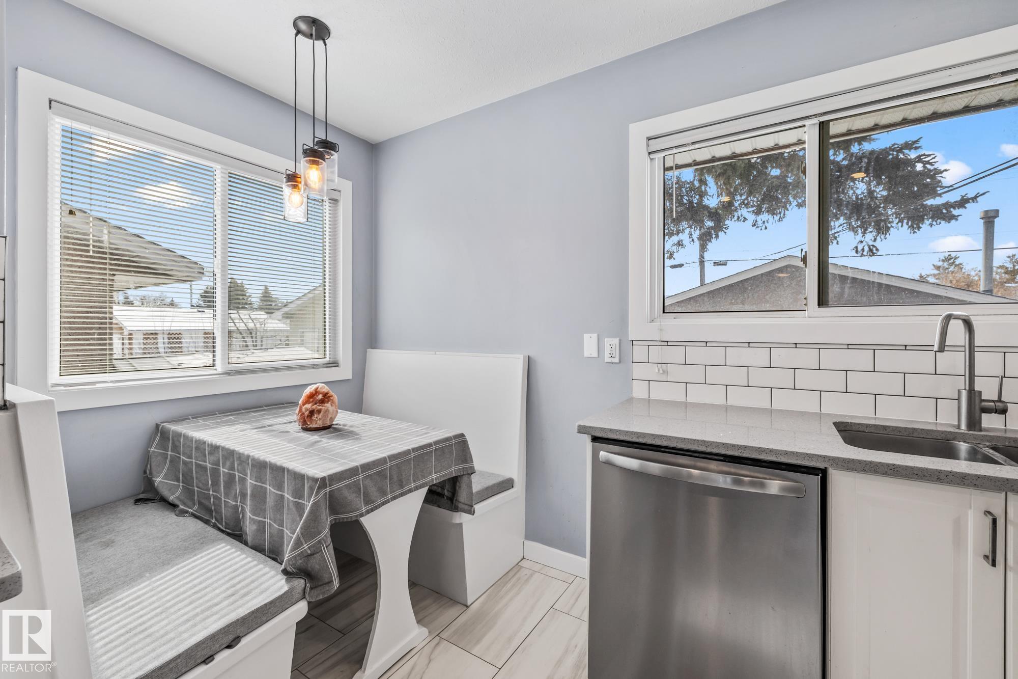 LEGALLY SUITED 3 bedroom up 2 bedroom down, with a SIDE entrance, and a double car garage, fully renovated in 2019, with large spacious kitchens including all stainless steel appliances, an adorable built in kitchen nook, and quartz countertops! Located on a quiet street with upgraded shingles (garage & house), all vinyl windows including the basement, 2 high efficiency furnaces, nicely painted stucco and vinyl siding, a recently redone backyard fence, garage door, newer blinds throughout and TWO laundry rooms, with brand new washer dryers (2026), this house is truly turnkey! Located on a large lot in the quiet Wellington neighborhood, with quick access to the many shops and bus routes along 137th avenue and the Yellowhead! Move into the upstairs unit, while renting the basement, or cash flow this well maintained property while the neighborhood continues to improve!