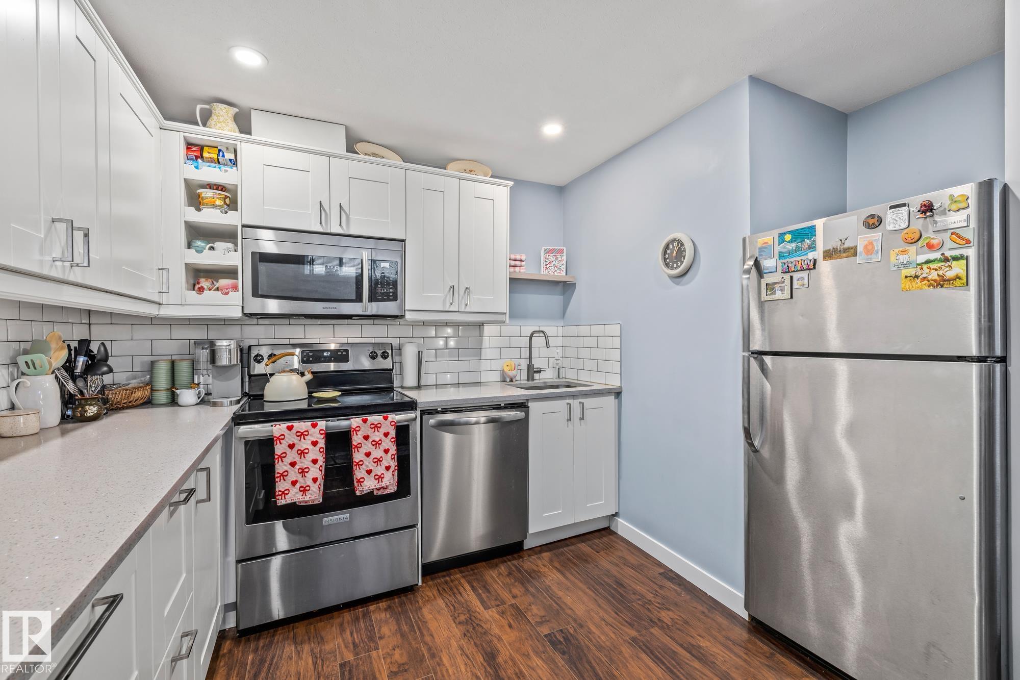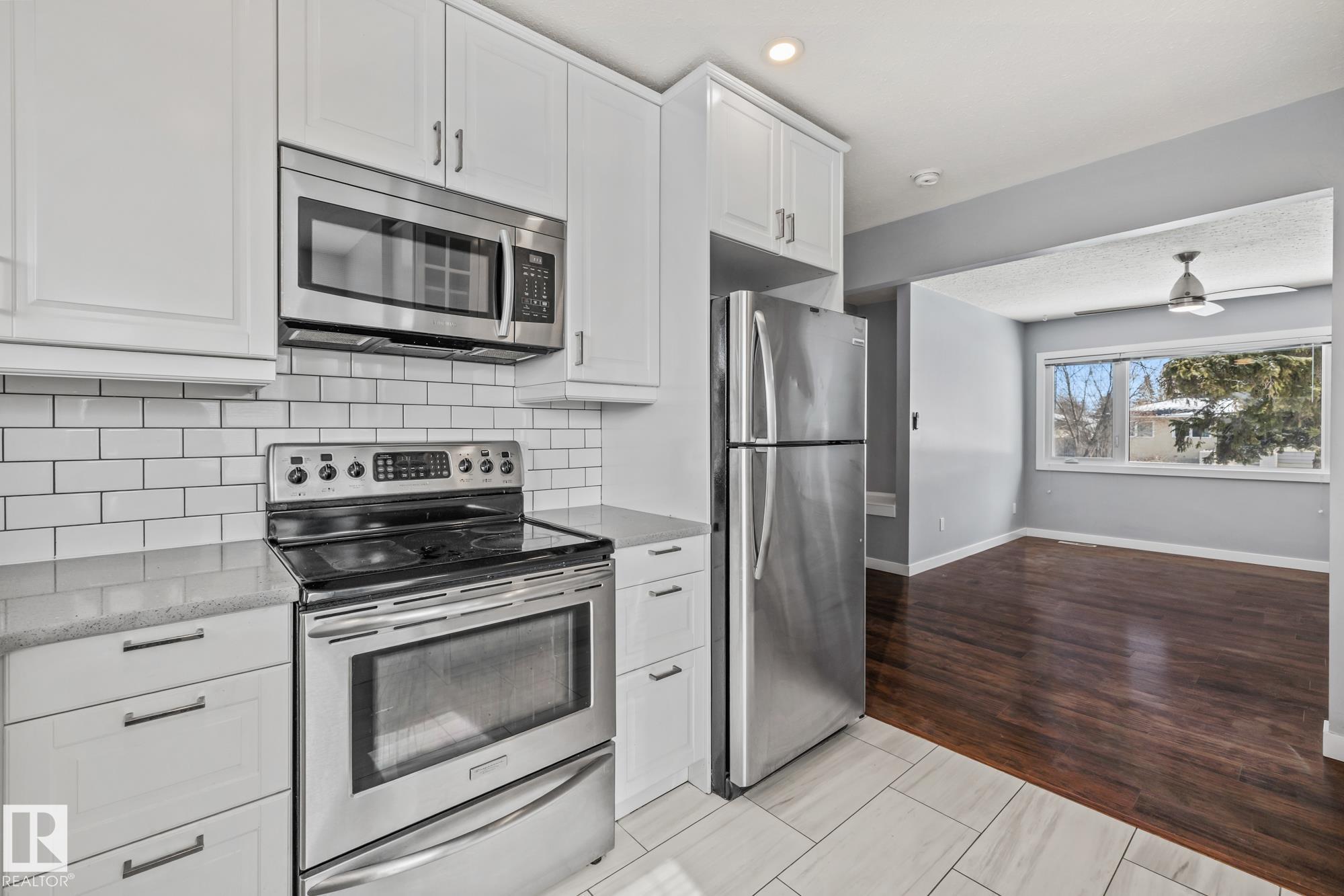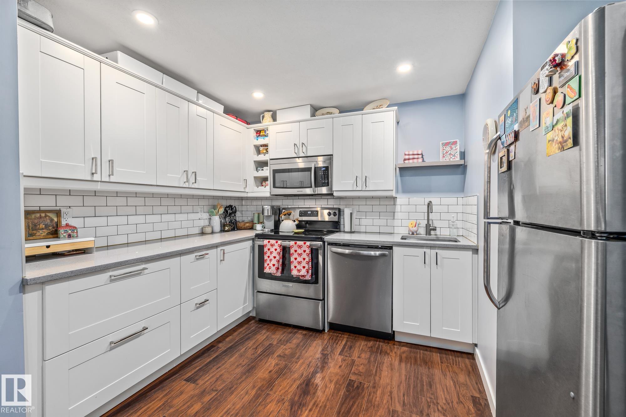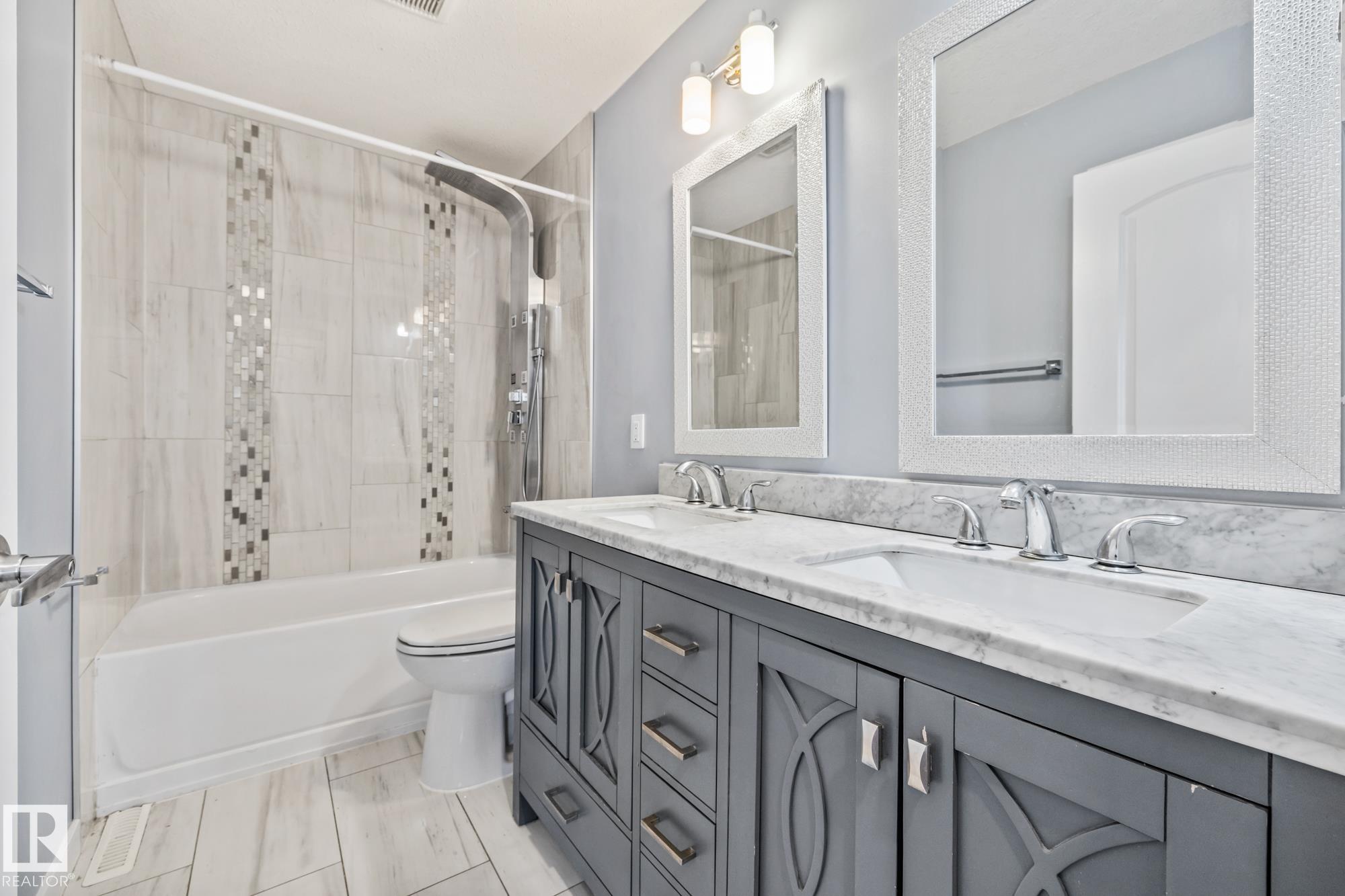 LEGALLY SUITED 3 bedroom up 2 bedroom down, with a SIDE entrance, and a double car garage, fully renovated in 2019, with large spacious kitchens including all stainless steel appliances, an adorable built in kitchen nook, and quartz countertops! Located on a quiet street with upgraded shingles (garage & house), all vinyl windows including the basement, 2 high efficiency furnaces, nicely painted stucco and vinyl siding, a recently redone backyard fence, garage door, newer blinds throughout and TWO laundry rooms, with brand new washer dryers (2026), this house is truly turnkey! Located on a large lot in the quiet Wellington neighborhood, with quick access to the many shops and bus routes along 137th avenue and the Yellowhead! Move into the upstairs unit, while renting the basement, or cash flow this well maintained property while the neighborhood continues to improve!