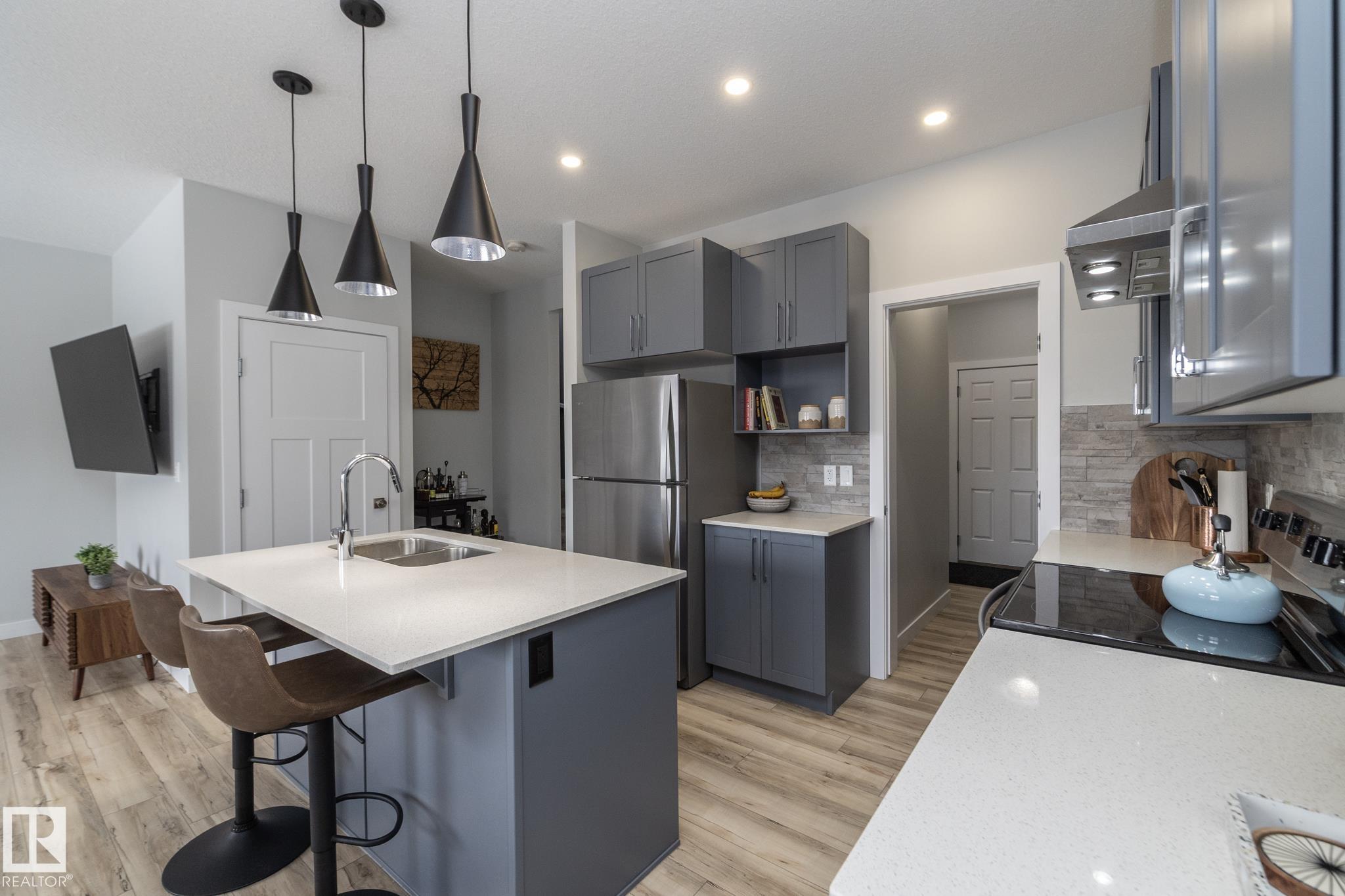 Welcome to Webber Greens?where style, functionality, and income potential meet in this former Lincolnberg show home! Offering just over 1,600 sqft, this upgraded half duplex features 4 bedrooms and 4 bathrooms, including a fully legal basement suite?perfect for investors or multi-generational living. The open-concept main floor showcases upgraded lighting, modern backsplash, and designer finishes throughout, plus central A/C for year-round comfort. Upstairs offers spacious bedrooms and convenient laundry, while the basement suite includes its own laundry and private living space. Enjoy the upgraded composite deck, brand new fence with gate, and an extra-wide heated garage. Located close to walking trails, schools, future LRT, and the upcoming Lewis Estates Rec Centre?this is turnkey living with built-in value!