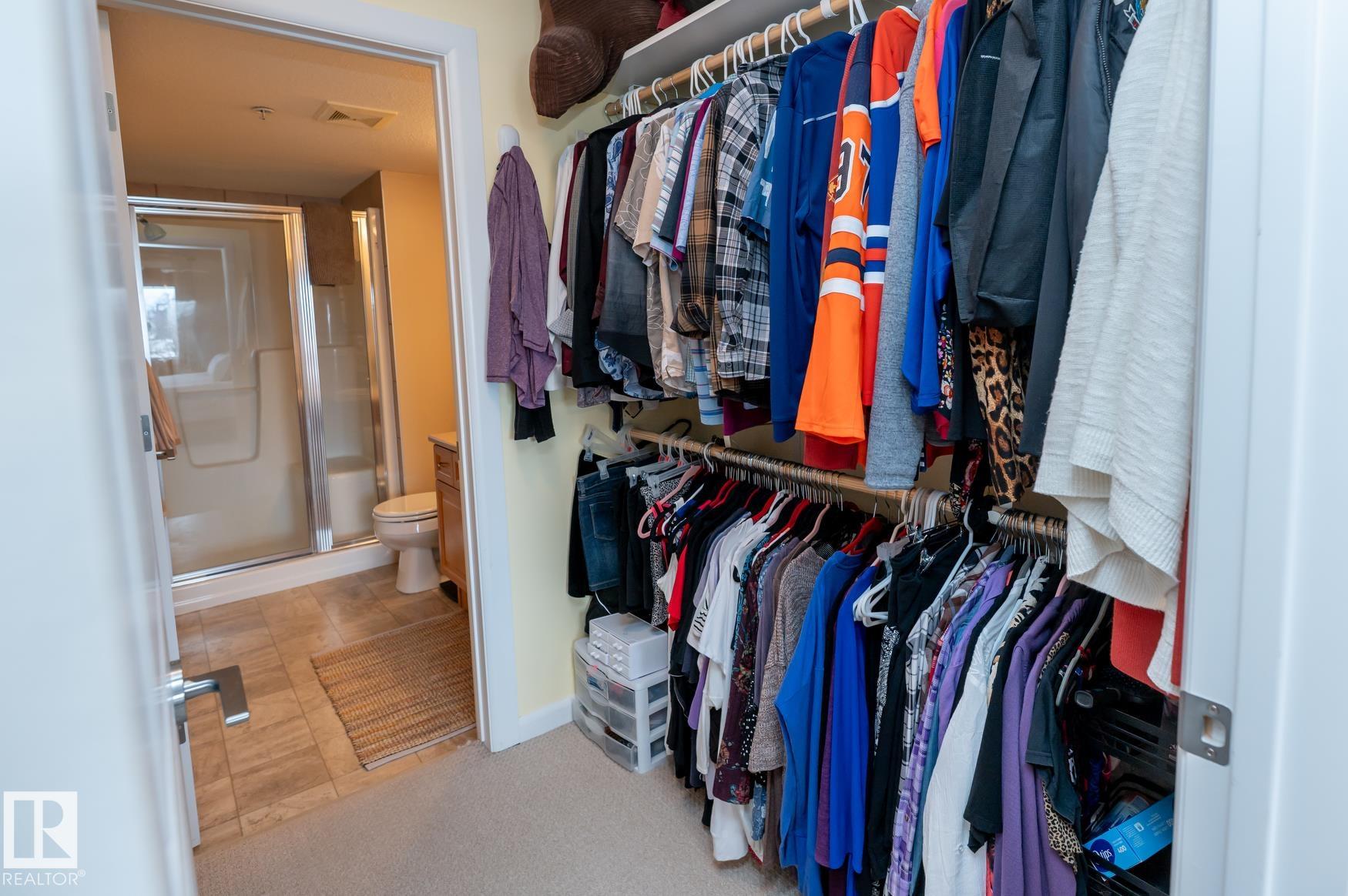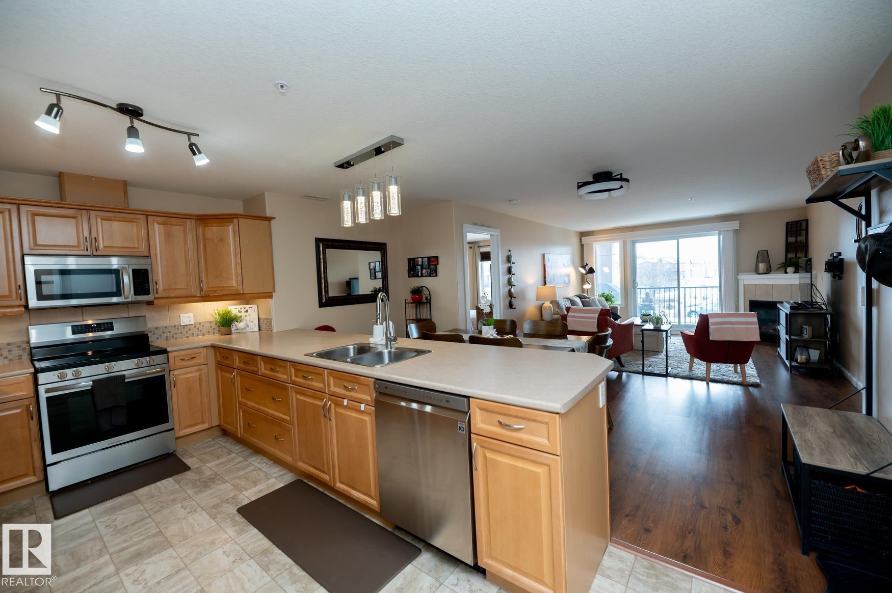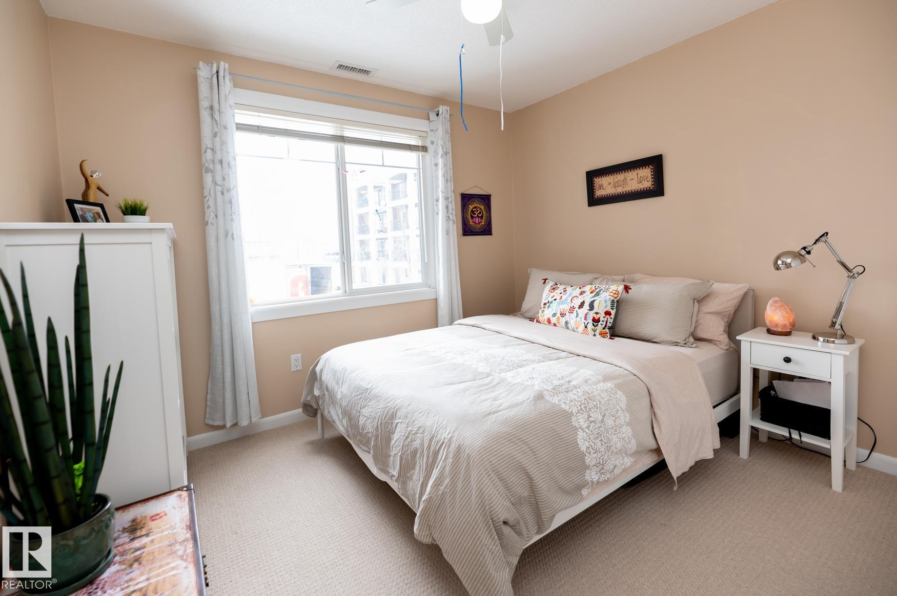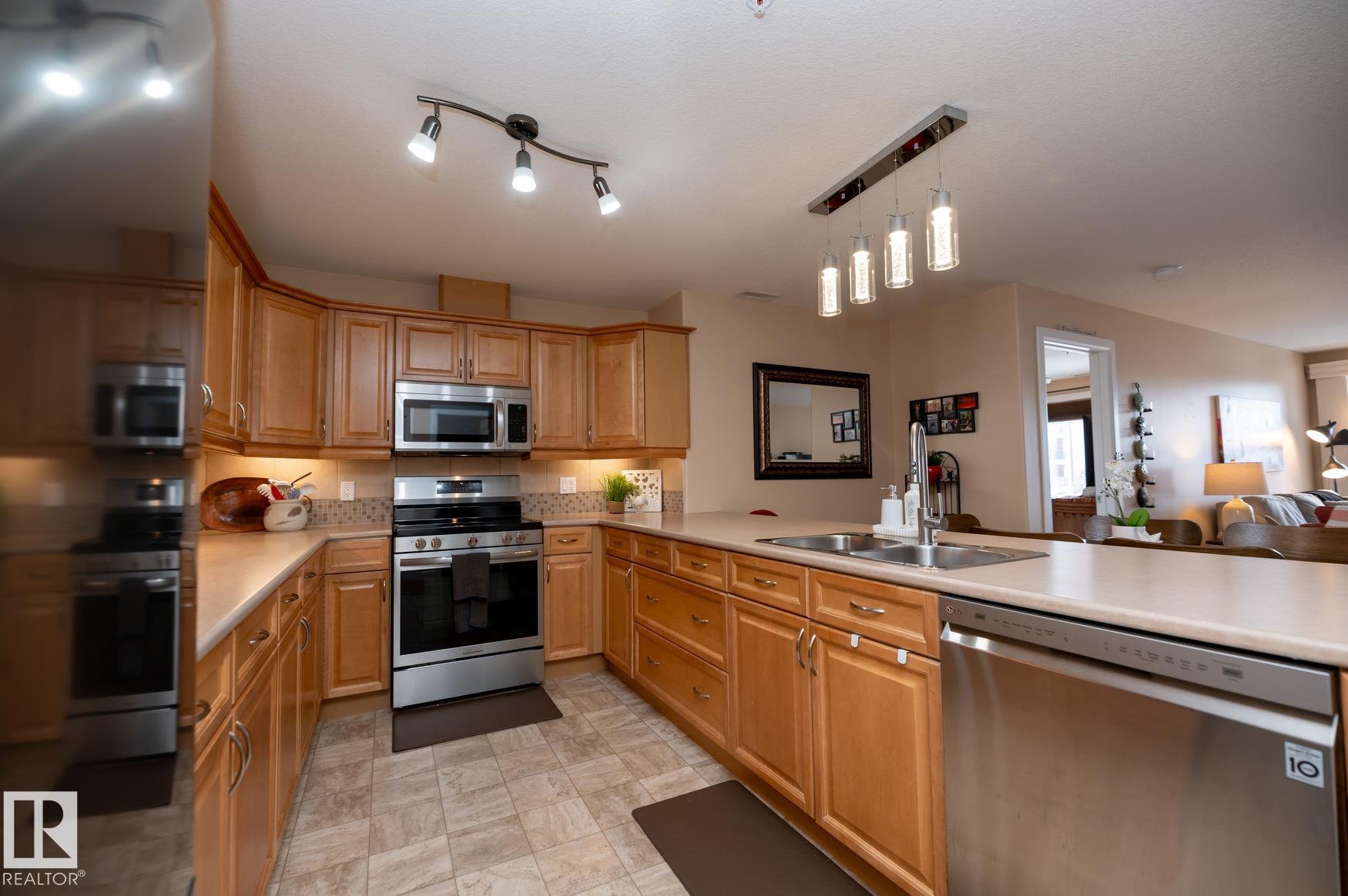 Immaculate 2 Bedroom plus a den/storage room condo that is Air conditioned with a fan coil system. This condo has a large kitchen that includes an eating bar and dining space that leads to a bright living room with a corner fire place. The large primary bedroom includes a walk in closet & a 3 piece ensuite washroom. This condo also includes a second bedroom, in-suite laundry, an additional 4 piece washroom a den that has been converted to a storage room but could easily have the shelving removed to make it into a den again. This unit has one underground parking space (plus storage) in a heated parkade & close to the elevators. Recent upgrades in 2025 include: New Stove, Fridge, Washer/Dryer, Garburator. AMENITIES in the building are: Sauna area (Dry & Wet), Exercise room, Theatre room, Car Wash, Games room that includes a Pool Table. The building is pet friendly with board approval, age is currently restricted to 18+ Great location close to shopping, walking trails, transportation.