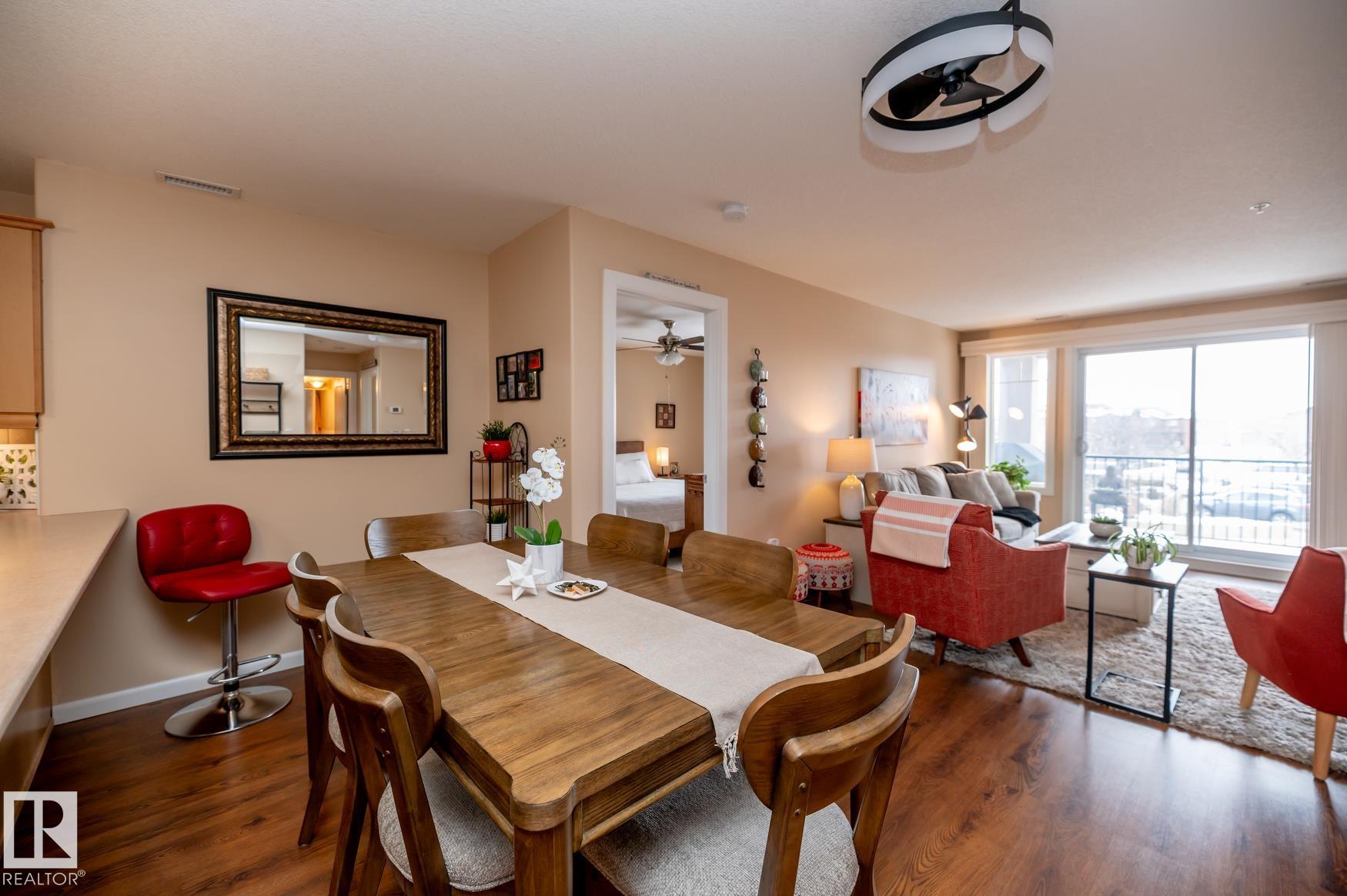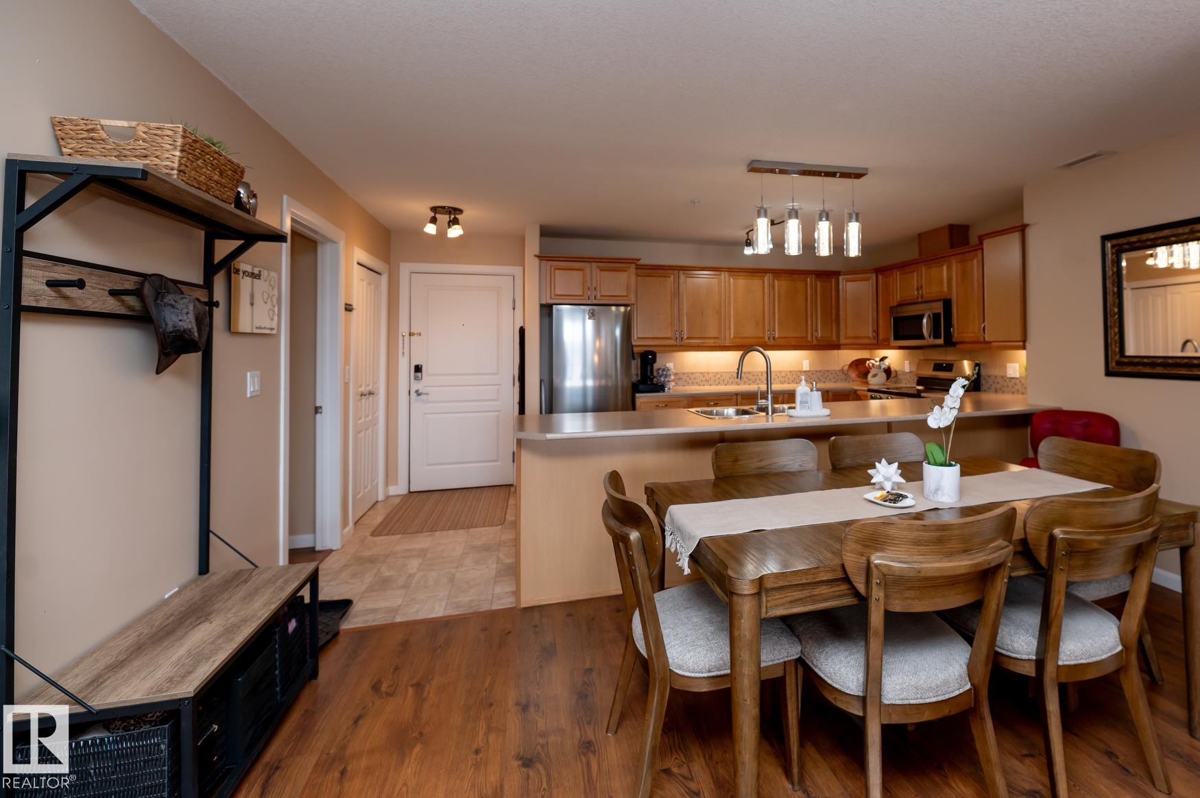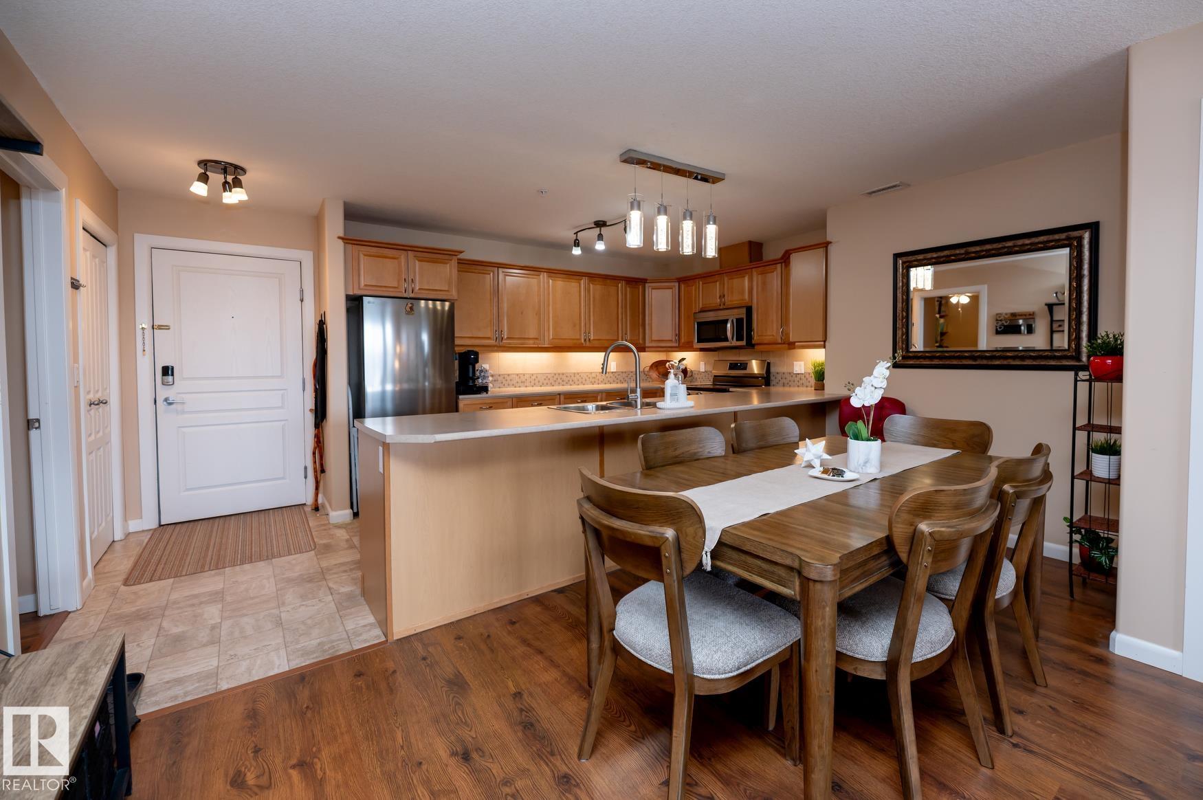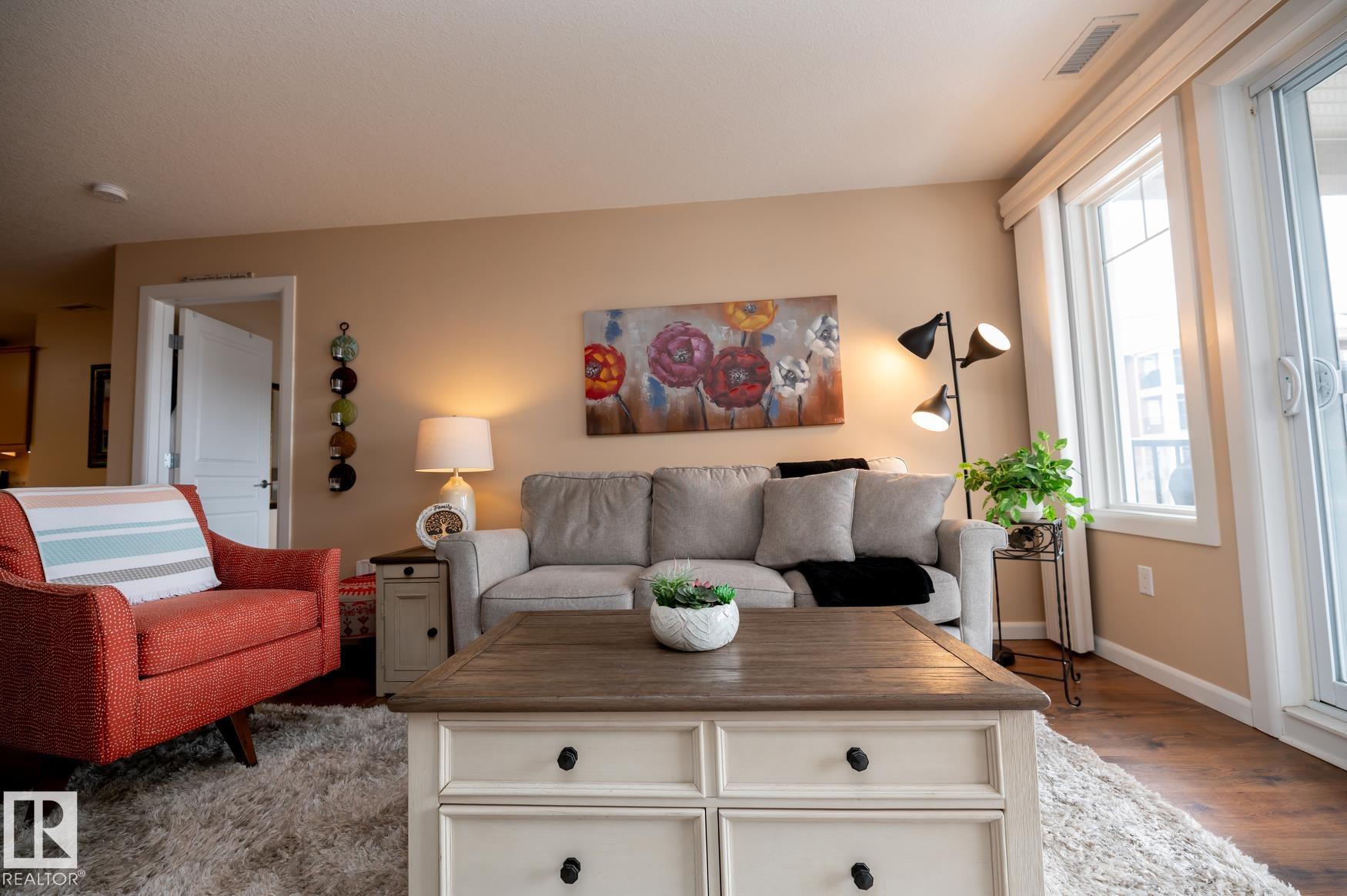 Immaculate 2 Bedroom plus a den/storage room condo that is Air conditioned with a fan coil system. This condo has a large kitchen that includes an eating bar and dining space that leads to a bright living room with a corner fire place. The large primary bedroom includes a walk in closet & a 3 piece ensuite washroom. This condo also includes a second bedroom, in-suite laundry, an additional 4 piece washroom a den that has been converted to a storage room but could easily have the shelving removed to make it into a den again. This unit has one underground parking space (plus storage) in a heated parkade & close to the elevators. Recent upgrades in 2025 include: New Stove, Fridge, Washer/Dryer, Garburator. AMENITIES in the building are: Sauna area (Dry & Wet), Exercise room, Theatre room, Car Wash, Games room that includes a Pool Table. The building is pet friendly with board approval, age is currently restricted to 18+ Great location close to shopping, walking trails, transportation.