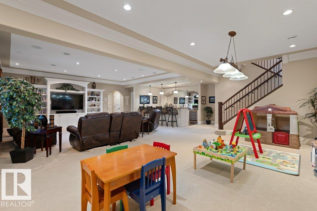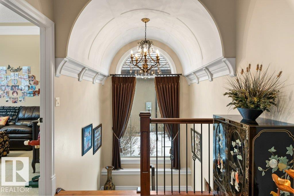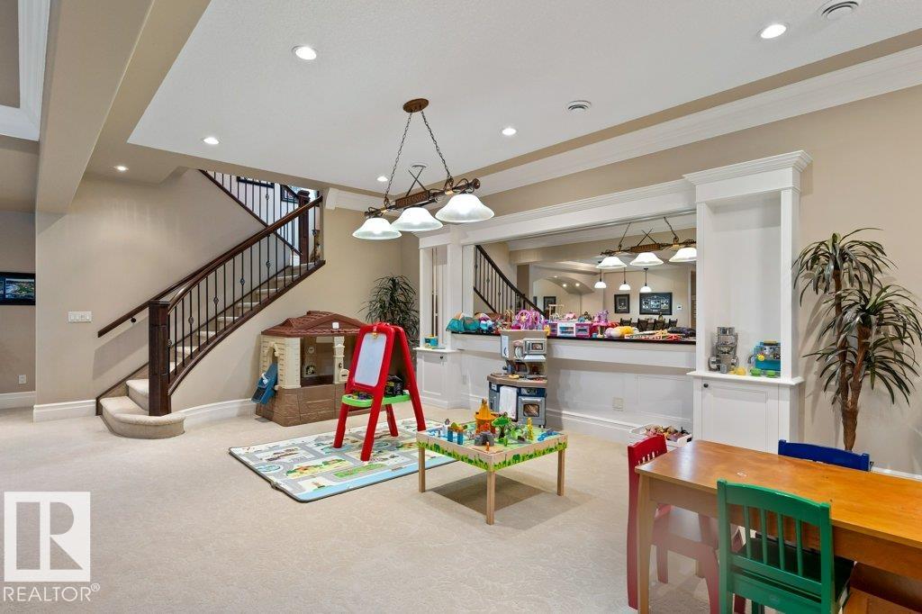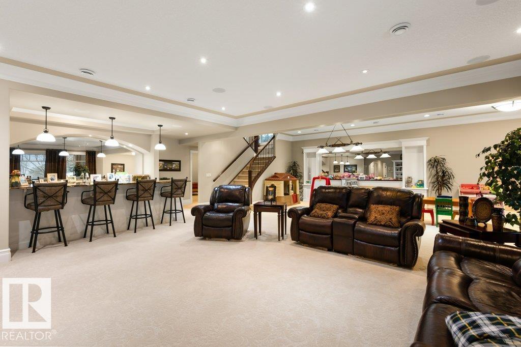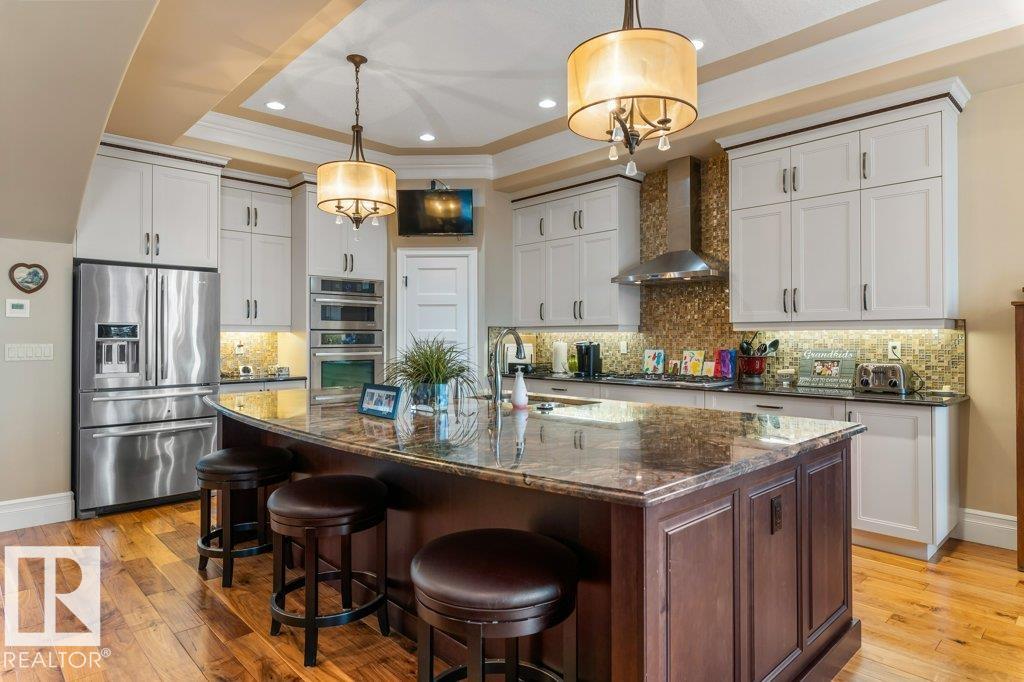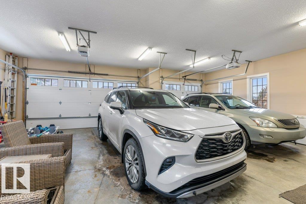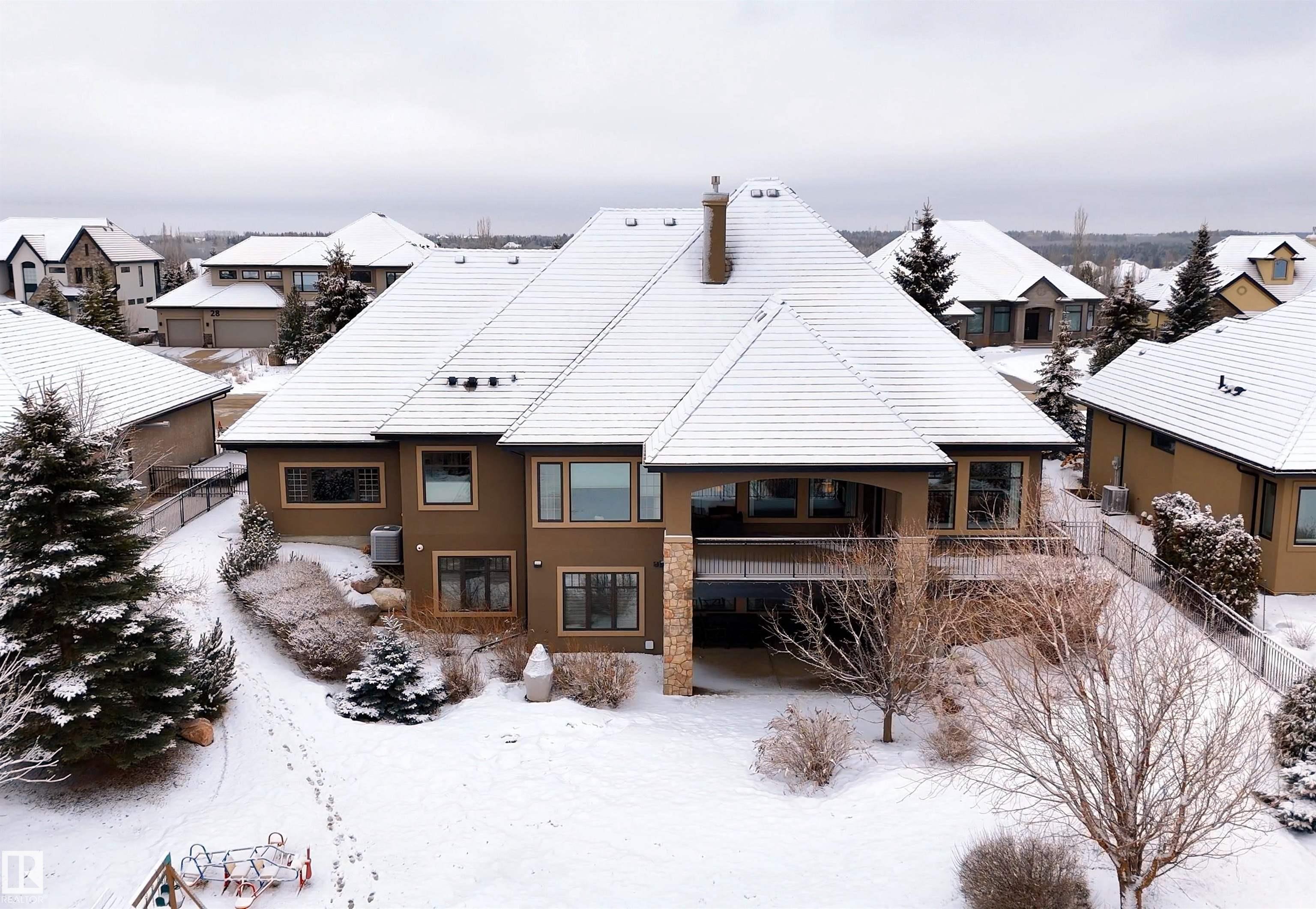 Welcome to this exceptional 2,300 sq ft walk-out bungalow by Audie Benson Estate Homes, ideally nestled in the prestigious community of Riverstone Pointe. Showcasing breathtaking views, it offers the ultimate blend of luxury, tranquility, and acreage-style living?just minutes to St. Albert and the Henday. Built to the highest standards of quality and craftsmanship, every detail has been thoughtfully curated. The main floor features a stunning primary retreat with a spa-inspired 5-piece ensuite and expansive walk-in closet, along with a private den. The open-concept living space is rich in natural light and anchored by a beautifully appointed, chef-inspired kitchen designed for both elevated entertaining and everyday living. The fully finished walk-out lower level offers 3 spacious bedrooms and an impressive family rm/games area & wet bar creating the perfect setting for hosting family and guests. A heated quad garage completes this extraordinary home?where timeless design meets an exceptional lifestyle.