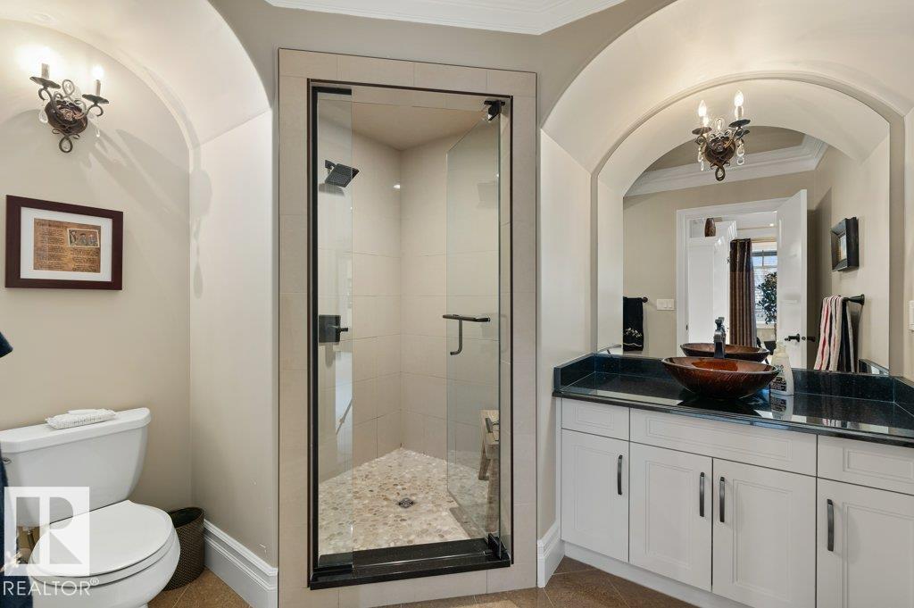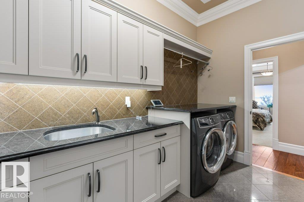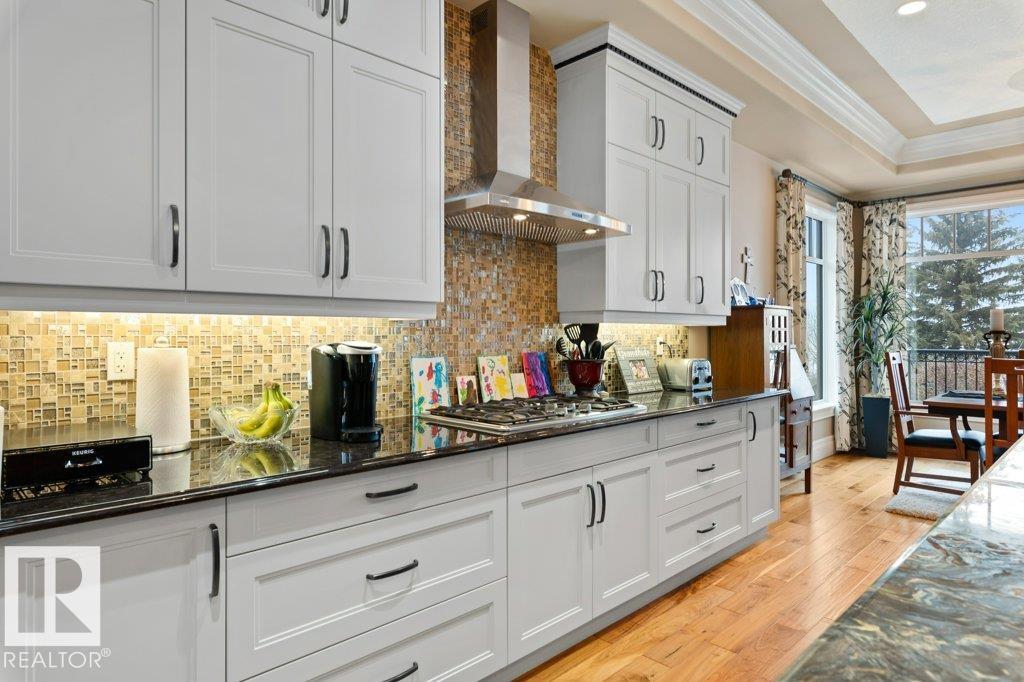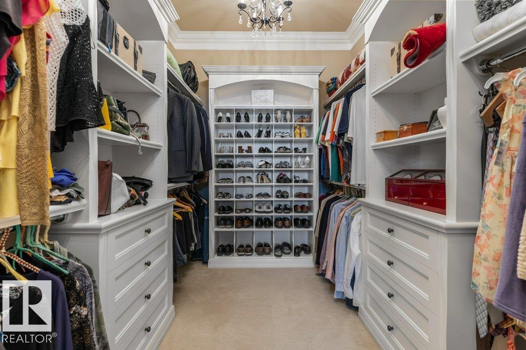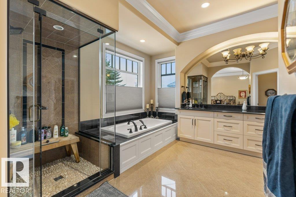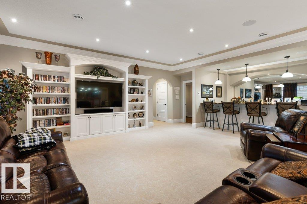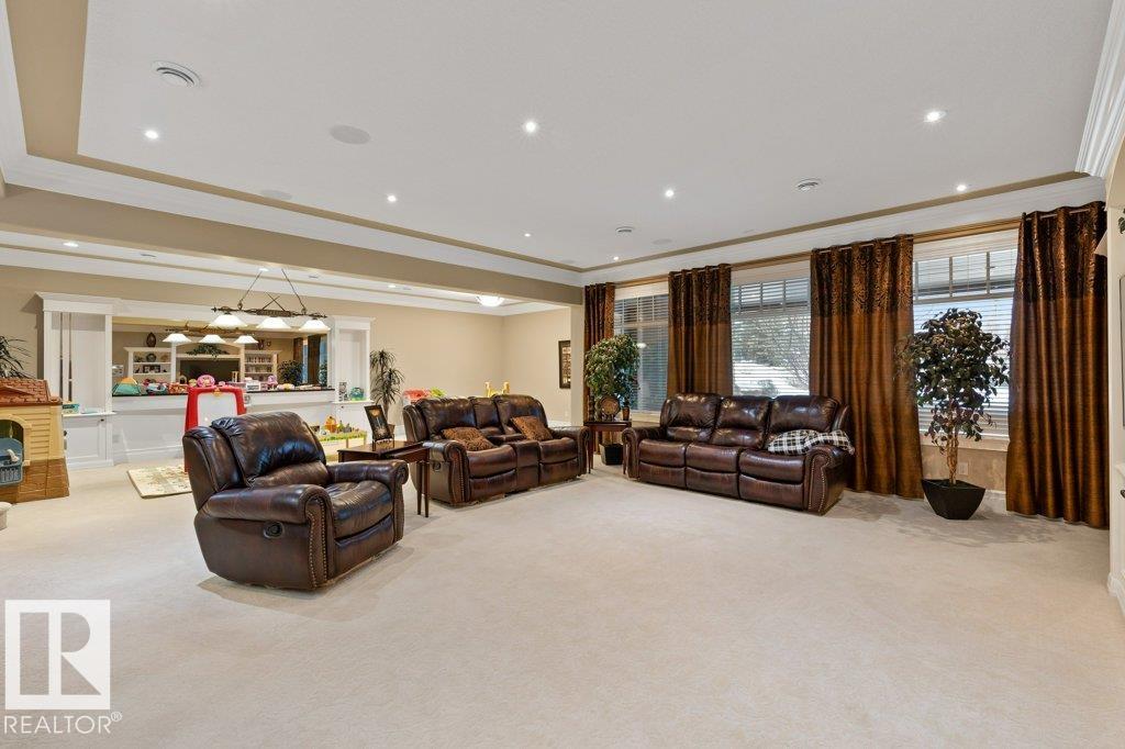 Welcome to this exceptional 2,300 sq ft walk-out bungalow by Audie Benson Estate Homes, ideally nestled in the prestigious community of Riverstone Pointe. Showcasing breathtaking views, it offers the ultimate blend of luxury, tranquility, and acreage-style living?just minutes to St. Albert and the Henday. Built to the highest standards of quality and craftsmanship, every detail has been thoughtfully curated. The main floor features a stunning primary retreat with a spa-inspired 5-piece ensuite and expansive walk-in closet, along with a private den. The open-concept living space is rich in natural light and anchored by a beautifully appointed, chef-inspired kitchen designed for both elevated entertaining and everyday living. The fully finished walk-out lower level offers 3 spacious bedrooms and an impressive family rm/games area & wet bar creating the perfect setting for hosting family and guests. A heated quad garage completes this extraordinary home?where timeless design meets an exceptional lifestyle.