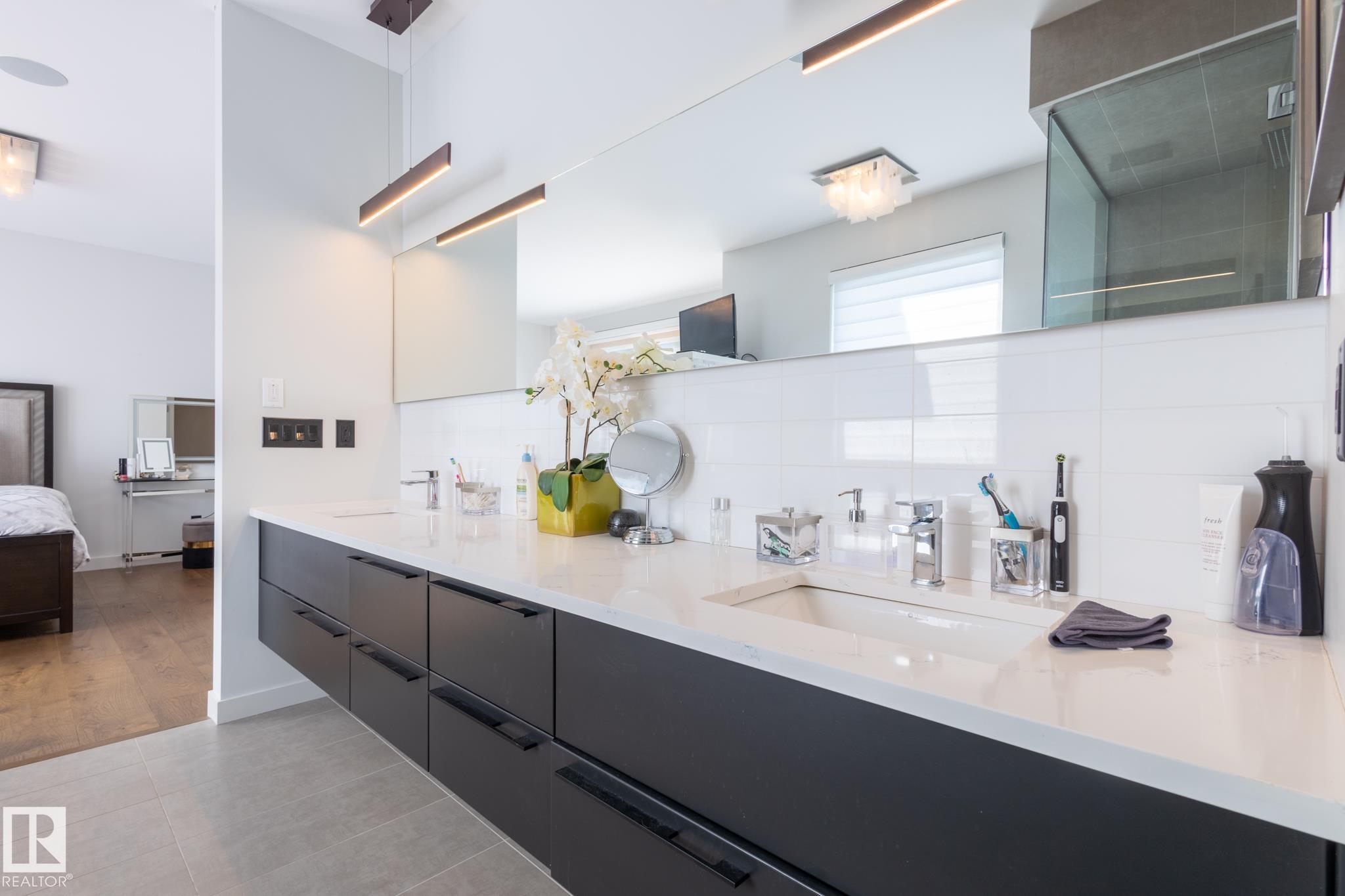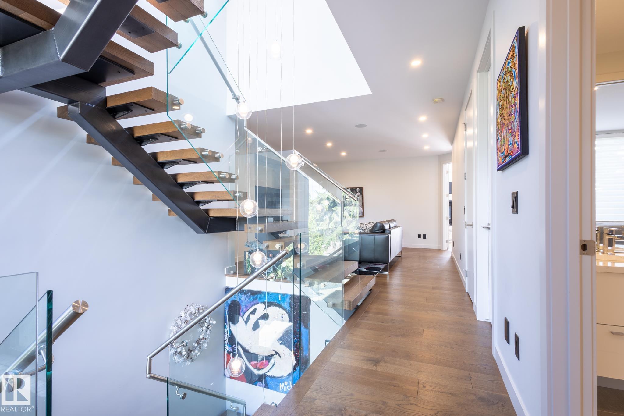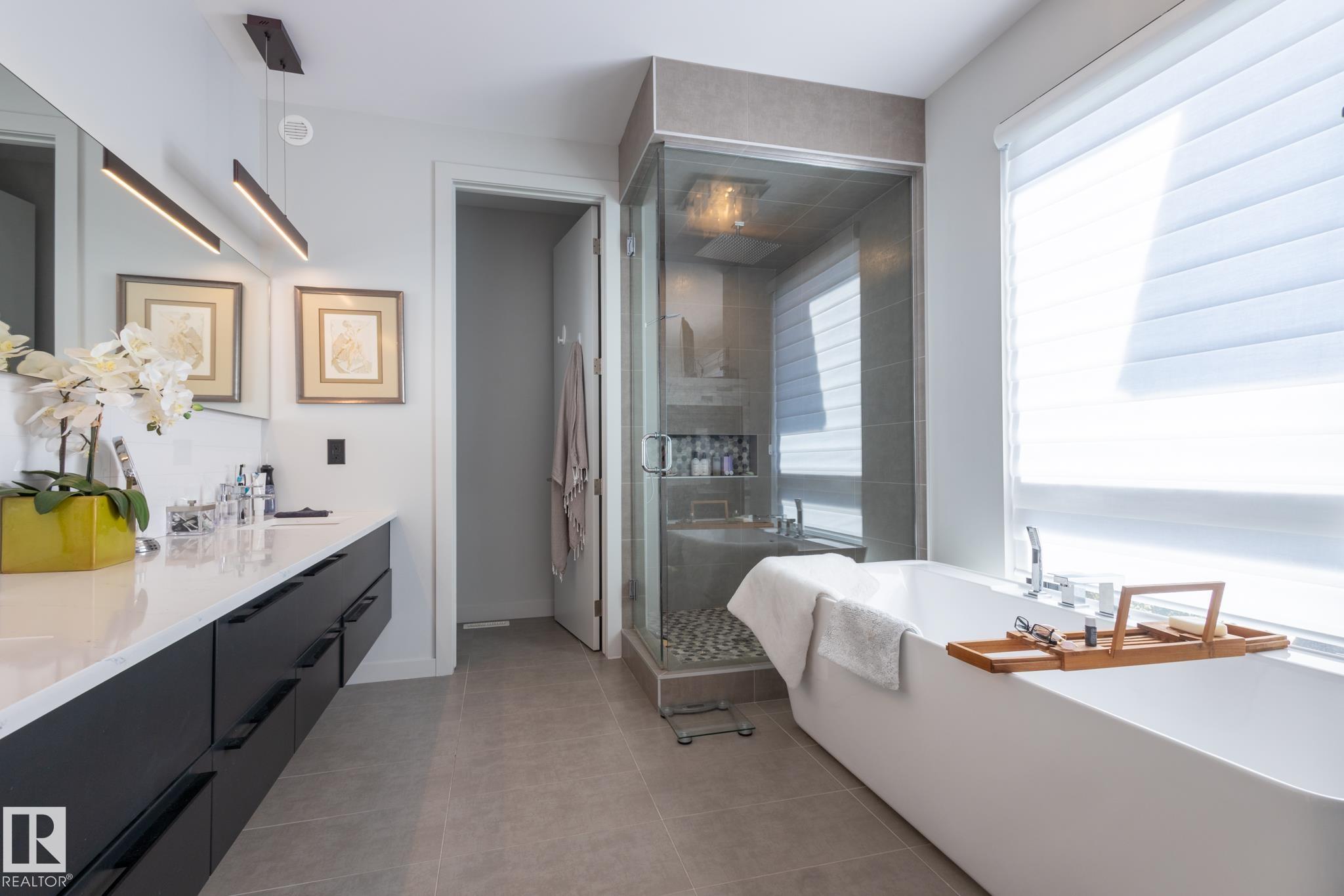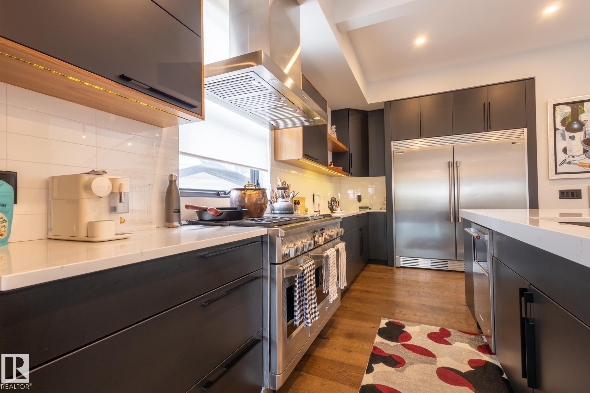 Experience elevated living in this prestigious Parkview home with over 2,800 square feet of modern elegance in this 4-bedroom, 4-bathroom masterpiece. Host unforgettable evenings on the rooftop patio or out on the massive deck in the expansive Southwest facing backyard. On cooler nights, retreat indoors around the fireplace in the spacious living room while entertaining family and friends at the showstopping 16-ft kitchen island. The front entrance is framed by floor-to-ceiling windows and anchored by a grand custom staircase. A main-floor office offers the perfect work-from-home space. Upstairs, the luxurious primary suite boasts its own fireplace, a private deck, and a spa-inspired ensuite. Relax in the upstairs bonus area, or in the lower level flex space/games room. The detached 3-car garage adds convenience and style. Perfectly located close to schools, parks, shopping, and Edmonton?s breathtaking river valley, this residence blends sophisticated design with unmatched lifestyle appeal.