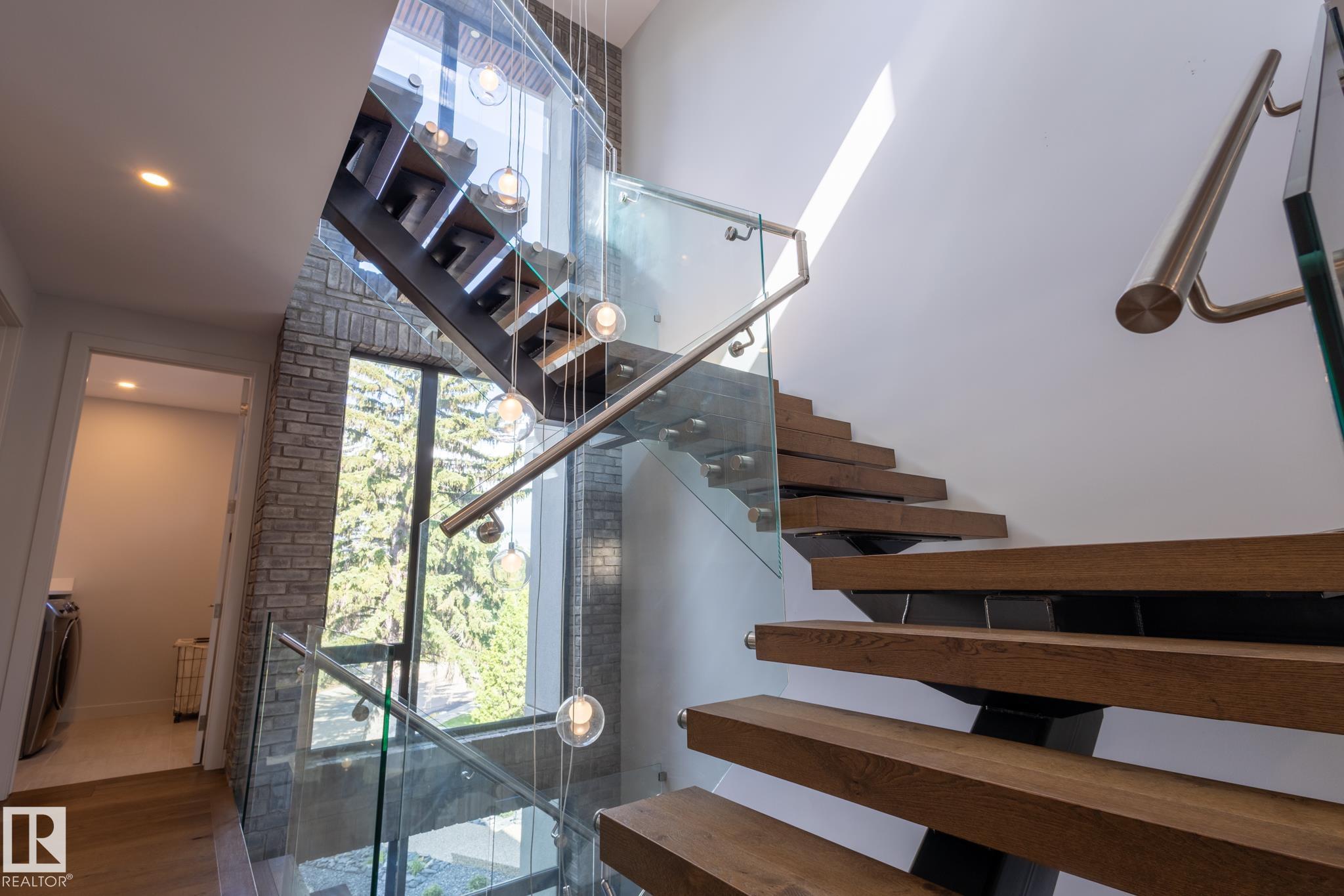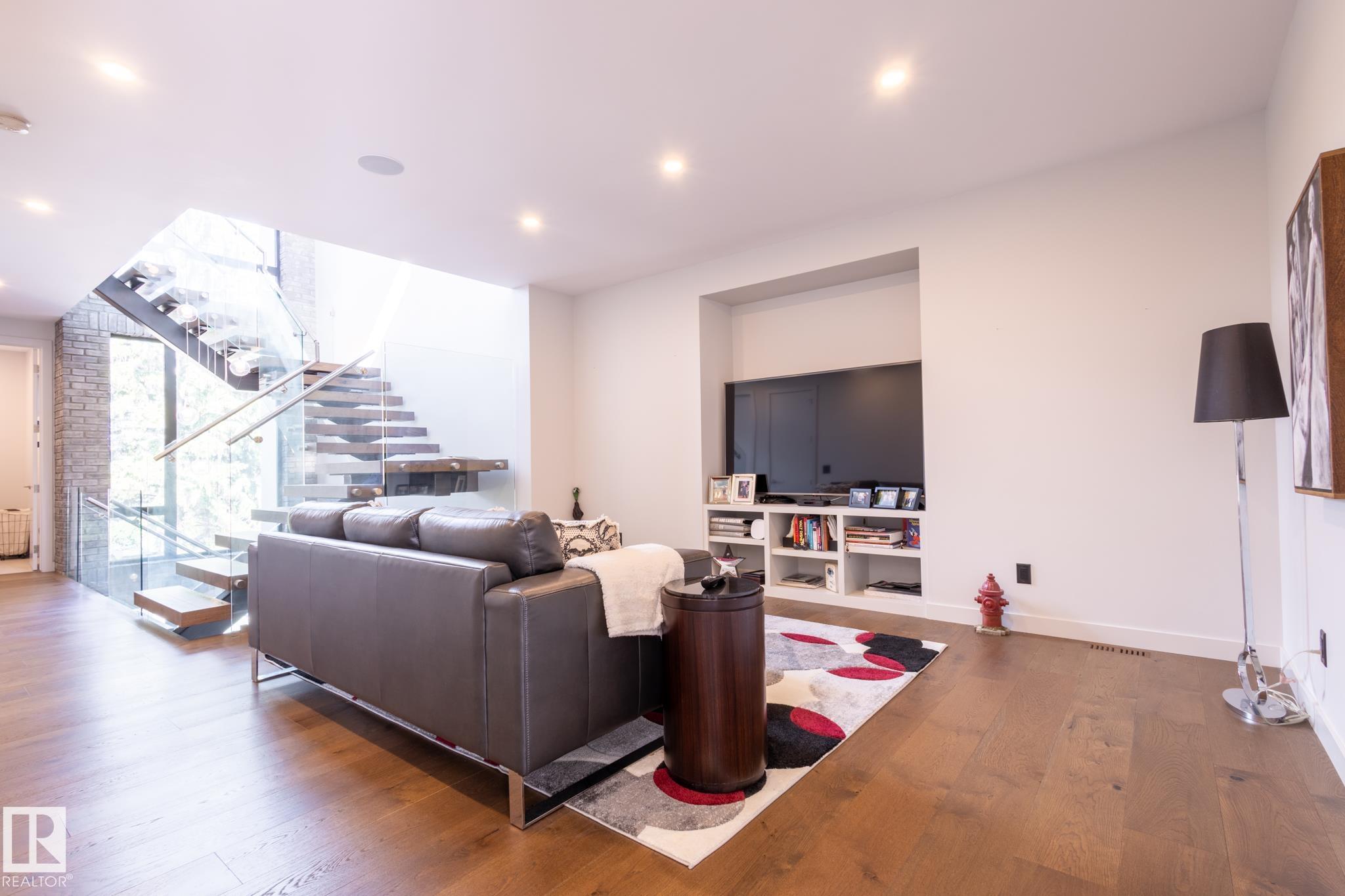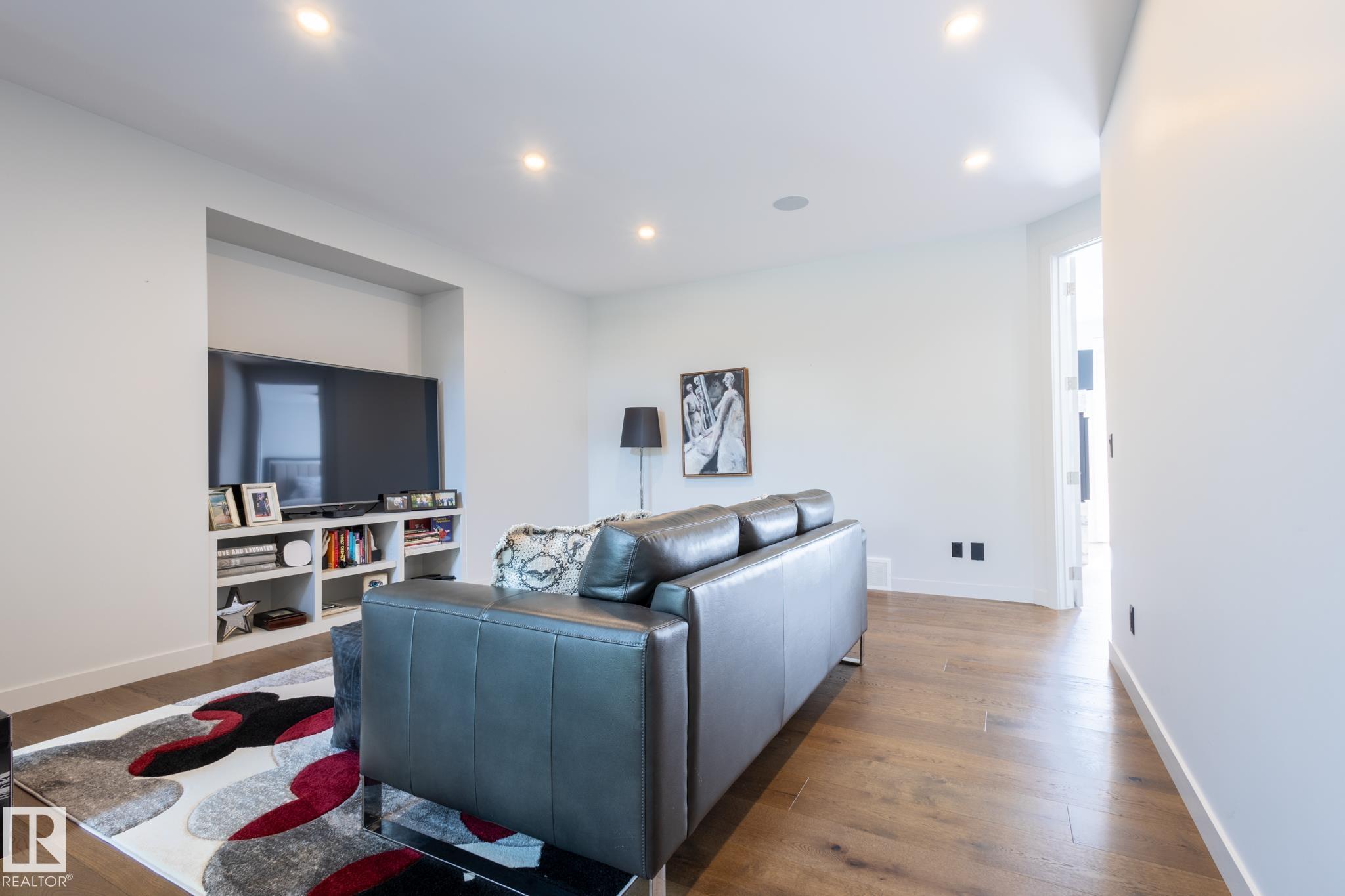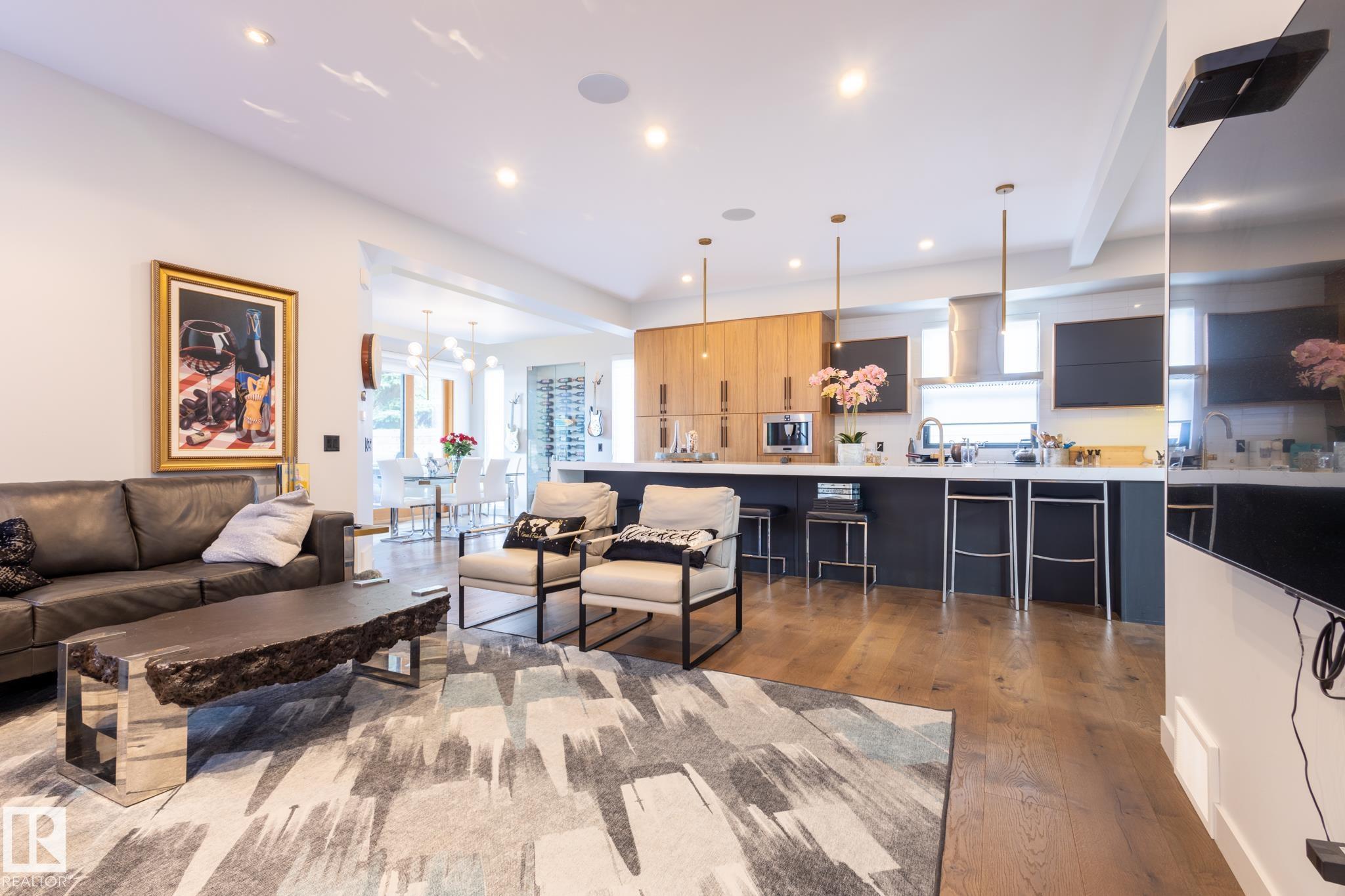 Experience elevated living in this prestigious Parkview home with over 2,800 square feet of modern elegance in this 4-bedroom, 4-bathroom masterpiece. Host unforgettable evenings on the rooftop patio or out on the massive deck in the expansive Southwest facing backyard. On cooler nights, retreat indoors around the fireplace in the spacious living room while entertaining family and friends at the showstopping 16-ft kitchen island. The front entrance is framed by floor-to-ceiling windows and anchored by a grand custom staircase. A main-floor office offers the perfect work-from-home space. Upstairs, the luxurious primary suite boasts its own fireplace, a private deck, and a spa-inspired ensuite. Relax in the upstairs bonus area, or in the lower level flex space/games room. The detached 3-car garage adds convenience and style. Perfectly located close to schools, parks, shopping, and Edmonton?s breathtaking river valley, this residence blends sophisticated design with unmatched lifestyle appeal.