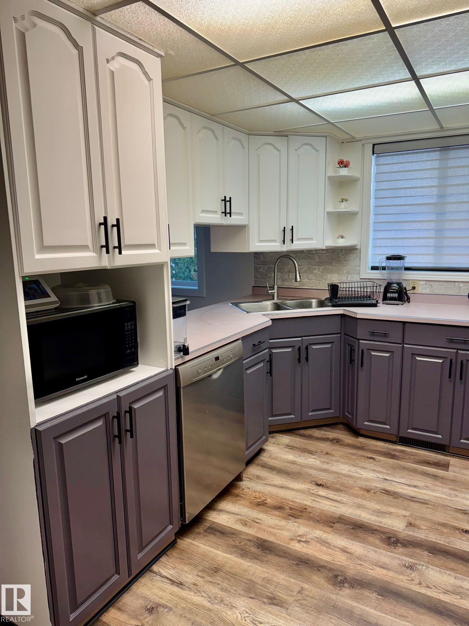 Welcome home to this beautifully updated property nestled in a quiet, mature area of Barrhead ? perfect for families seeking space, comfort, and convenience. Featuring 4 spacious bedrooms and 2.5 bathrooms, this home offers a bright, open living area ideal for gatherings and everyday living. The primary bedroom includes a private 2-piece ensuite, while the finished basement with in-floor heating provides a cozy retreat all year round. Enjoy recent upgrades throughout, including new vinyl flooring & fresh paint on the main floor, and new 2025 garage shingles ? adding value and peace of mind. Step outside to your large, fully fenced backyard with a spacious deck, perfect for summer barbecues and family fun. The extra-wide double detached garage includes a built-in workbench, making it a dream for hobbyists or those needing extra storage. A wonderful opportunity in one of Barrhead?s most desirable neighborhoods ? move-in ready and waiting for your family!