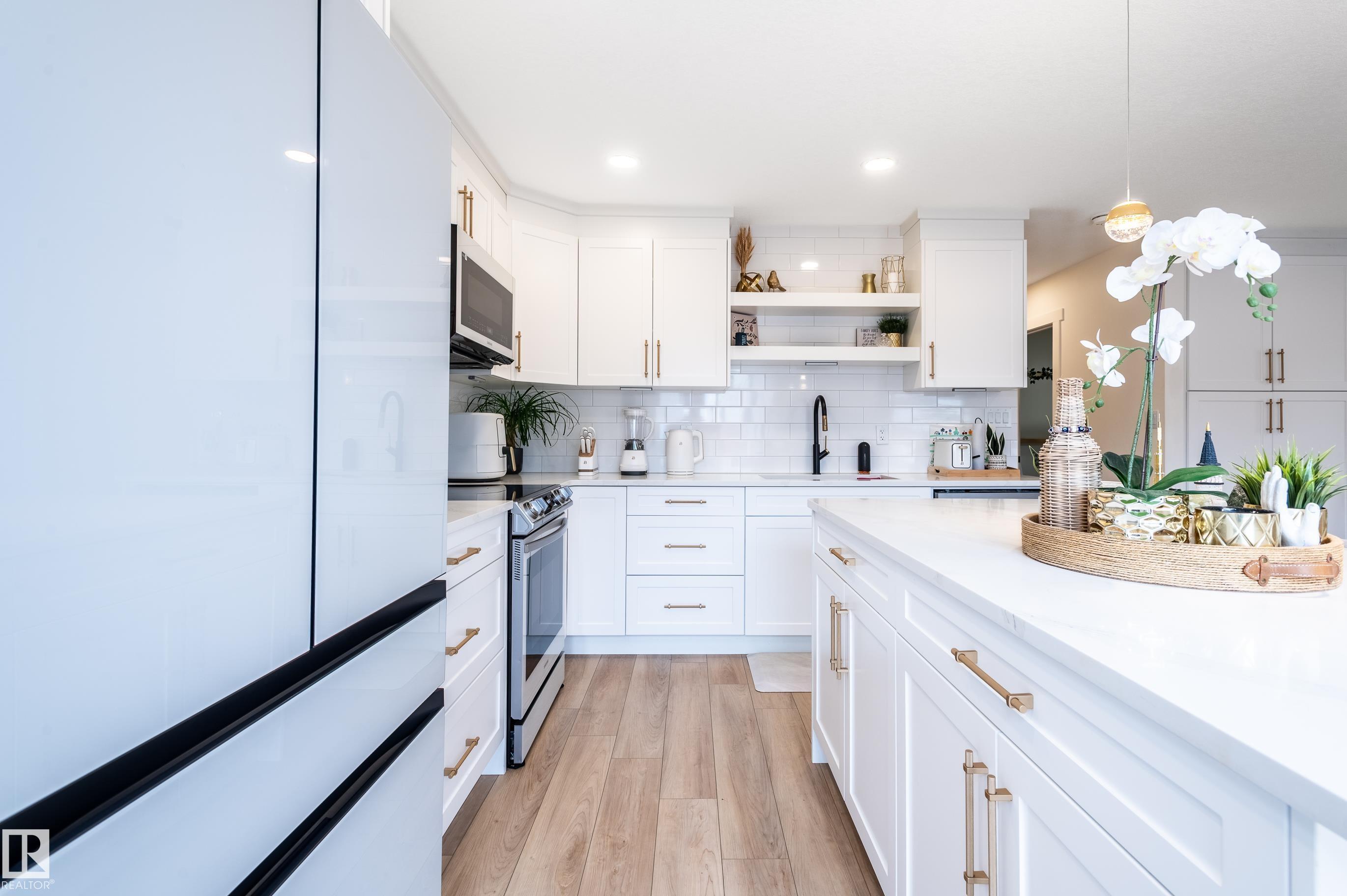 Large Family..? This is for you! This stunning bungalow, completely REIMAGINED inside and out in 2024, sits on a CORNER LOT with an OVERSIZED double garage, spacious yard, and expansive deck ? the perfect balance of LUXURY and LIVABILITY. Inside this OPEN-CONCEPT home, the main floor showcases a striking DESIGNER PORCELAIN feature wall, sleek GLASS RAILINGS, and a chef-inspired kitchen with PREMIUM APPLIANCES next to a bright dining area ideal for gathering and entertaining under eccentric lighting. The primary suite offers a private retreat with a chic ensuite, complemented by two additional bedrooms and main bath. The FULLY FINISHED basement impresses with a custom fireplace wall, large rec area, two bedrooms (one with ensuite), and an additional full bath ? perfect for family living or hosting guests. Nestled in a quiet, family-oriented community near schools, parks, and amenities, this home delivers sophisticated style with unmatched functionality.