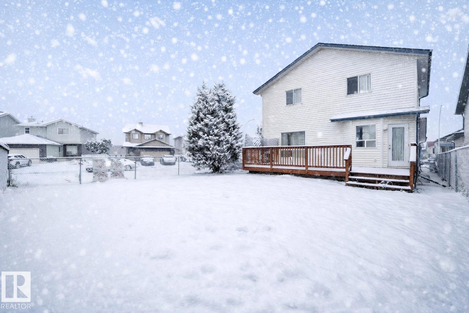 Beautifully Updated Corner-Lot Home in Miller. Welcome to this move-in-ready 4-bedroom, 2.5-bathroom home with a large, fully fenced yard in one of North Edmonton?s most family-friendly communities. Recent upgrades include new shingles/roof (2023), fresh paint throughout (2023), & brand-new carpet (2023)?offering peace of mind & a modern, fresh feel. The main floor features a bright and spacious living room w/new flooring, a cozy gas fireplace, & a large window. The kitchen is equipped w/white appliances, including a gas stove perfect for cooking enthusiasts, & flows seamlessly into the dining area?ideal for hosting family gatherings?while overlooking the huge yard w/a large deck. Upstairs, the primary bedroom comfortably fits a king-size bed & offers a full ensuite. Two additional bedrooms share a second full bathroom. The partially finished basement includes a large 4th bedroom & open space ready for your personal touch. Situated just minutes from parks, schools, & shopping, this is the one to see!