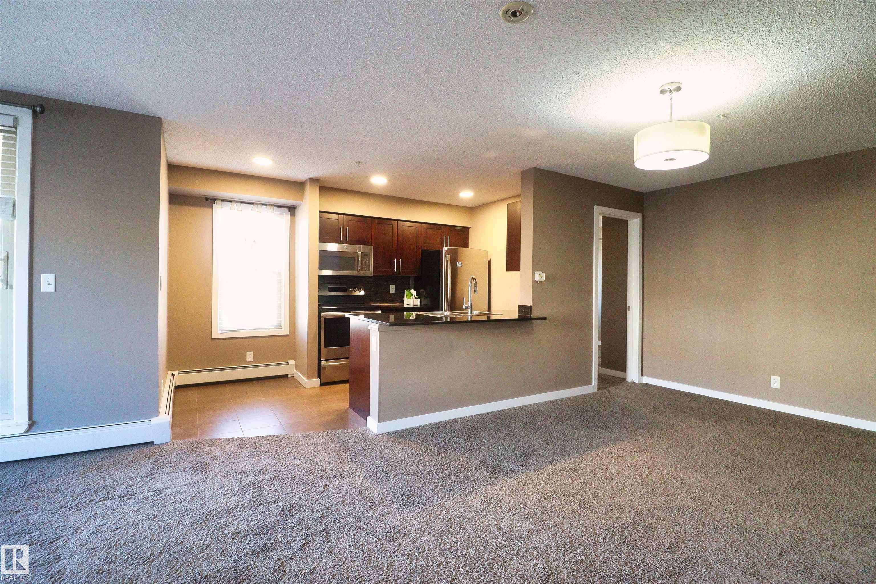 This is the Condo lifestyle. Rutherford Landing in Heritage Valley Town Centre offers a family friendly neighborhood , minutes to Highway 2 and the Henday and close to a future LRT expansion. This amazing large corner unit with just under 970 sq feet, features 2 bedrooms , 2 bathrooms and a large dining and living room plus a den. The beautiful kitchen includes a nook, granite countertops and stainless steel appliances. This main floor unit has a large patio and lots of light and an AC to keep cool in the Summer. Comes with a titled underground parking and assigned storage and ample visitor parking outside. Ready to move in, this is a perfect starter home or investor opportunity.