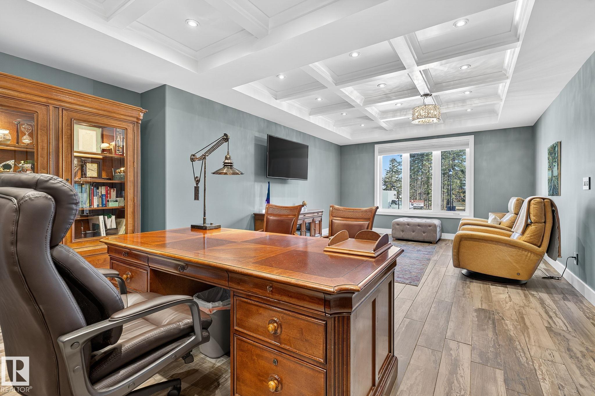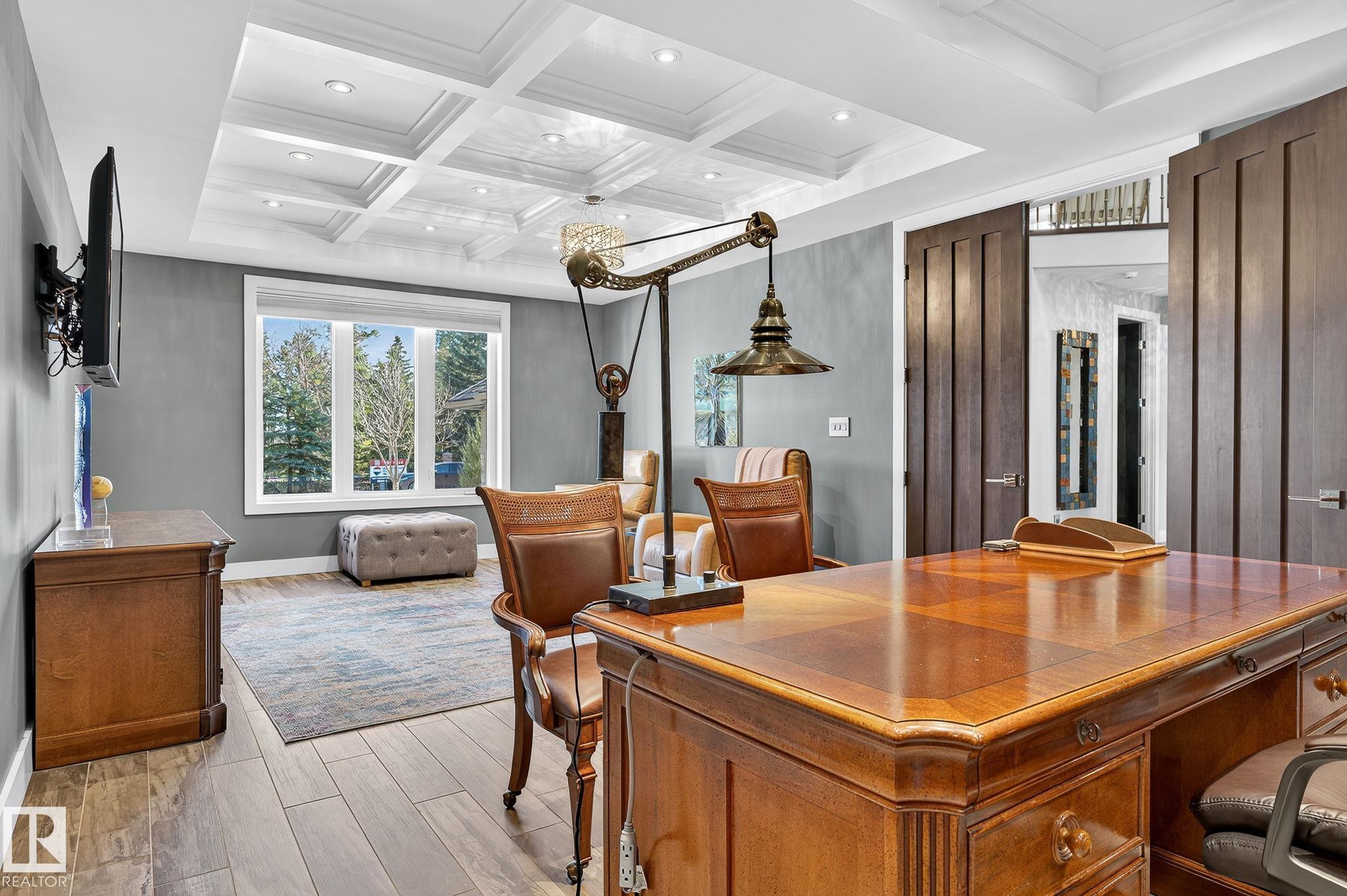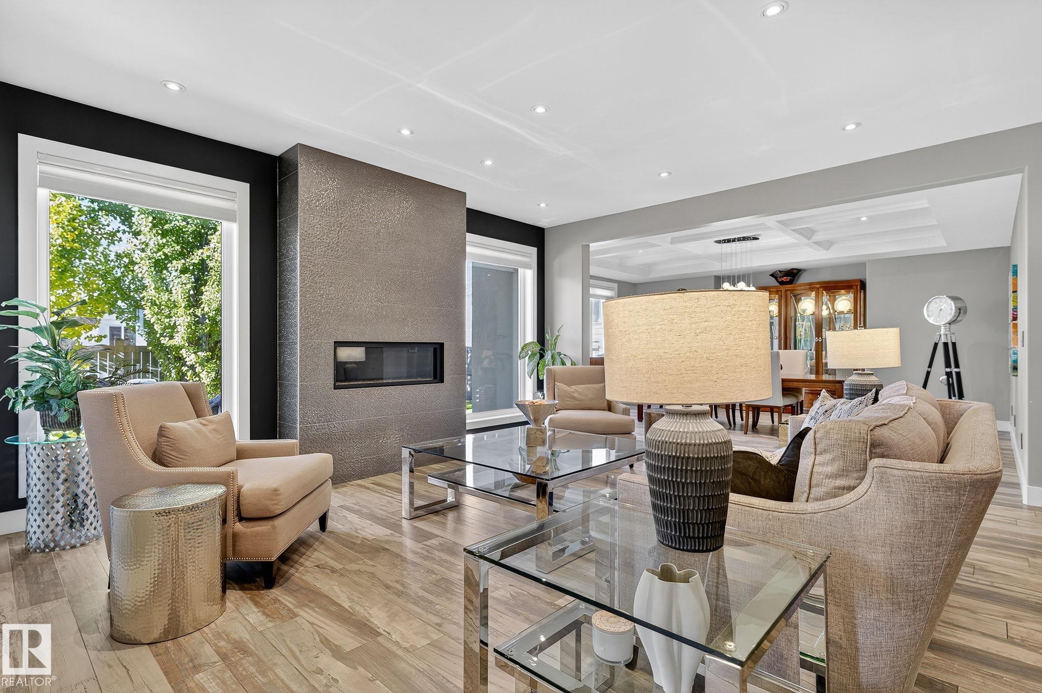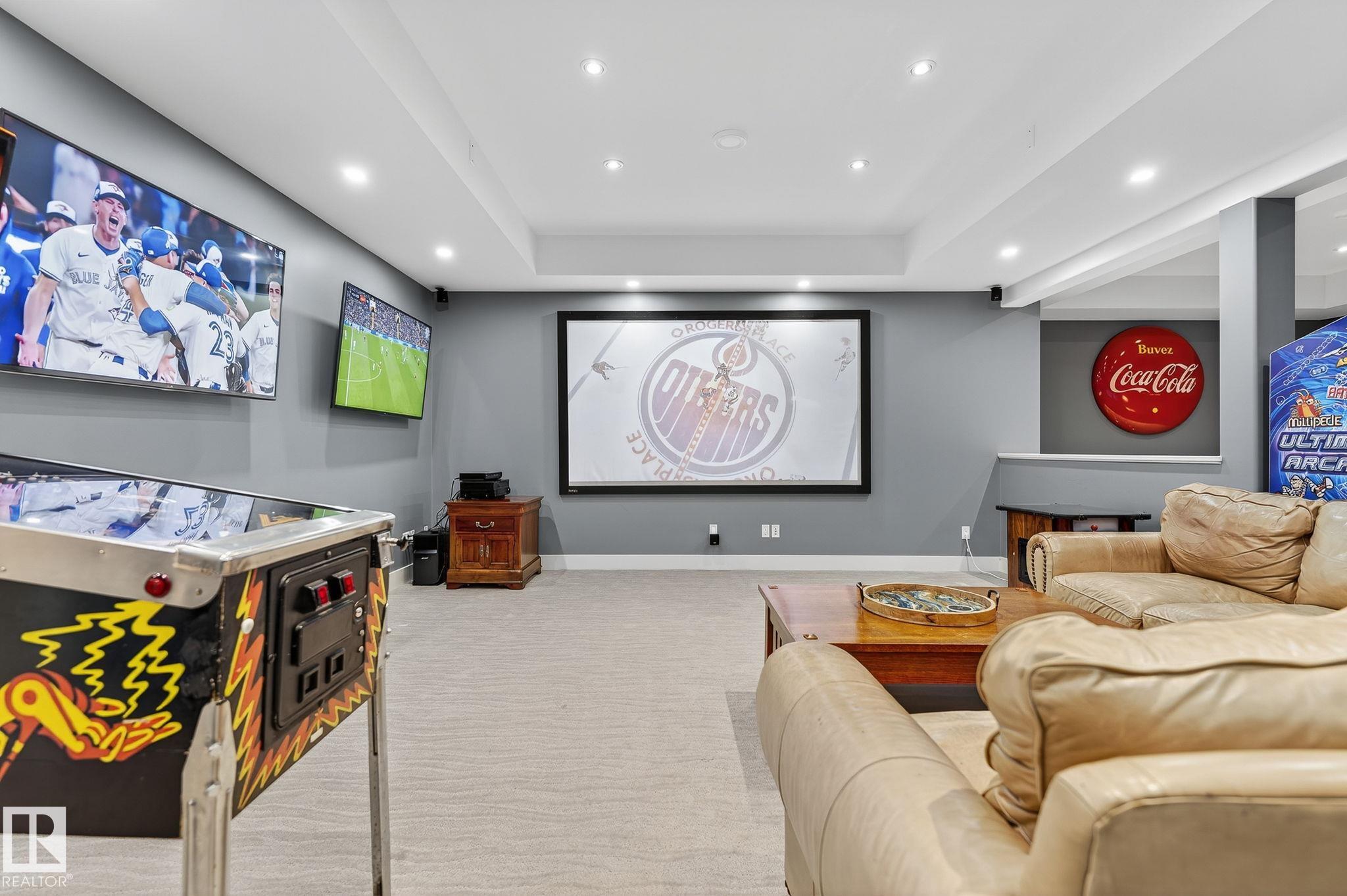 Exquisite custom-built estate in the prestigious Properties of Donsdale, one of Edmonton?s most sought-after communities. Offering 6,952sqft just steps from the river valley, this home seamlessly blends luxury, functionality & craftsmanship. Featuring an open floor plan with 10-foot ceilings, spiral staircase, warm durable tile flooring & plenty of natural light. The chef?s kitchen stuns with quartz counters, dual ovens, dishwashers, fridges, massive pantry & coffered ceilings. Highlights include a presidential office, grand dining room, spacious mudroom. Upstairs, the primary suite offers dual walk-ins, a spa ensuite w/ heated floors, jetted tub & fireplace. Three additional bedrooms each enjoy walk-in closets & private ensuites + laundry & a cozy bonus room. The finished basement w/ 9ft ceilings boasts zoned in-floor heat, wet bar, private HIDDEN BOOKSHELF theatre, multi-TV sports area, hockey & art room or 2 bedrooms. Triple heated garage w/ drains & low maintenance turf yards + so much more.