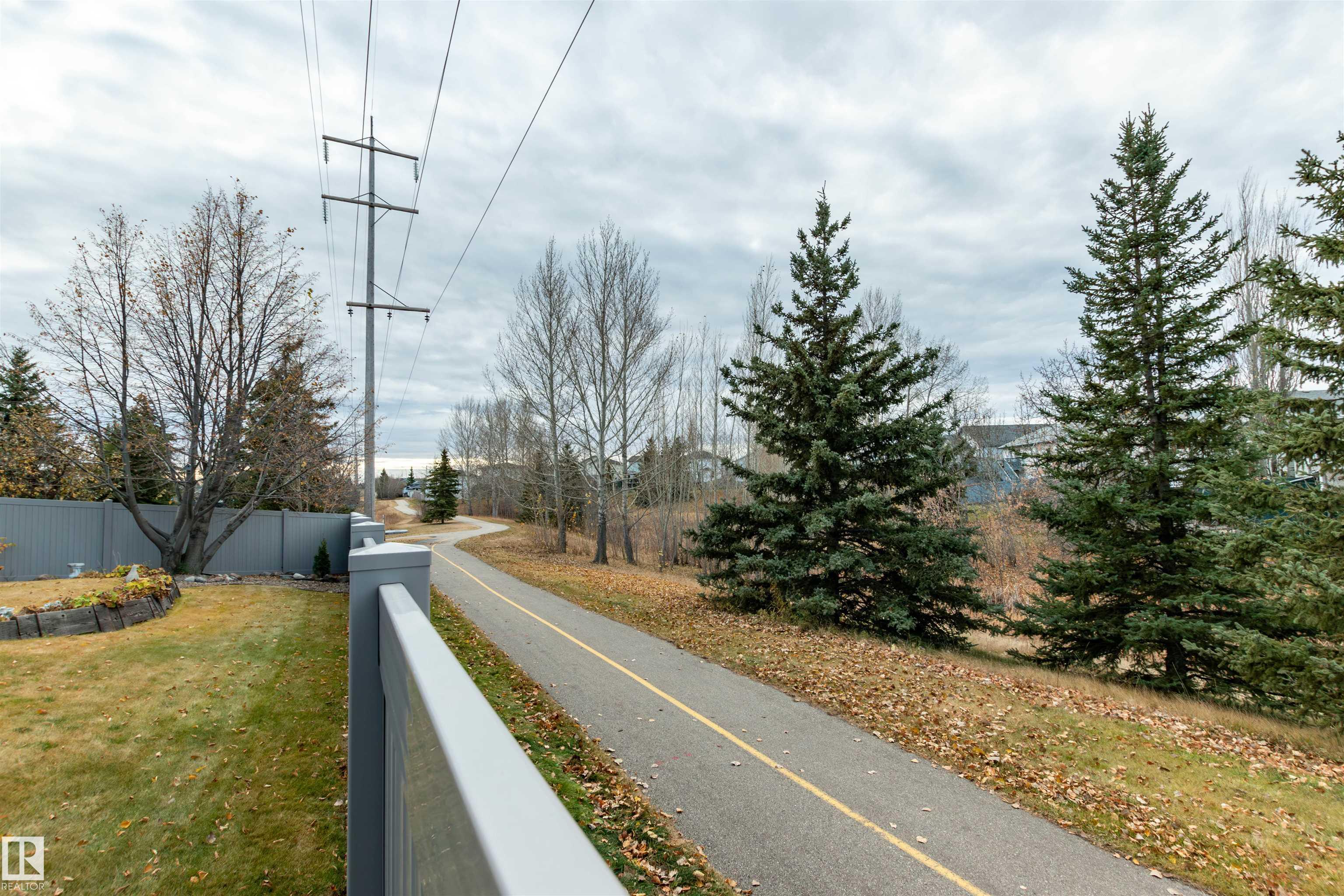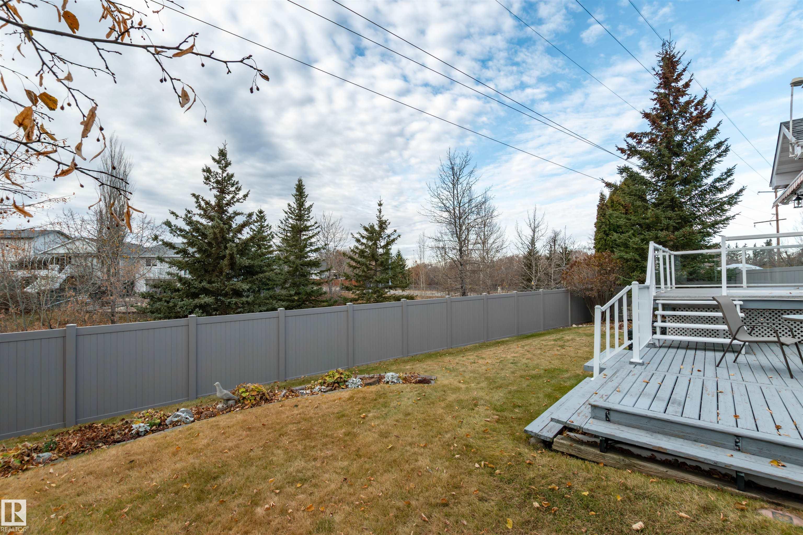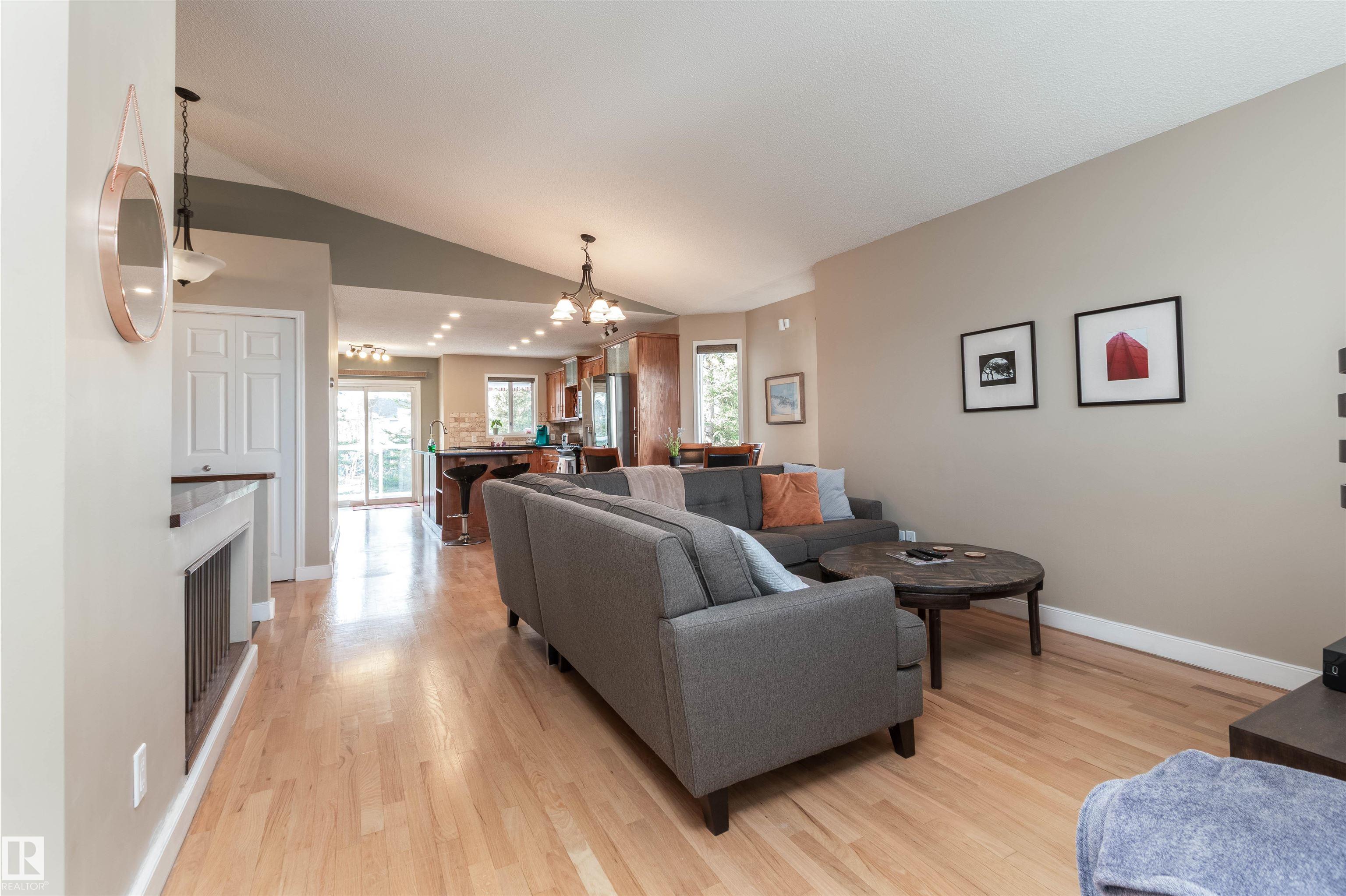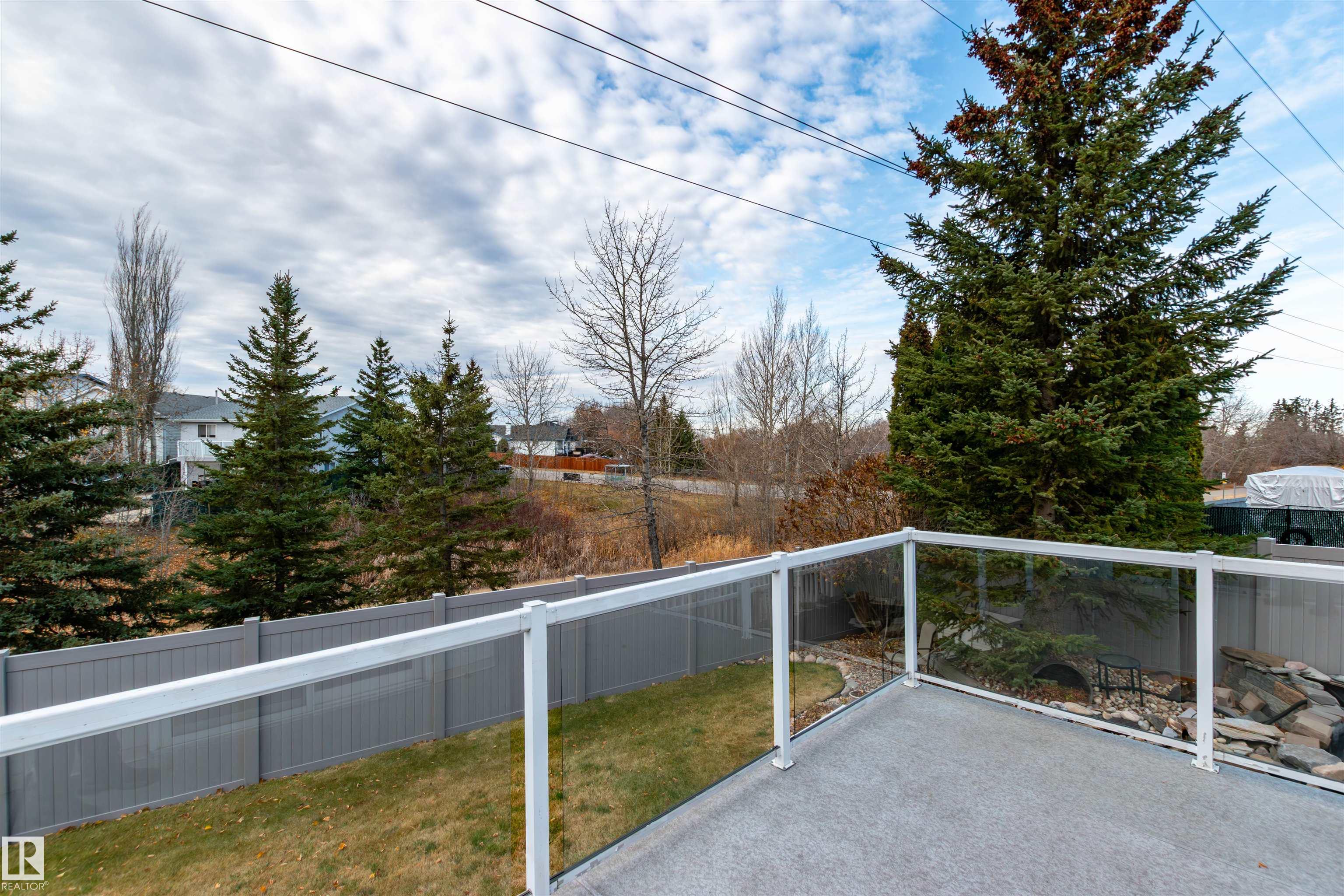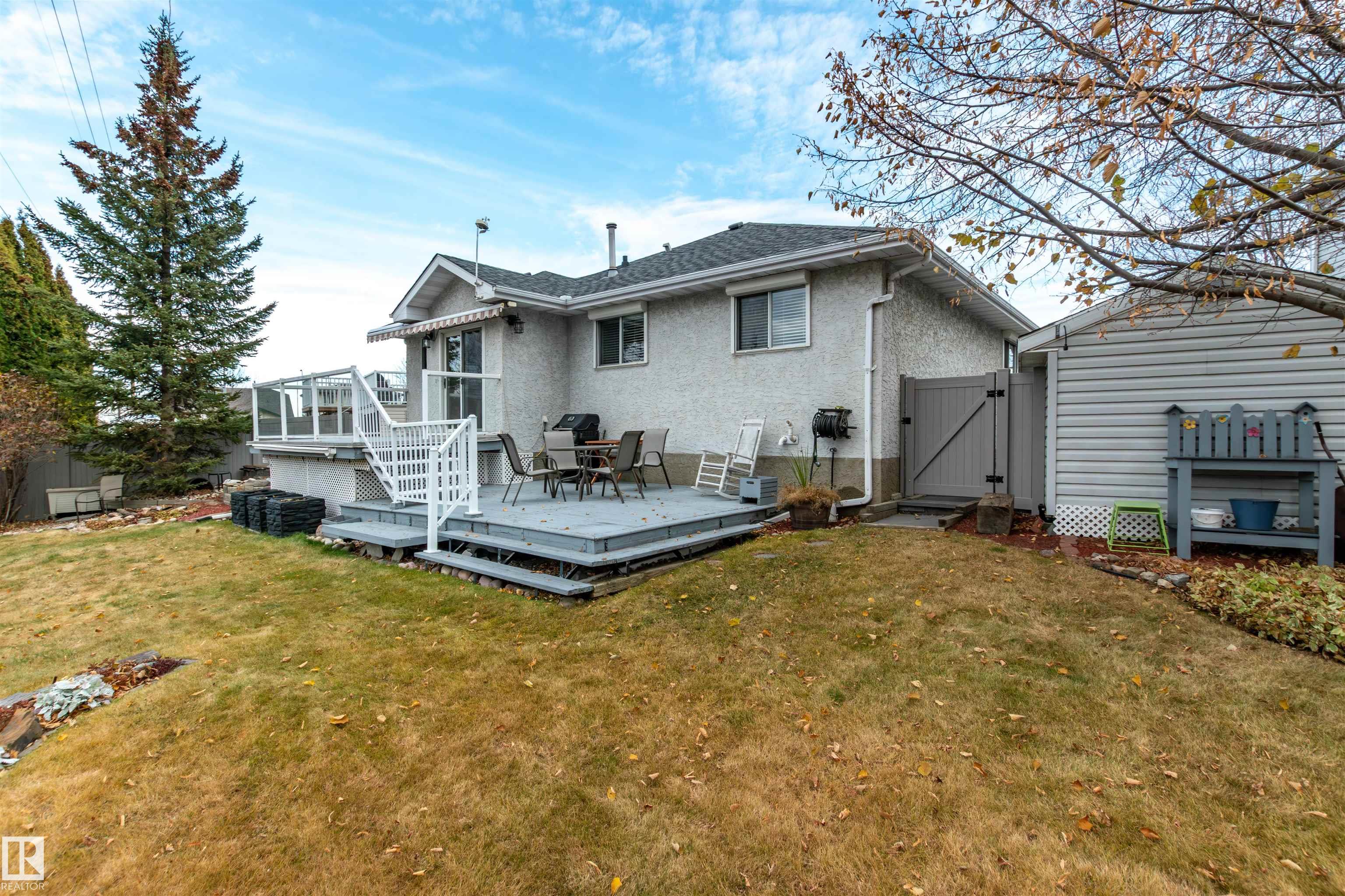 BEAUTIFUL BUNGALOW BACKING ONTO A GREEN SPACE WITH DIRECT ACCESS TO WALKING TRAILS! A rare opportunity in Sherwood Park! Situated on a huge PIE LOT in a treed back setting. Offering over 2000 square feet of total living space including a fully finished basement. Open and spacious front living room with adjacent dining area. Featuring a gorgeous kitchen with hardwood flooring, Granite countertops and stainless steel appliances. Direct access to the two-tiered deck and the beautiful SOUTHWEST FACING BACKYARD! There are 3 bedrooms on the main, laundry area, and a 4 piece bathroom. The Primary Bedroom has its own private 3 piece ensuite and walk-in closet. The basement offers a big family room with gas fireplace, flex space and a 3 piece bathroom. Newer shingles, central A/C, and a HEATED double attached garage. Great location close to schools, transit, parks and various restaurants and shopping. Won't last! Visit REALTORŪ website for more information.