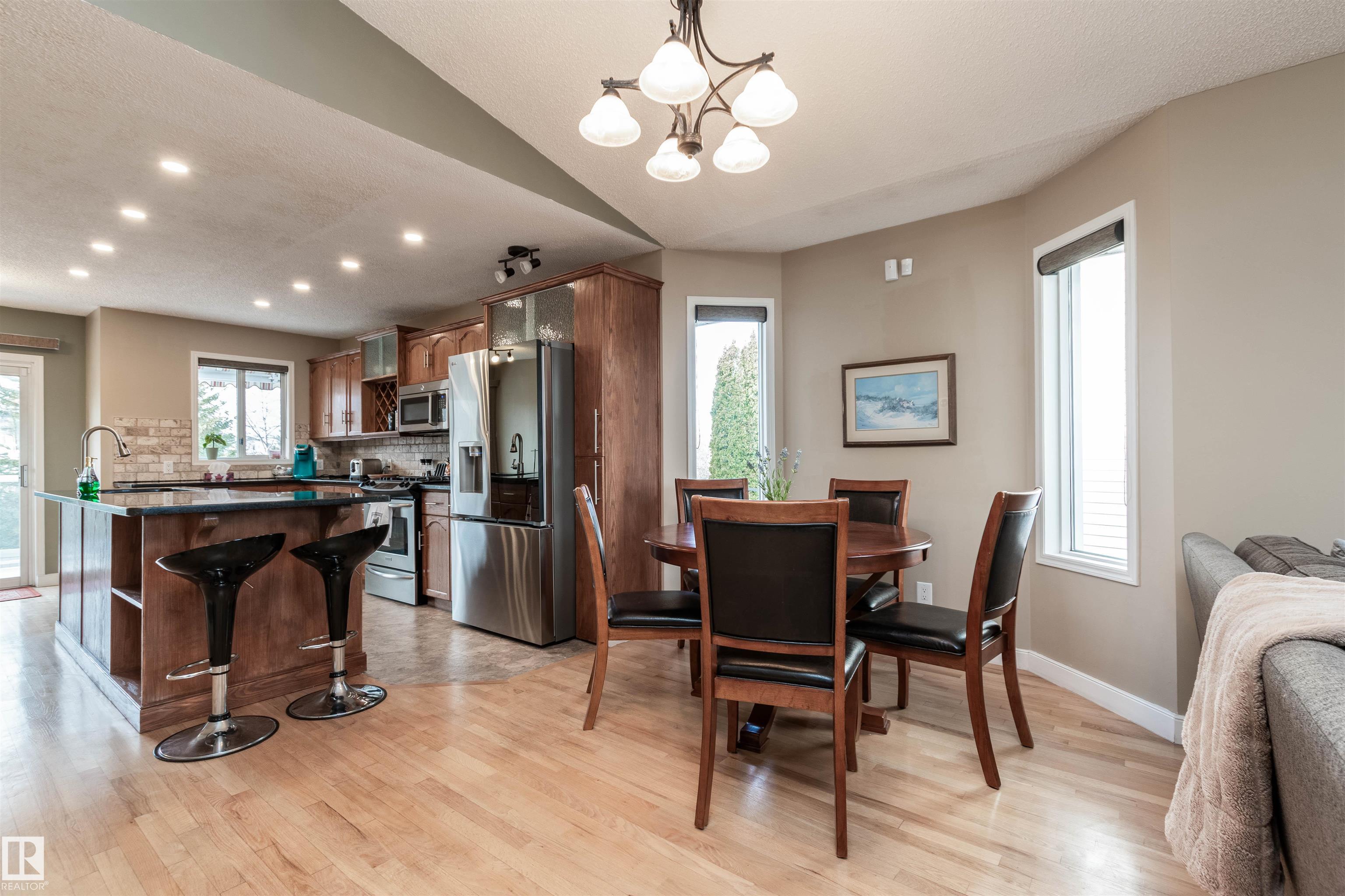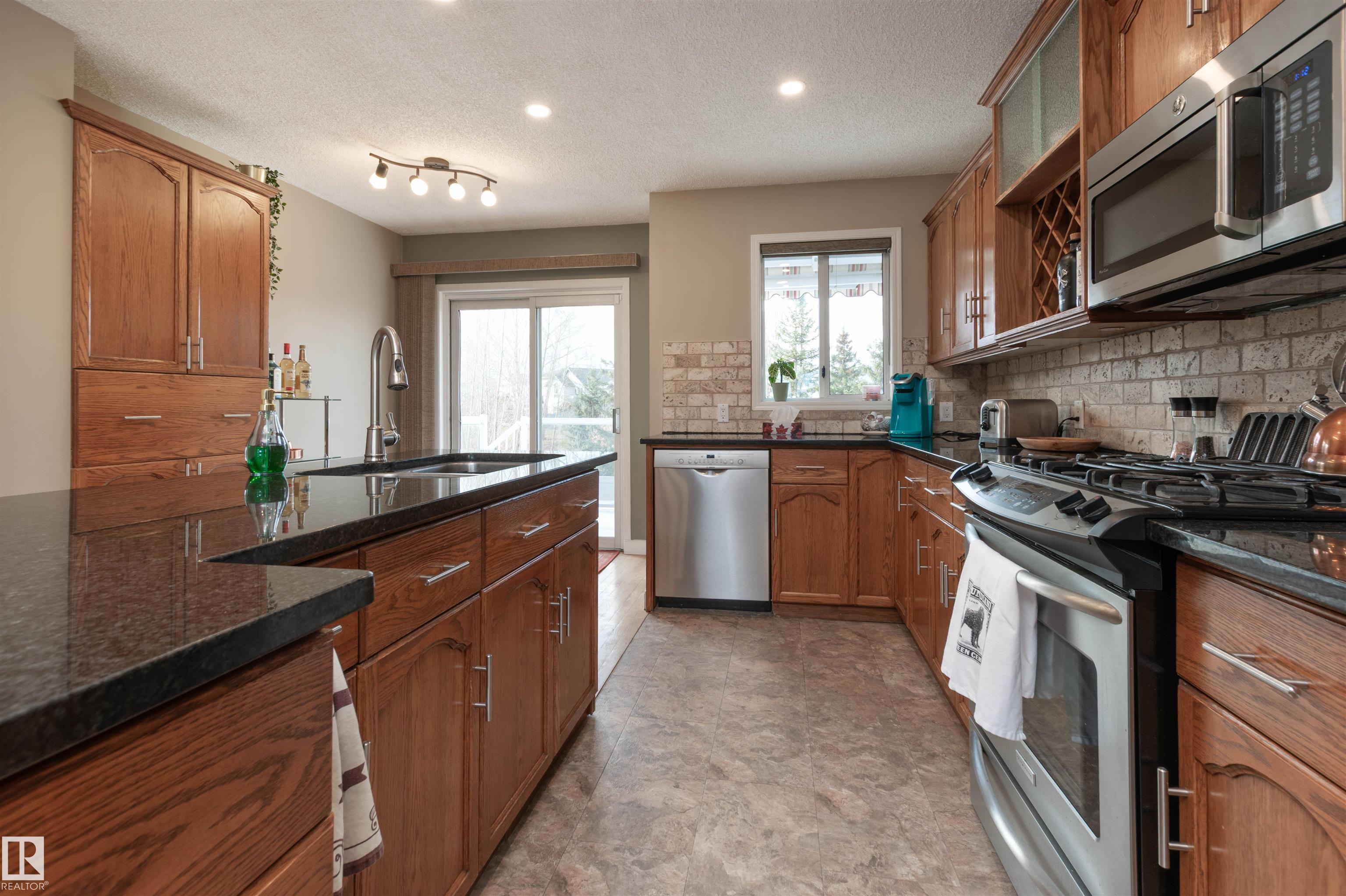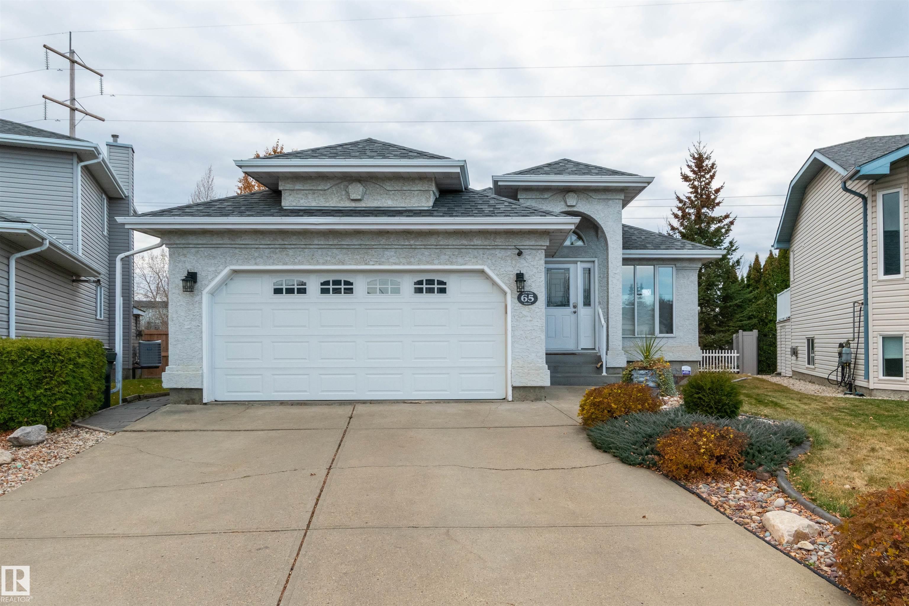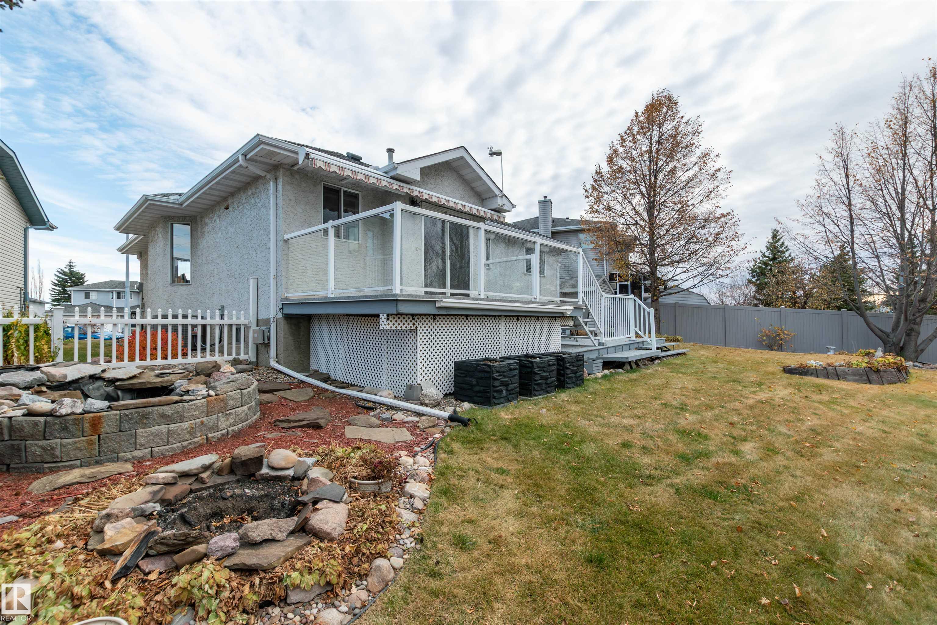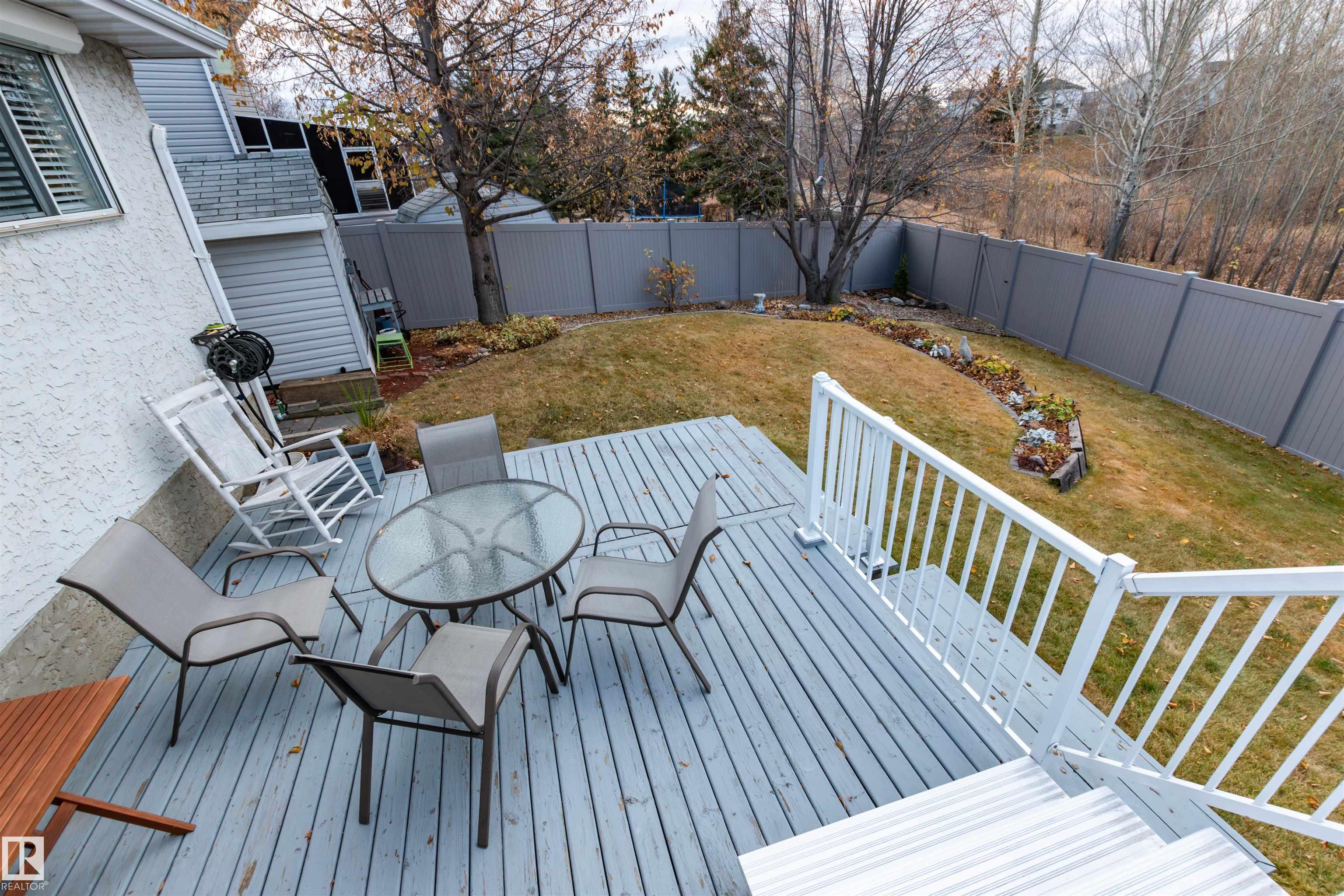 BEAUTIFUL BUNGALOW BACKING ONTO A GREEN SPACE WITH DIRECT ACCESS TO WALKING TRAILS! A rare opportunity in Sherwood Park! Situated on a huge PIE LOT in a treed back setting. Offering over 2000 square feet of total living space including a fully finished basement. Open and spacious front living room with adjacent dining area. Featuring a gorgeous kitchen with hardwood flooring, Granite countertops and stainless steel appliances. Direct access to the two-tiered deck and the beautiful SOUTHWEST FACING BACKYARD! There are 3 bedrooms on the main, laundry area, and a 4 piece bathroom. The Primary Bedroom has its own private 3 piece ensuite and walk-in closet. The basement offers a big family room with gas fireplace, flex space and a 3 piece bathroom. Newer shingles, central A/C, and a HEATED double attached garage. Great location close to schools, transit, parks and various restaurants and shopping. Won't last! Visit REALTORŪ website for more information.