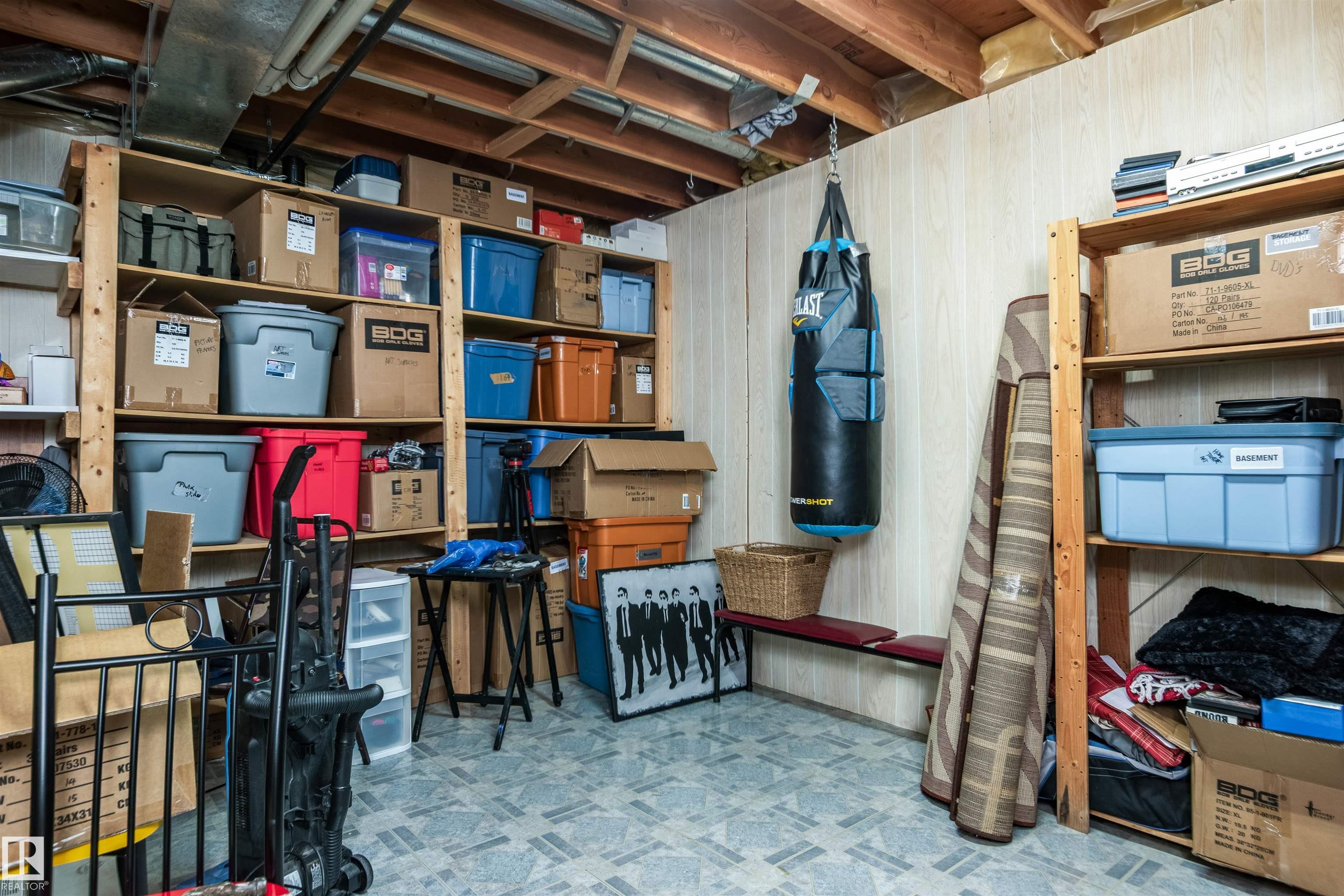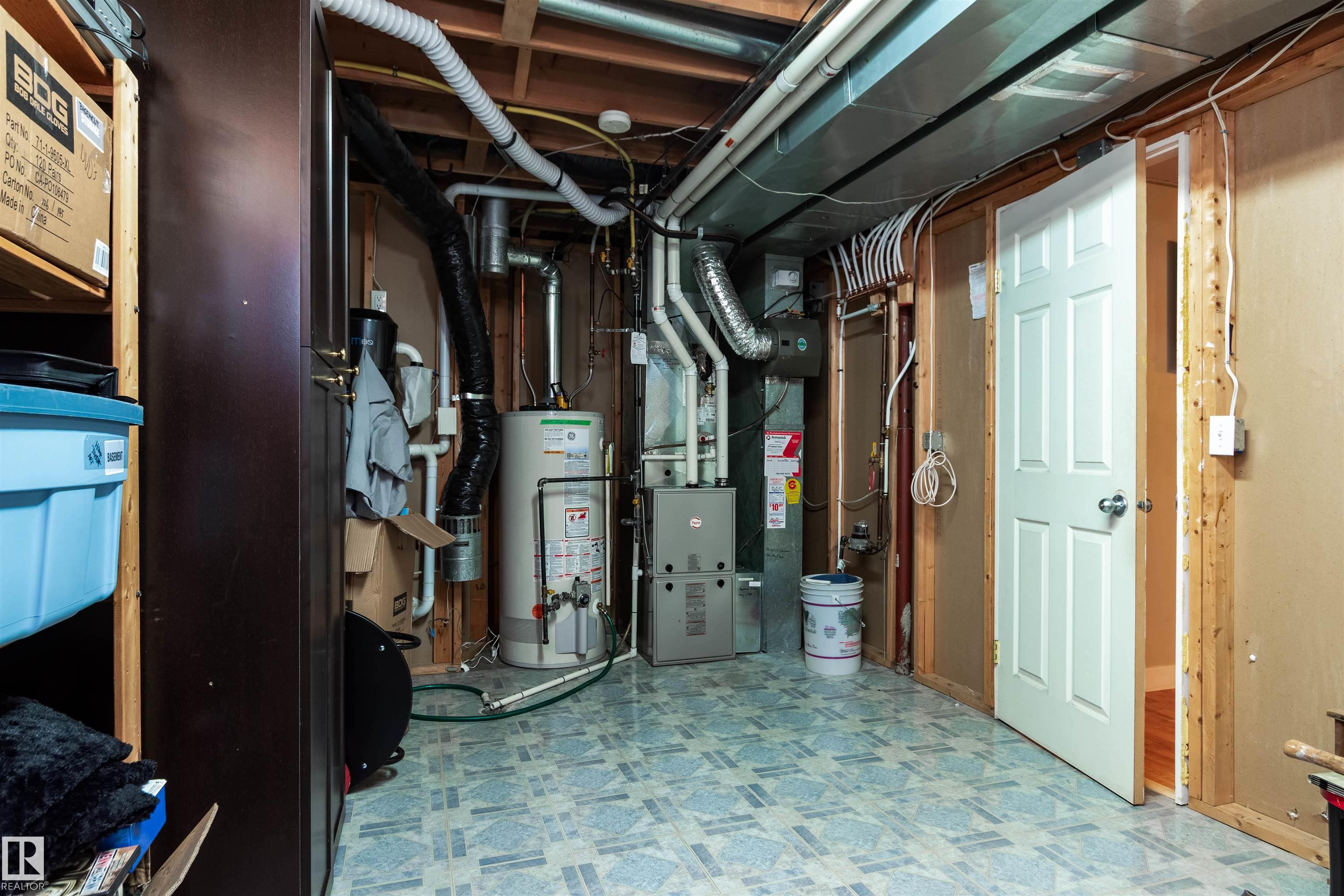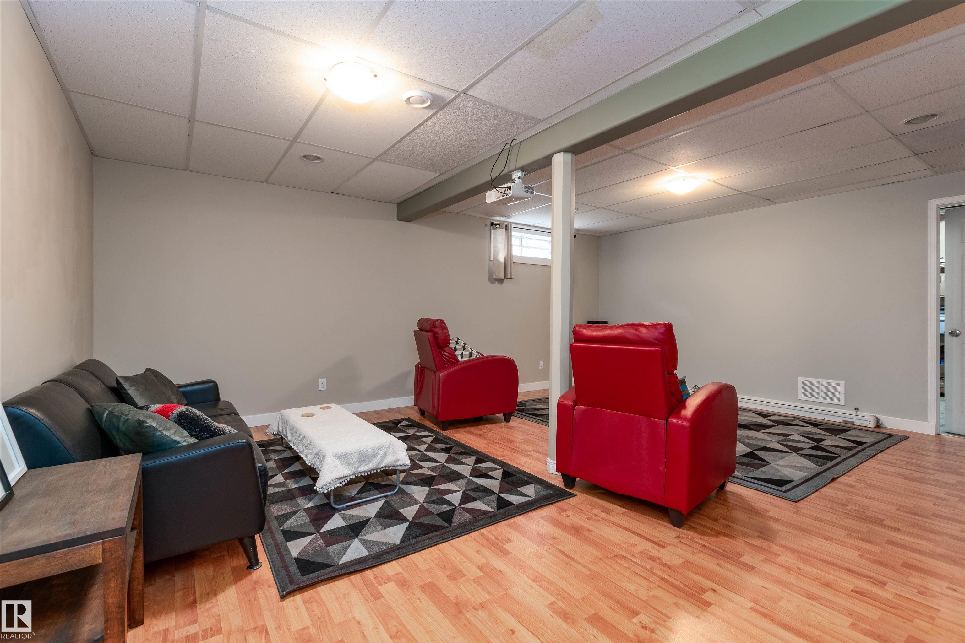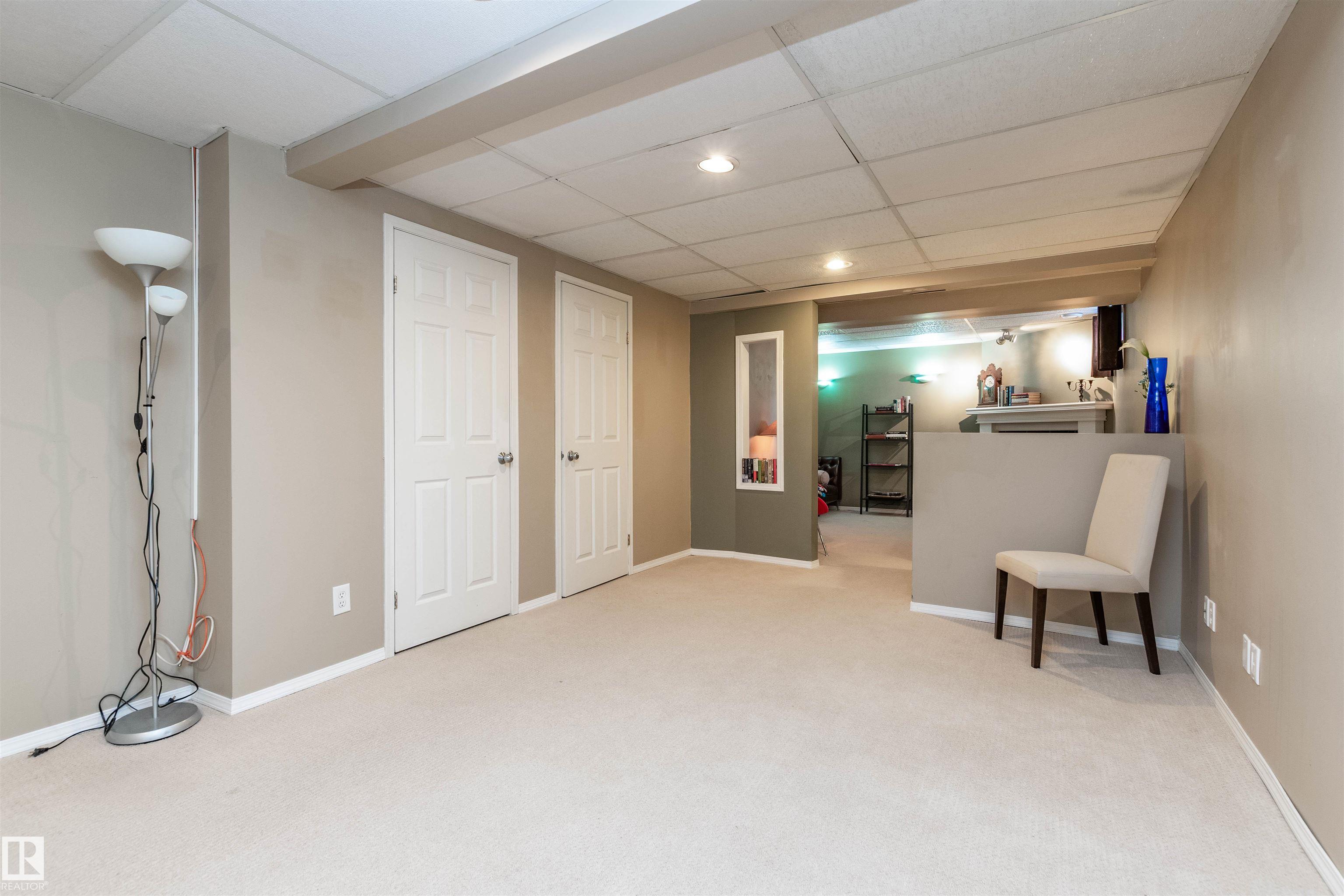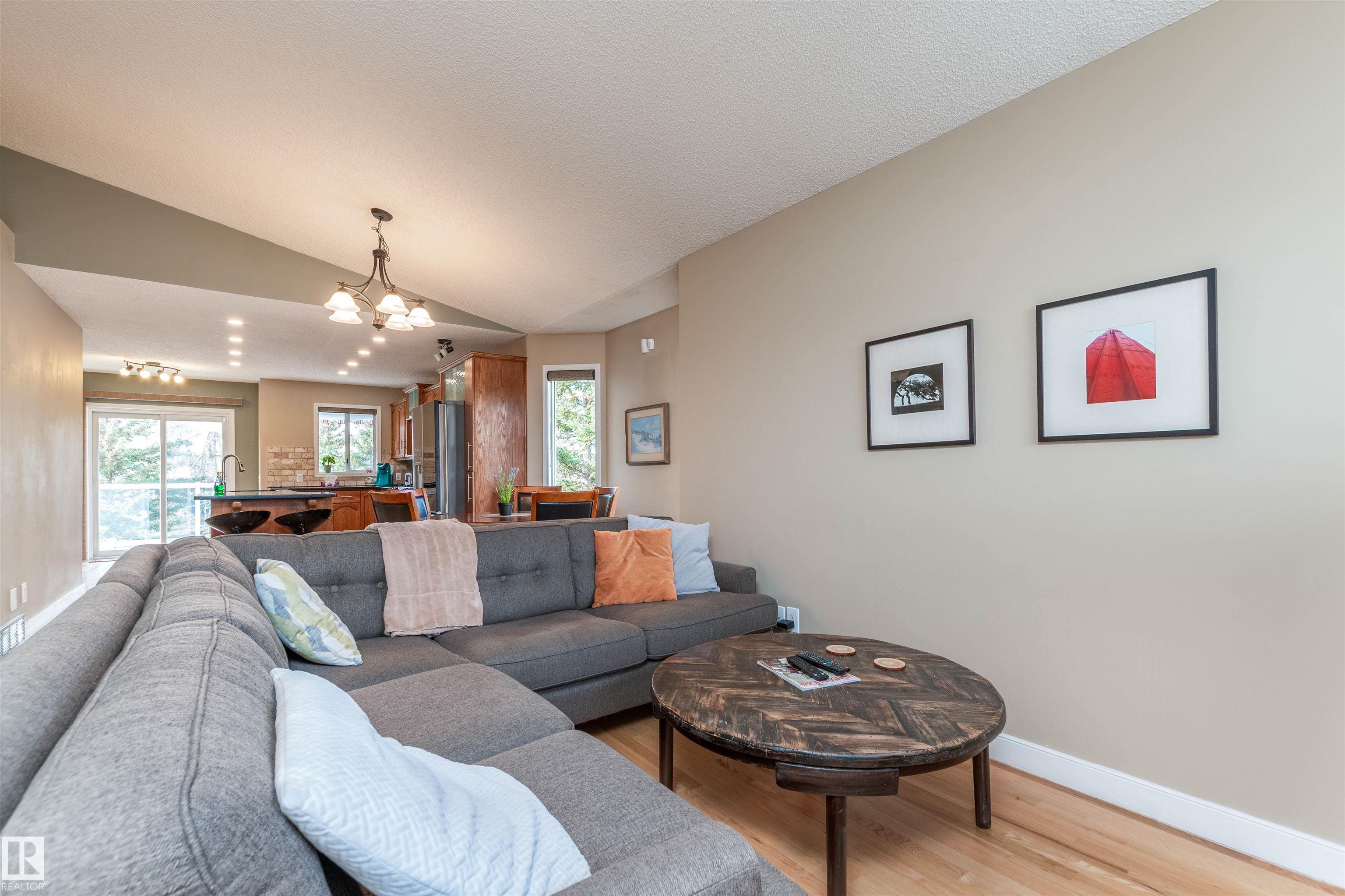 BEAUTIFUL BUNGALOW BACKING ONTO A GREEN SPACE WITH DIRECT ACCESS TO WALKING TRAILS! A rare opportunity in Sherwood Park! Situated on a huge PIE LOT in a treed back setting. Offering over 2000 square feet of total living space including a fully finished basement. Open and spacious front living room with adjacent dining area. Featuring a gorgeous kitchen with hardwood flooring, Granite countertops and stainless steel appliances. Direct access to the two-tiered deck and the beautiful SOUTHWEST FACING BACKYARD! There are 3 bedrooms on the main, laundry area, and a 4 piece bathroom. The Primary Bedroom has its own private 3 piece ensuite and walk-in closet. The basement offers a big family room with gas fireplace, flex space and a 3 piece bathroom. Newer shingles, central A/C, and a HEATED double attached garage. Great location close to schools, transit, parks and various restaurants and shopping. Won't last! Visit REALTORŪ website for more information.