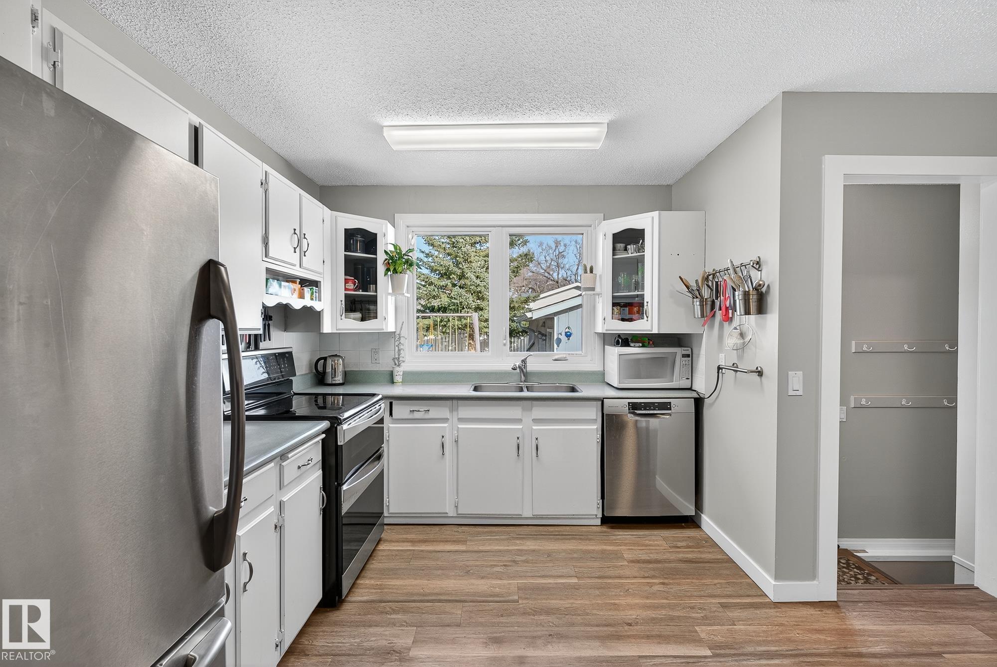 Welcome to one of the most sought after communities in Sherwood Park! This property is located conveniently CLOSE TO EVERYTHING! The library, schools, shopping, grocery store, restaurants, movie theatre, recreation centre, golf, park....all within 5 minutes! The large bright living room with adjacent dining room is a great place for family gatherings, or quiet time enjoying the sunshine through the HUGE SOUTH FACING window. A SPACIOUS KITCHEN with NEWER APPLIANCES and UPDATED FLOORING is ideal for entertaining, or keeping an eye on the children playing in the huge fully fenced backyard. The main level is completed with a 4 piece bathroom, 3 spacious bedrooms, with the primary having a ensuite bathroom. The completely finished lower level includes an additional bedroom, cold storage room, a 3 piece bathroom, and a HUGE family room/recreation area! UPGRADES to this property include NEWER WINDOWS, SHINGLES, FLOORING, and a new GAS LINE to GARAGE. Welcome home to a great property in a FANTASTIC LOCATION !