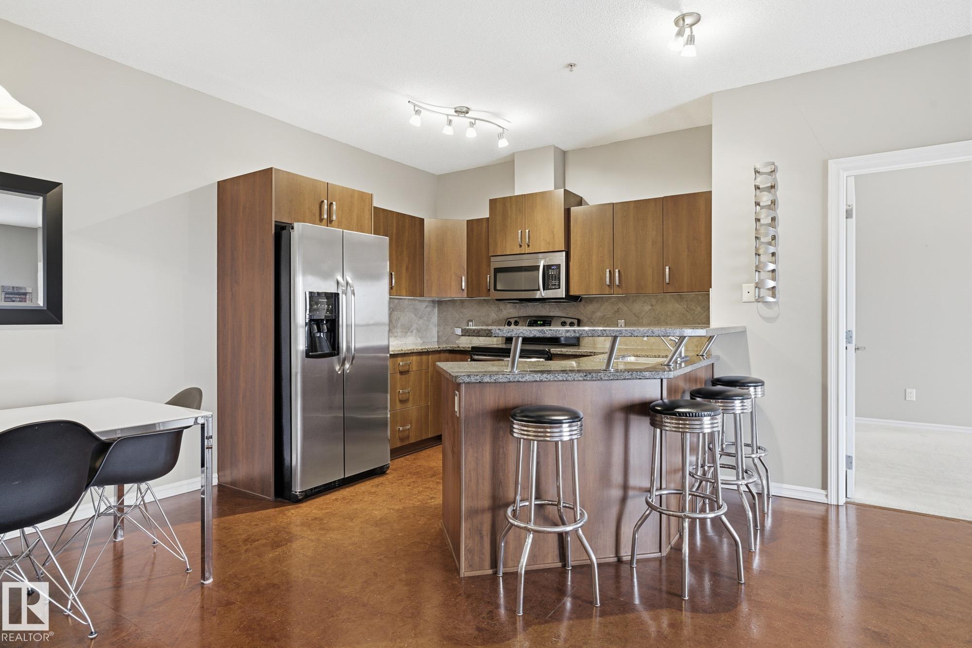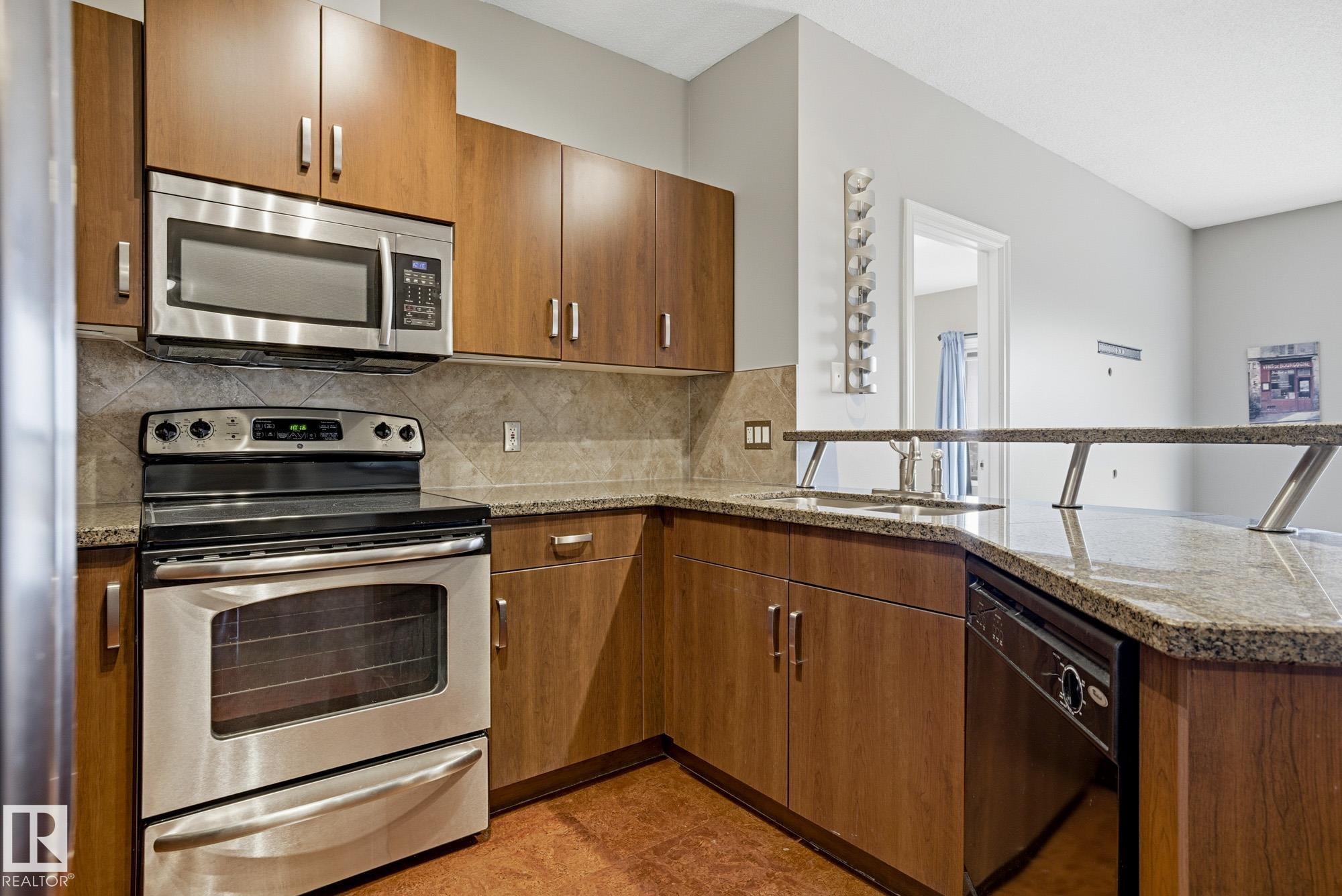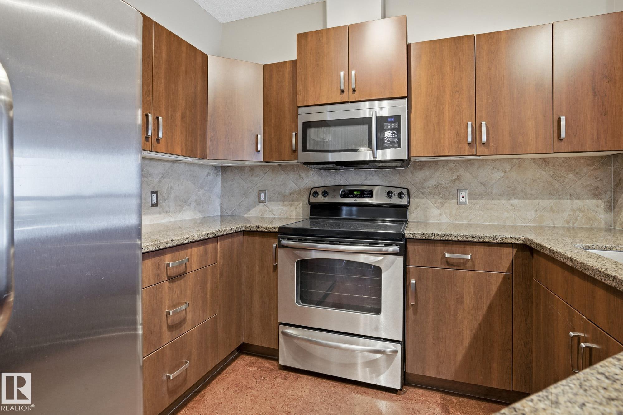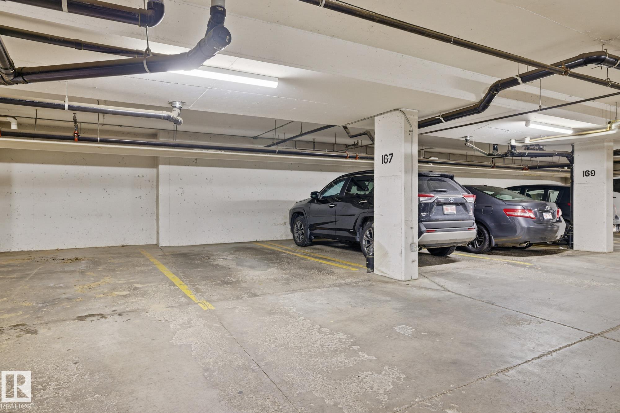TOP-FLOOR, move-in ready, with ALL UTILITIES included in your condo fees! This bright, spacious, and updated condominium is perfectly positioned with unobstructed views of expansive green space. With two-bedrooms, two-bathrooms, underground titled parking, and well thought out common areas... this home has everything to offer you! The immaculate kitchen features rich espresso cabinetry, granite countertops, sleek stainless steel appliances, and an open layout (ideal for entertaining!). Featuring cork flooring in the main living space and soft carpet in the bedrooms, the home flows comfortably through every room. The primary bedroom is a fantastic size complete with a custom walk-in closet and three-pc ensuite updated with marble flooring & countertops. Over by the second bedroom you've got another full bathroom featuring the same beautiful marble flooring & countertops plus another room that's large in size. Close to shopping, public transport, schools and the Henday, this home is perfect for you!