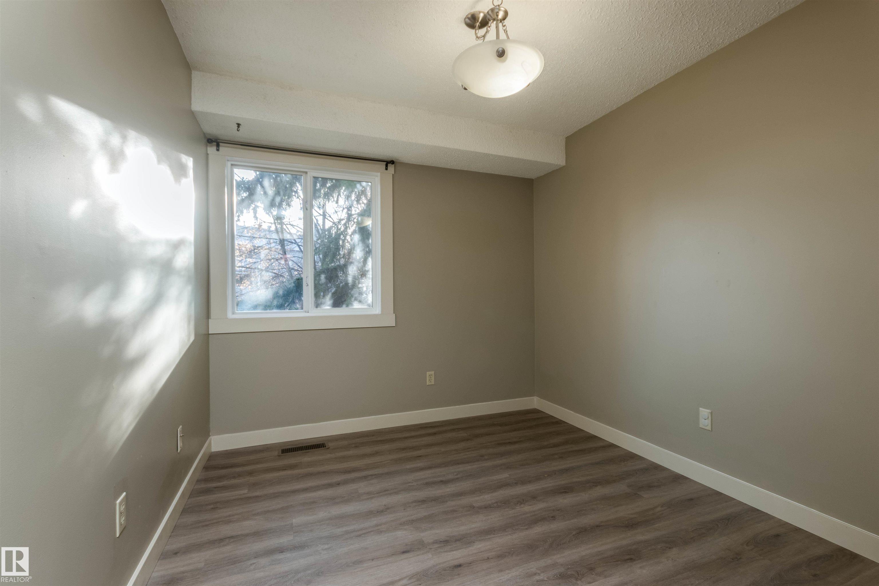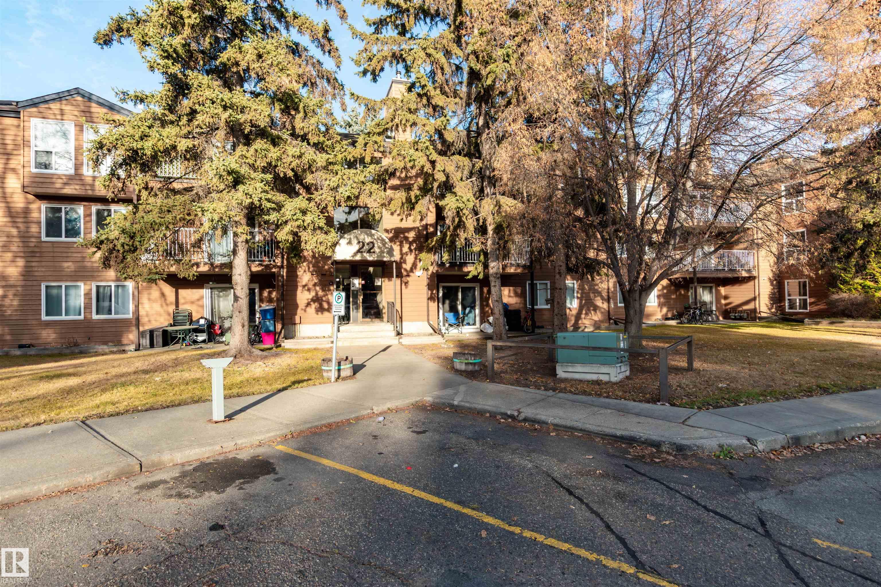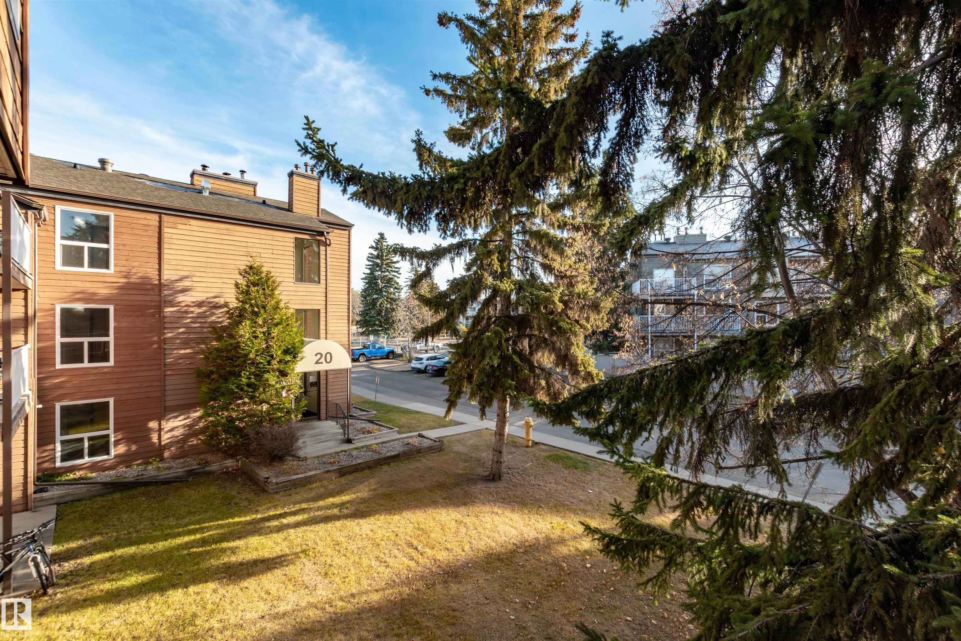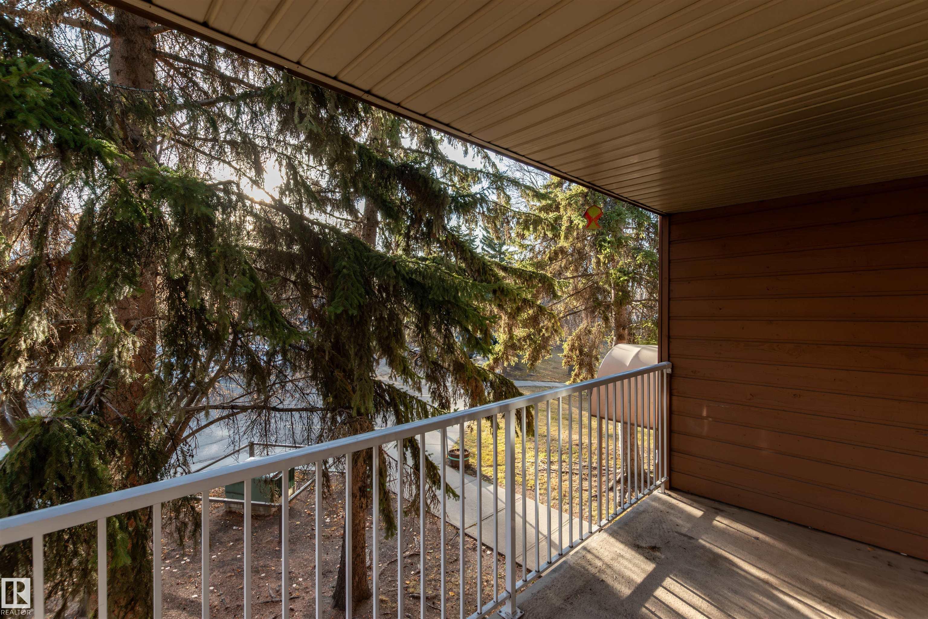 This upgraded 2-bedroom, single-level condo in Akinsdale offers comfort, privacy, and great value. Enjoy upgraded flooring, fresh paint, and a spacious living area with a charming wood-burning brick-faced fireplace, perfect for cozy winter nights. The kitchen features solid-wood cabinets and plenty of storage. The primary bedroom includes a large closet with access to the 4-piece bathroom with tiled shower, while the second bedroom sits conveniently nearby. Natural light fills the unit through large windows, and the generous balcony offers peaceful tree coverage for added privacy. Ample storage throughout, including a dedicated storage room and parking stall. Move-in ready and ideally located near parks, trails, and amenities.
