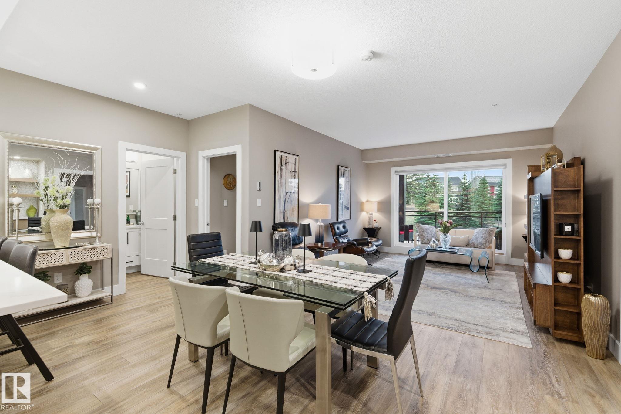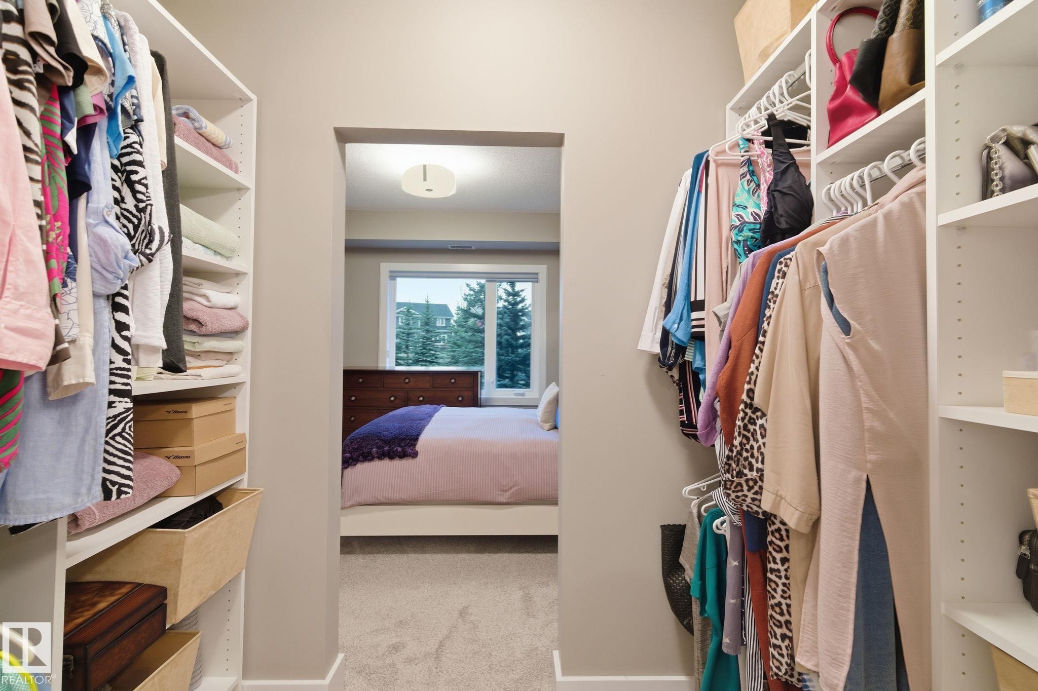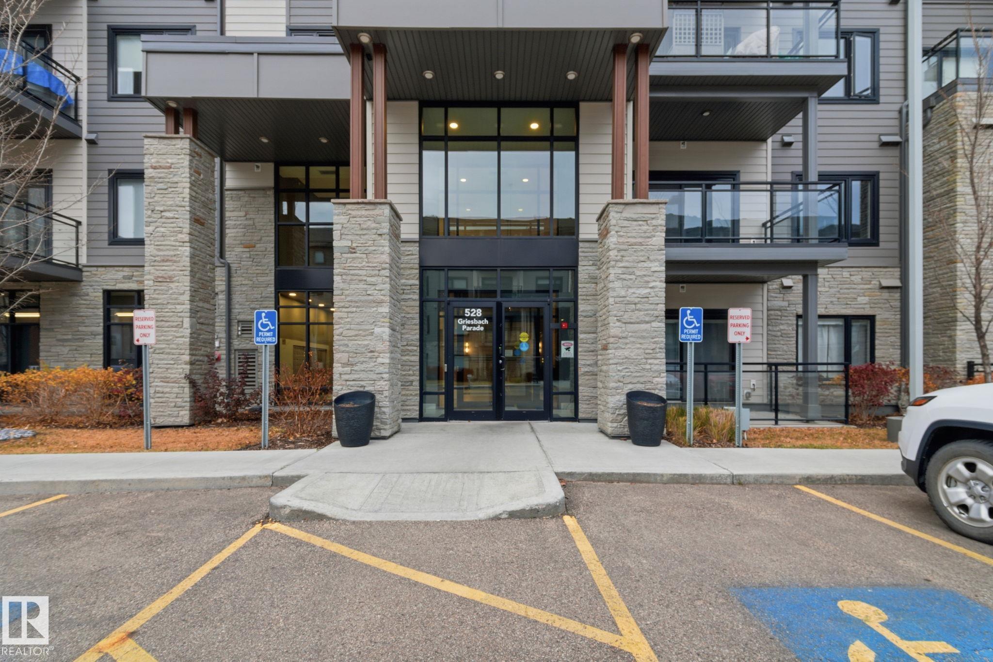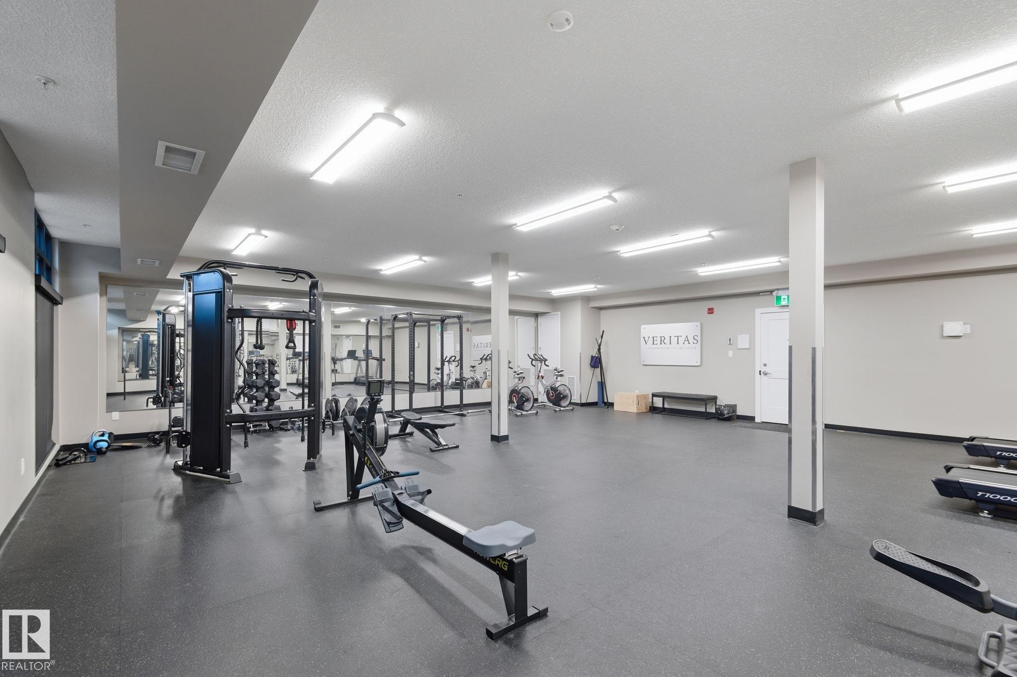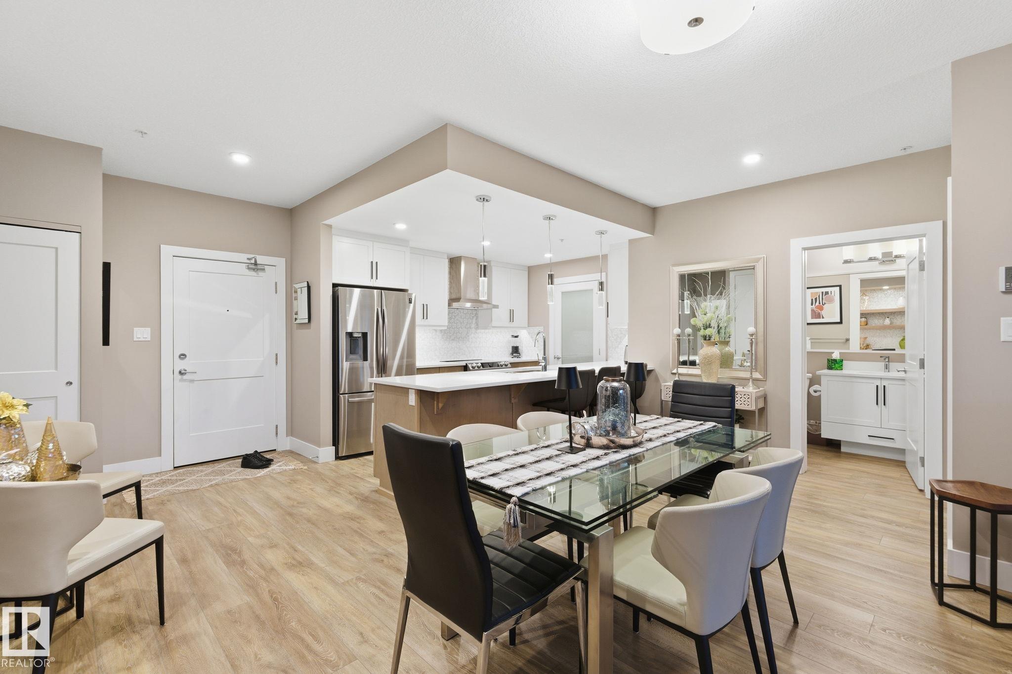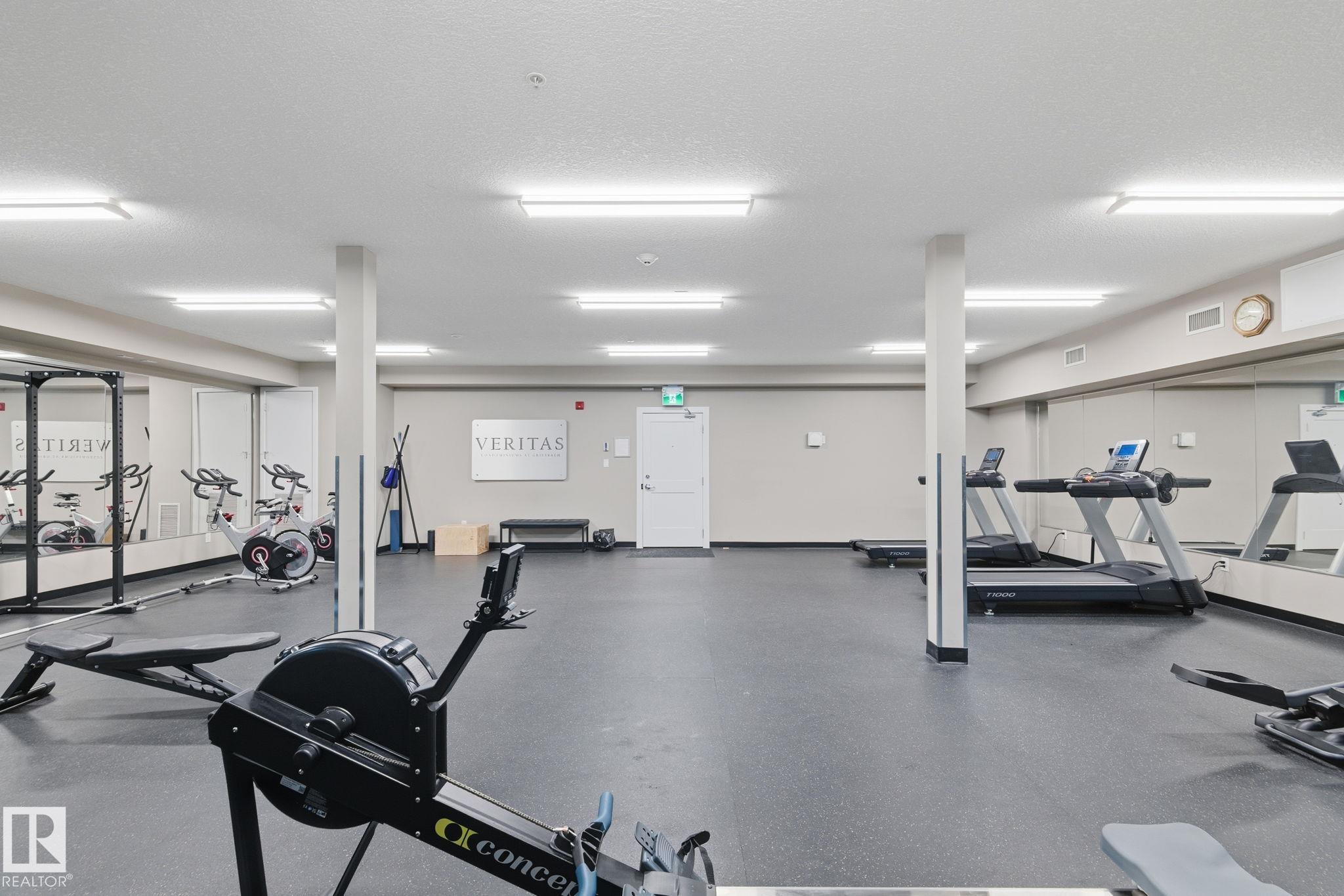 Experience refined luxury living at Veritas, the premier condominium residence in the community of Griesbach. This exquisite former show suite blends elegance and comfort, showcasing over $25,000 in designer upgrades with captivating park and lake views. Thoughtfully designed, this main-floor retreat features gourmet-inspired quartz countertops, a custom laundry room with counter and built-in cabinetry, a pantry, and a stylish bar area with wine fridge. Sophisticated finishes, open-concept living, and serene surroundings create an atmosphere of quiet indulgence. Enjoy the convenience of two titled parking stalls and access to Veritas? exceptional amenities, including a state-of-the-art fitness centre, beautiful social lounge complete with billiard table, and a spacious guest suite for overnight guests. This unit is perfect for discerning professionals or empty nesters seeking a lifestyle of elegance, comfort, and effortless sophistication in one of Edmonton?s most sought-after residences.