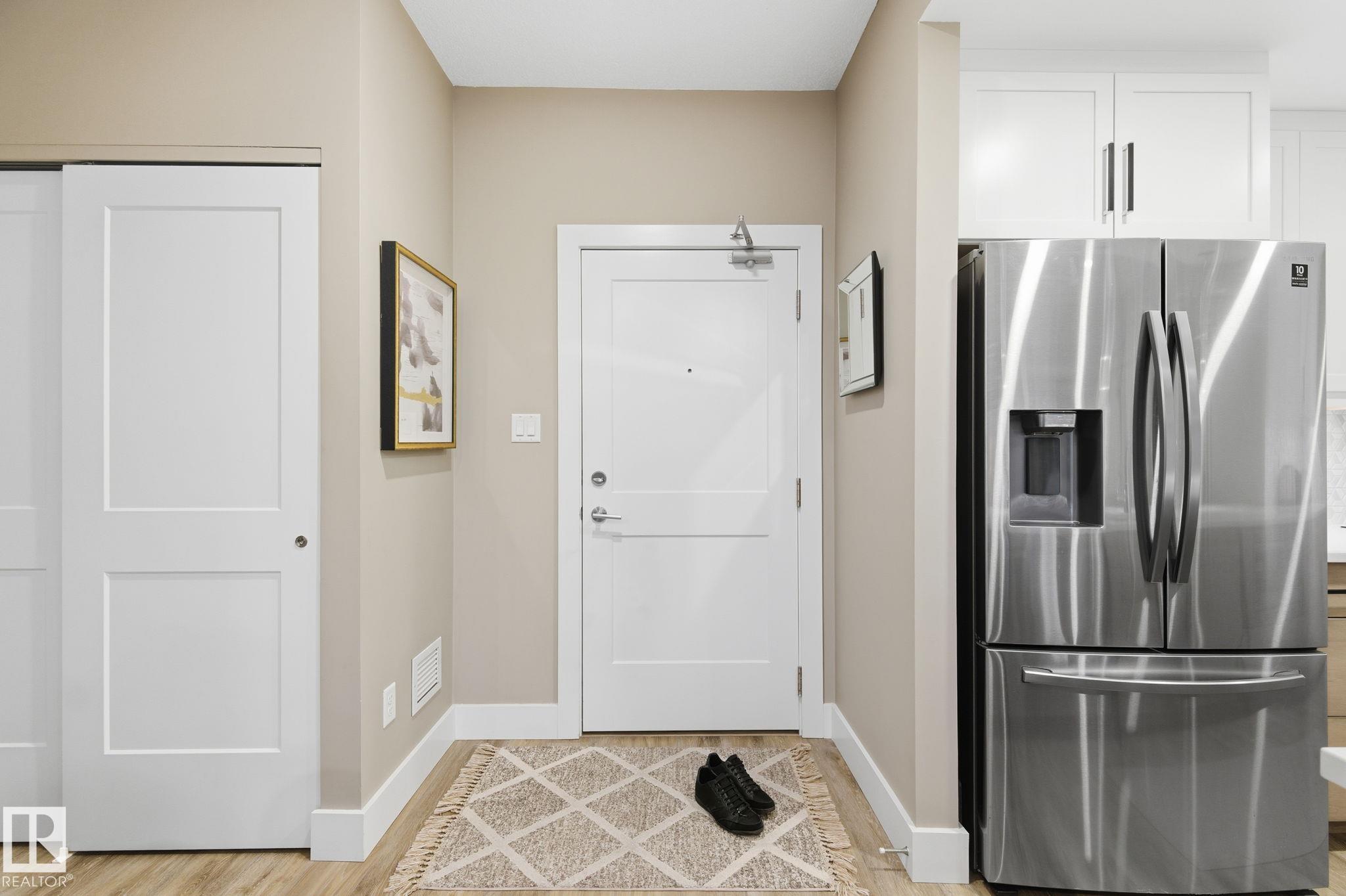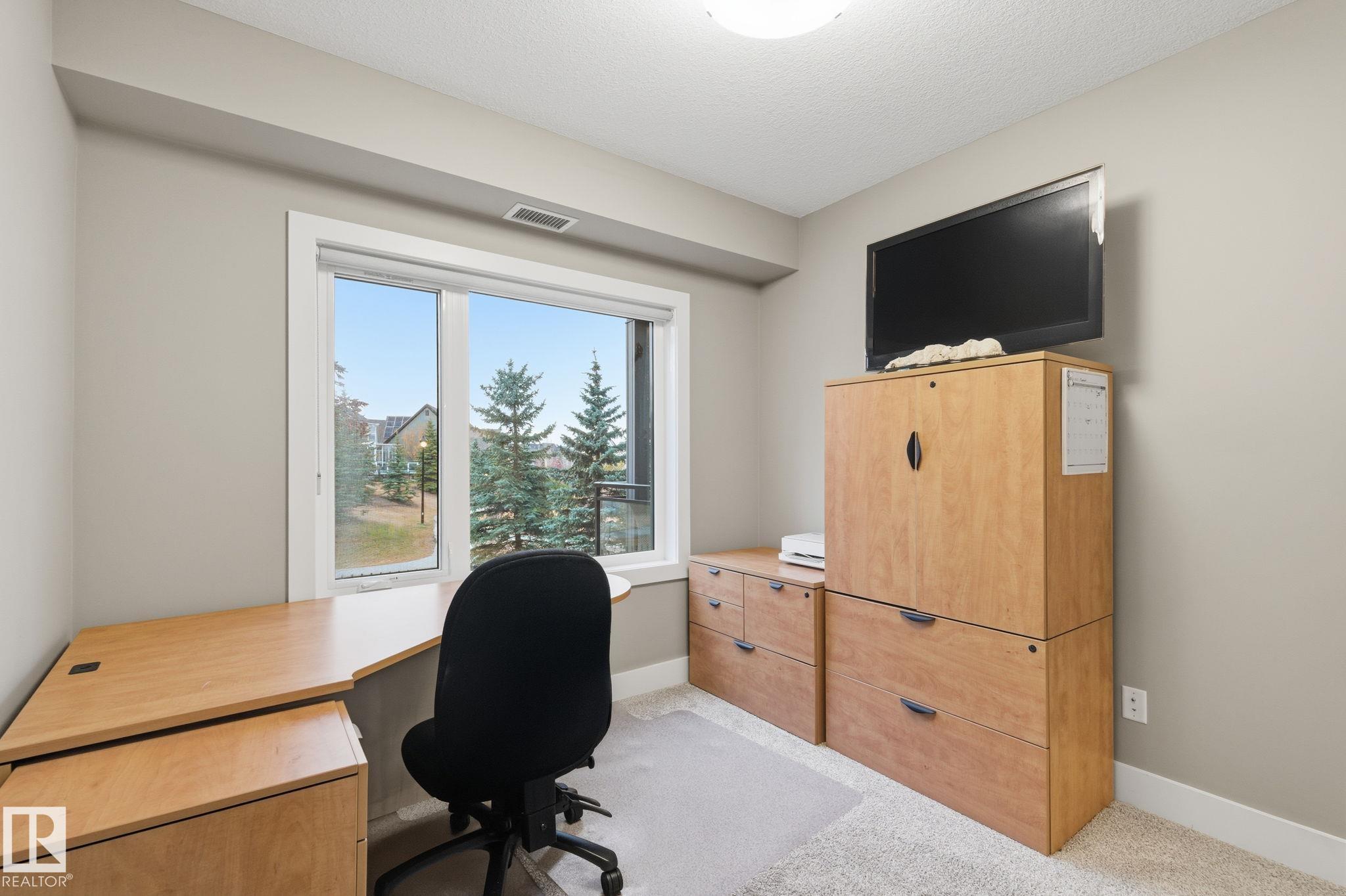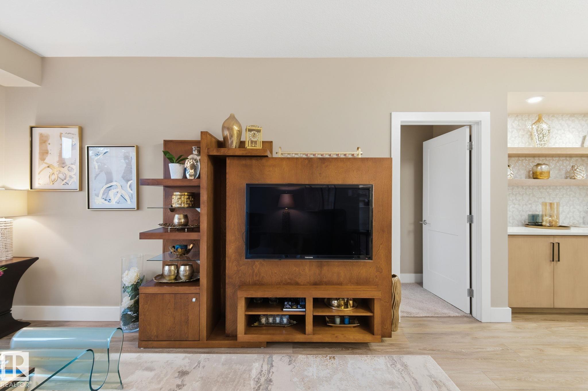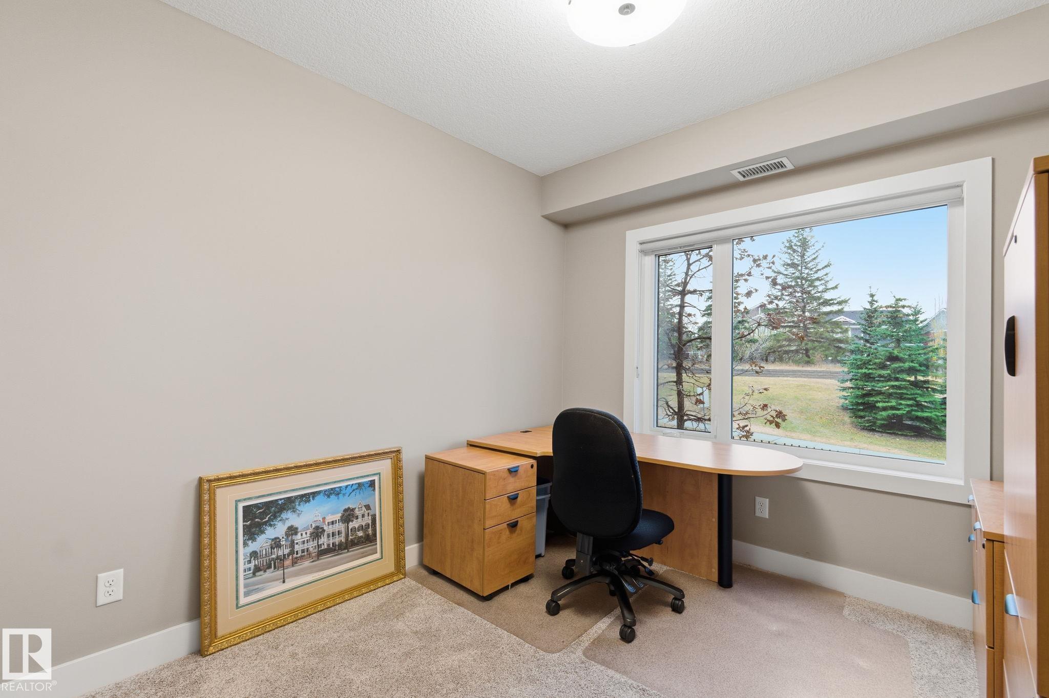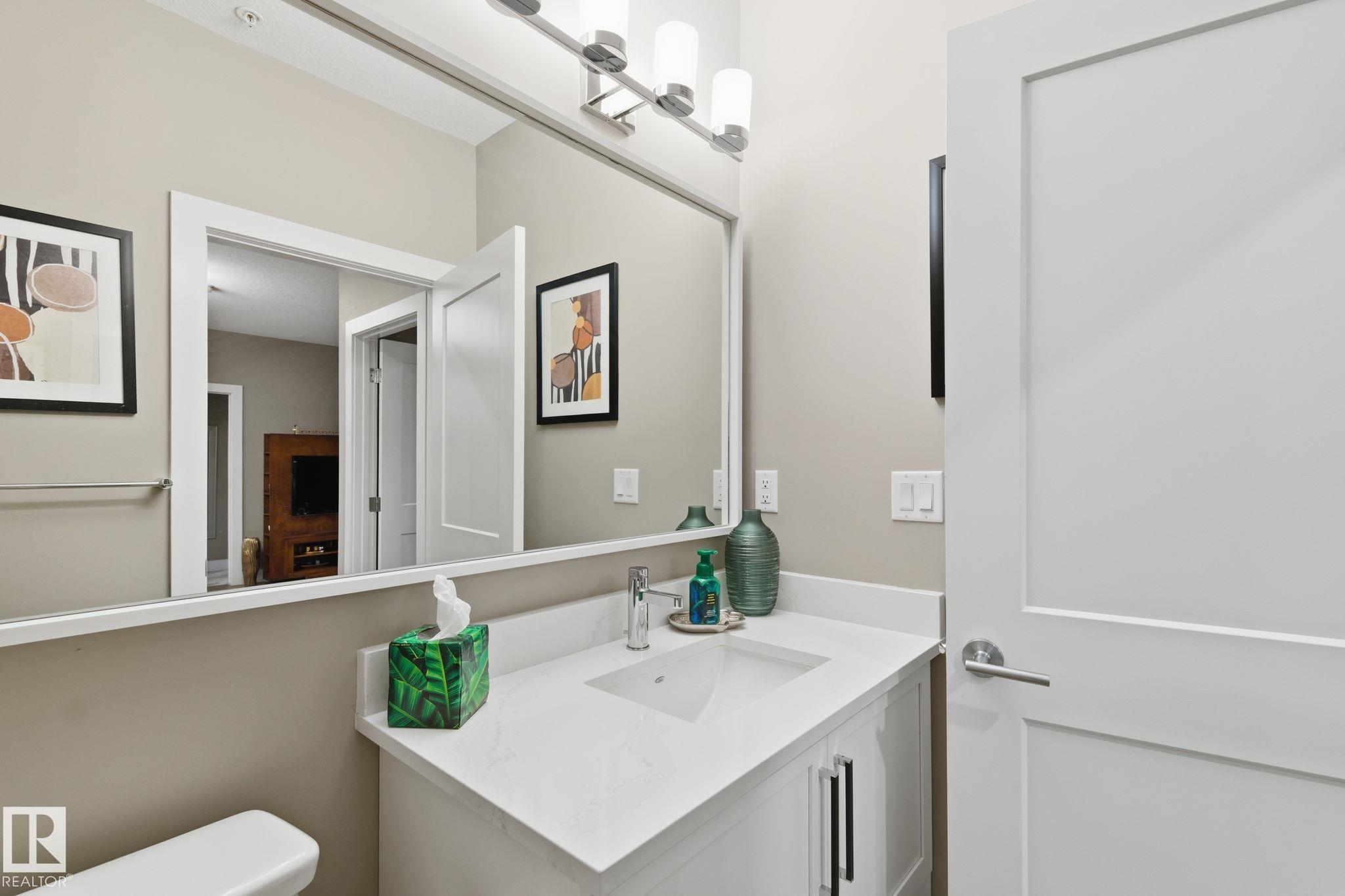 Experience refined luxury living at Veritas, the premier condominium residence in the community of Griesbach. This exquisite former show suite blends elegance and comfort, showcasing over $25,000 in designer upgrades with captivating park and lake views. Thoughtfully designed, this main-floor retreat features gourmet-inspired quartz countertops, a custom laundry room with counter and built-in cabinetry, a pantry, and a stylish bar area with wine fridge. Sophisticated finishes, open-concept living, and serene surroundings create an atmosphere of quiet indulgence. Enjoy the convenience of two titled parking stalls and access to Veritas? exceptional amenities, including a state-of-the-art fitness centre, beautiful social lounge complete with billiard table, and a spacious guest suite for overnight guests. This unit is perfect for discerning professionals or empty nesters seeking a lifestyle of elegance, comfort, and effortless sophistication in one of Edmonton?s most sought-after residences.
