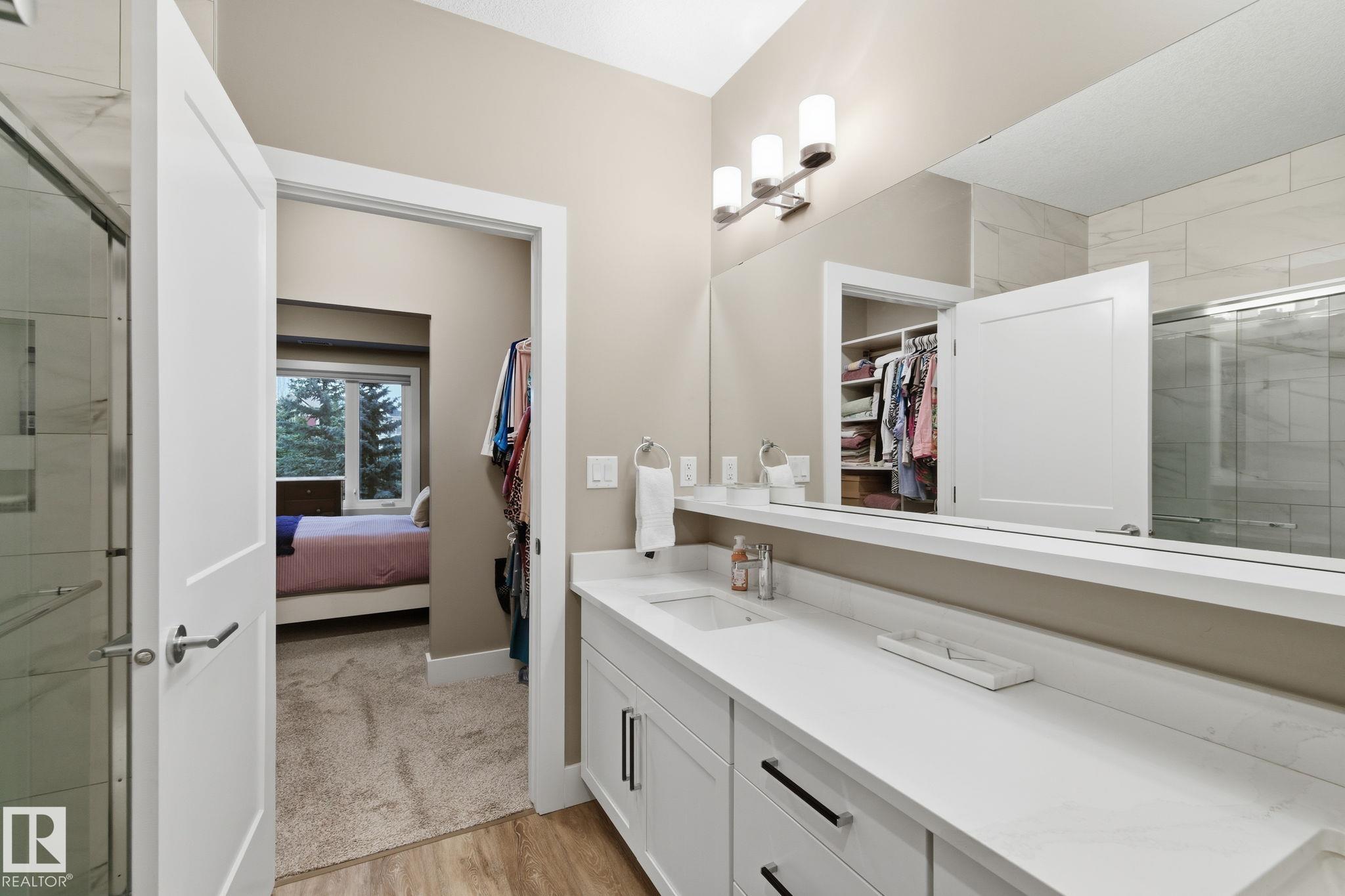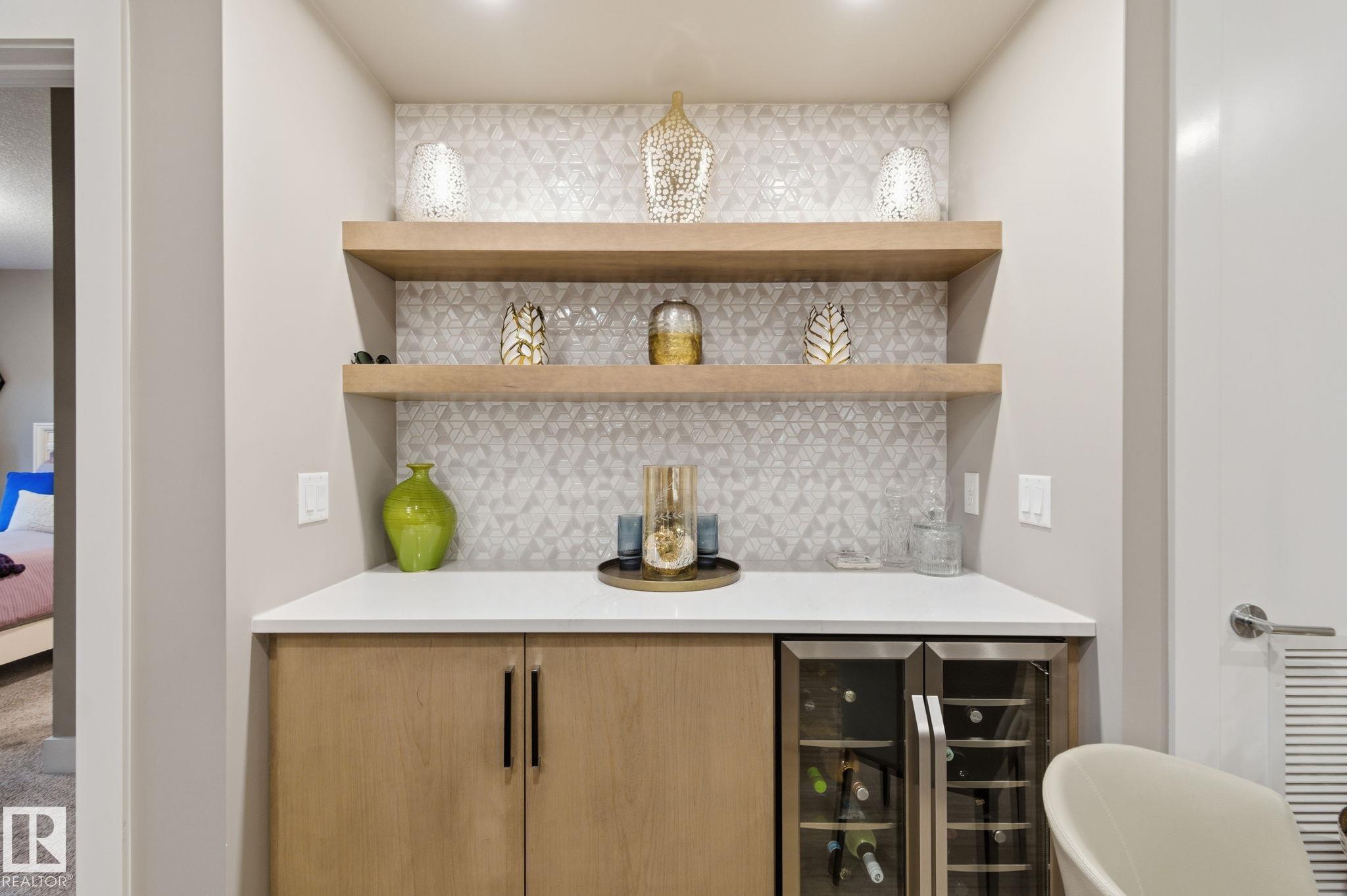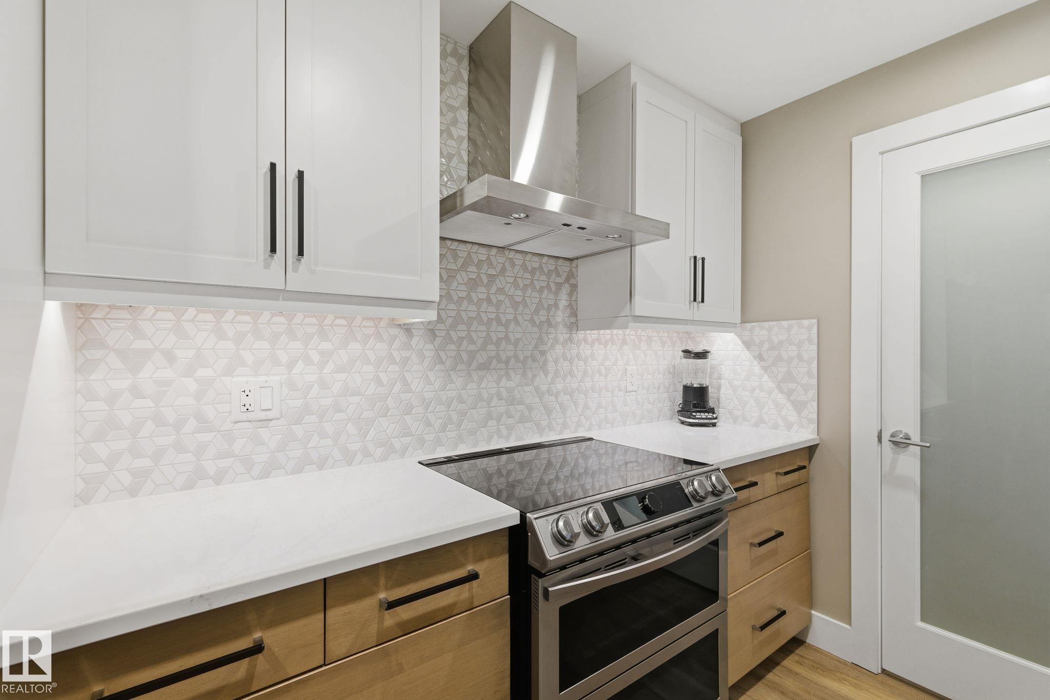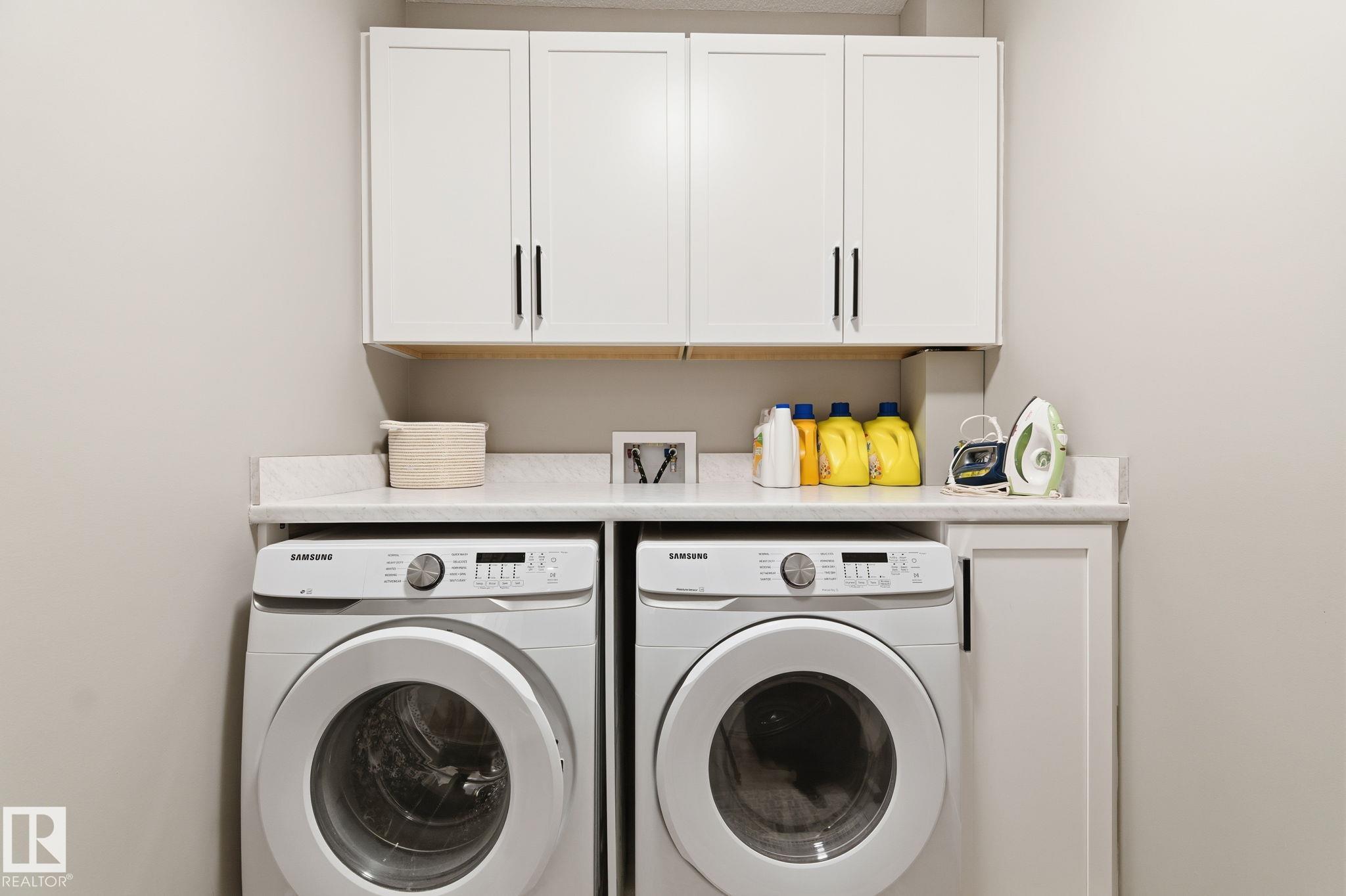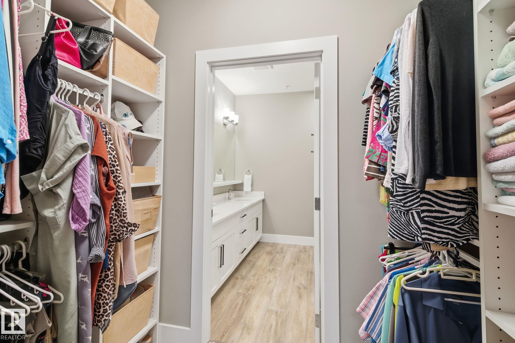 Experience refined luxury living at Veritas, the premier condominium residence in the community of Griesbach. This exquisite former show suite blends elegance and comfort, showcasing over $25,000 in designer upgrades with captivating park and lake views. Thoughtfully designed, this main-floor retreat features gourmet-inspired quartz countertops, a custom laundry room with counter and built-in cabinetry, a pantry, and a stylish bar area with wine fridge. Sophisticated finishes, open-concept living, and serene surroundings create an atmosphere of quiet indulgence. Enjoy the convenience of two titled parking stalls and access to Veritas? exceptional amenities, including a state-of-the-art fitness centre, beautiful social lounge complete with billiard table, and a spacious guest suite for overnight guests. This unit is perfect for discerning professionals or empty nesters seeking a lifestyle of elegance, comfort, and effortless sophistication in one of Edmonton?s most sought-after residences.