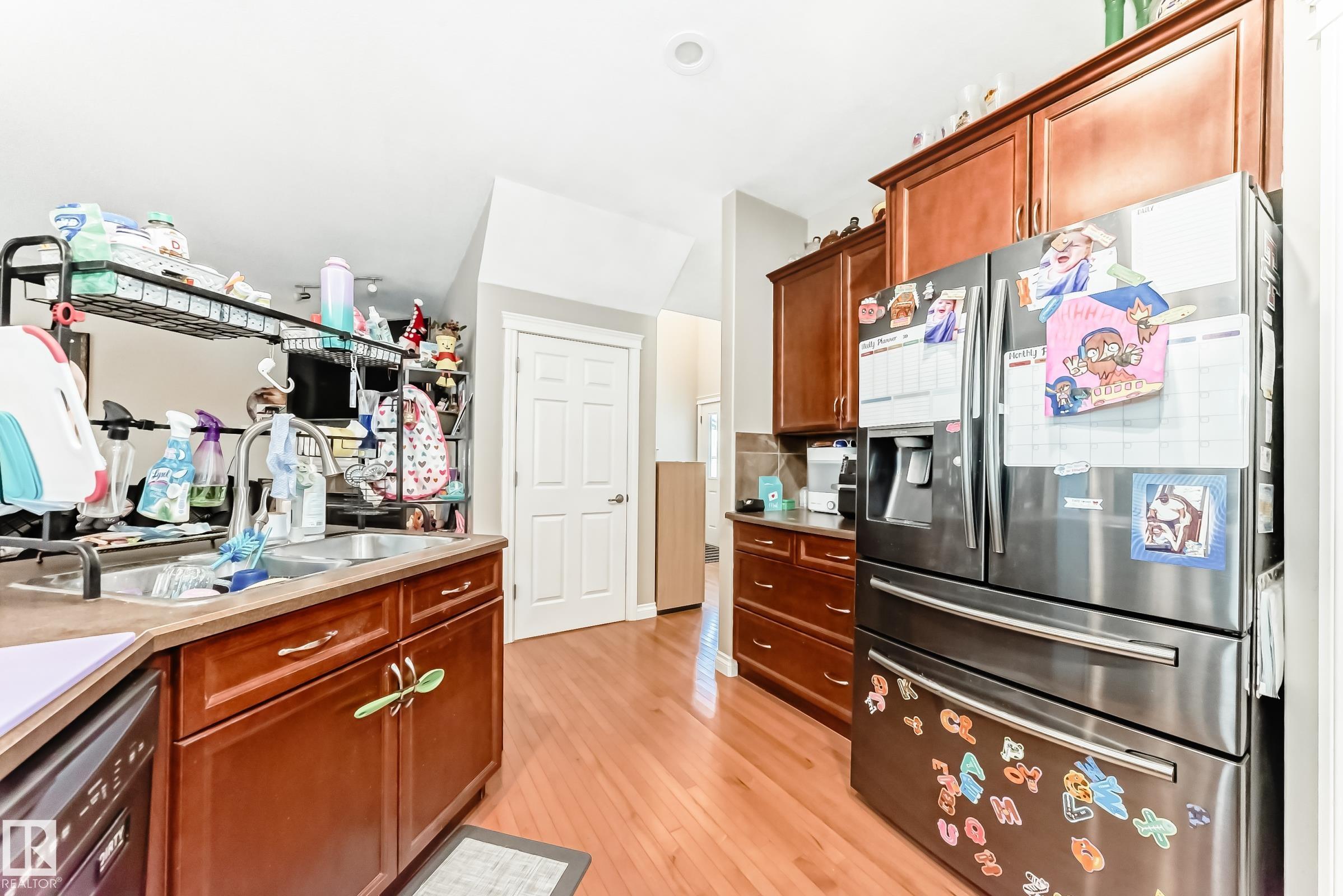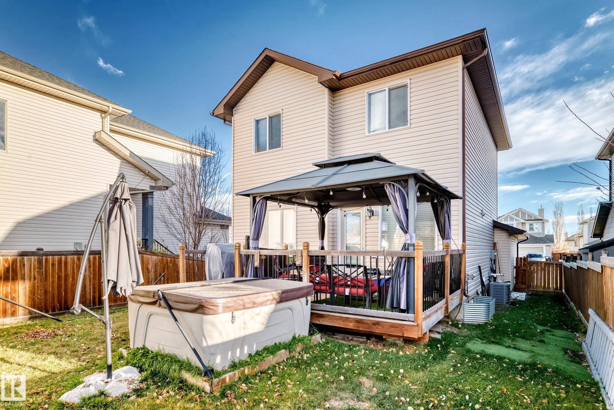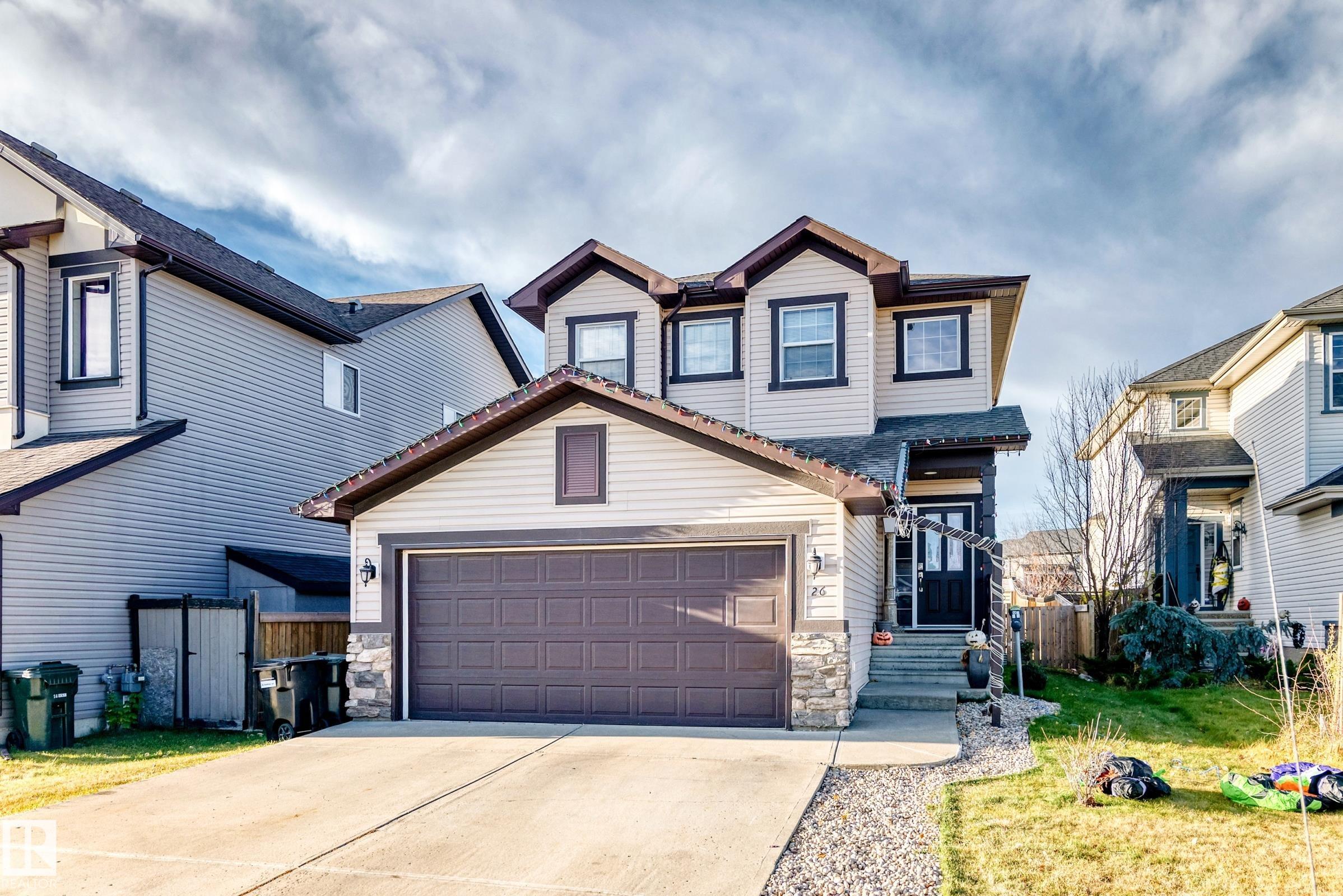 Best Location backing Green Space, Beautiful Condition !!! This perfect 2-storey is in move in condition and boasts double attached garage, newer fully developed bsmt, 3 and a half washrooms, located in very desirable Harvest Ridge. This property features a bright and open floor plan with plenty of natural light from a west back yard. The main floor has 9 foot high ceilings, hardwood floors, upgraded california knockdown ceilings, a cozy gas fireplace perfect for relaxing or entertaining in style and modern elegance. The kitchen provides good cabinet and counter space, flowing seamlessly into the dining area w easy access to large deck, large backyard. Upstairs you?ll find three bedrooms, including a primary suite w walk-in closet and ensuite. The fully finished basement adds more living space with a large recreation room. More upgrades newer HWT, 30 year shingles ! Located close to schools, parks, trails, all amenities, this home is perfect for anyone seeking comfort & convenience in a great community.