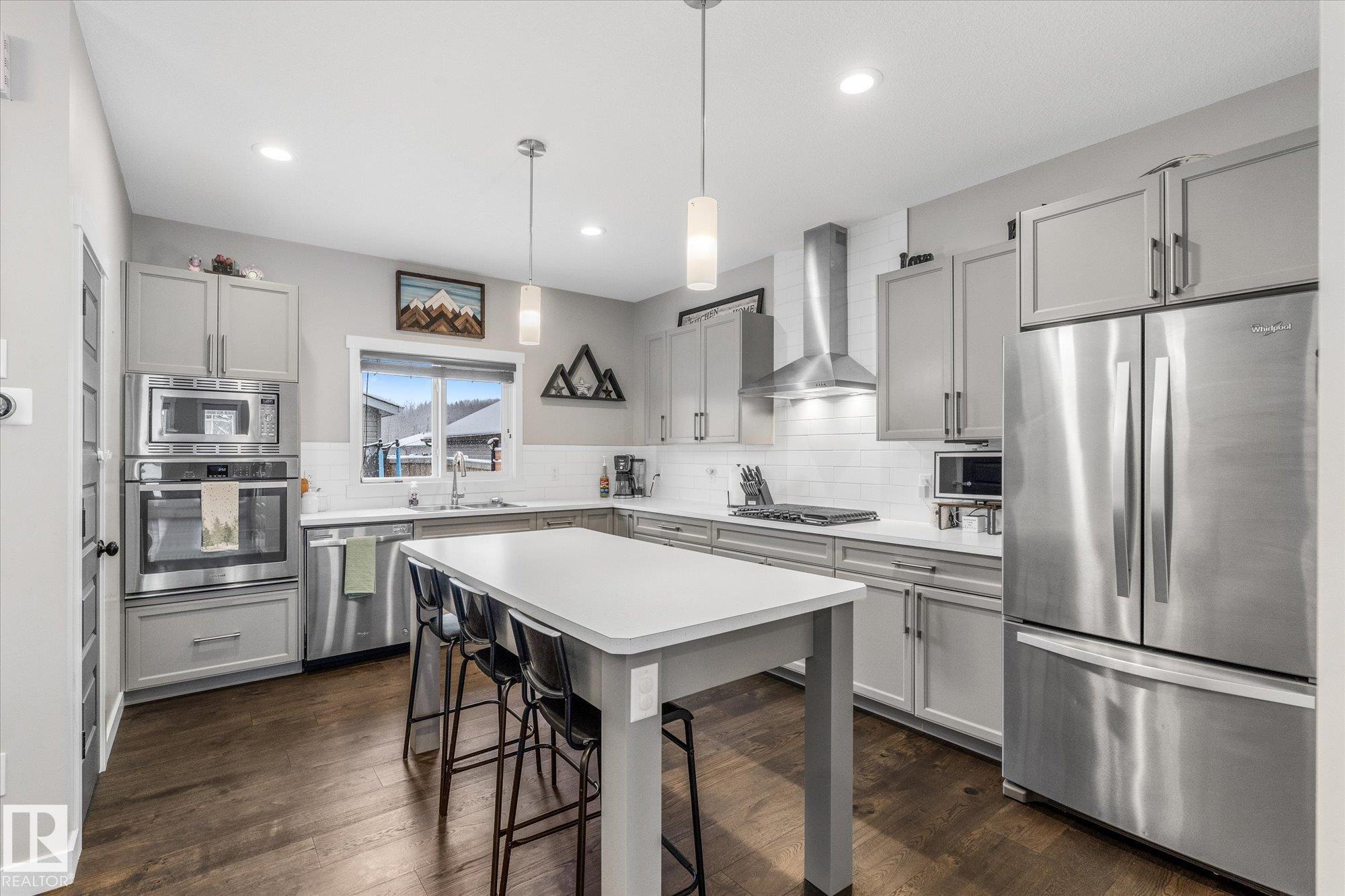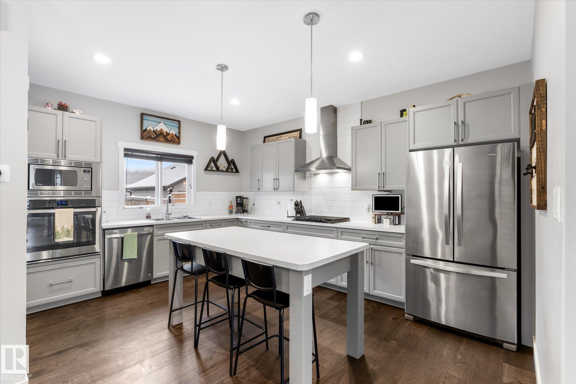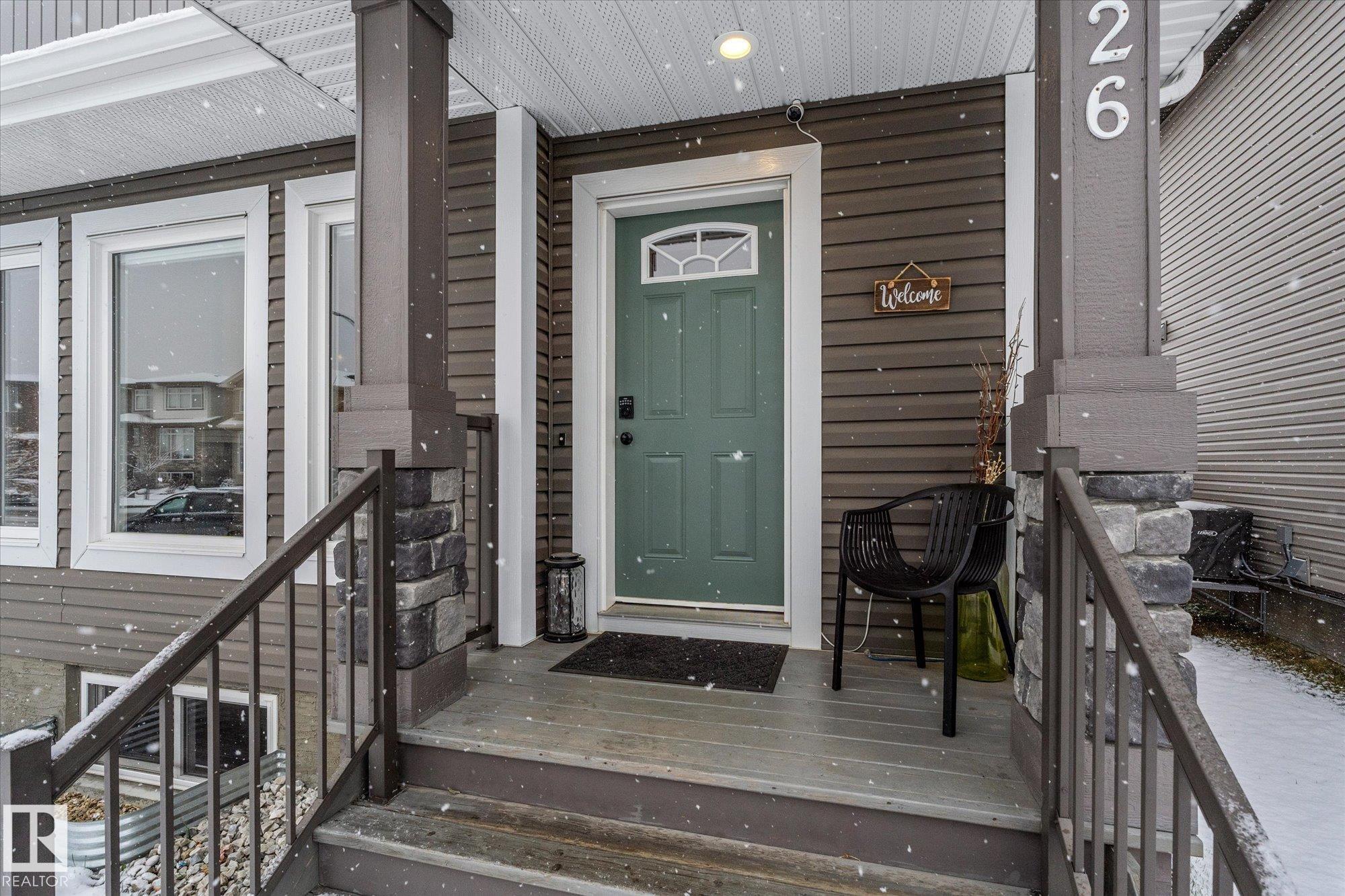 Welcome to 26 Brickyard Drive, a beautifully kept 2-storey home in one of Stony Plain?s most convenient and family-friendly neighbourhoods! Step inside to an inviting open-concept main floor featuring 9-ft ceilings, a cozy electric fireplace, 2 piece bathroom & plenty of natural light. The modern kitchen and dining area flow effortlessly together, creating a bright and welcoming space for everyday living and entertaining. Upstairs, you?ll find three spacious bedrooms, including a primary suite with a walk-in closet & 5-piece ensuite with soaker tub and tiled shower, plus a full 4-piece main bath & the convenience of upstairs laundry. Enjoy year-round comfort with central air conditioning, and take advantage of the brand-new 24x20 double detached garage and fully landscaped yard which is perfect for relaxing or hosting guests outdoors. Ideally located near schools, parks, shopping, restaurants, and Stony Plain?s charming downtown, this home offers the perfect blend of modern comfort and small-town living.