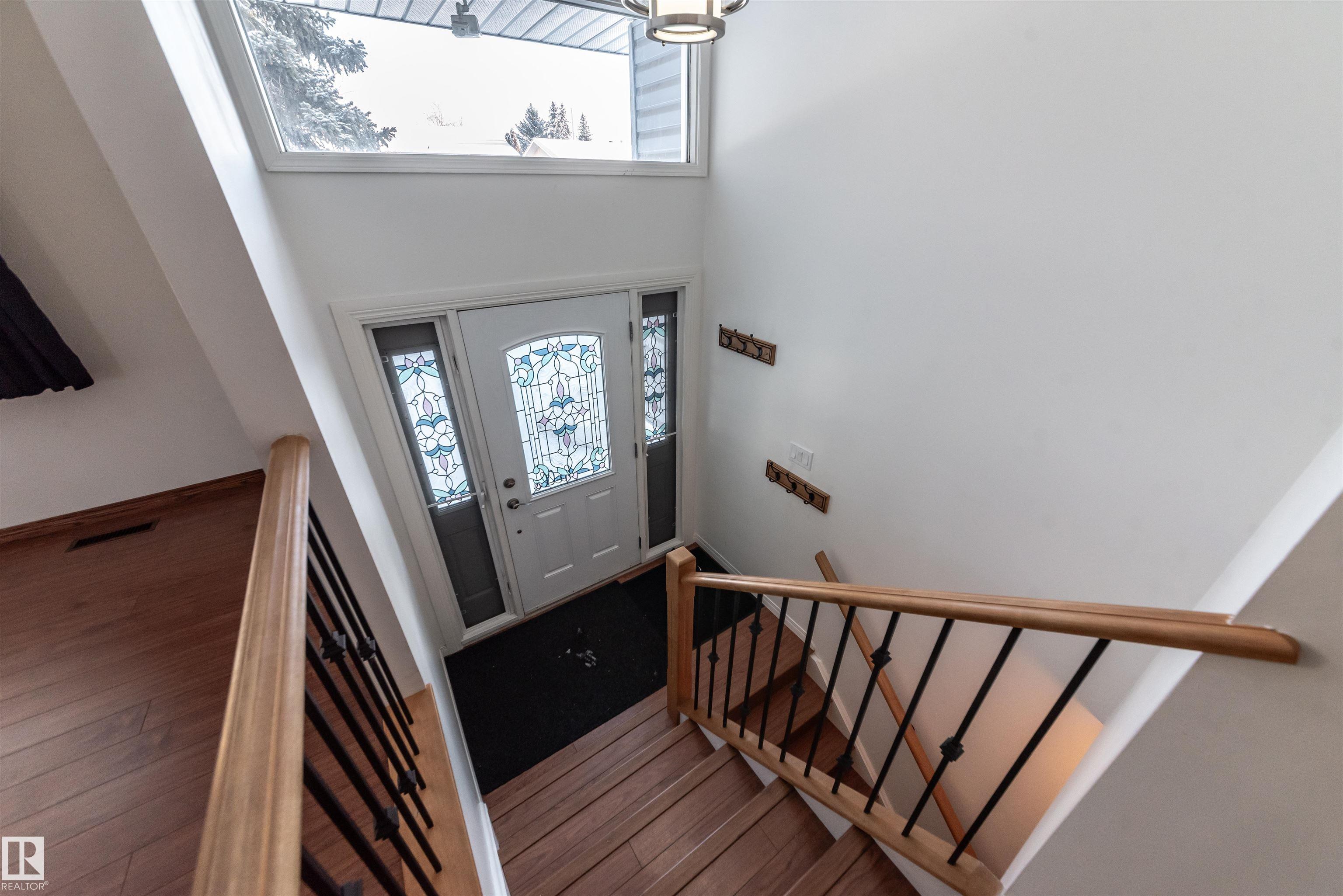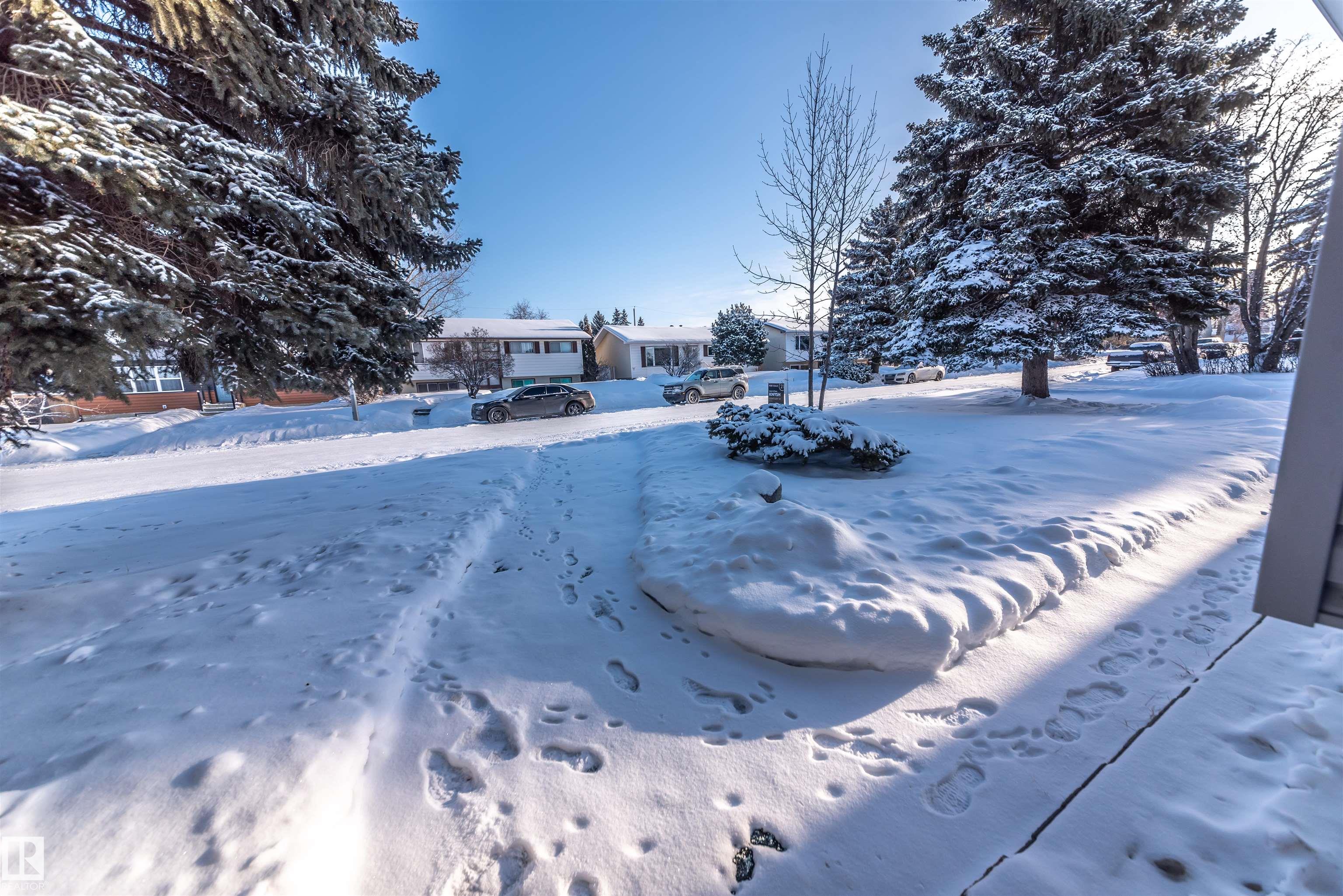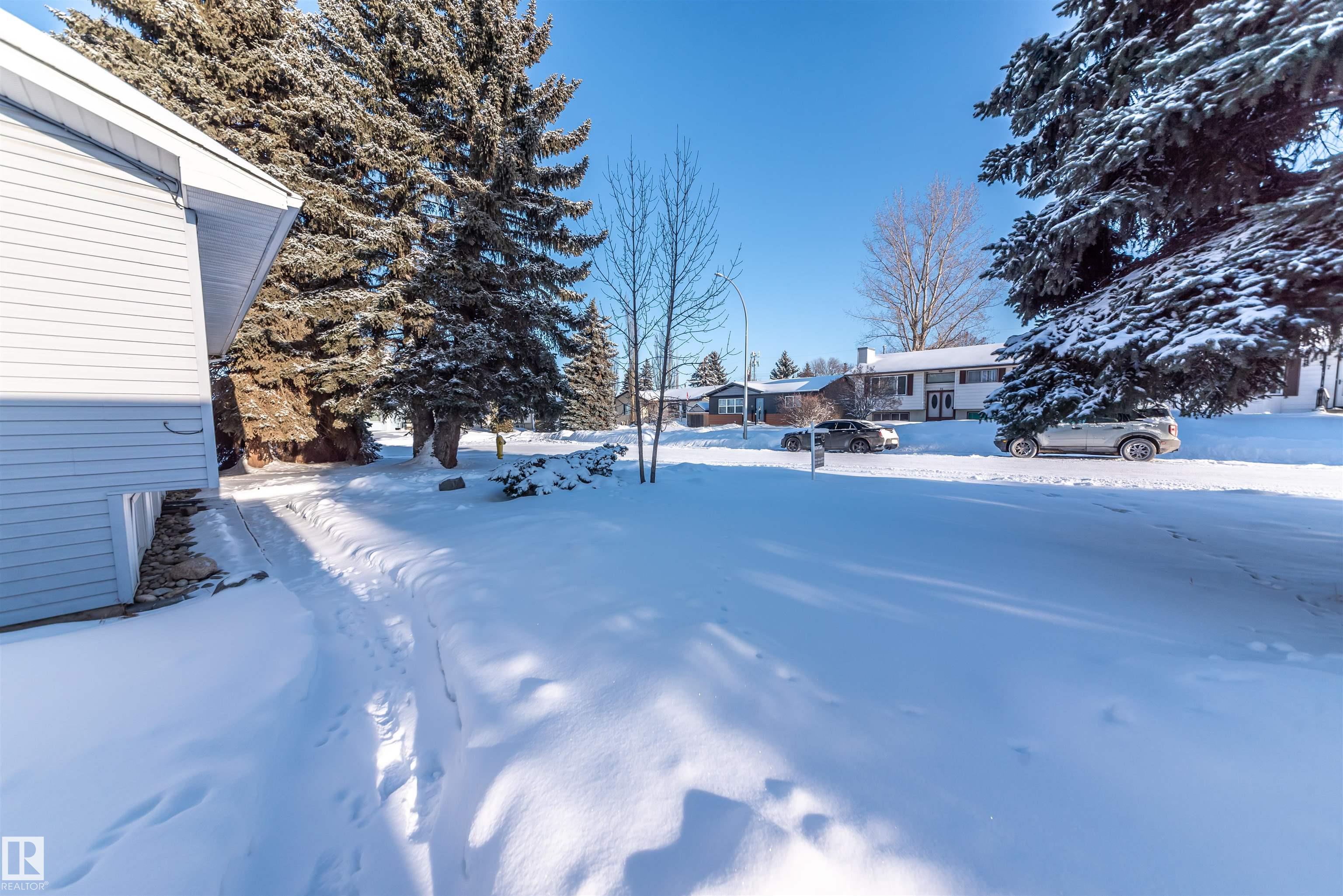 Beautifully renovated 4-bedroom bi-level offering over 2,200 sq ft of fully finished living space. The main floor features an upgraded kitchen with ample cabinetry and counter space, a spacious dining area, and a large, bright living room with plenty of natural light. There are 3 bedrooms and 2.5 baths on this level. The lower level includes a full second kitchen, a comfortable family room, and two additional bedrooms ? perfect for extended family or guests. Updates include newer windows and flooring. Situated on a lovely corner lot surrounded by mature spruce trees, this property also offers an oversized double detached garage and is conveniently close to shopping and restaurants in Spruce Grove.
