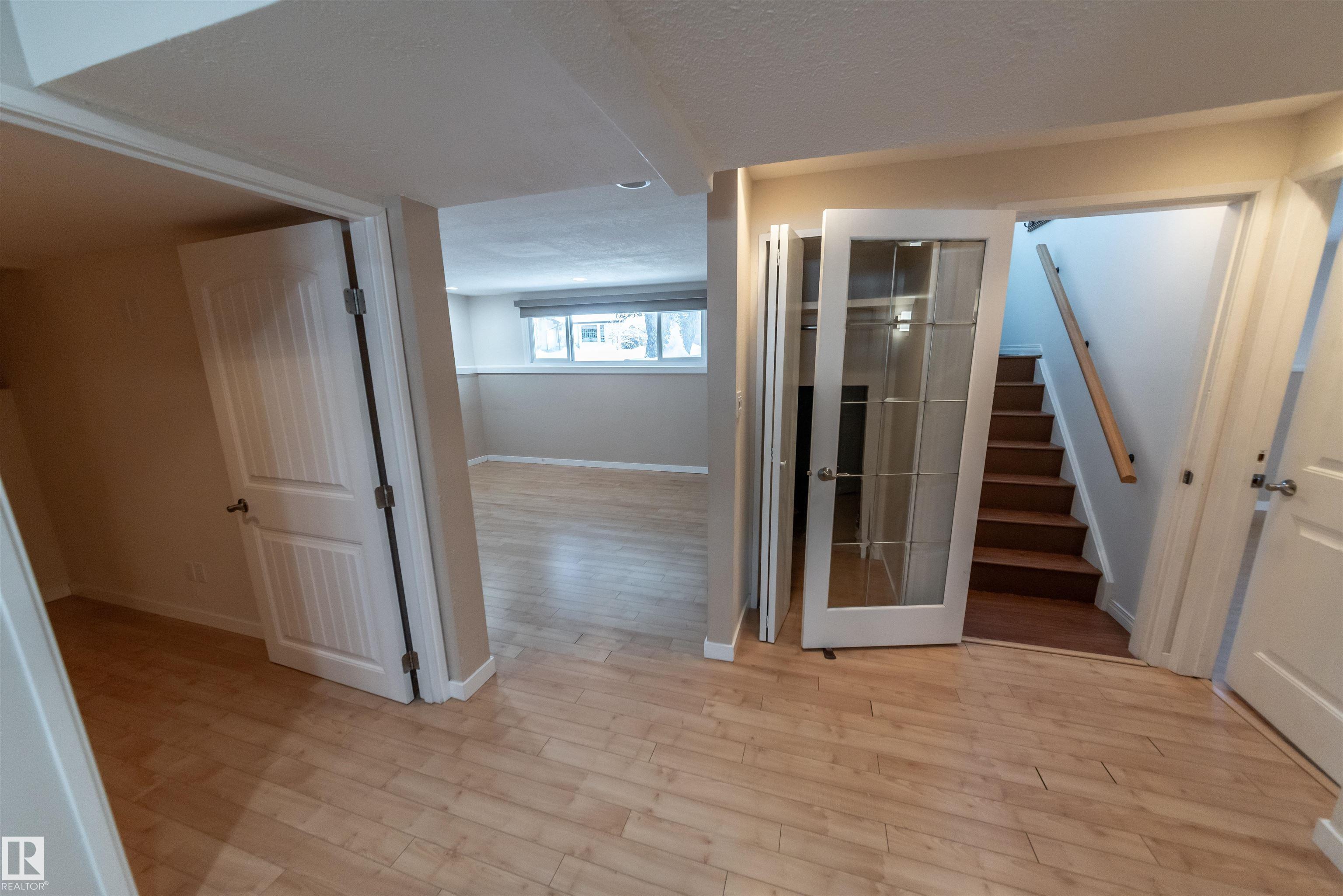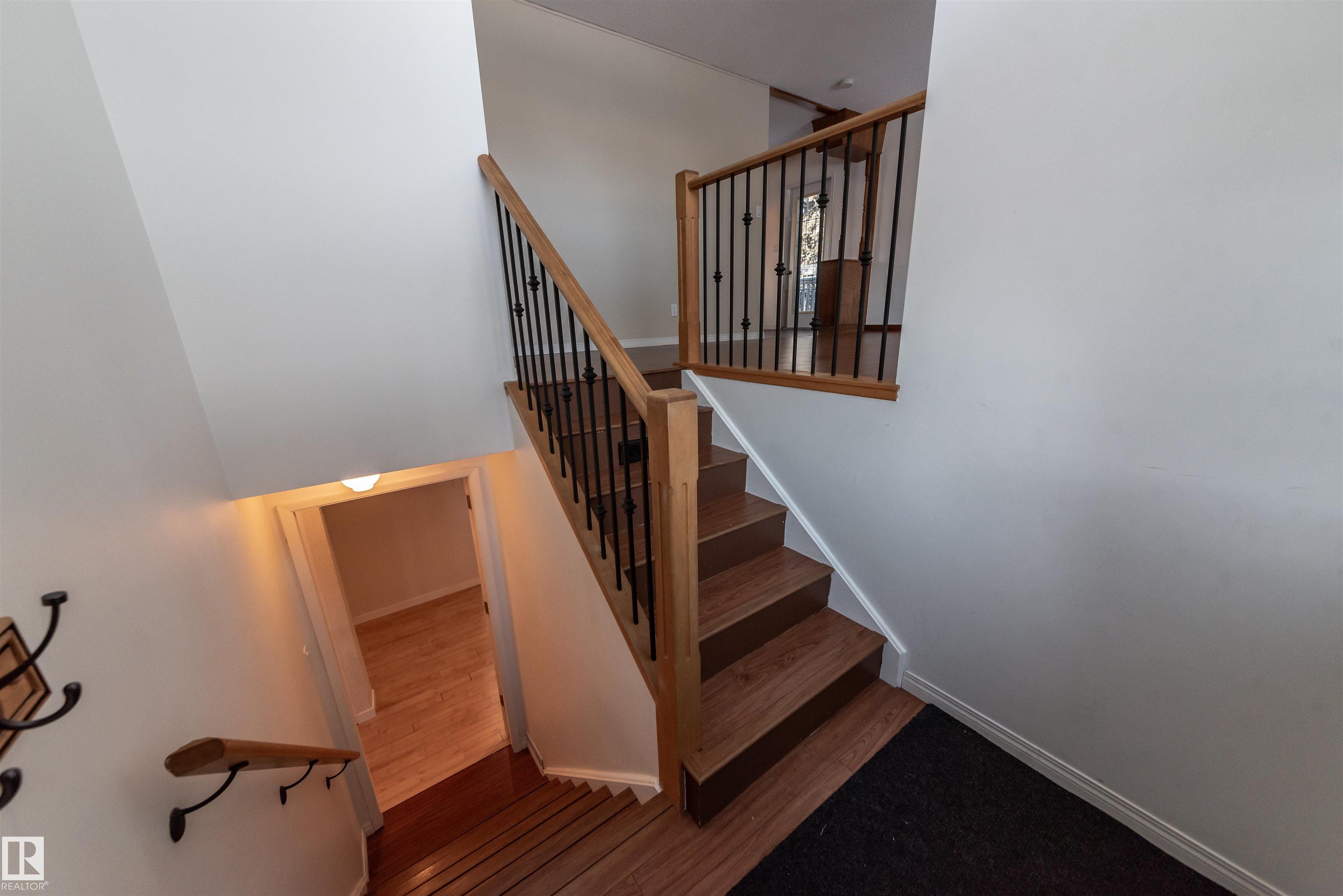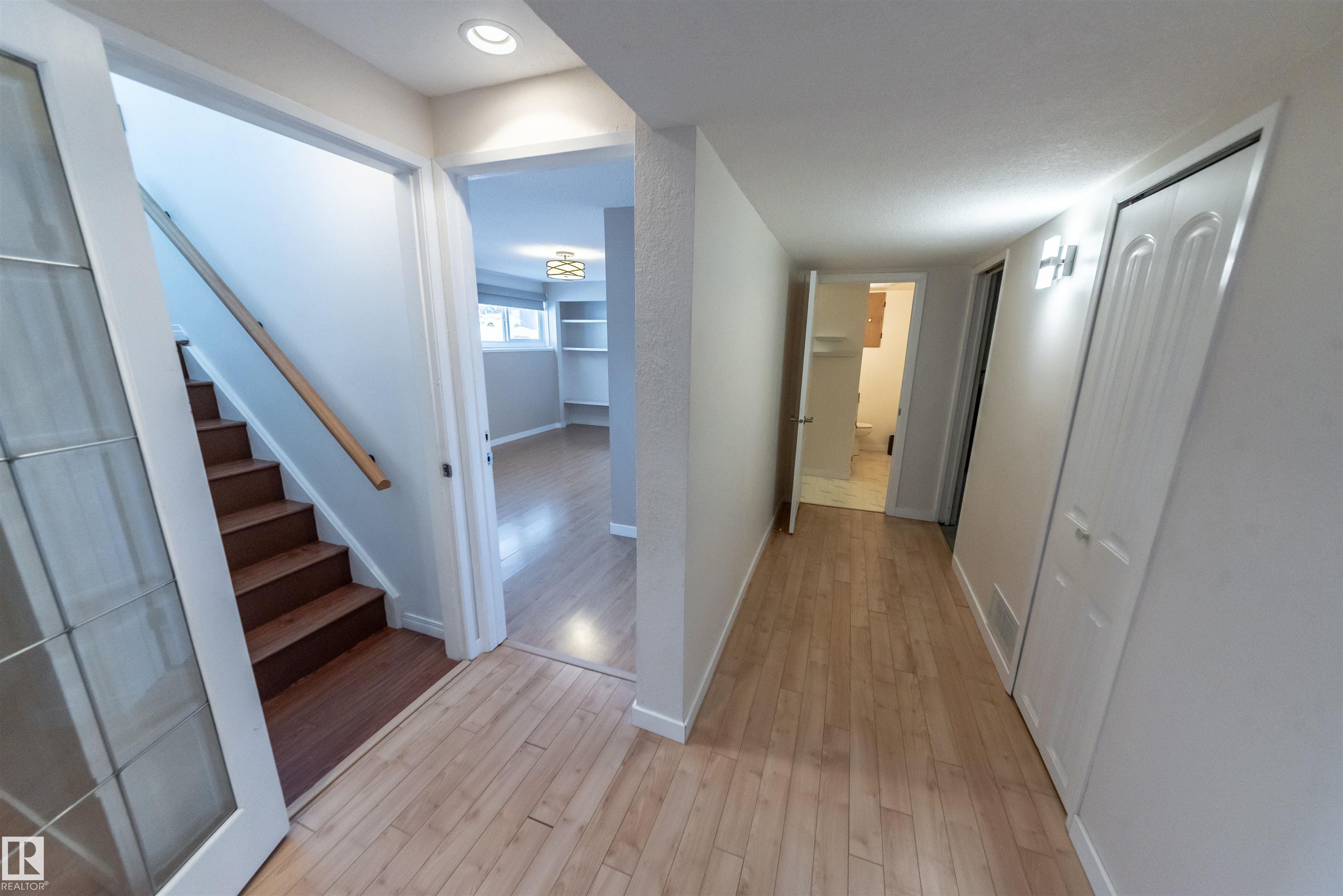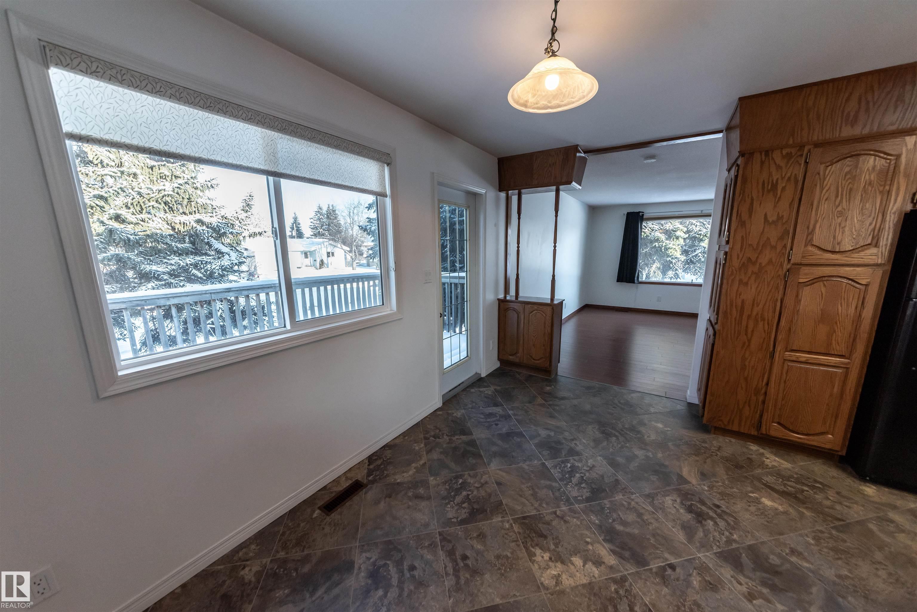 Beautifully renovated 4-bedroom bi-level offering over 2,200 sq ft of fully finished living space. The main floor features an upgraded kitchen with ample cabinetry and counter space, a spacious dining area, and a large, bright living room with plenty of natural light. There are 3 bedrooms and 2.5 baths on this level. The lower level includes a full second kitchen, a comfortable family room, and two additional bedrooms ? perfect for extended family or guests. Updates include newer windows and flooring. Situated on a lovely corner lot surrounded by mature spruce trees, this property also offers an oversized double detached garage and is conveniently close to shopping and restaurants in Spruce Grove.