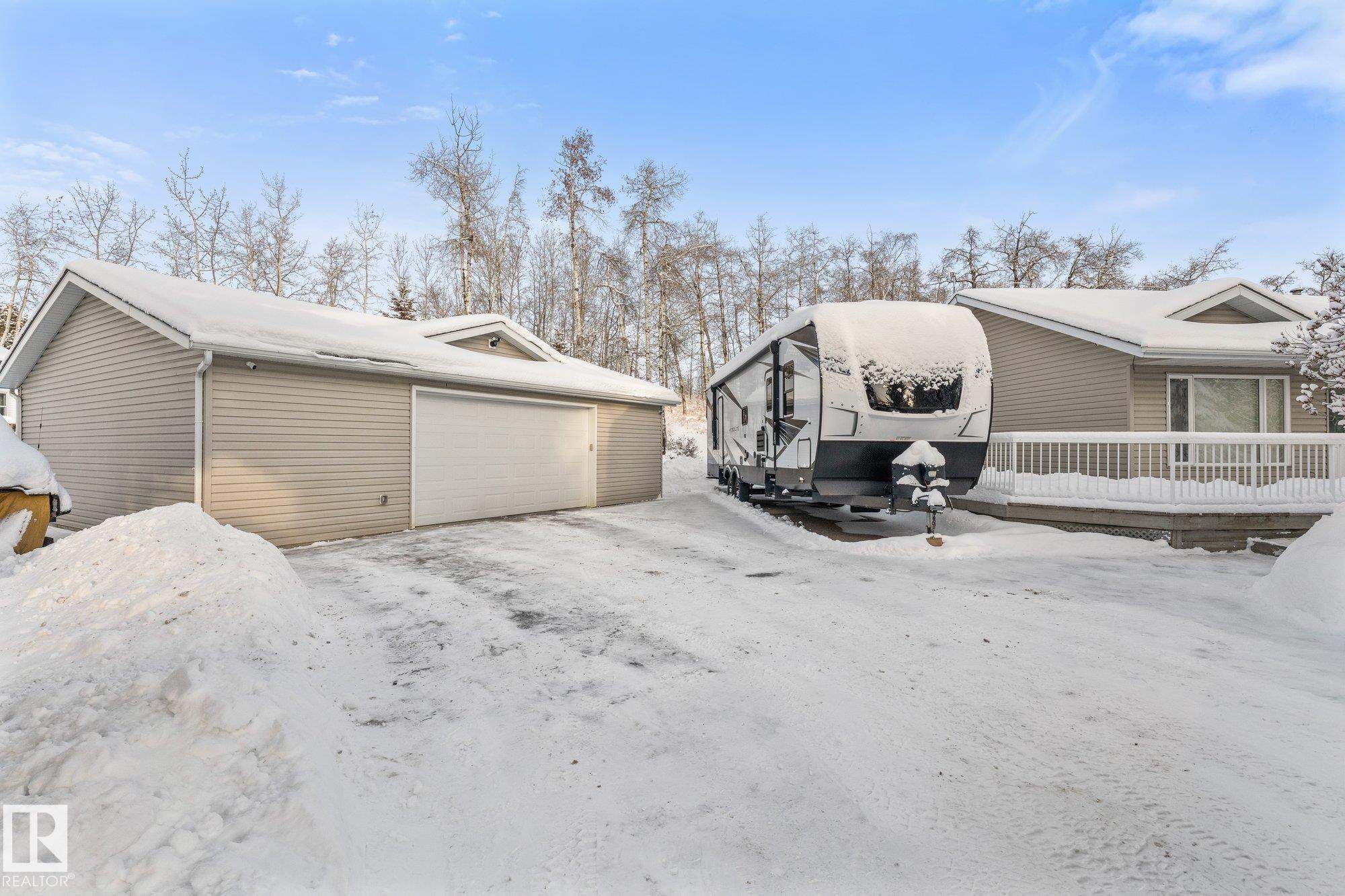Welcome to this immaculate, well-cared-for bungalow in the family-friendly community of Spring Lake! Bright and inviting, the main floor features 3 bedrooms, a 4-piece bath, and beautiful walnut hardwood throughout the living room and hallway. The kitchen offers newer stainless steel appliances and a perfect view of the backyard so you can keep an eye on the kids while cooking. Downstairs, you?ll love the fully finished basement with a spacious family room, 4th bedroom, and 3-piece bath?ideal for guests or teens. Outside is where memories are made: a wrap-around deck, firepit area, lilac trees, shrubs, and a charming treehouse! The property backs onto the community park and includes a long paved driveway leading to an oversized (28?x36?) insulated and heated double garage. Updates include paint (2023), shingles (2022), and pressure tank (2022). Ample parking and room for all your toys, just 10 minutes west of Stony Plain!
