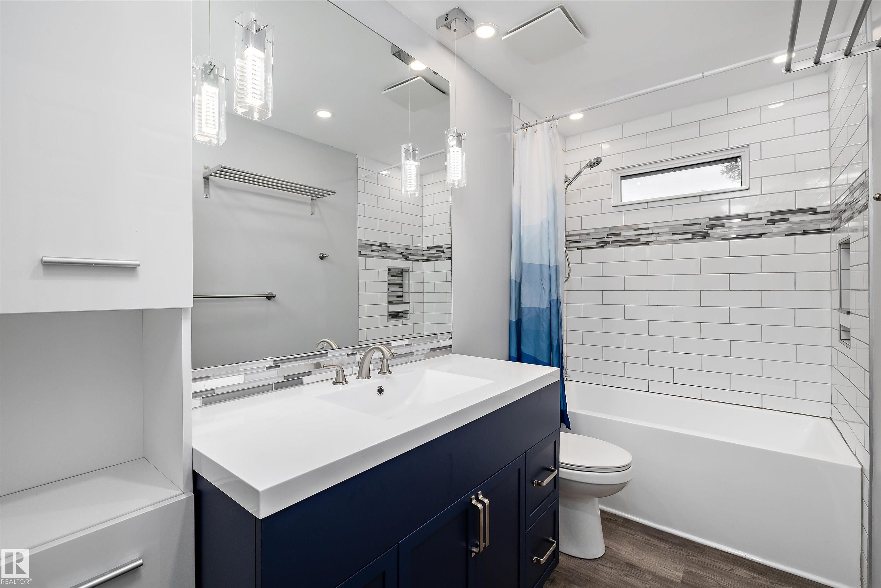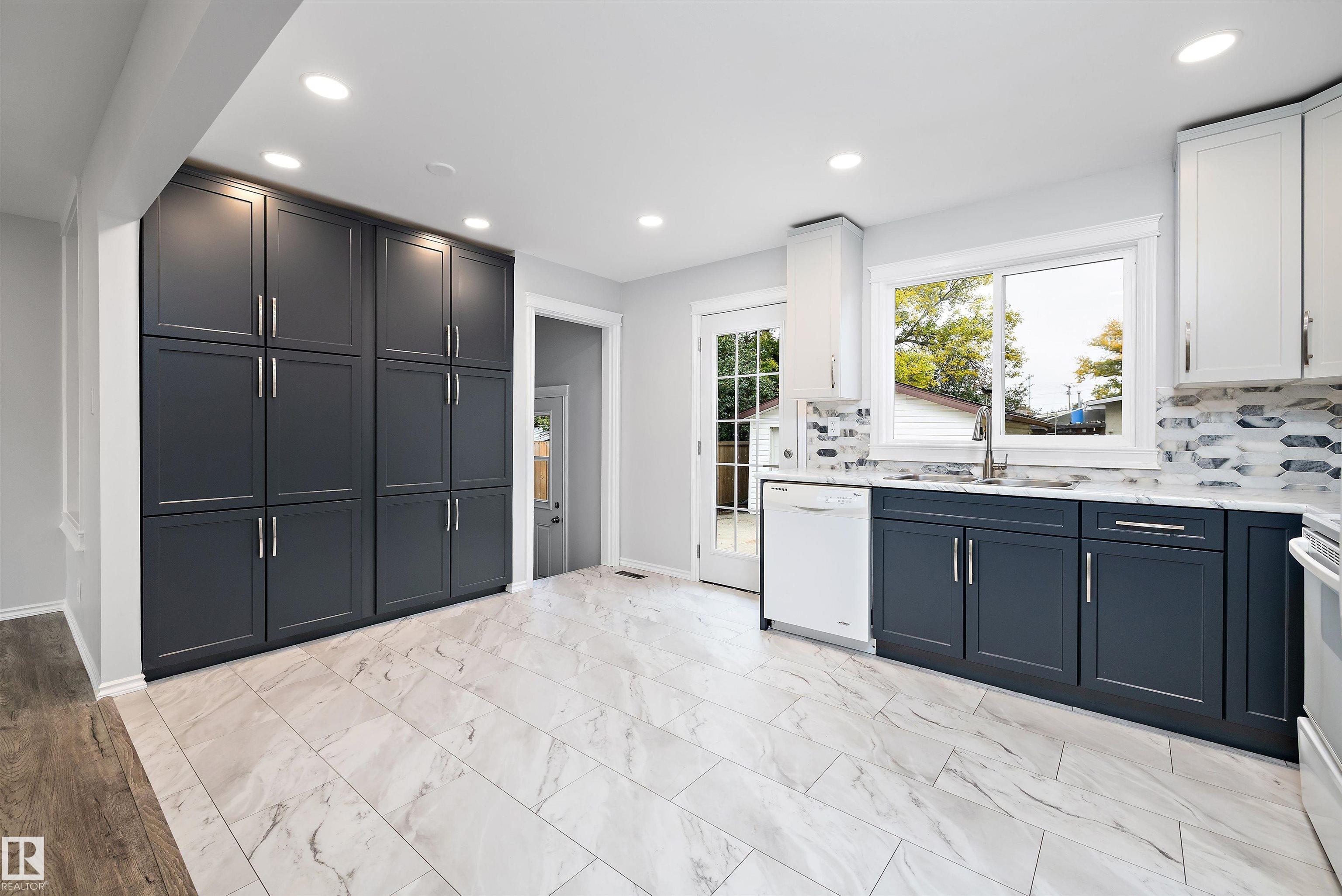 Beautifully renovated bungalow in the quiet community of Westboro, Sherwood Park! Just a short walk to parks, golf, schools & transit, with quick access to shopping, dining, and Edmonton?s SW corridor. The main floor has been fully redone with newer windows, new doors, casings, baseboards, lighting, and a stunning open-concept kitchen featuring huge built-in pantry cabinets. Enjoy durable vinyl plank, tile, and carpet throughout. The brand-new bathroom boasts a tiled shower, oversized vanity, and built-in storage, while barn door closets add modern charm. Massive 613 square meter yard includes apple, saskatoon & cherry trees plus rhubarb and raspberries. Basement is accessible via side entry & is unfinished and ready for your vision, with R30 spray foamed exterior walls, rim joists, new electrical panel with copper wiring, newer HE furnace, and 2025 oversized 75-gal hot water tank. Rough-in plumbing for washroom. Immediate possession available?move right in! Some pictures virtually staged.