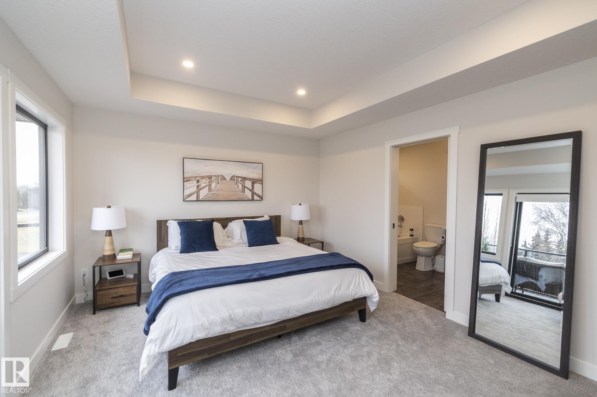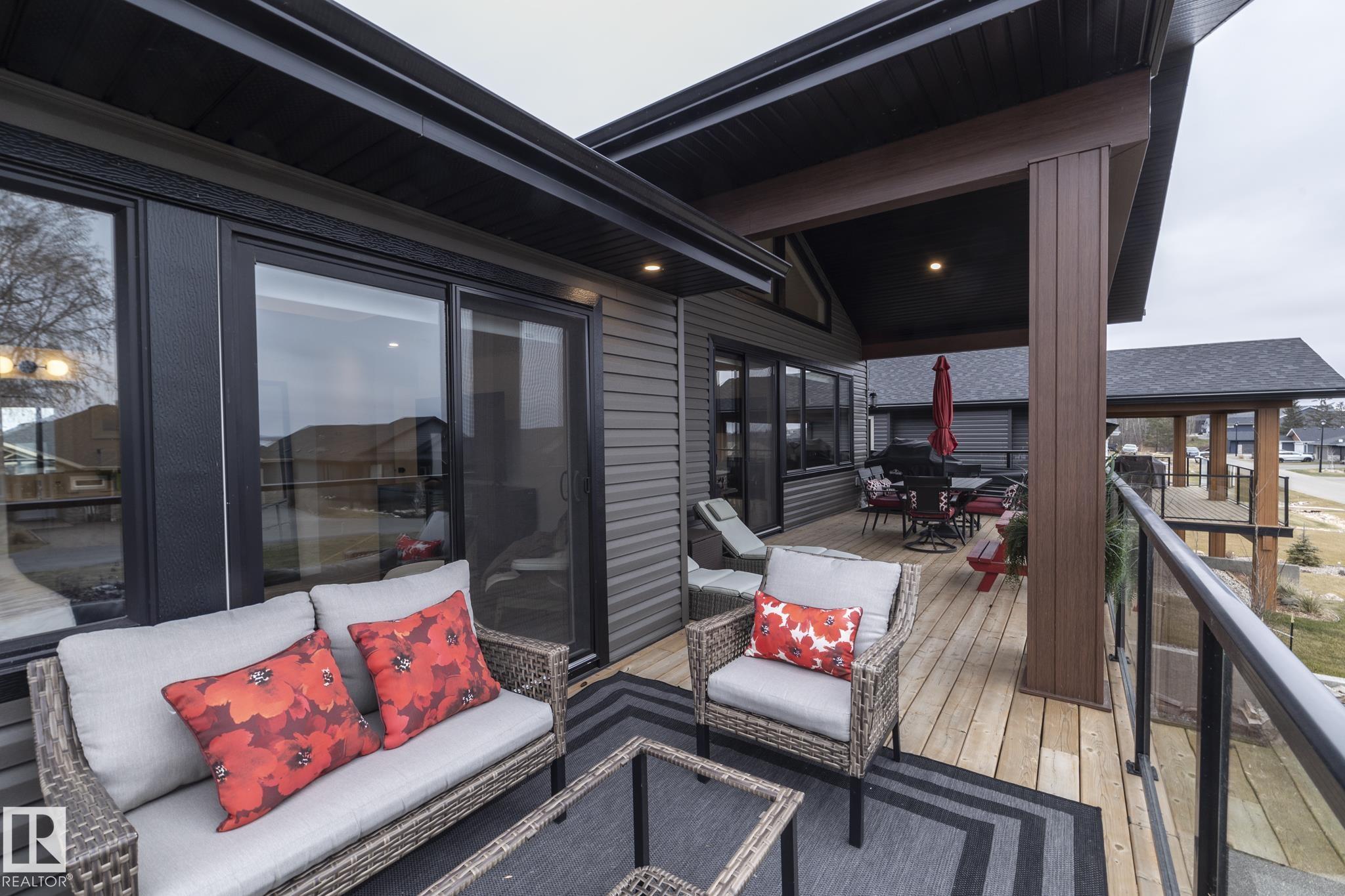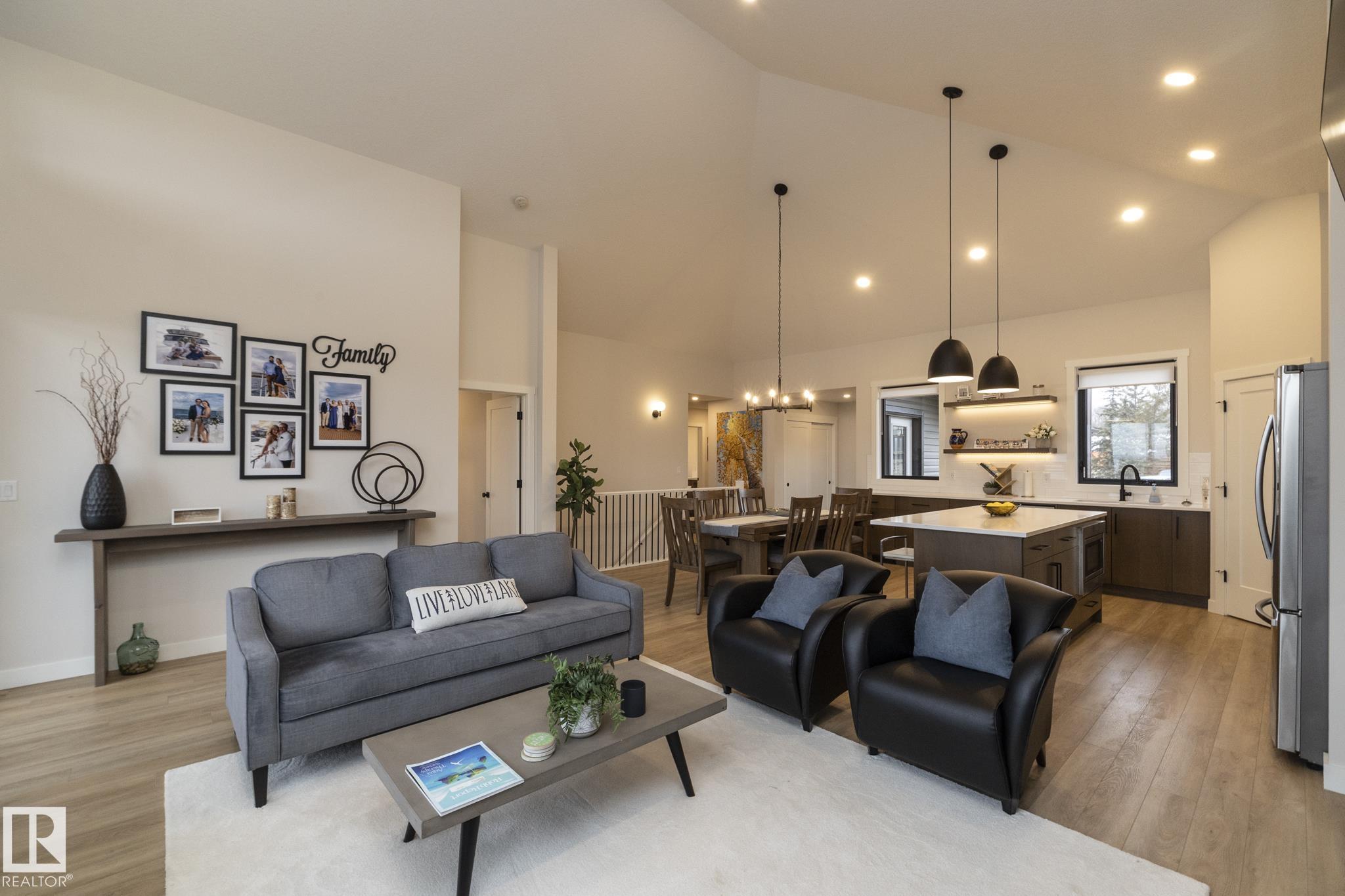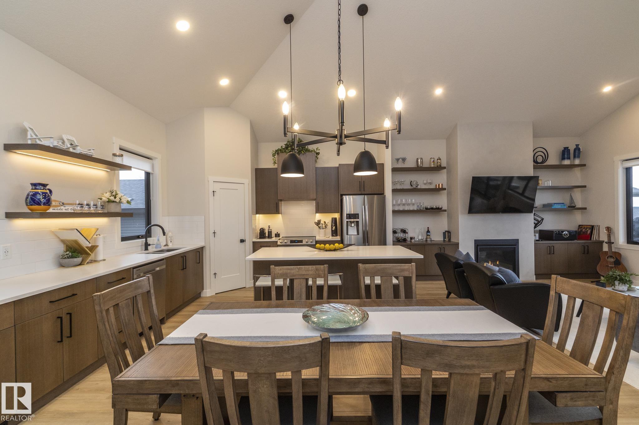 Welcome to The Estates at Waters Edge, a lakeside community with marina, outdoor pool and beachside park! This WALK OUT BUNGALOW features 4 bedrooms, 3 bathrooms, dbl attached garage and sits at over 1400 sqft with a total of 2800 sqft of living space with the walkout BSMT. Upon entering this home you are greeted with vaulted ceilings and contemporary finishings, luxury vinyl plank flooring, and STUNNING lake views! The spacious open concept main floor boasts a chefs kitchen with stone counters, beautiful cabinetry, SS appliances, floor to ceiling fireplace in living room with access to your outdoor patio, PERFECT for entertaining! The master suite features SPA like ensuite, walk-in closet and spacious bedroom with tons of natural light and patio access. Finishing off the main level is the second bedroom, main bath and laundry room! The walkout bsmt continues the entertaining ease with LARGE rec room, 2 more bedrooms and full bath! Outside is fully landscaped with over 80k of upgrades and irrigation!!