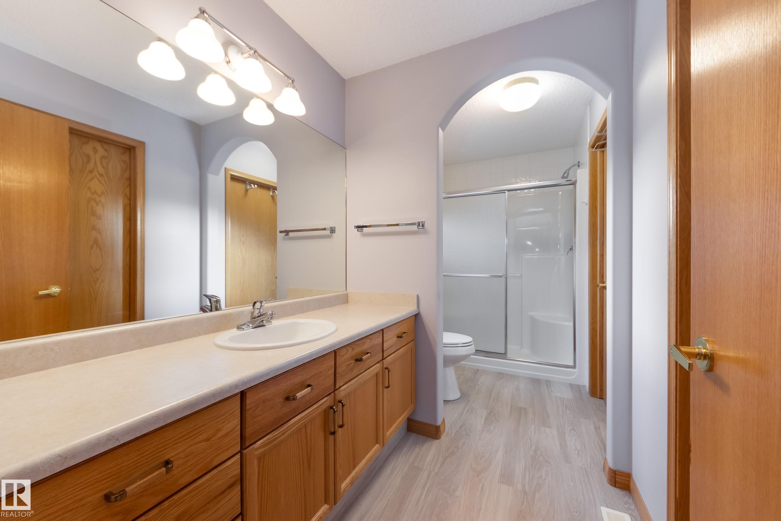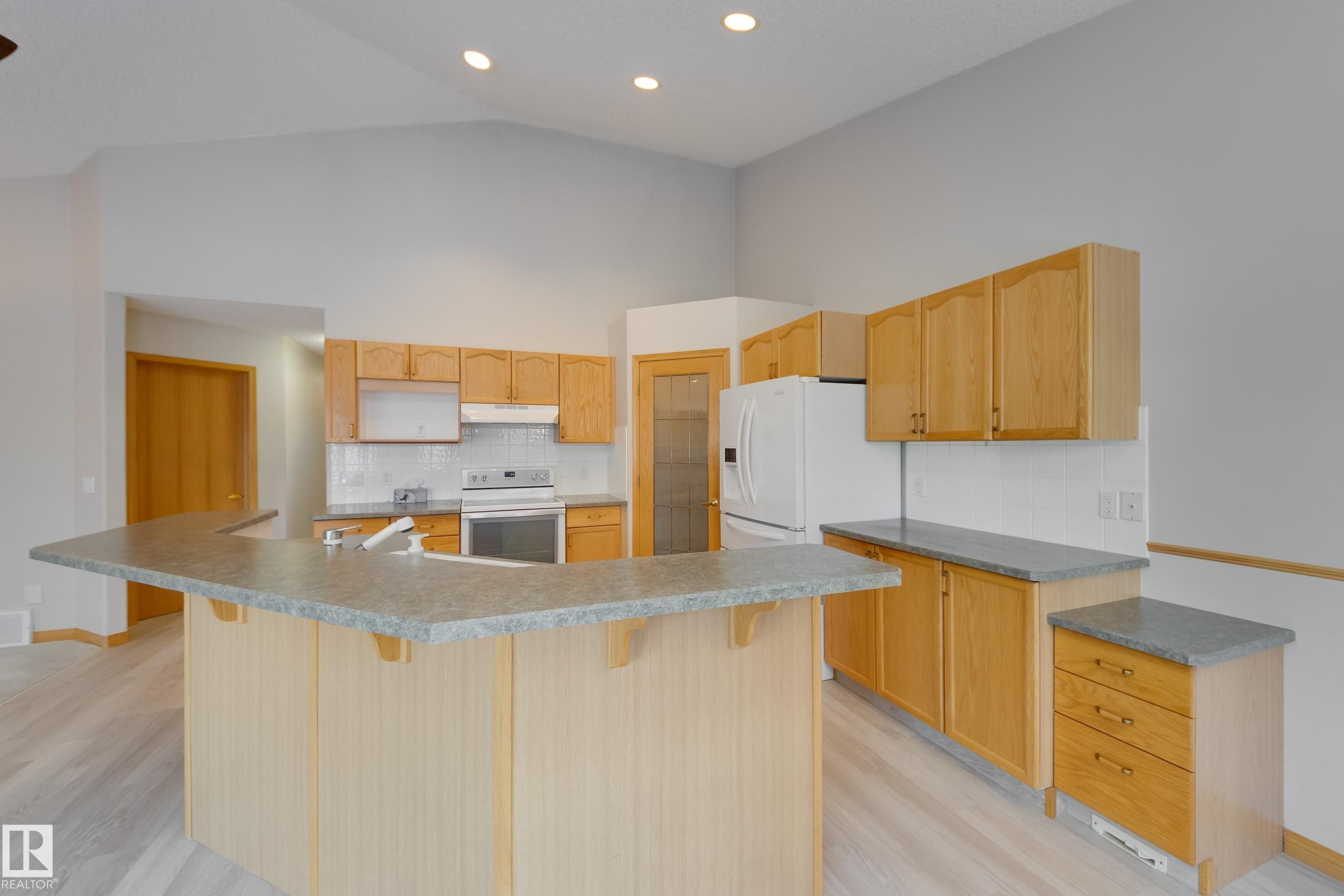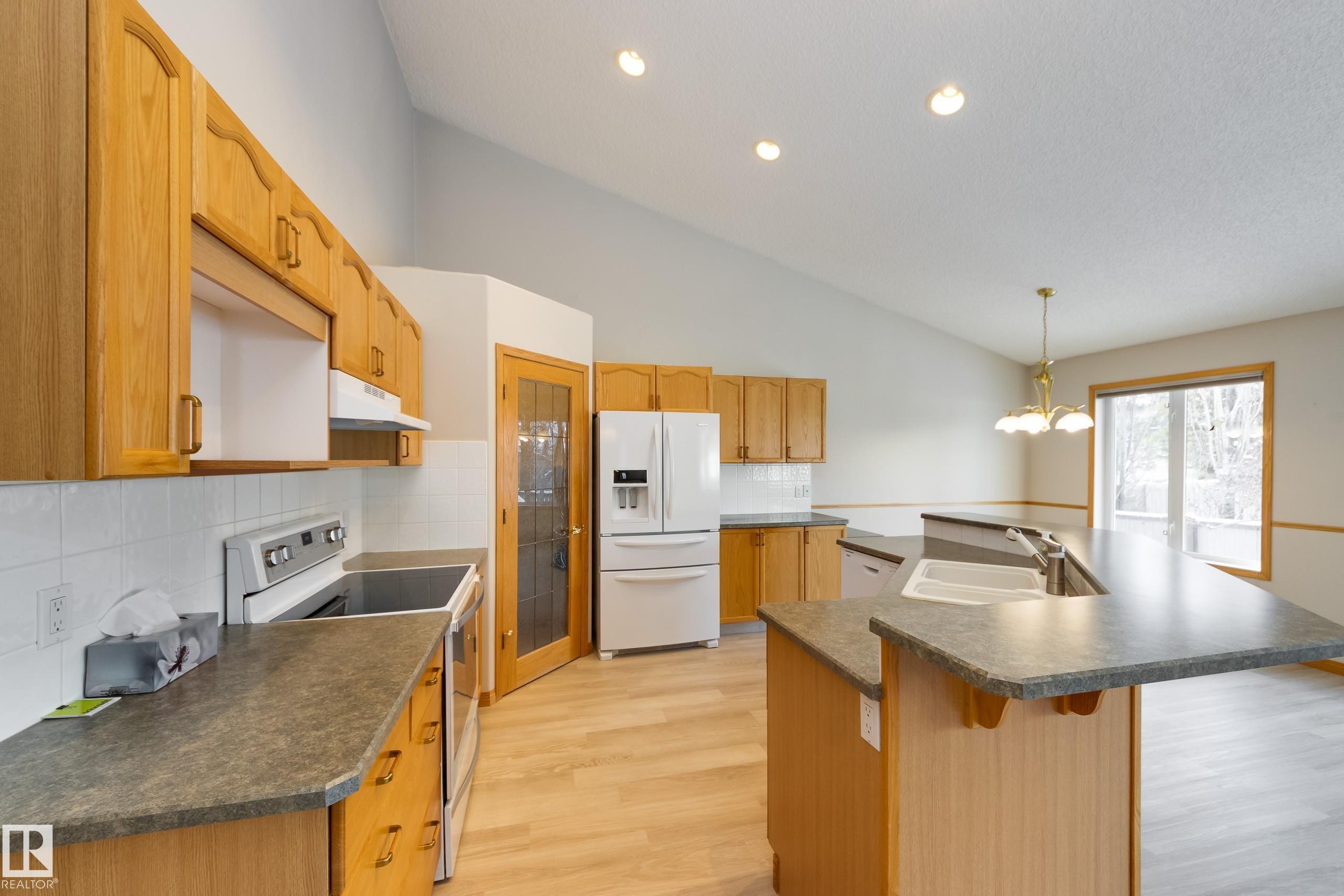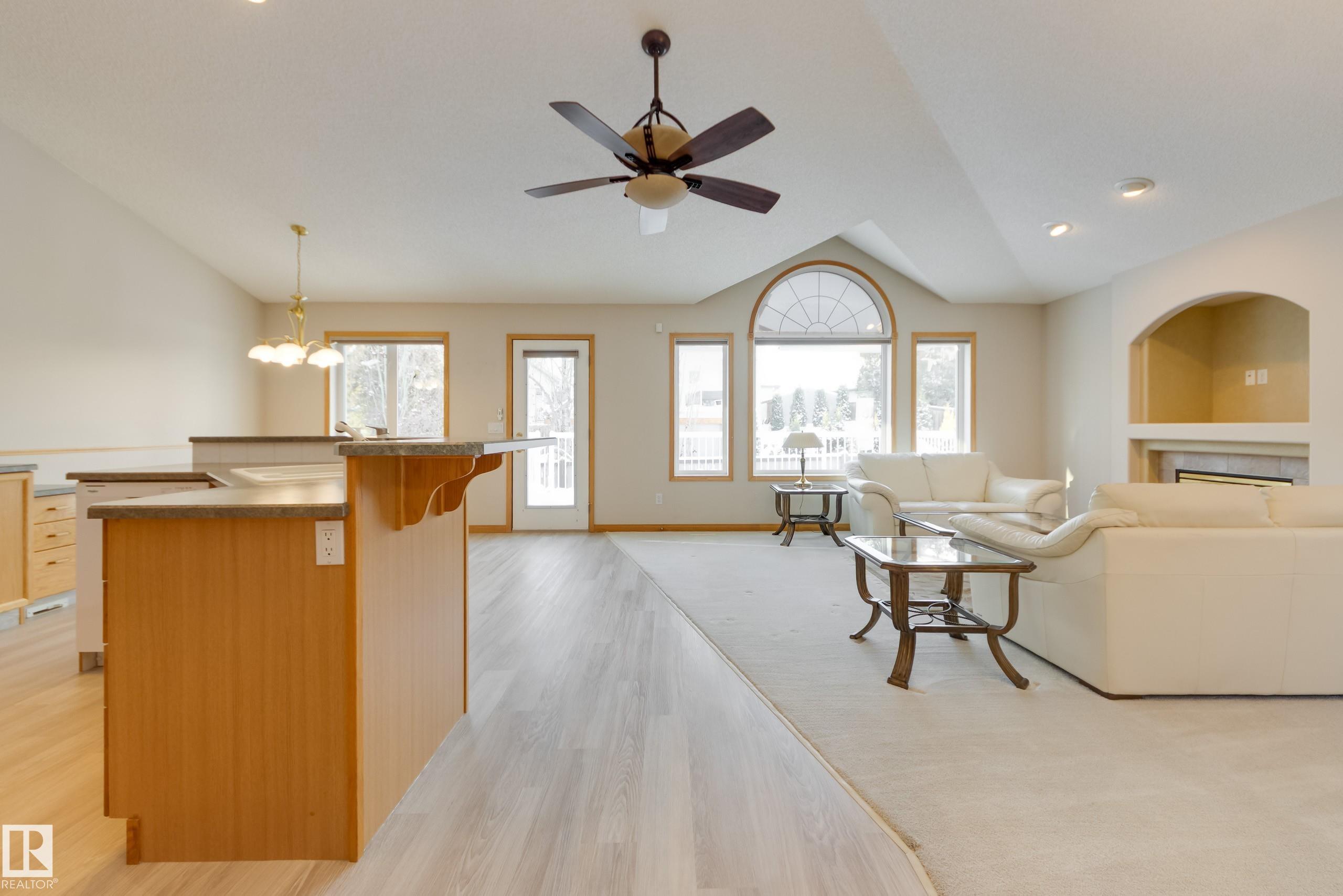 Say hello to your new home and goodbye to shoveling the driveway and mowing the lawn! If you've been thinking about downsizing, this 1400 square foot bungalow in Clarkdale Shores should be on your radar! You'll fall in love with the bright and spacious living area. The open plan kitchen, nook, dining and living room are perfect for enjoying family gatherings. The gas fireplace makes for cozy winter days and in the summer you'll love entertaining on the large west-facing deck with new composite decking and awning. The primary bedroom has a large ensuite, and there's a second bedroom or den as well as main floor laundry! You'll find an inviting family room with gas fireplace in the lower level as well as two large bedrooms, a den, a 4-piece bath, and loads of storage! Accessible features include a garage ramp and a stair lift which the sellers will remove if not needed by the buyer. New vinyl plank flooring, new dishwasher, and newer stove. This is a 55+ complex and pets are permitted with board approval.
