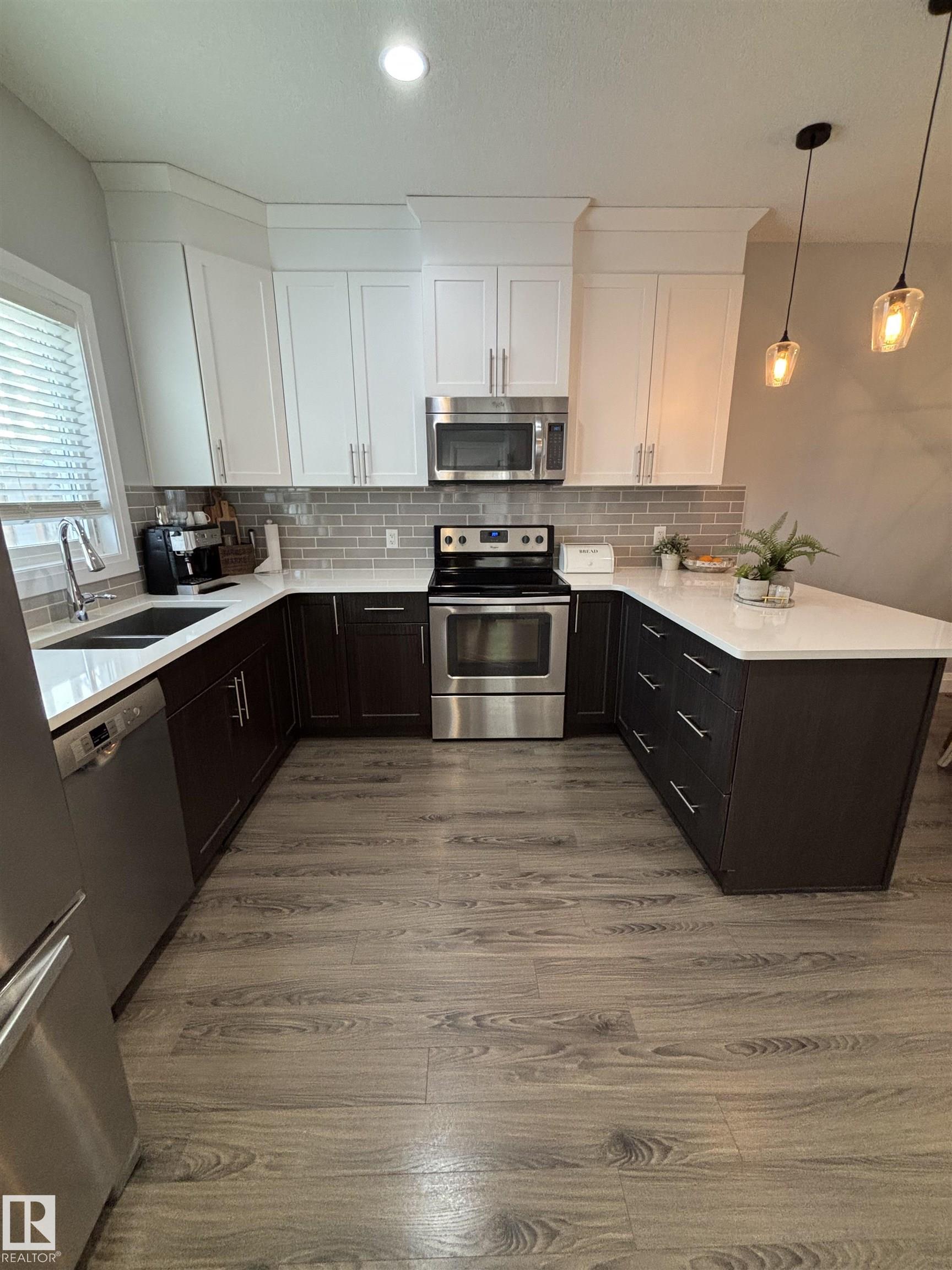 Great starter FAMILY home 2 story with two good sized bedrooms upstairs and full bathrooms off of each bedroom PLUS walk in closets , super open concept kitchen dining area with large area for dining room table including timeless finishes. Appliances are included a two piece bath is on the main level. The basement has a large bedroom and a three piece bathroom. The rec room on basement level is studded and vapor barrier, a Great space with little to do to complete. The yard has lots of perennial's and is totally fenced and landscaped. It features a large deck, a pergola and lots of perennial flowers planted. A big detached garage with a paved back lane and the subdivision is almost completed. Schools and park like setting is a block away.