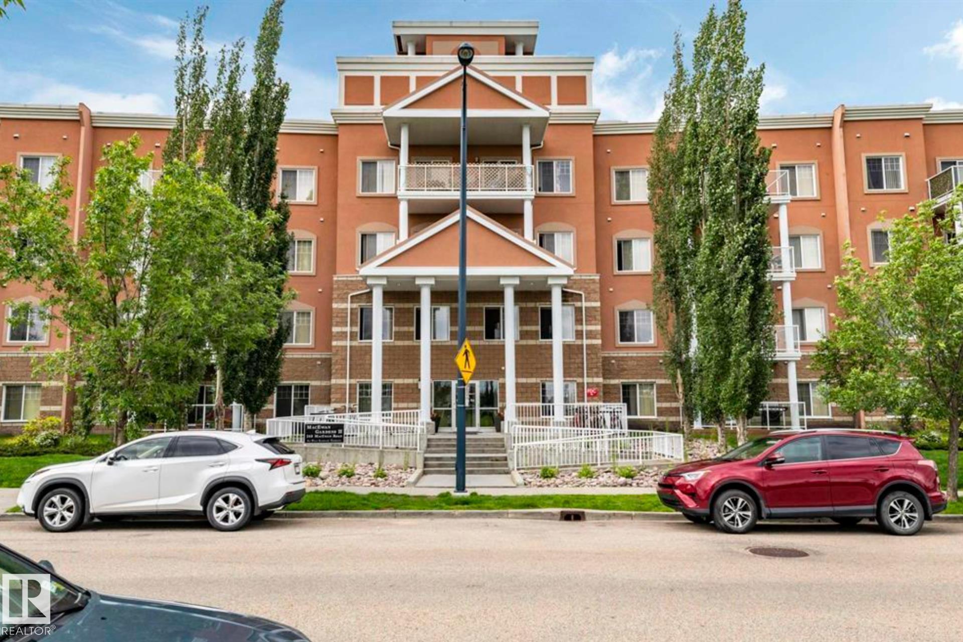 Sparkling clean and genuinely so well cared for, this bright and airy 3rd-floor condo overlooking the park instantly feels like a place you want to settle into. The thoughtfully designed layout features bedrooms on opposite sides, ideal for guests or working from home, while large windows and 9-ft ceilings fill the space with natural light. Enjoy over $5000 in gorgeous custom floor-to-ceiling cabinetry in the primary closet and laundry room to keep you beautifully organized. Sliding patio doors to a private deck for easy summer BBQs and more. The primary bedroom includes a walk-through closet and ensuite with a walk-in shower, plus an extra spacious in-suite laundry/storage room, vinyl plank flooring, and underground parking. Transit is right outside with shopping, amenities, and the future LRT nearby. Condo fees include heat, water AND POWER. And something you almost never see in condos: well-behaved larger dogs are considered on a case-by-case basis, which opens the door for buyers with bigger doggies!