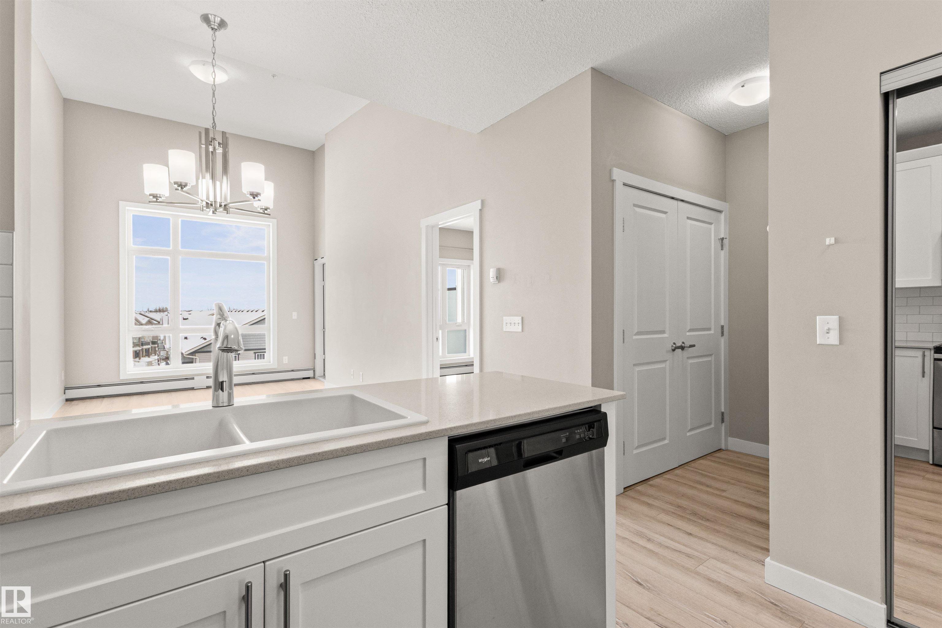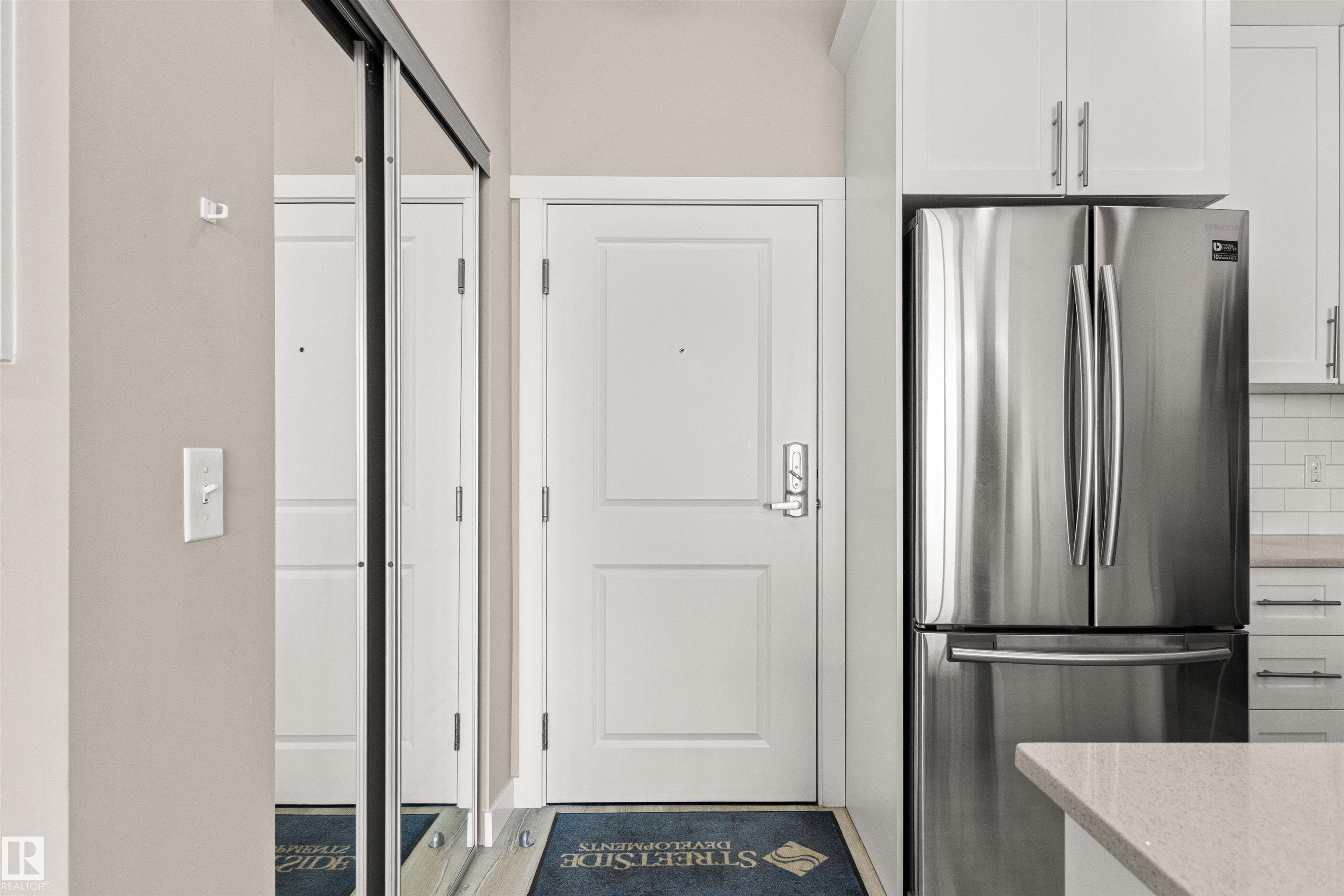 TOP FLOOR, LIKE NEW 1 Bedroom/ 1 Bathroom condo offering CLEAN, MODERN FINISHES. This WELL-DESIGNED unit features an OPEN-CONCEPT layout with HIGH VAULTED CEILINGS and durable WIDE VINYL PLANK FLOORING throughout. The CONTEMPORARY KITCHEN includes QUARTZ COUNTERTOPS, STAINLESS STEEL APPLIANCES, and ample CABINET SPACE. The SPACIOUS BEDROOM connects to a functional JACK & JILL BATHROOM, providing convenient access for both residents and guests. Additional features include PORTABLE A/C, LOW CONDO FEES, and access to a ROOFTOP PATIO. The building is PET FRIENDLY (subject to board approval) **Some photos have been virtually staged. An excellent opportunity for FIRST-TIME BUYERS, DOWNSIZERS, or INVESTORS seeking a MOVE-IN READY property. Shopping, public transit and restaurants all just steps away!