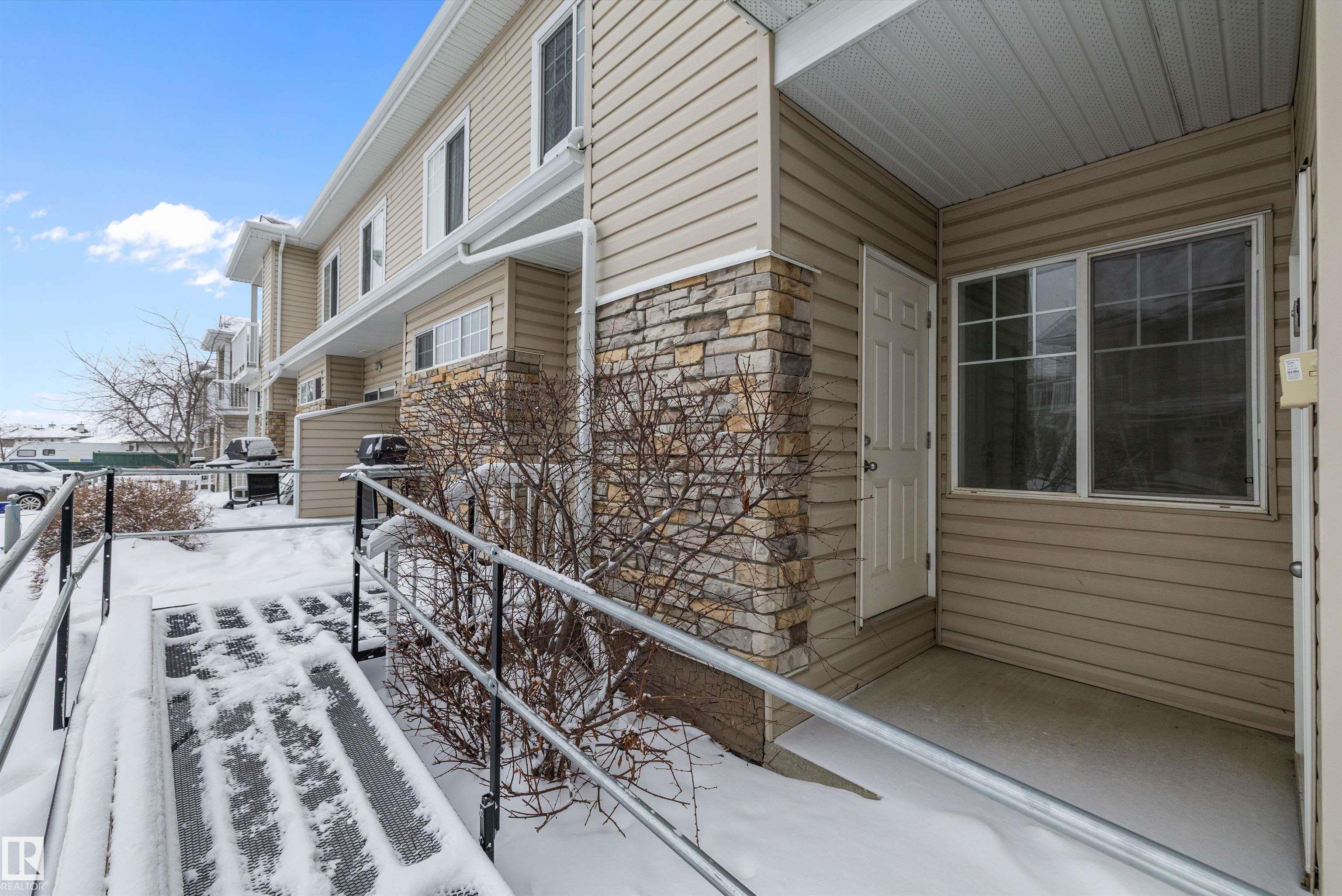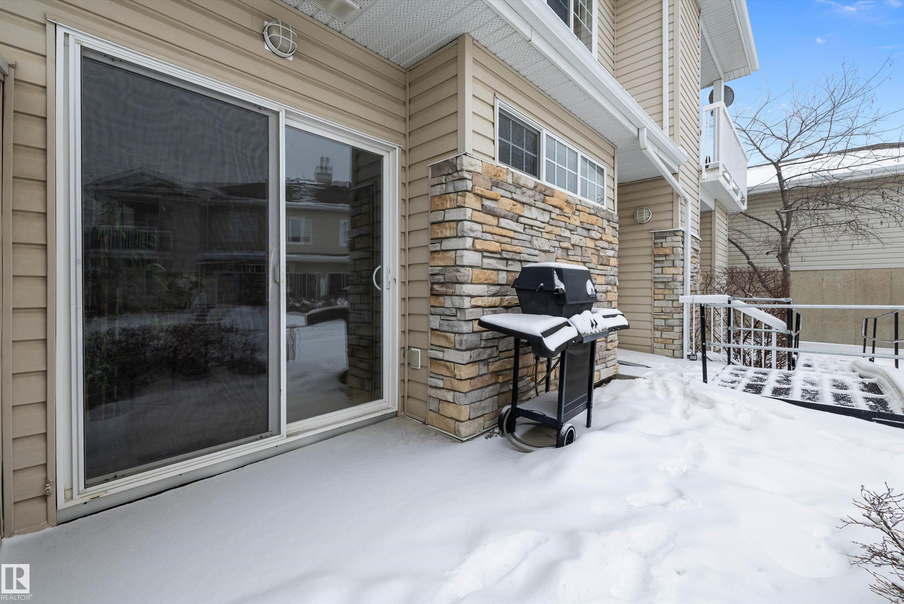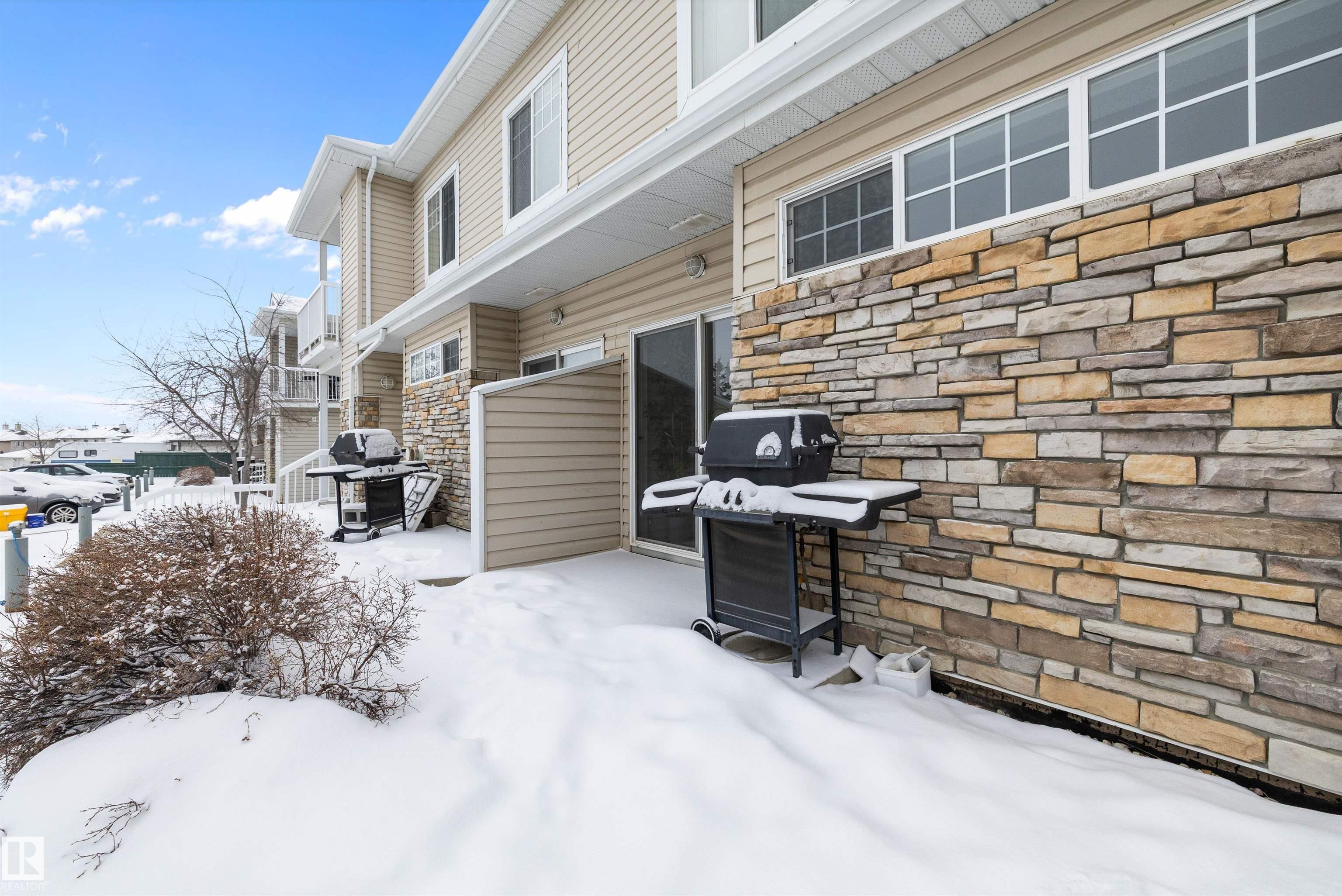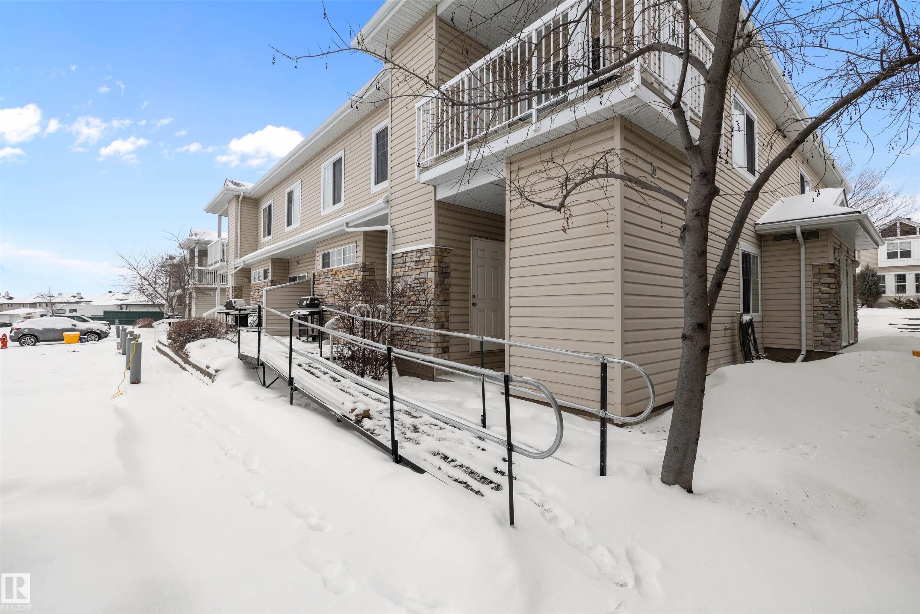 This beautifully renovated ground floor end unit is the perfect home within the tranquil Lakeland Ridge condo complex, boasting brand new vinyl plank flooring and a warm white paint palette. The unit includes a spacious living room designed in an open concept style, enhanced by sliding doors that open to a sunny east-facing front patio with a gas BBQ hookup. The generous kitchen features an eat-up island, ample cupboard space, a large refrigerator, and a closed-door storage/laundry room. Additionally, the primary bedroom is spacious, complete with a large closet and a full four-piece ensuite bathroom. You will have access to your outdoor storage area, as well as a parking space conveniently situated right in front of your unit. The monthly condo fee includes water, professional management, grass cutting & snow removal. Fabulous location in popular Lakeland Ridge! Close to schools, parks, trails, transit, shopping and more!