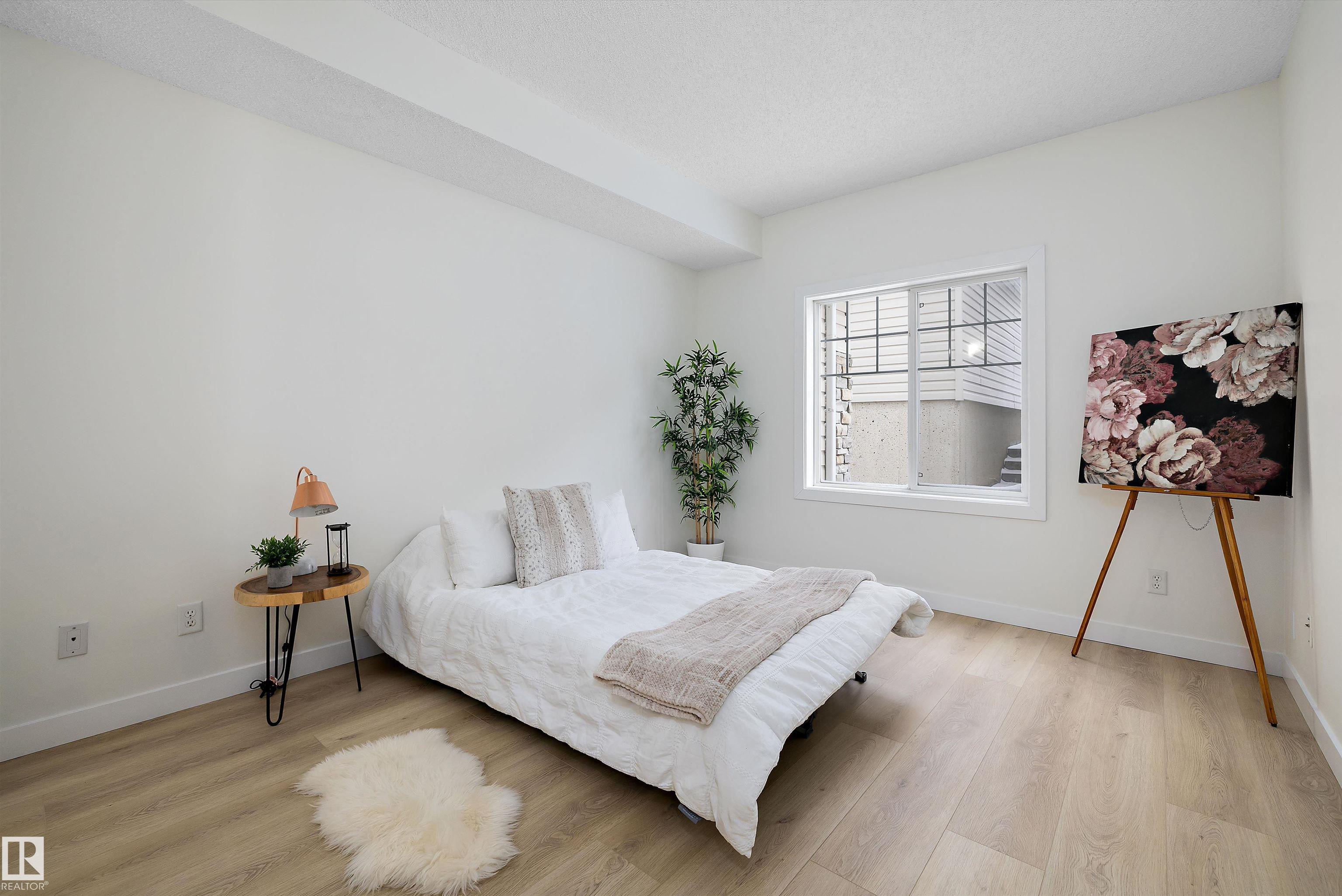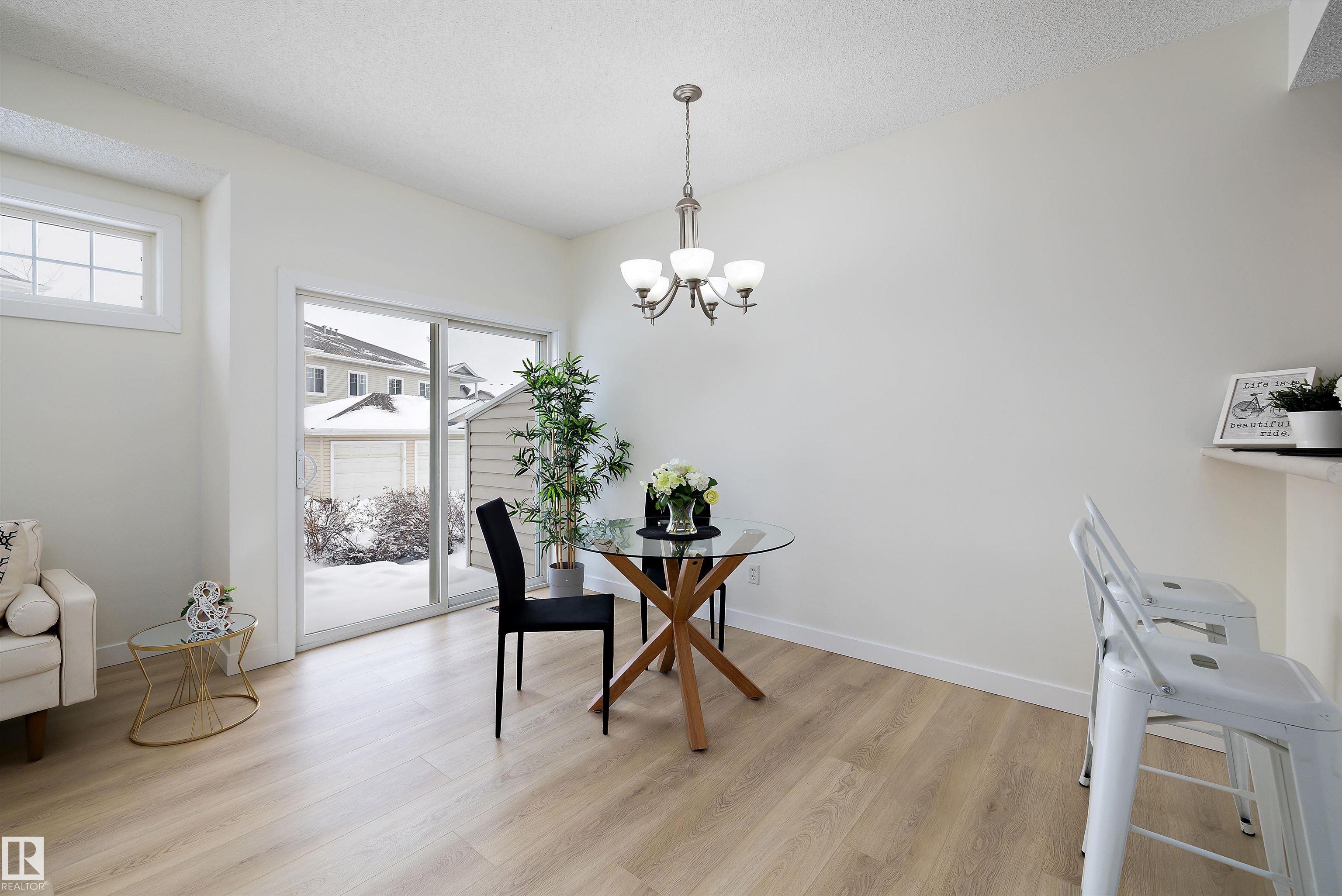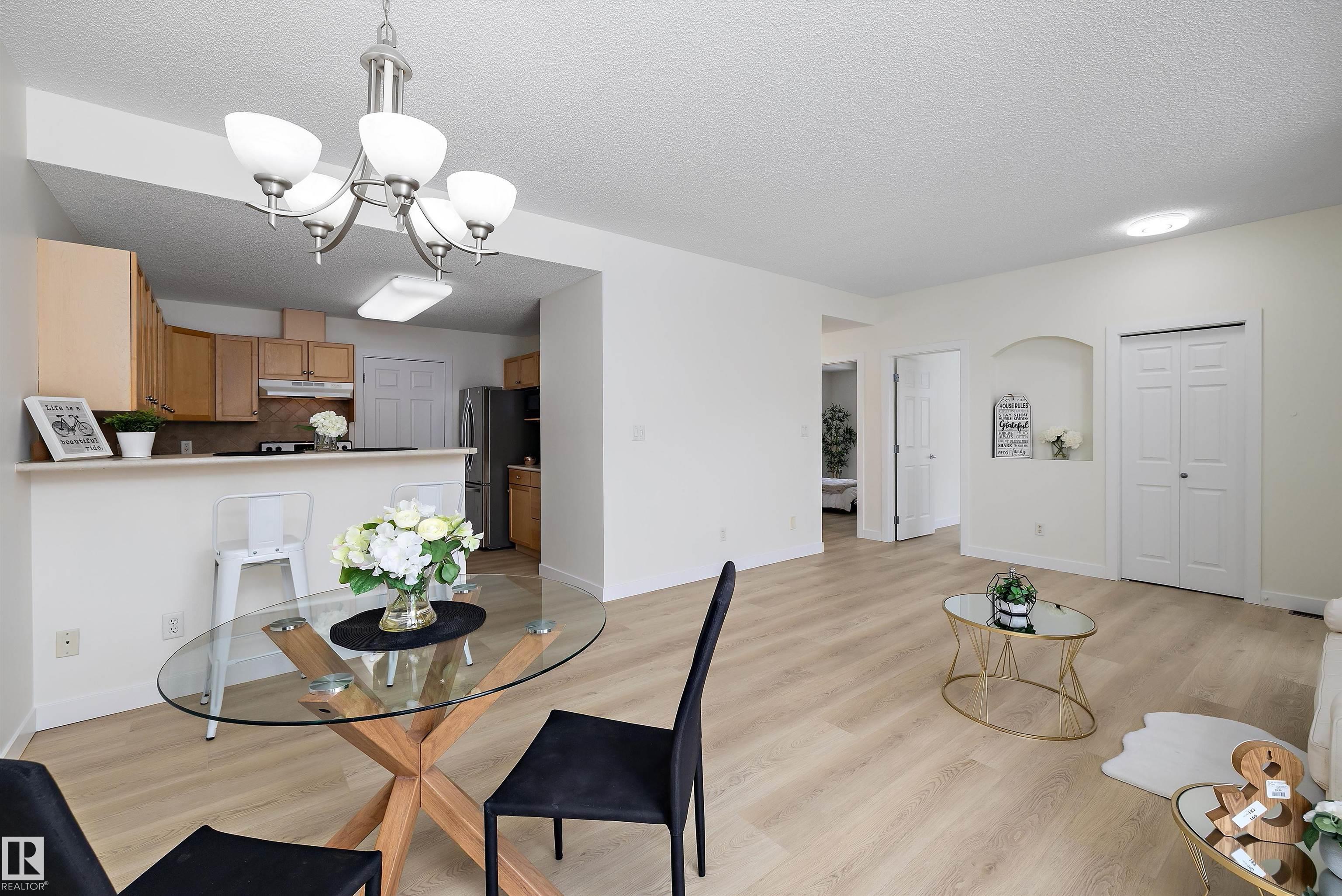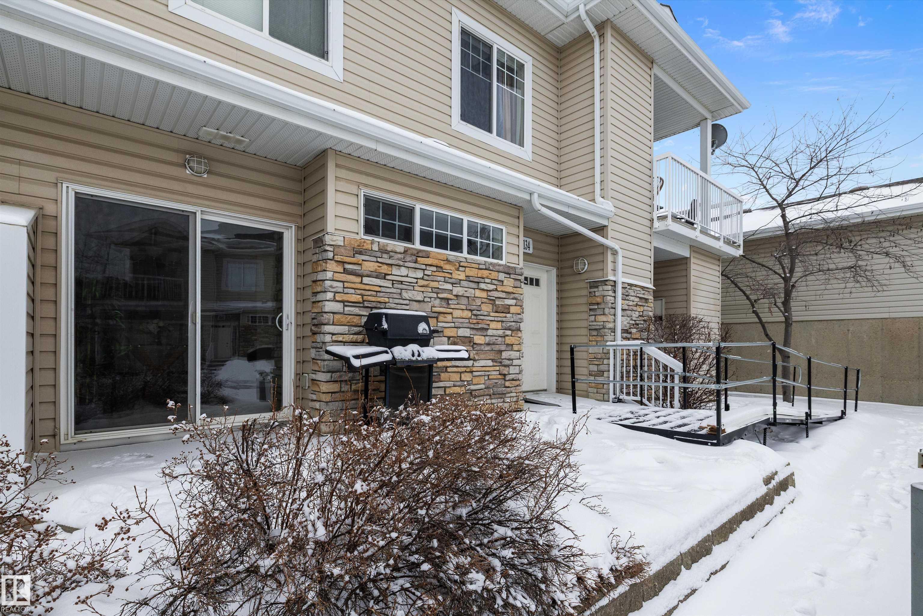 This beautifully renovated ground floor end unit is the perfect home within the tranquil Lakeland Ridge condo complex, boasting brand new vinyl plank flooring and a warm white paint palette. The unit includes a spacious living room designed in an open concept style, enhanced by sliding doors that open to a sunny east-facing front patio with a gas BBQ hookup. The generous kitchen features an eat-up island, ample cupboard space, a large refrigerator, and a closed-door storage/laundry room. Additionally, the primary bedroom is spacious, complete with a large closet and a full four-piece ensuite bathroom. You will have access to your outdoor storage area, as well as a parking space conveniently situated right in front of your unit. The monthly condo fee includes water, professional management, grass cutting & snow removal. Fabulous location in popular Lakeland Ridge! Close to schools, parks, trails, transit, shopping and more!