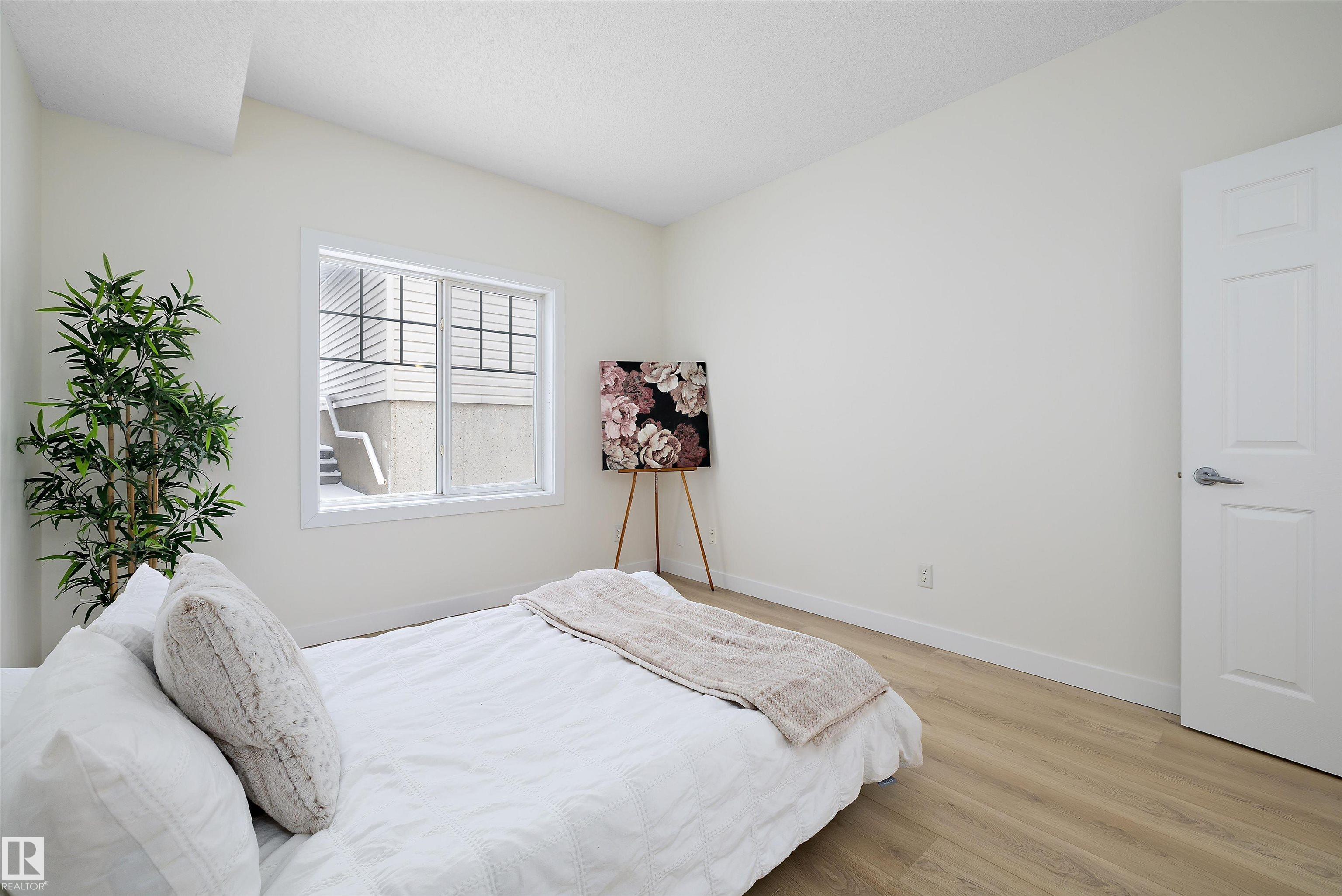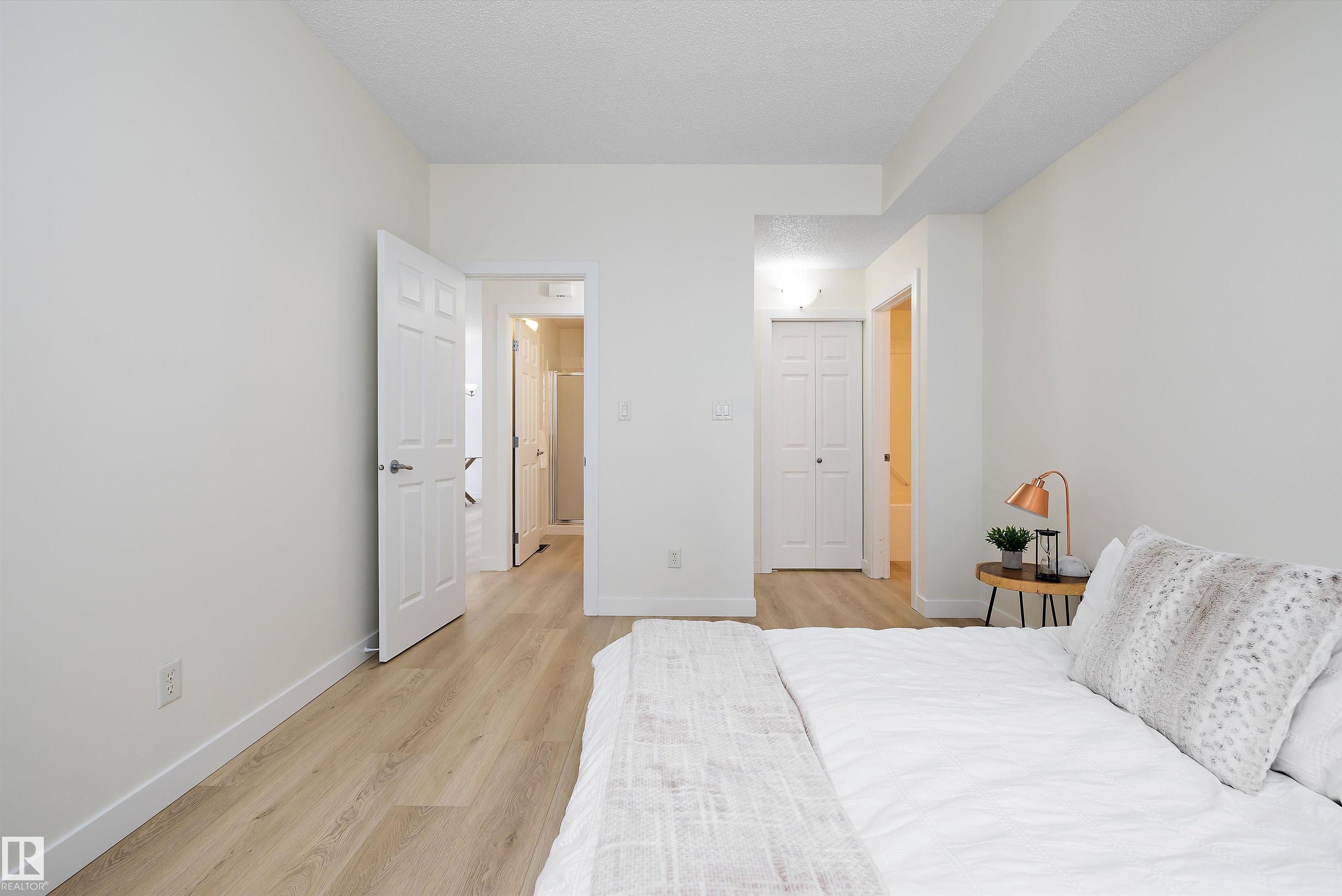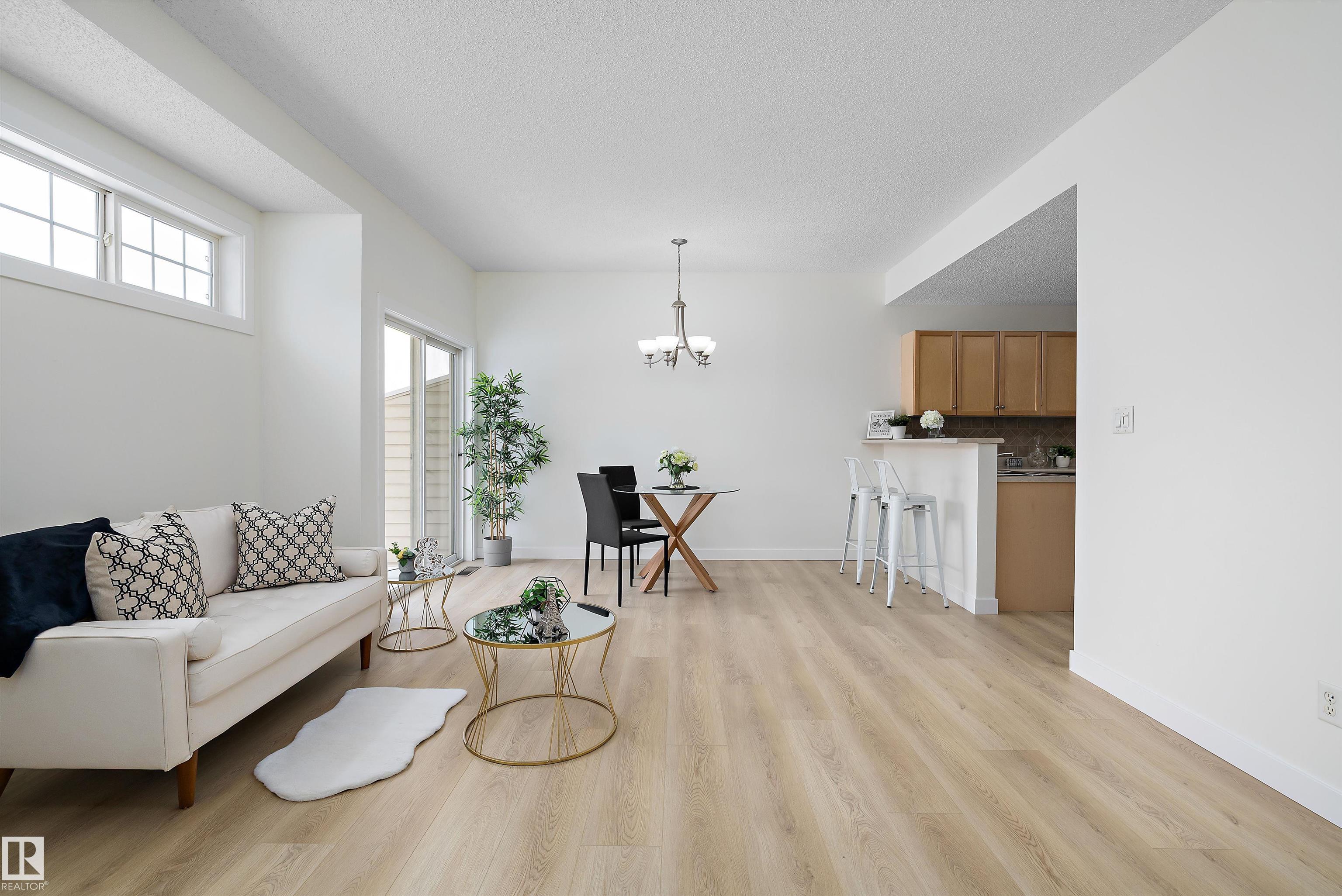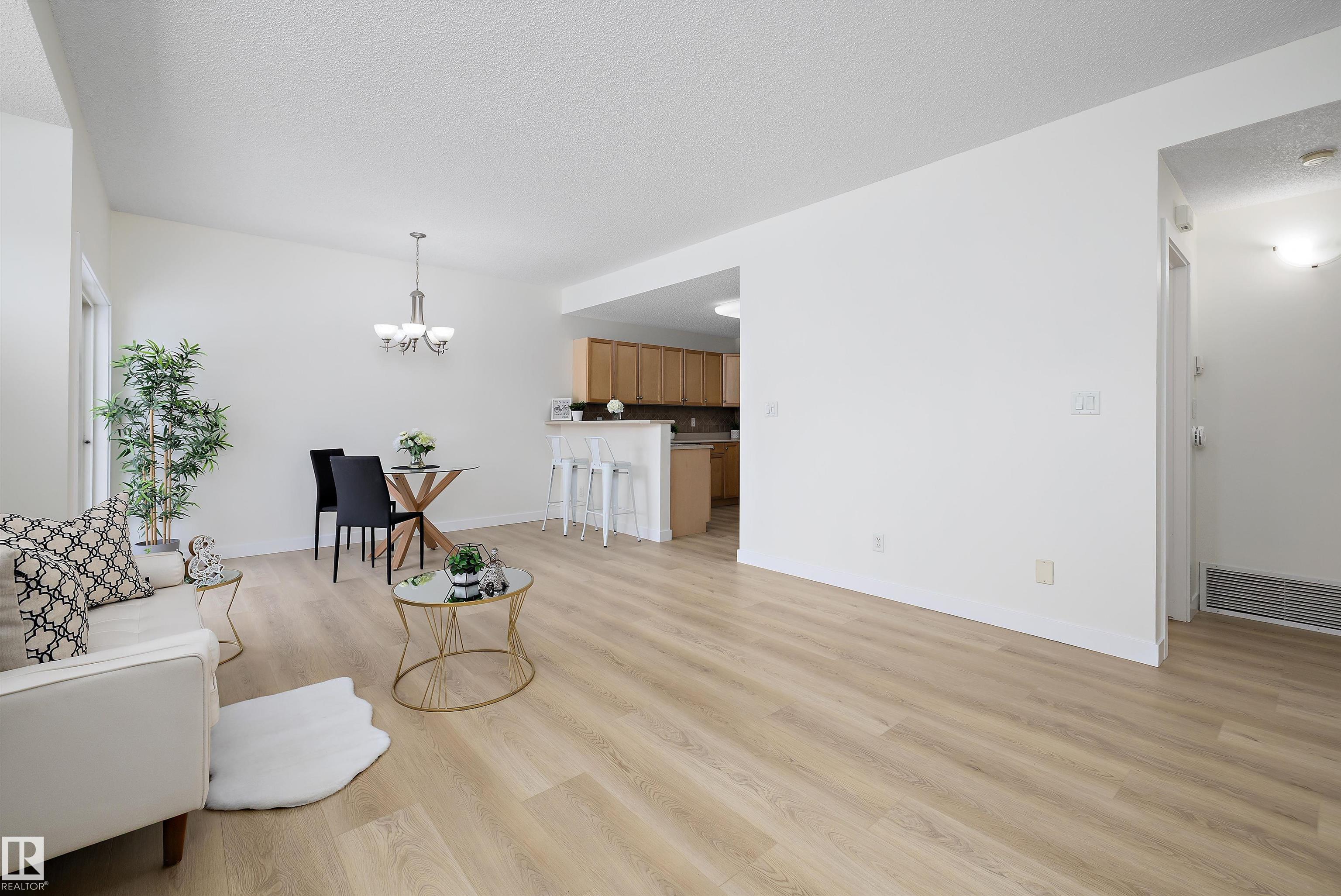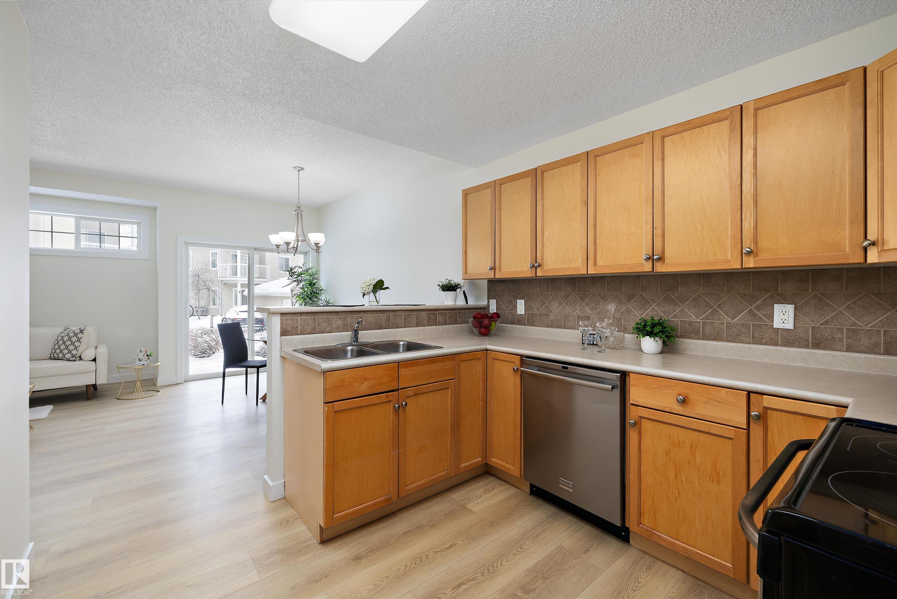 This beautifully renovated ground floor end unit is the perfect home within the tranquil Lakeland Ridge condo complex, boasting brand new vinyl plank flooring and a warm white paint palette. The unit includes a spacious living room designed in an open concept style, enhanced by sliding doors that open to a sunny east-facing front patio with a gas BBQ hookup. The generous kitchen features an eat-up island, ample cupboard space, a large refrigerator, and a closed-door storage/laundry room. Additionally, the primary bedroom is spacious, complete with a large closet and a full four-piece ensuite bathroom. You will have access to your outdoor storage area, as well as a parking space conveniently situated right in front of your unit. The monthly condo fee includes water, professional management, grass cutting & snow removal. Fabulous location in popular Lakeland Ridge! Close to schools, parks, trails, transit, shopping and more!