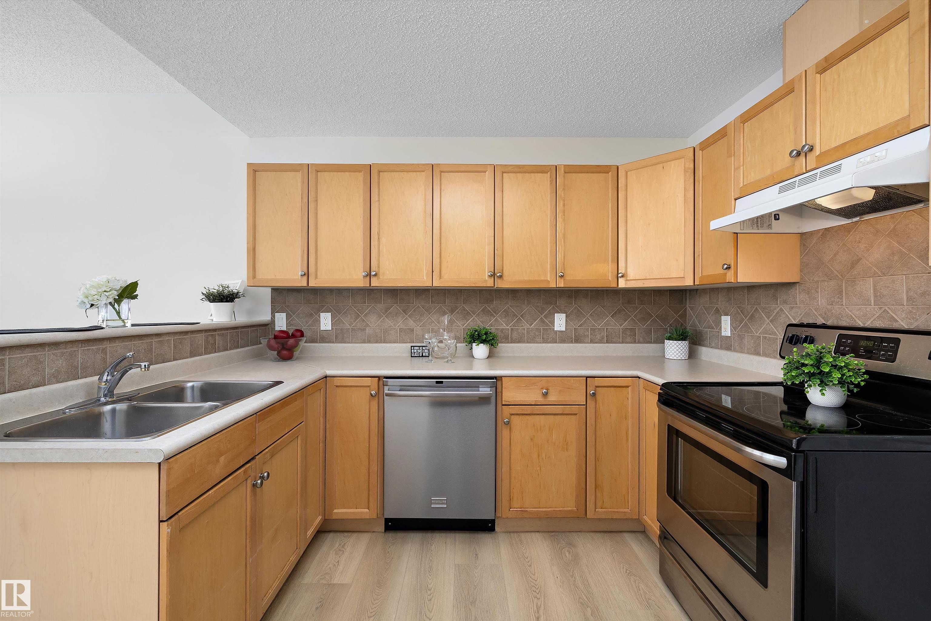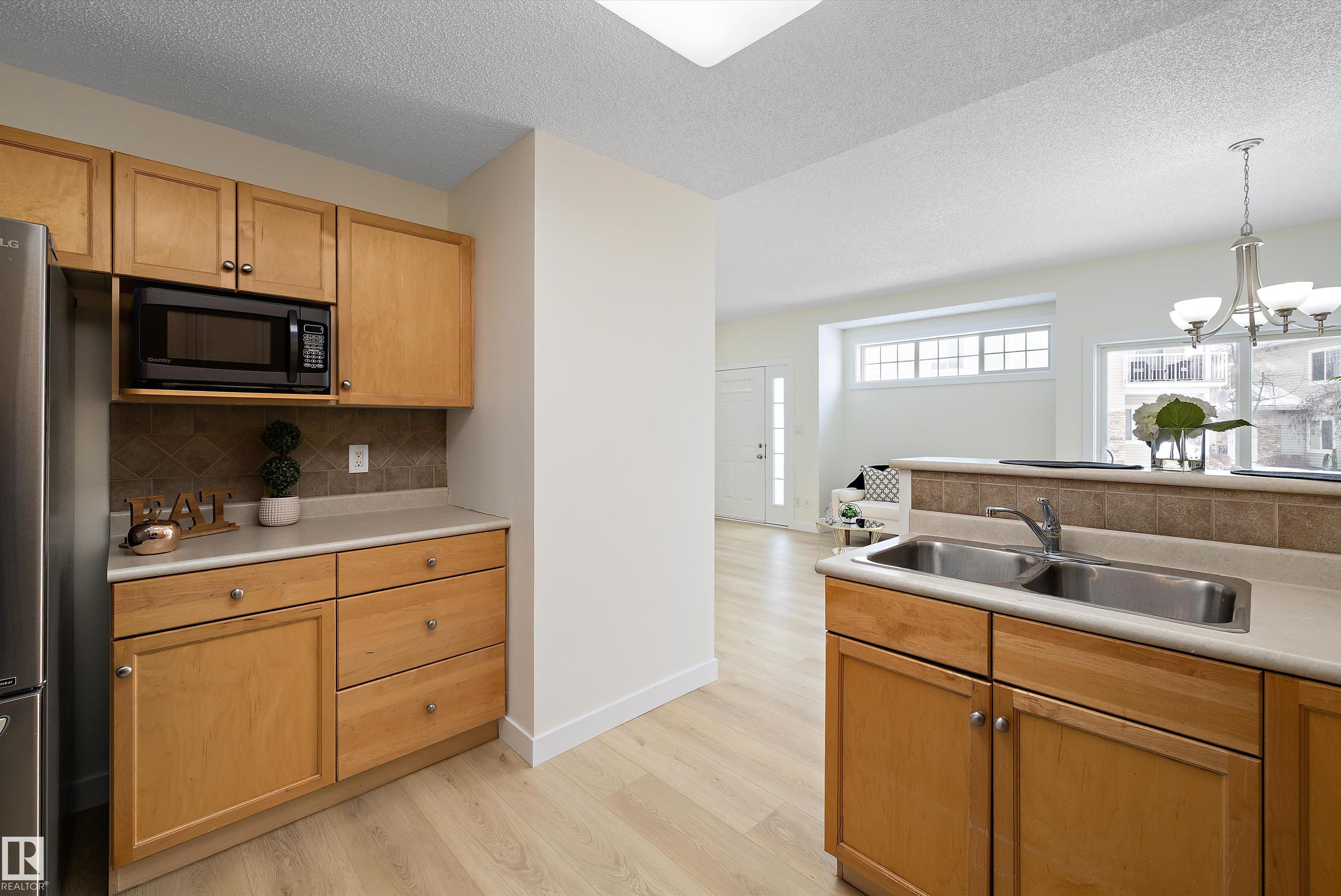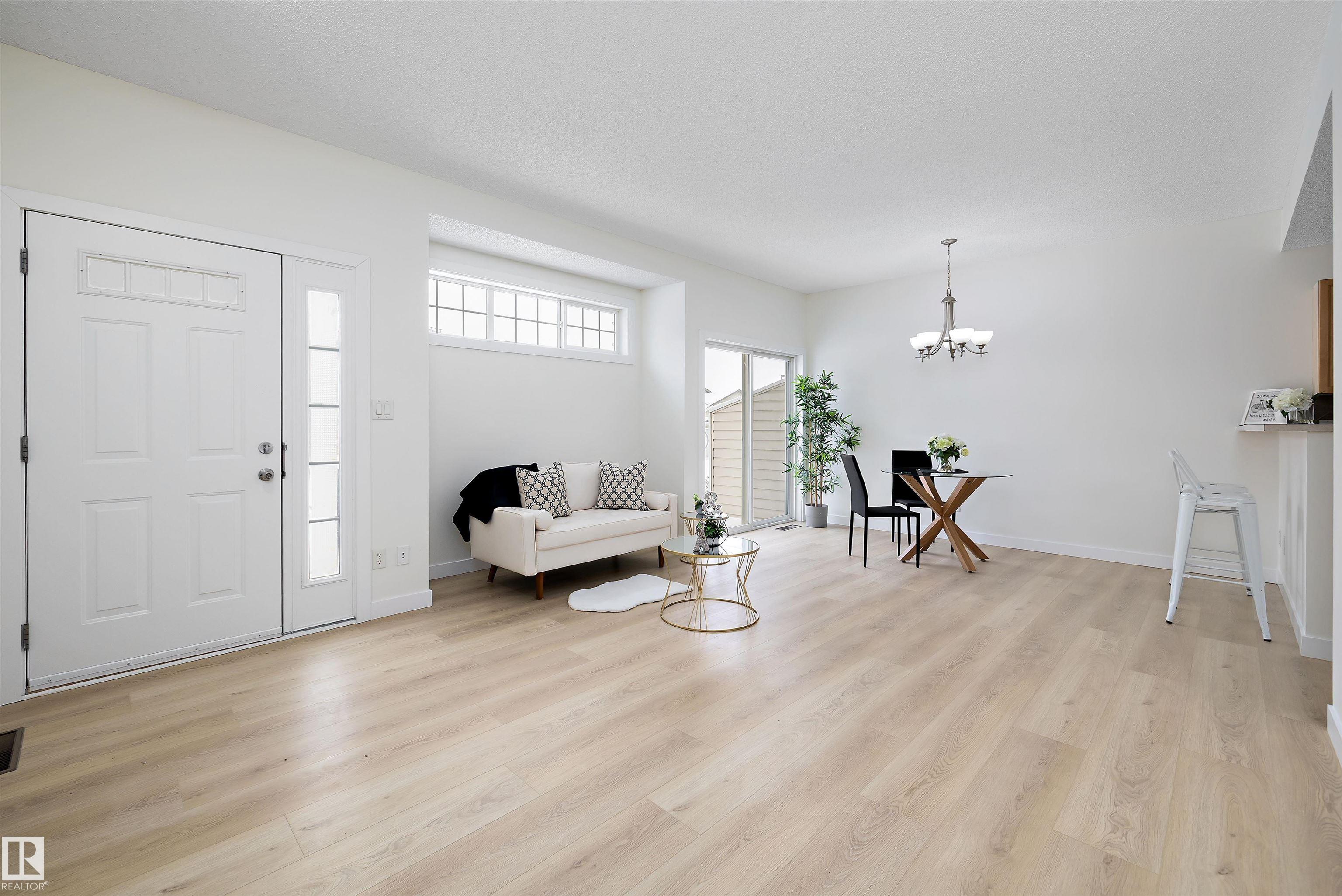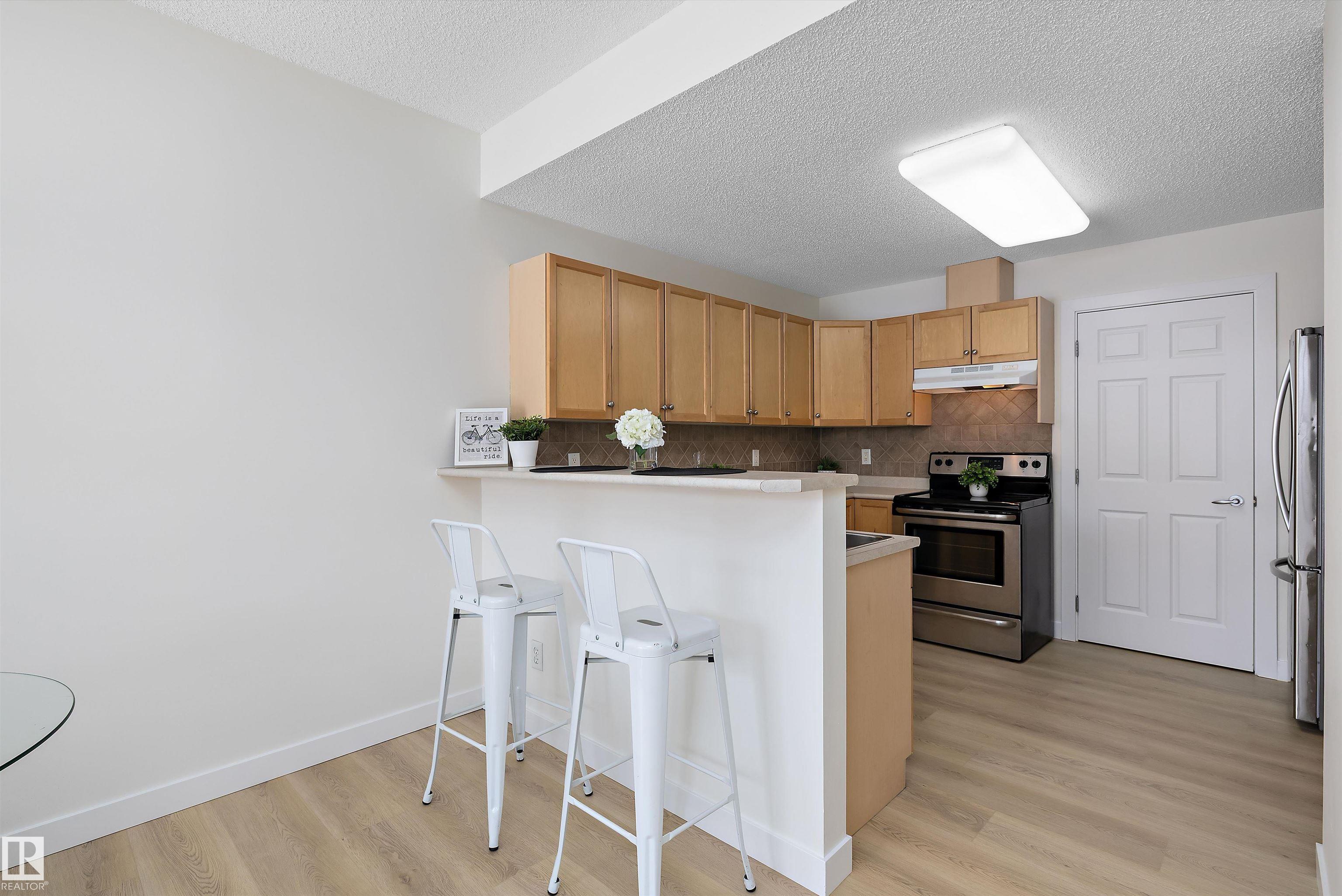 This beautifully renovated ground floor end unit is the perfect home within the tranquil Lakeland Ridge condo complex, boasting brand new vinyl plank flooring and a warm white paint palette. The unit includes a spacious living room designed in an open concept style, enhanced by sliding doors that open to a sunny east-facing front patio with a gas BBQ hookup. The generous kitchen features an eat-up island, ample cupboard space, a large refrigerator, and a closed-door storage/laundry room. Additionally, the primary bedroom is spacious, complete with a large closet and a full four-piece ensuite bathroom. You will have access to your outdoor storage area, as well as a parking space conveniently situated right in front of your unit. The monthly condo fee includes water, professional management, grass cutting & snow removal. Fabulous location in popular Lakeland Ridge! Close to schools, parks, trails, transit, shopping and more!