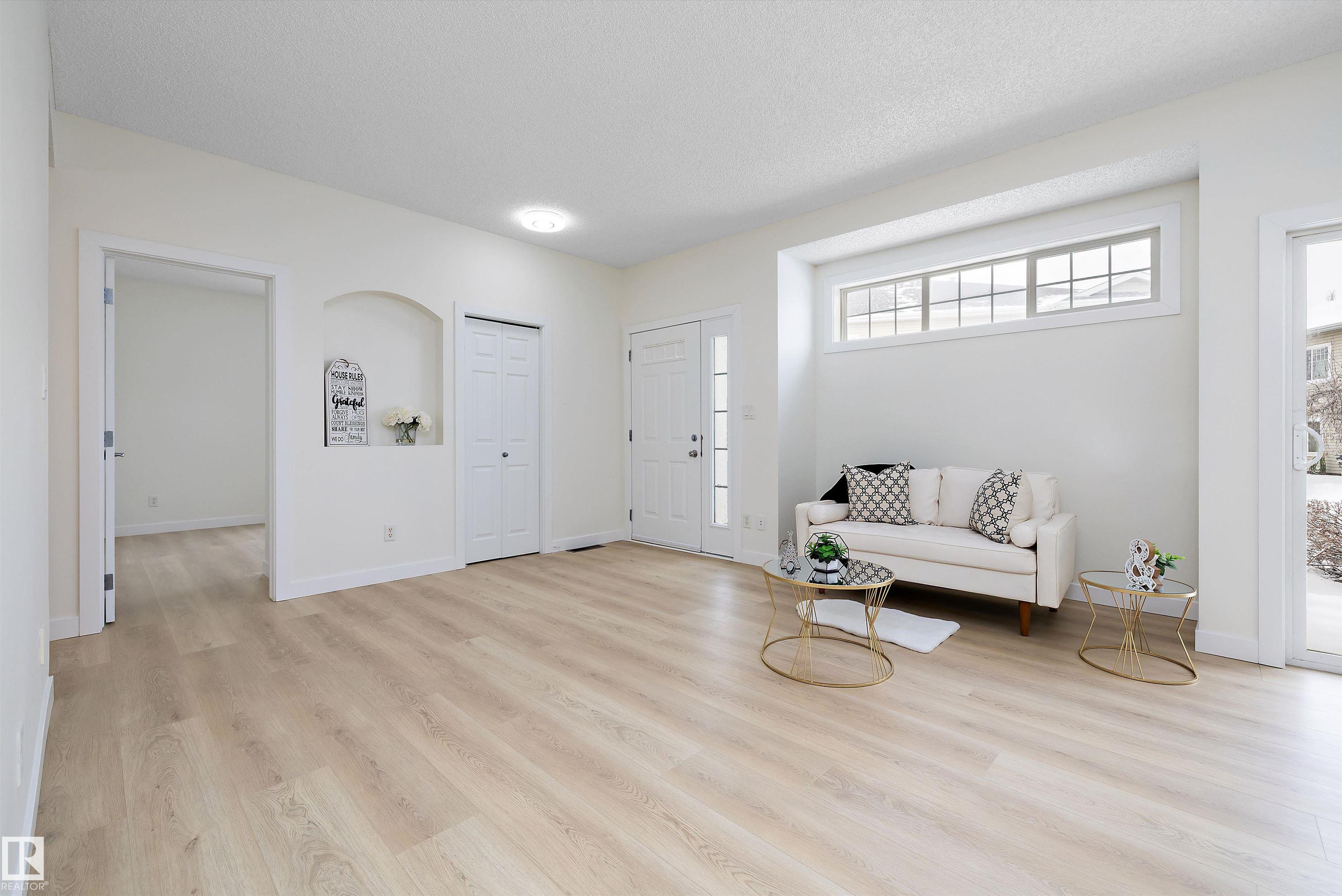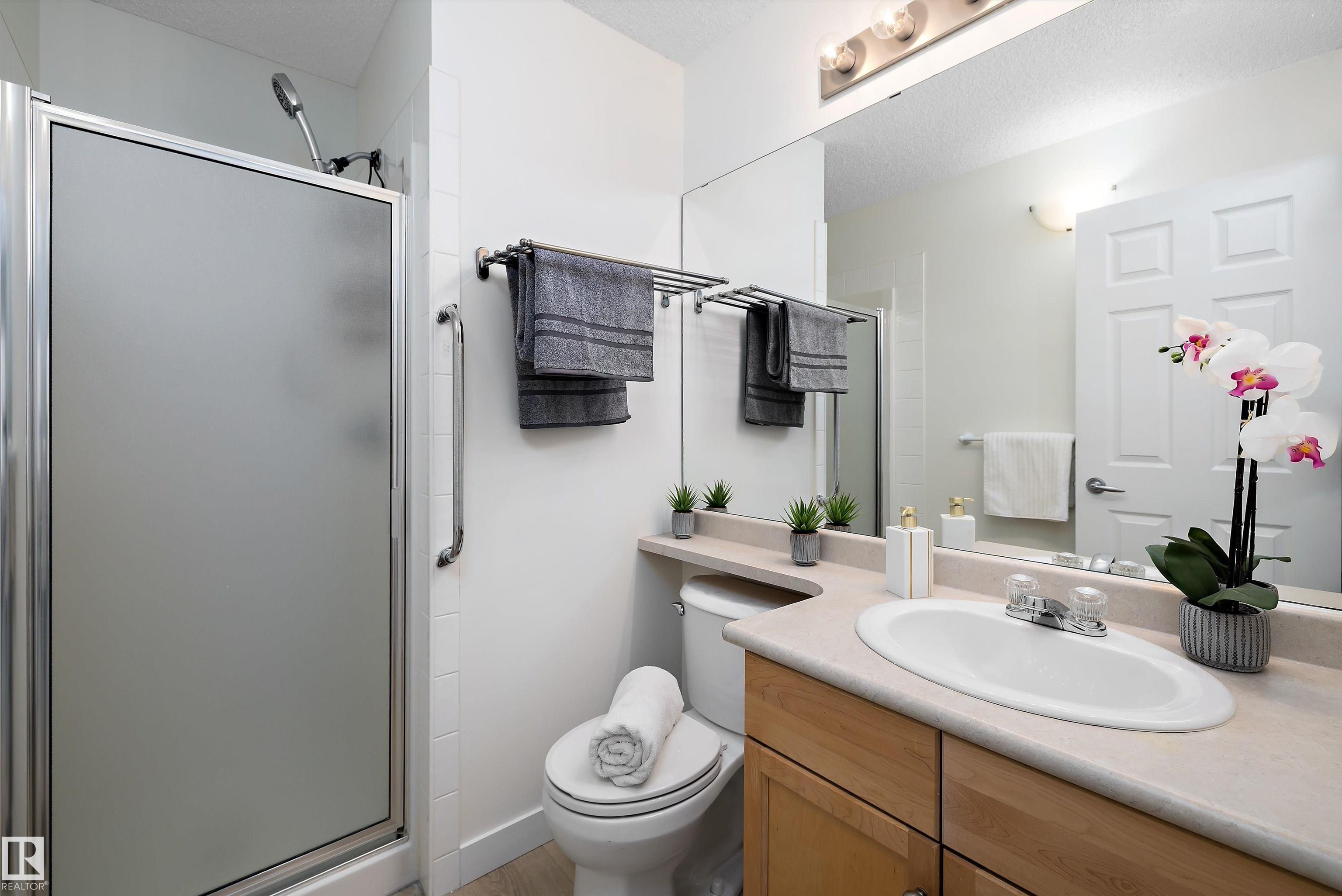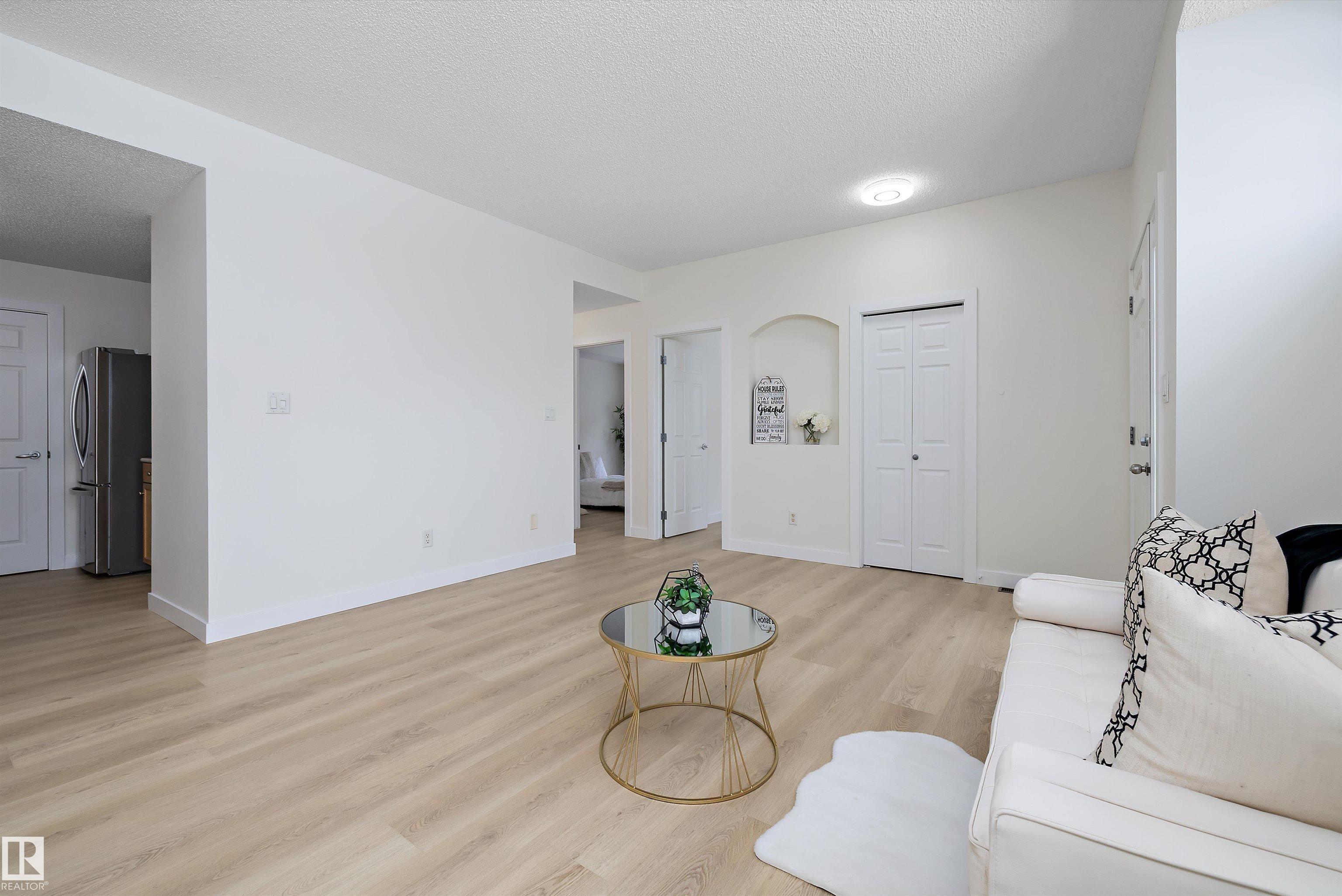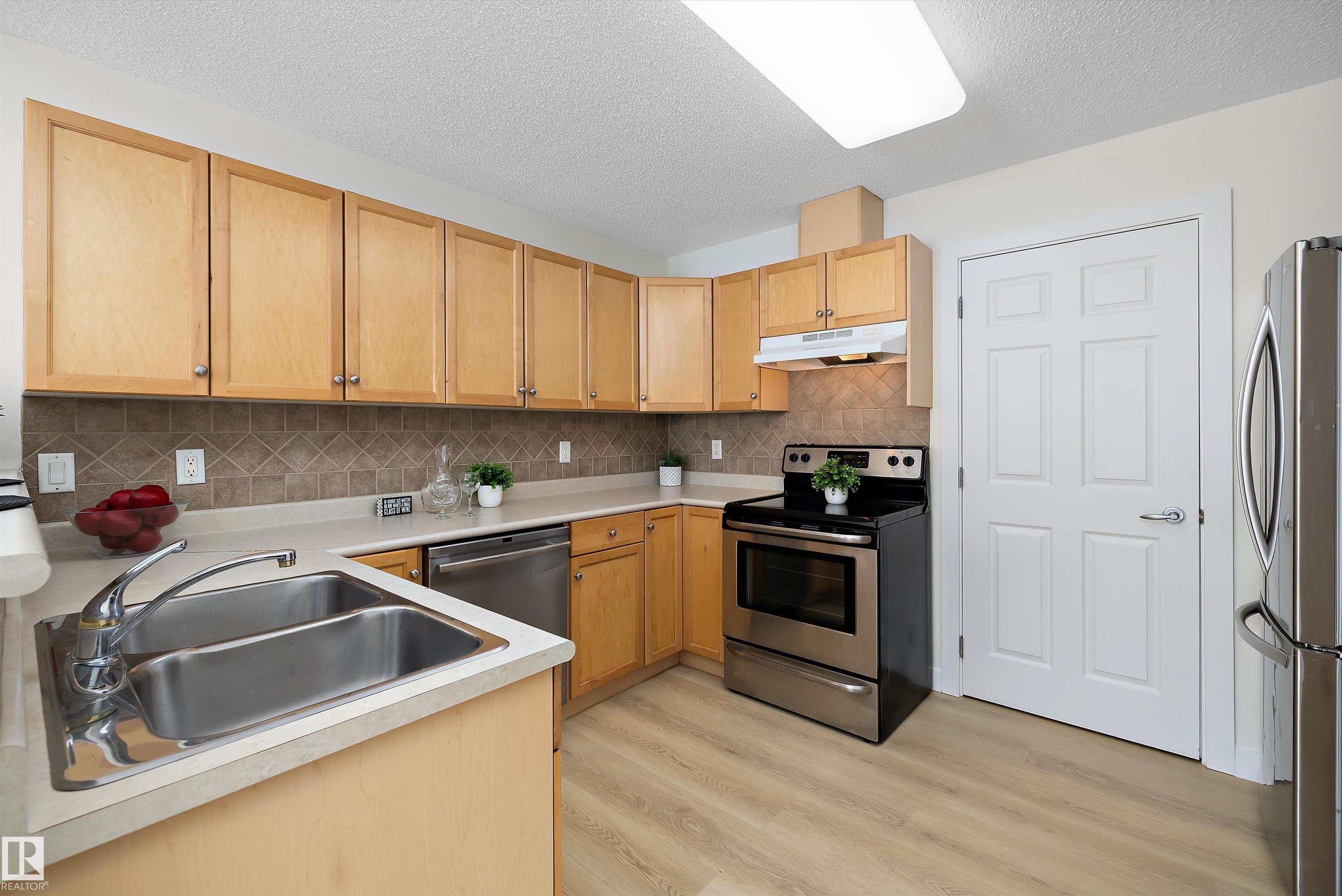 This beautifully renovated ground floor end unit is the perfect home within the tranquil Lakeland Ridge condo complex, boasting brand new vinyl plank flooring and a warm white paint palette. The unit includes a spacious living room designed in an open concept style, enhanced by sliding doors that open to a sunny east-facing front patio with a gas BBQ hookup. The generous kitchen features an eat-up island, ample cupboard space, a large refrigerator, and a closed-door storage/laundry room. Additionally, the primary bedroom is spacious, complete with a large closet and a full four-piece ensuite bathroom. You will have access to your outdoor storage area, as well as a parking space conveniently situated right in front of your unit. The monthly condo fee includes water, professional management, grass cutting & snow removal. Fabulous location in popular Lakeland Ridge! Close to schools, parks, trails, transit, shopping and more!