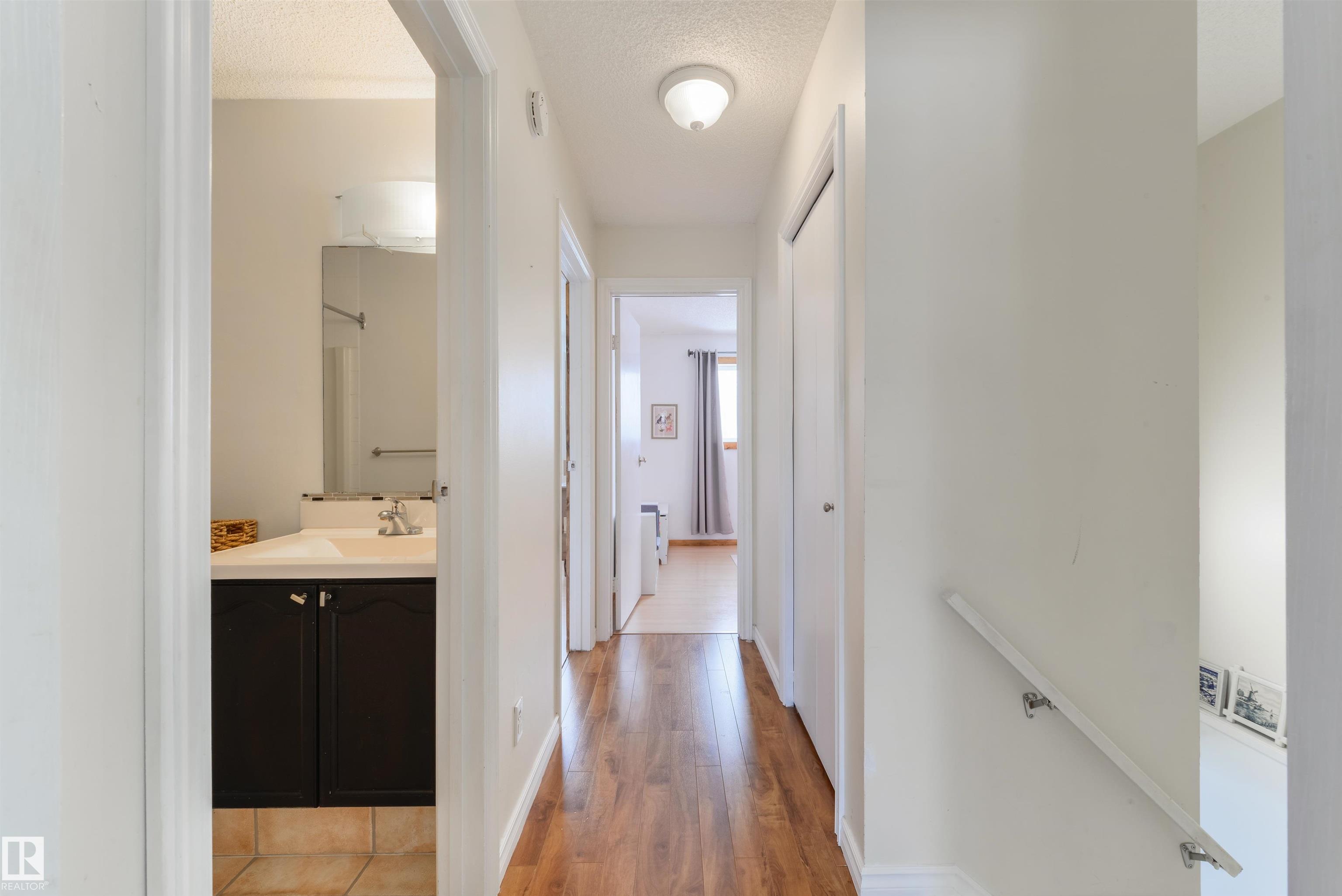 Super cute & affordable, with a fantastic GREENSPACE view! Located in one of the best spots in the entire complex, this charming townhouse is perfectly situated to capture those unobstructed evening sunsets off your deck! It features a wonderful layout, lovely living room, spacious kitchen with ample cupboard & countertop space, side pantry & separate dinette, 3 sizeable bedrooms including a king-sized owner?s suite with dual closets, 3 total bathrooms (one on every level!), and a fully-finished basement with a rec room & cozy gas fireplace. With a desirable WEST-FACING exposure and walking trails right outside your door, this home is complete with 2 parking stalls, and is steps away from playgrounds, schools, & amenities.