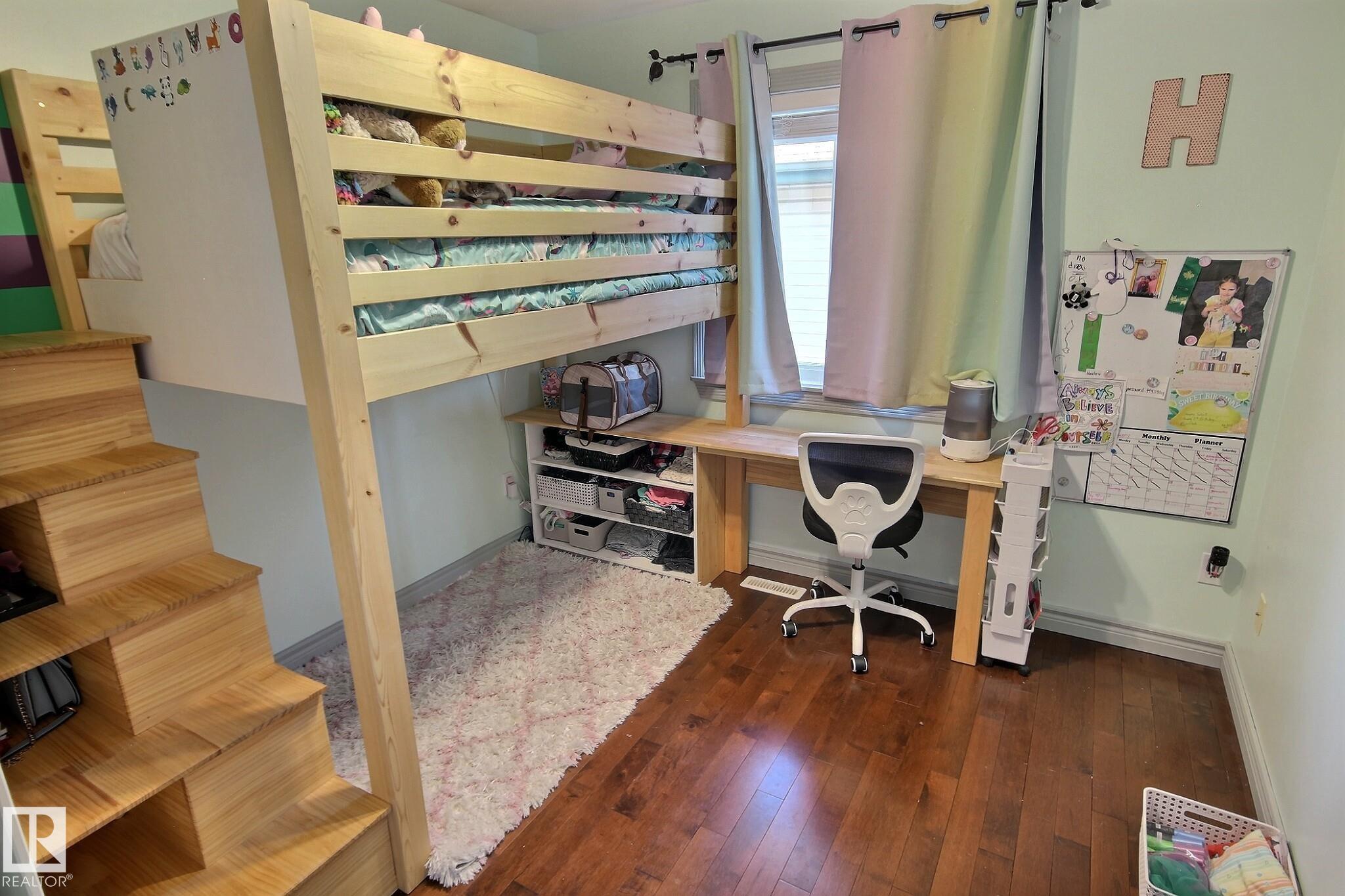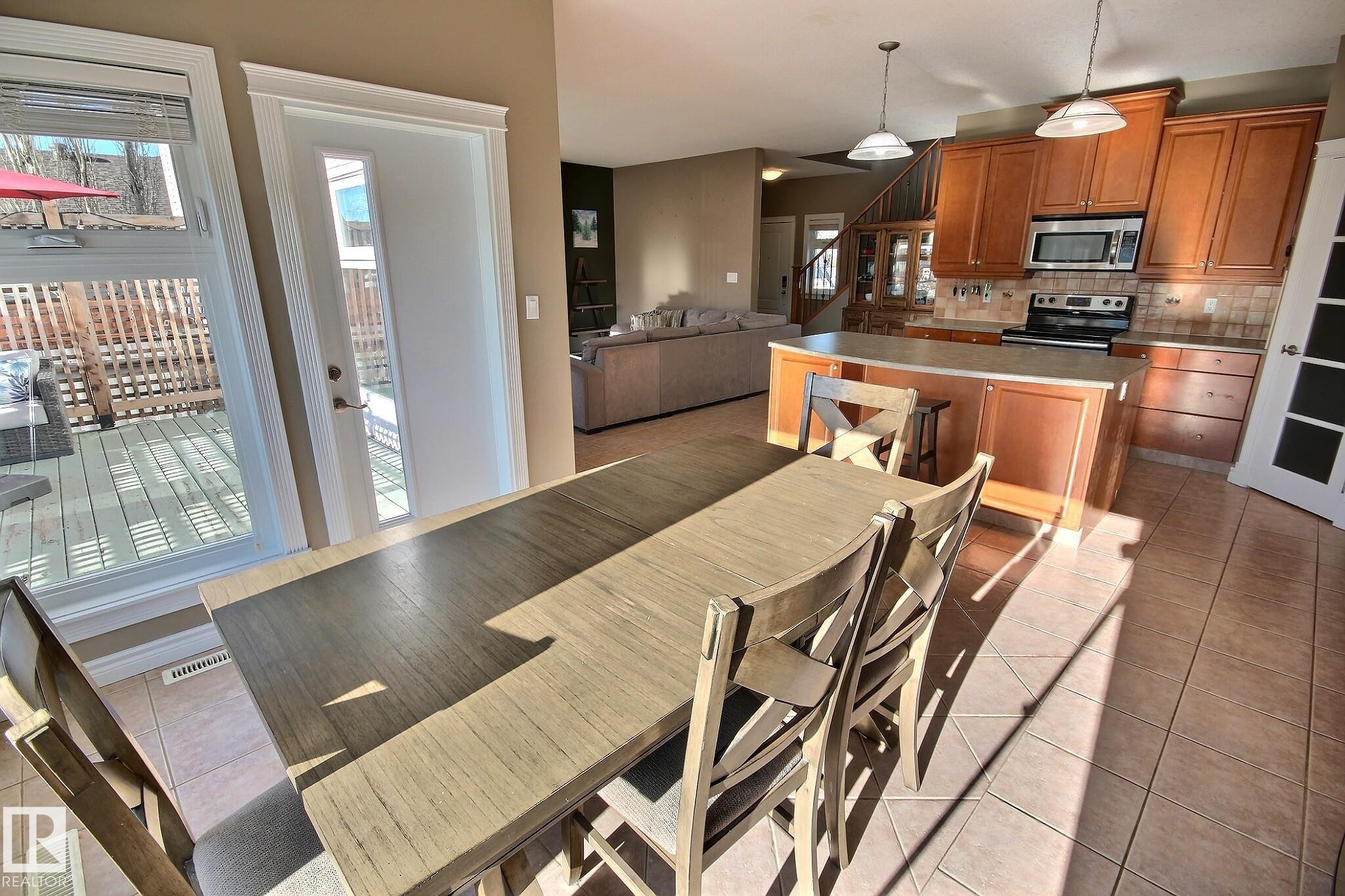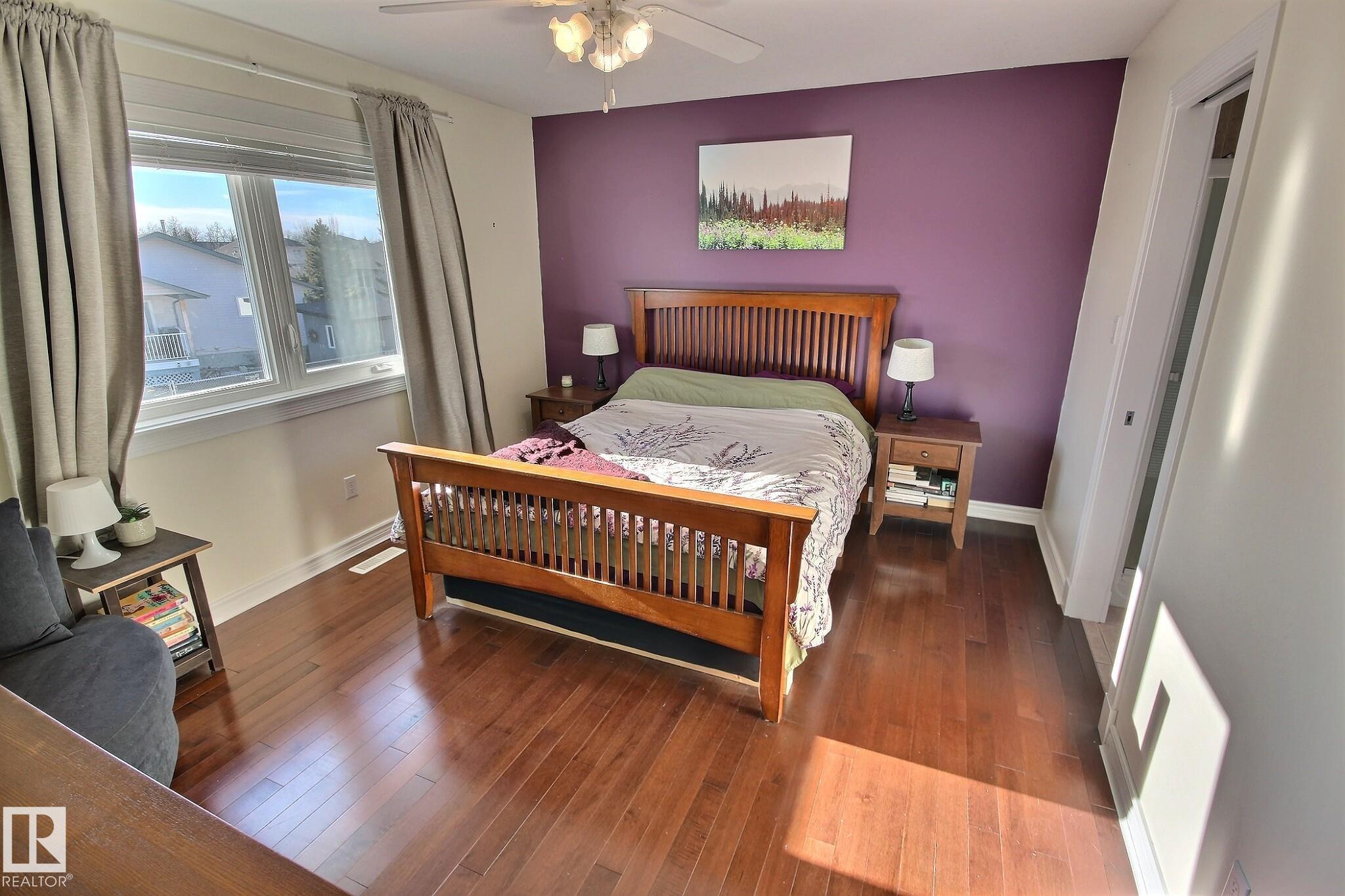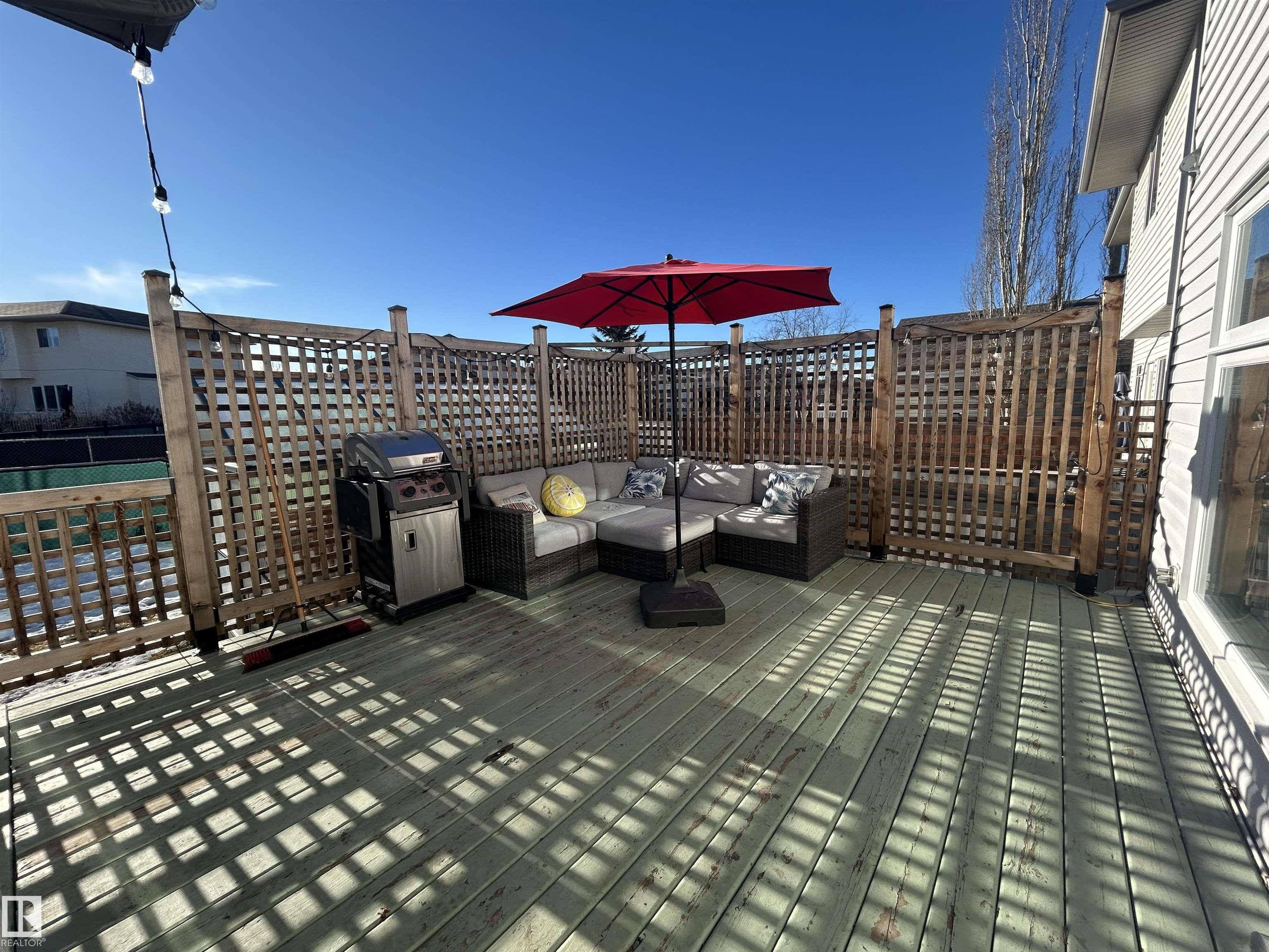 $50,000 in recent renovations! ALL new triple pane windows, NEW HE furnace & NEW shingles! Air Conditioned & across the street from a park & greenspace this beautiful home offers a super functional layout, open concept main floor w/full wall of huge windows, SW exposure floods the home in natural light, loads of cabinetry, island w/ extended eating bar, walk thru pantry, open to dining nook with Garden door access to attached back deck & fenced and landscaped yard w/handy back alley access, open to living room anchored by GAS fireplace w/mantle, down hall to 1/2 bath & laundry, upper level w/big vaulted bonus room. 3 bedrooms, primary ensuite with jetted tub & shower, other 2 rooms a good size & share a 4 piece bath, framed basement being used as a big playroom with carpeting & offers loads of framed in storage. Close to schools, around the corner from shops and restaurants, easy access to Edmonton and the international airport. Nothing to do here but move in and enjoy!