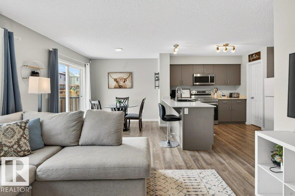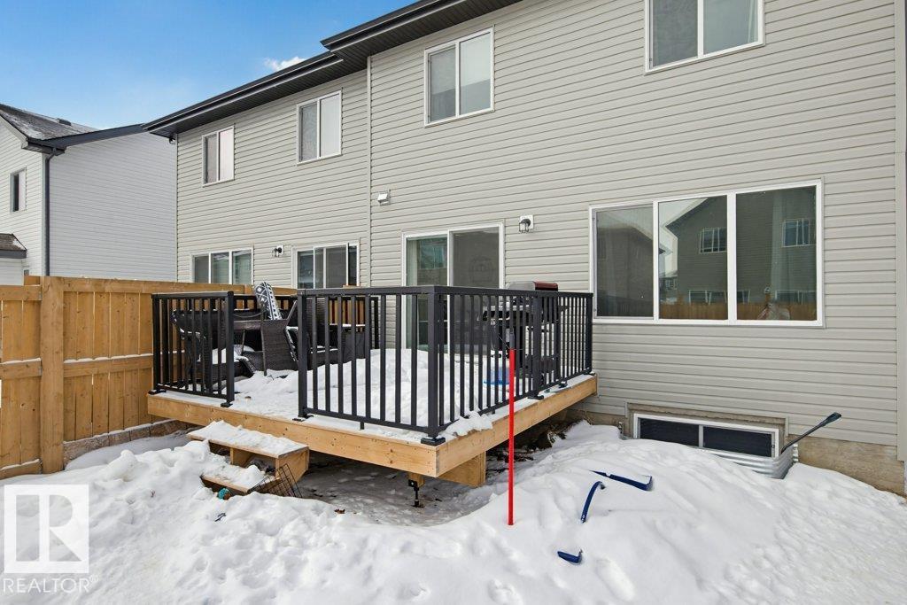 Affordable living in Stony Plain! This well situated Duplex is perfect for a growing family. The first thing you notice is the large and welcoming entryway. The main floor has an open-concept living plan with a modern grey kitchen, white quartz countertops, and a spacious walk-in pantry. A large deck right off the kitchen, is perfect for BBQ's and family time. Upstairs, there is a centrally located bonus room and an extra bonus....UPPER laundry! How convenient is that? The Primary is KING SIZED with a walk-in closet and a 4-piece ensuite. Plus, the two other bedrooms are also spacious enough for queen beds, dressers, and even desks! In the basement, it is ready for your vision. You can build your own space, or you can develop a basement suite and create an opportunity for yourself. Plus, enjoy a DOUBLE garage and driveway for lots of parking. The location is wonderful too, as Stony Plain is loved for its walking trails, summer events, and the historic downtown with all the shops.
