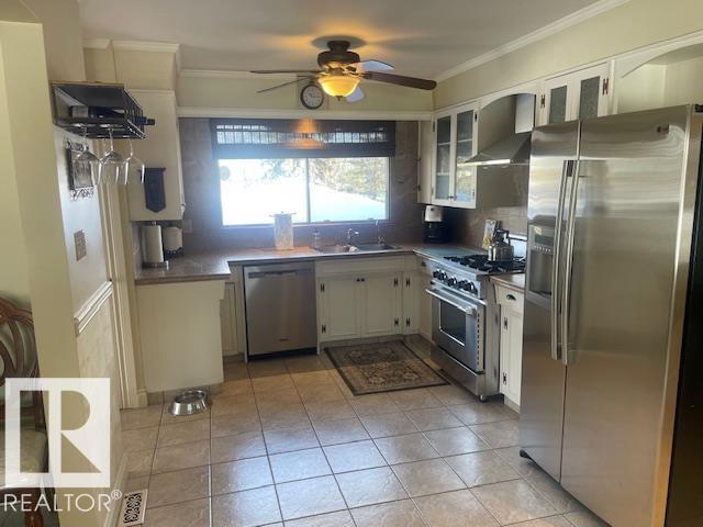 Beautifully upgraded from top to bottom, this exceptional home blends modern finishes with warm inviting spaces - perfect for families, entertainers and anyone seeking room to spread out. The open concept main floor features durable tile flooring throughout, anchored by a stunning great room with a cozy wood stove and seamless flow into the dining and kitchen areas. The chef -inspired kitchen stands out with its Blue Star gas range, ample cabinetry and generous work space. 2 bedrooms are located o n main level including a bright primary suite with a 2 piece ensuite. The upgraded 4 piece main bathroom completes this level. Downstairs the fully developed area offers a massive family room, dedicated games room, spacious laundry area and a 3 piece bathroom create flexibility for recreation and guests. A huge bedroom provides privacy and comfort. Home is set on a huge pie lot, beautifully landscaped, two tiered deck, two gazaebos, firepit, hot tub,an oasis. Garage 22 x 25, heated, Loads of parking