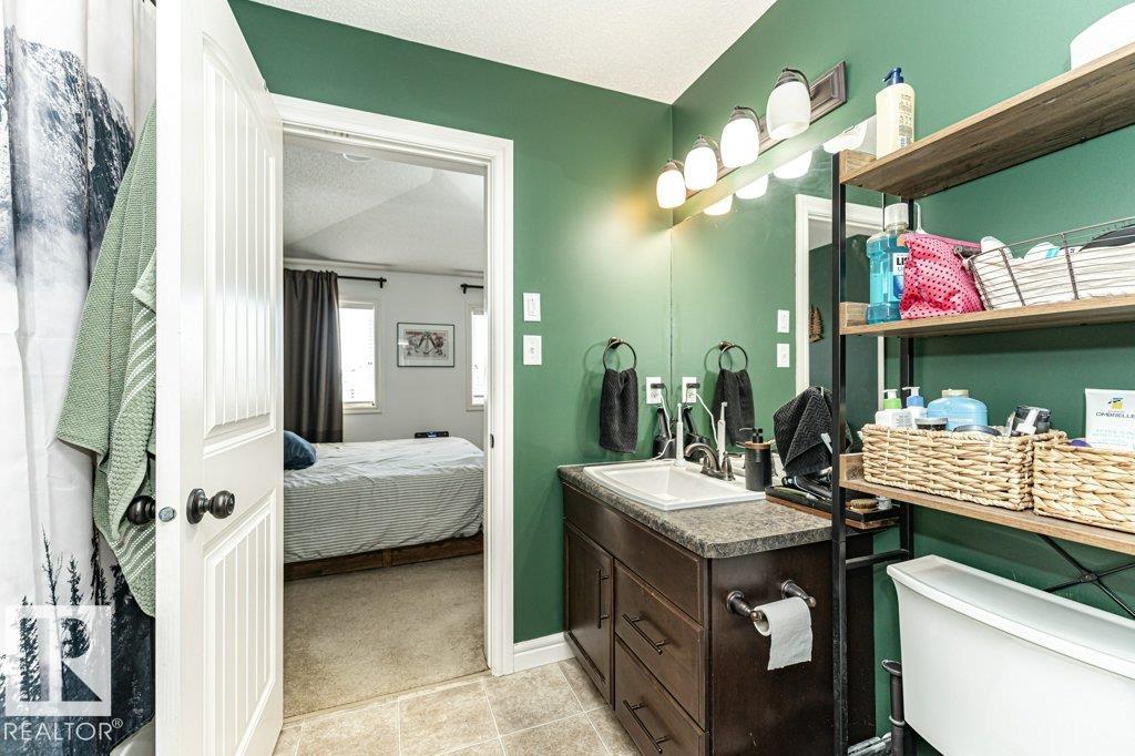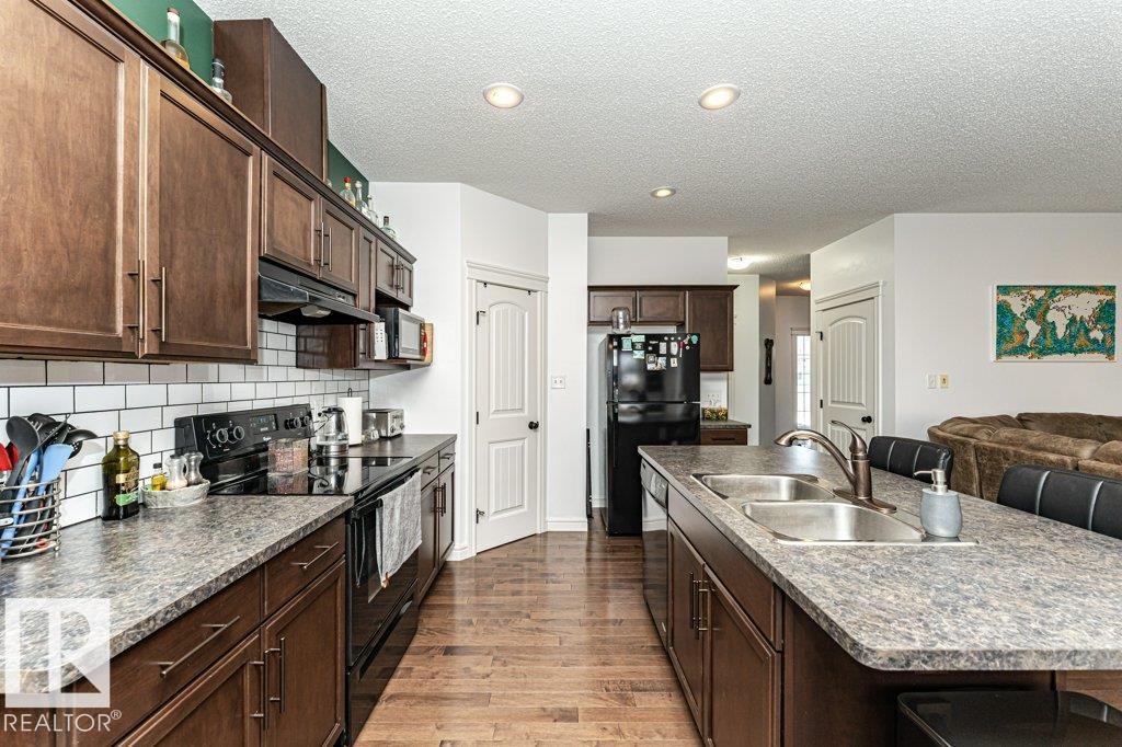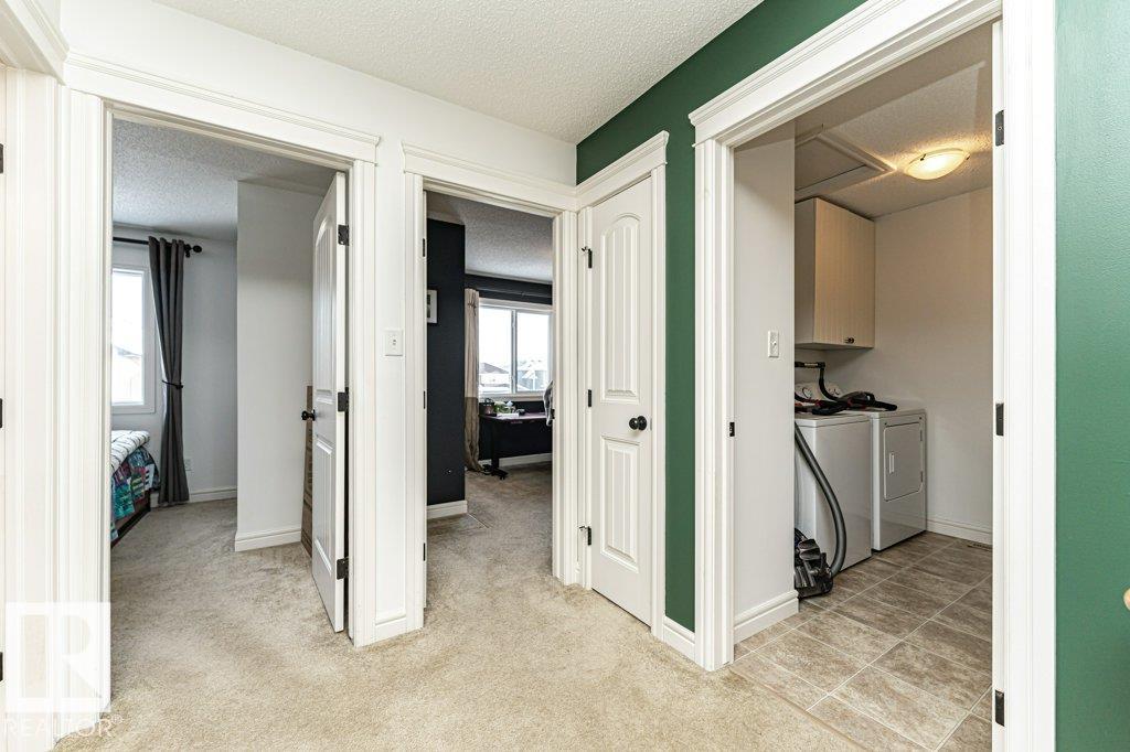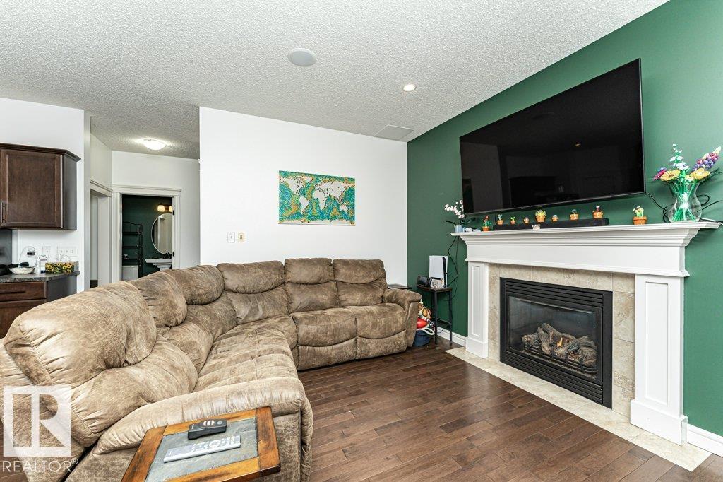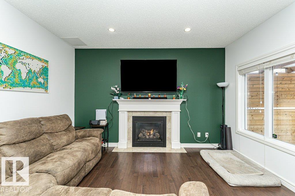 Welcome home to this 1526 sq ft AIR CONDITIONED home with Double attached garage. Offering 3 bedroom plus BONUS ROOM, well maintained duplex in Fort Saskatchewan. Landscaped, Fenced, Window Coverings, A/C, speaker system and Appliances. Main floor features an open concept living space, the kitchen boasts a large, flat Island, walk through pantry and great cabinet space. The adjacent dinning area offers large windows and leads to the landscaped and fenced back yard. Enjoy your cozy living room with gas fireplace great for entertaining, or head upstairs to watch a movie in the great Bonus room space upstairs. There are 3 bedrooms up including the Master which you enter through stunning french door and includes a walk in closet with organizer and ensuite. Also enjoy the convenience of an upstairs laundry ROOM. Basement is Framed