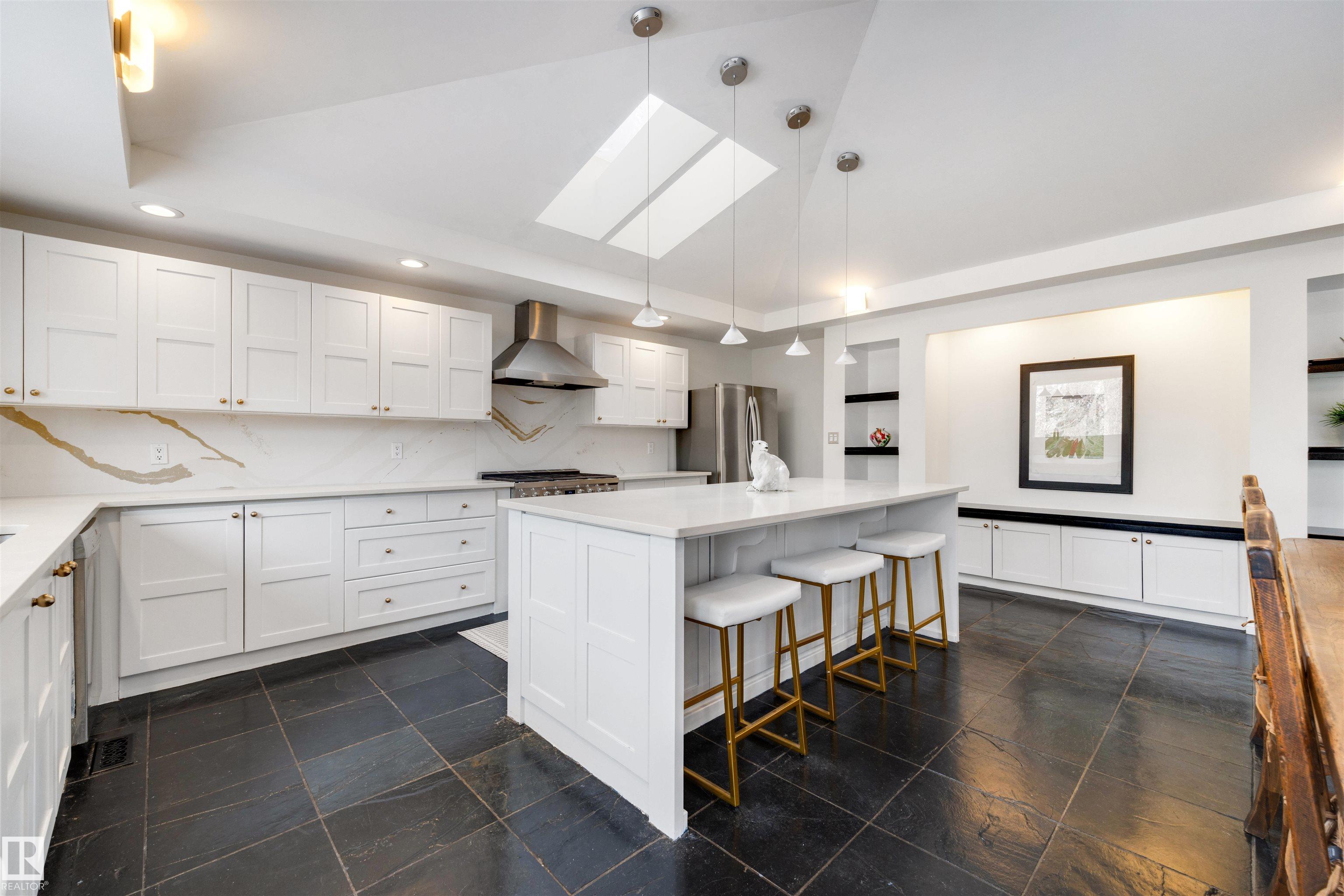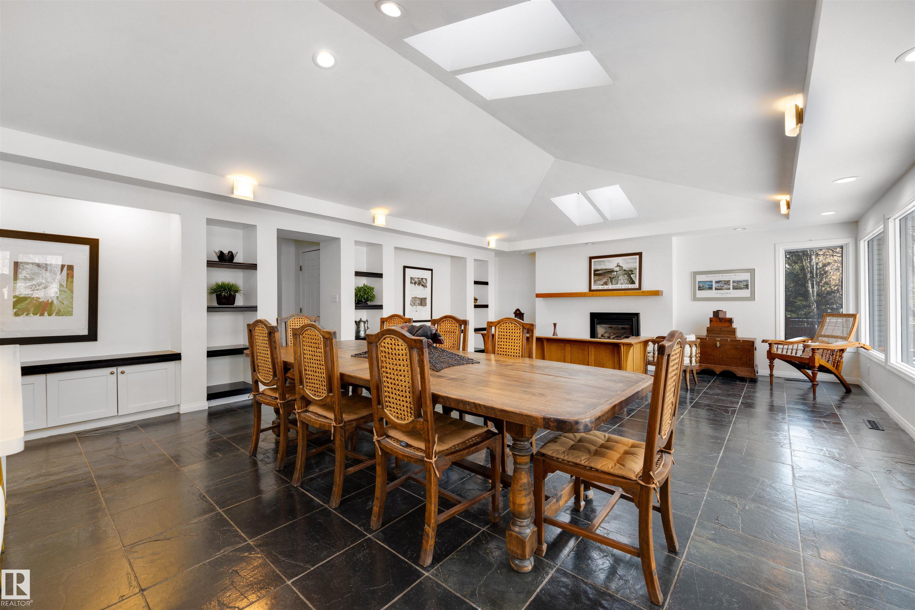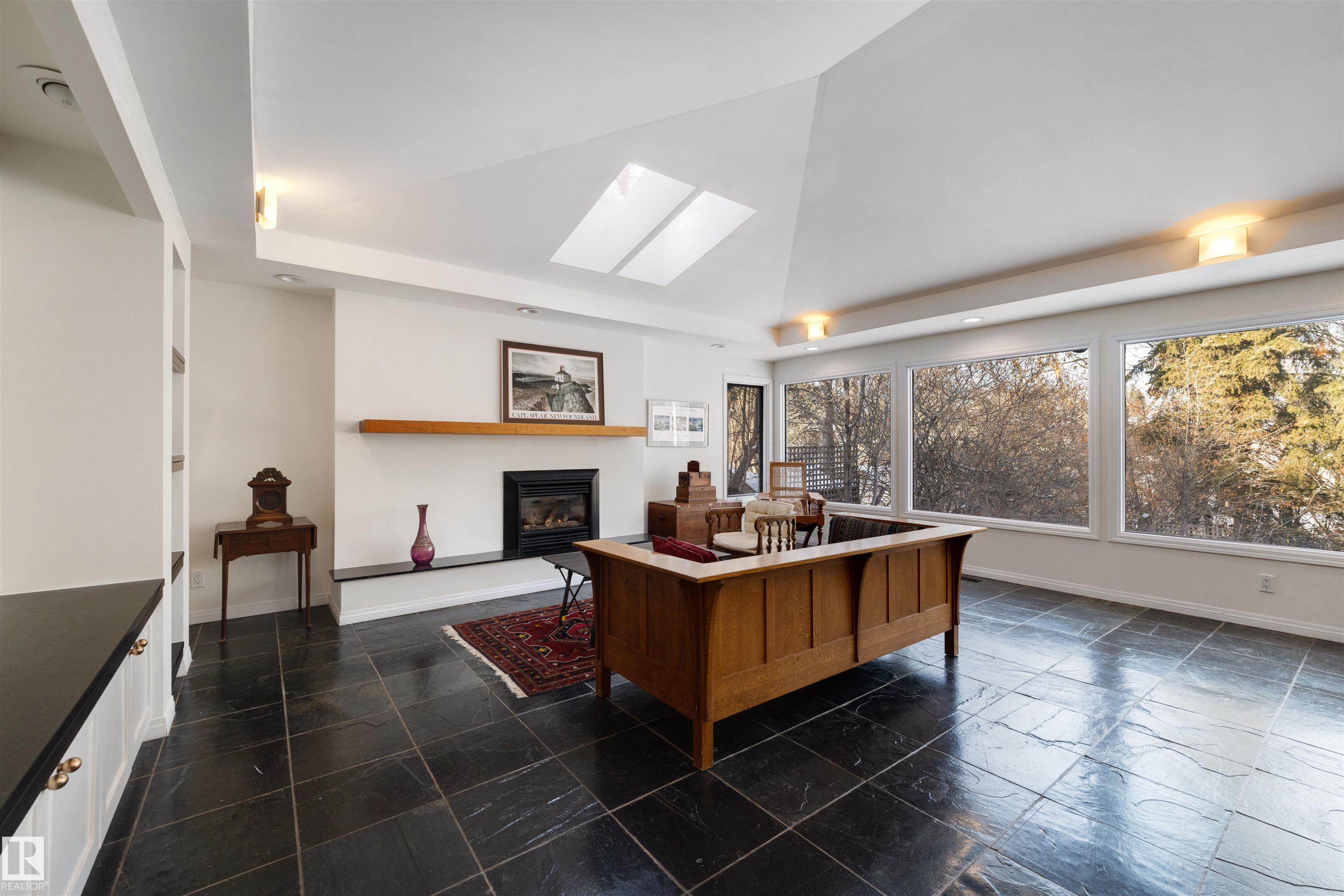 TRULY EXCEPTIONAL ULTRA EXCLUSIVE custom bungalow backing directly onto prestigious PARK DRIVE RAVINE, offering a rare blend of luxury, privacy, and natural beauty in the heart of Edmonton. NEWER WINDOWS AND SHINGLES. The thoughtfully designed main floor features 3 bedrooms and 2 full bathrooms, highlighted by an expansive open-concept great room. The chef-inspired kitchen includes high-end appliances, custom cabinetry, and an oversized island, perfect for entertaining. Skylights fill the dining area with natural light, while the inviting living room with fireplace and large windows showcase stunning ravine views. The fully finished lower level offers incredible flexibility with a large bedroom, deluxe bathroom, private gym, and spacious bonus room ideal for guests, hobbies, or a media lounge. RARE OPPORTUNITY TO OWN A CUSTOM UPGRADED HOME IN ONE OF EDMONTON'S SOUGHT AFTER LOCATIONS.