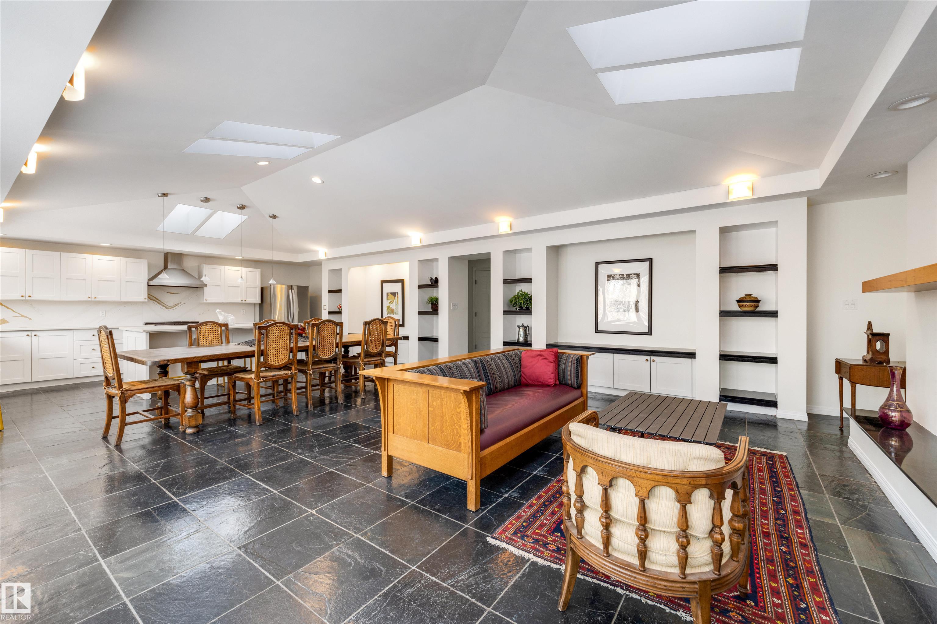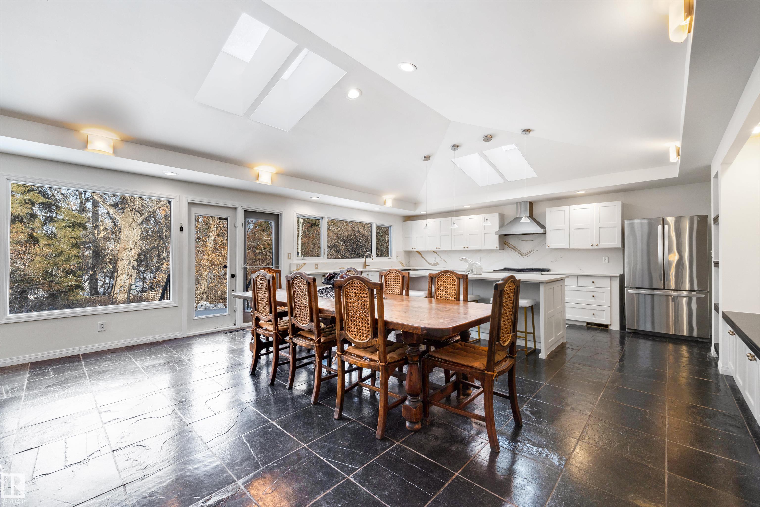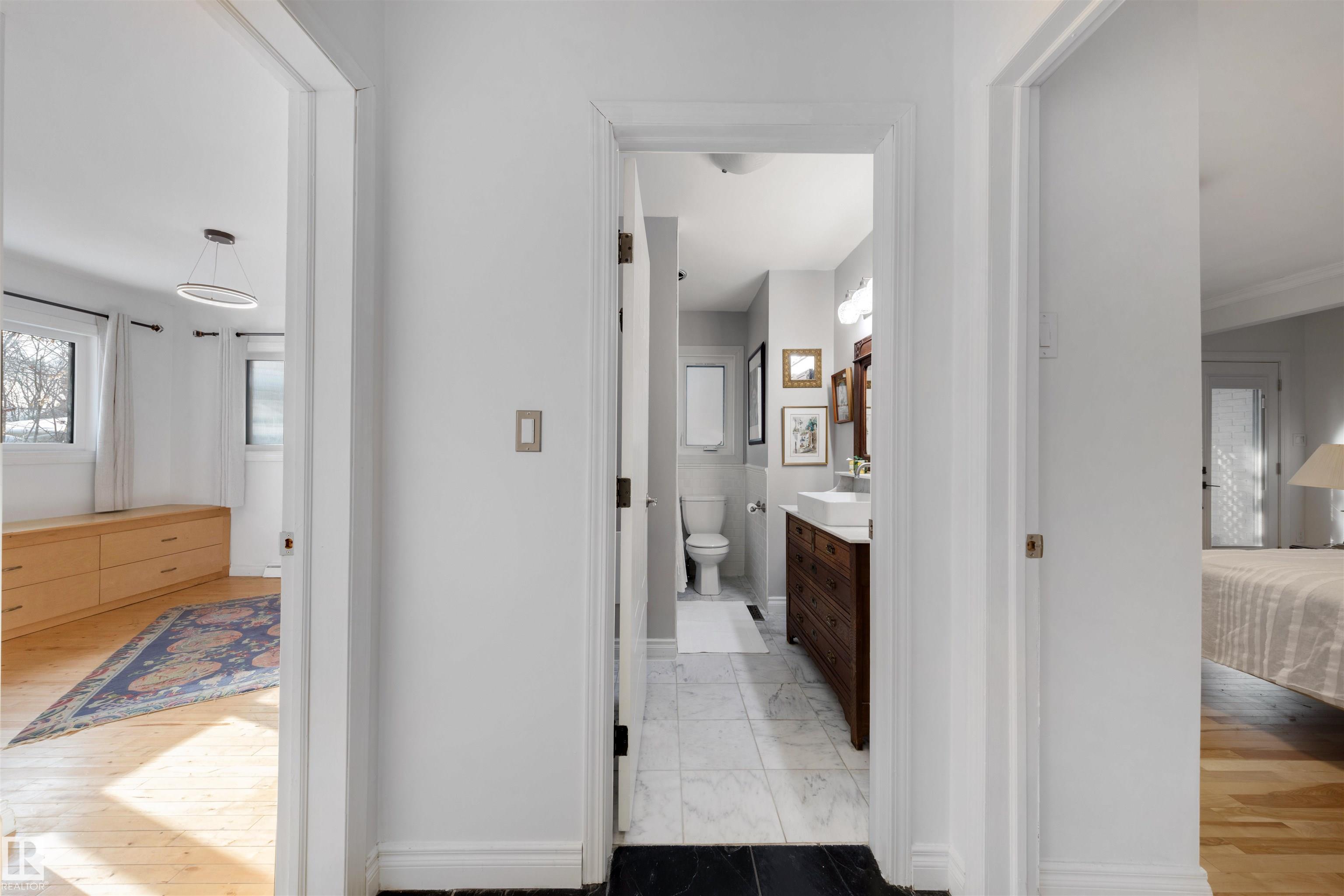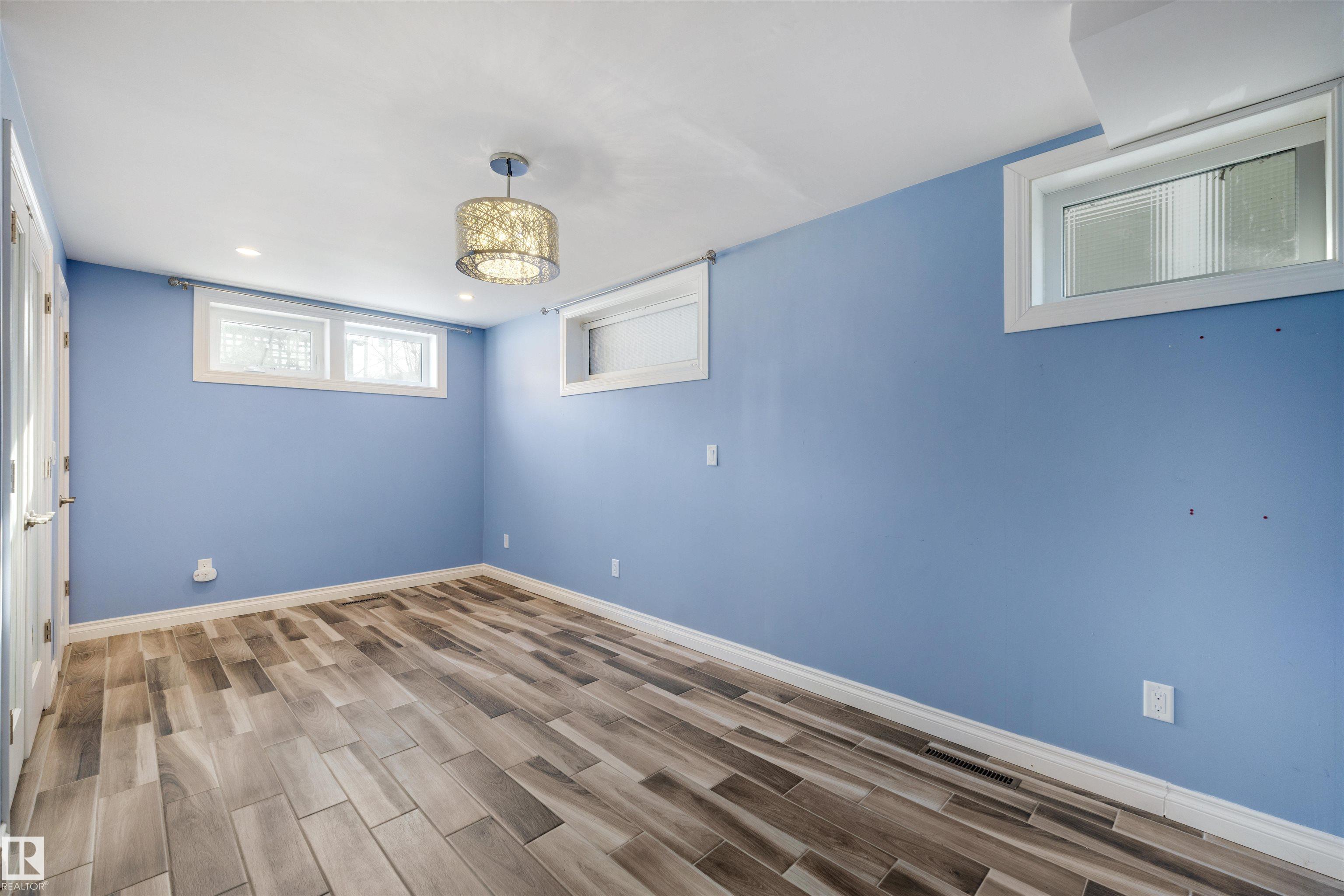 TRULY EXCEPTIONAL ULTRA EXCLUSIVE custom bungalow backing directly onto prestigious PARK DRIVE RAVINE, offering a rare blend of luxury, privacy, and natural beauty in the heart of Edmonton. NEWER WINDOWS AND SHINGLES. The thoughtfully designed main floor features 3 bedrooms and 2 full bathrooms, highlighted by an expansive open-concept great room. The chef-inspired kitchen includes high-end appliances, custom cabinetry, and an oversized island, perfect for entertaining. Skylights fill the dining area with natural light, while the inviting living room with fireplace and large windows showcase stunning ravine views. The fully finished lower level offers incredible flexibility with a large bedroom, deluxe bathroom, private gym, and spacious bonus room ideal for guests, hobbies, or a media lounge. RARE OPPORTUNITY TO OWN A CUSTOM UPGRADED HOME IN ONE OF EDMONTON'S SOUGHT AFTER LOCATIONS.