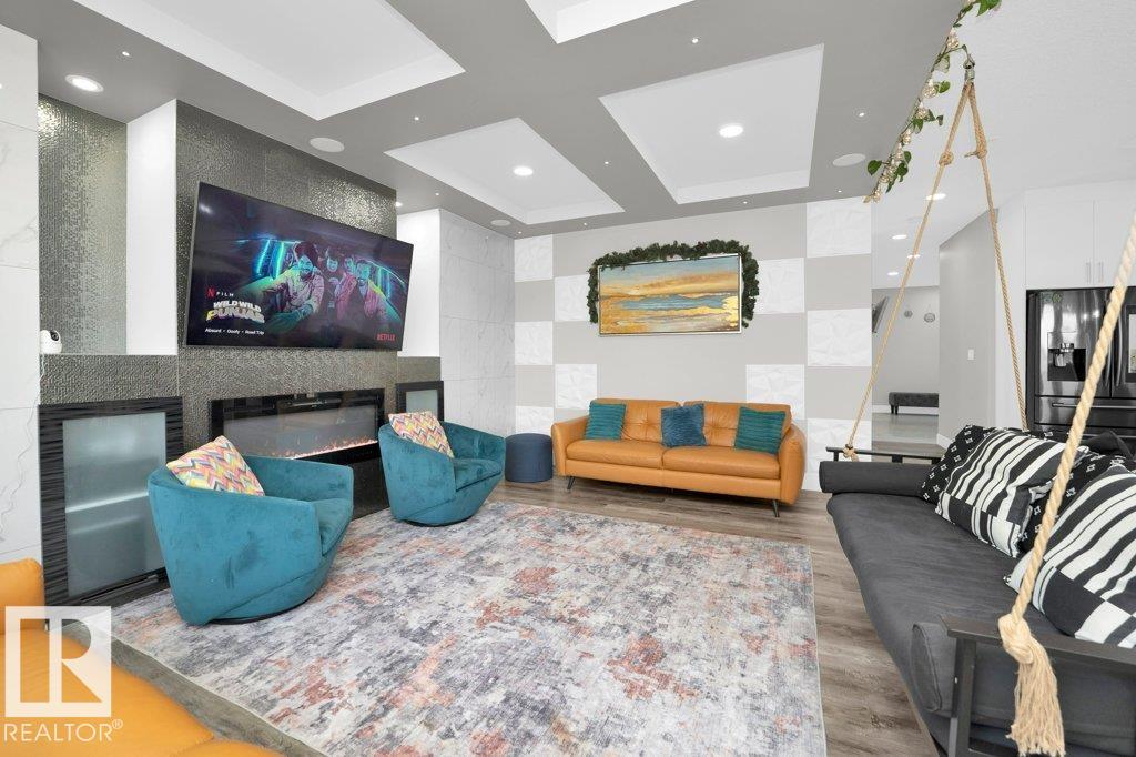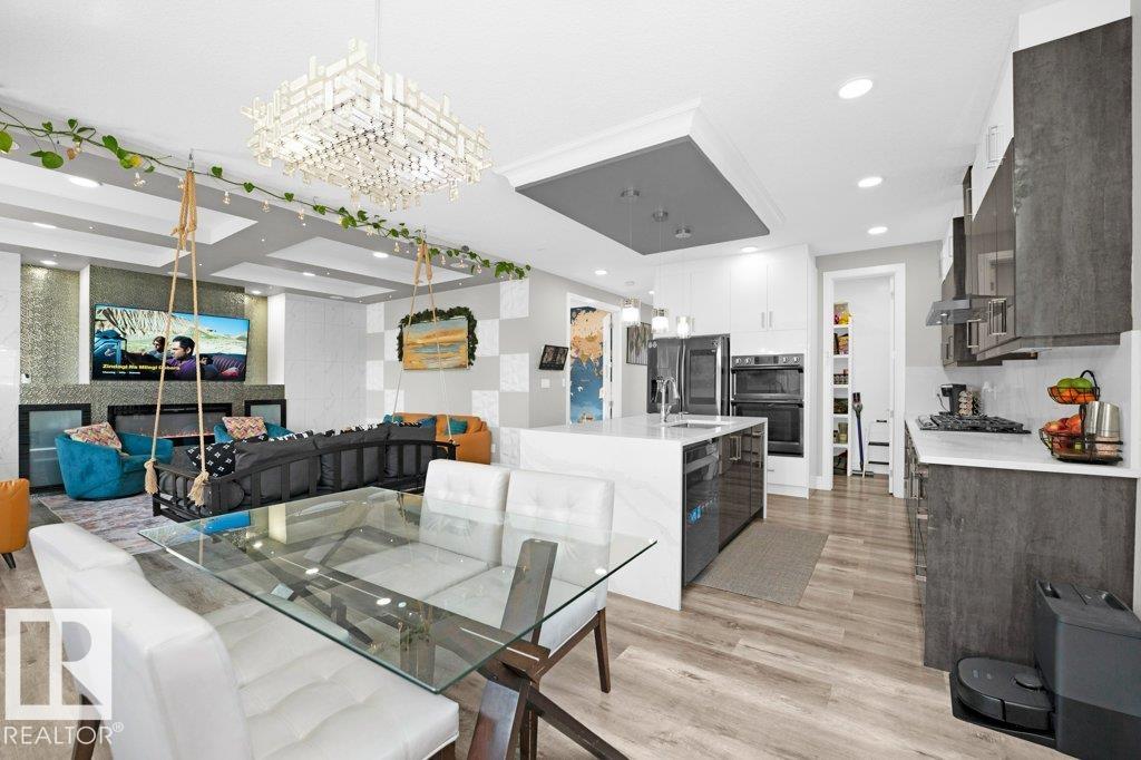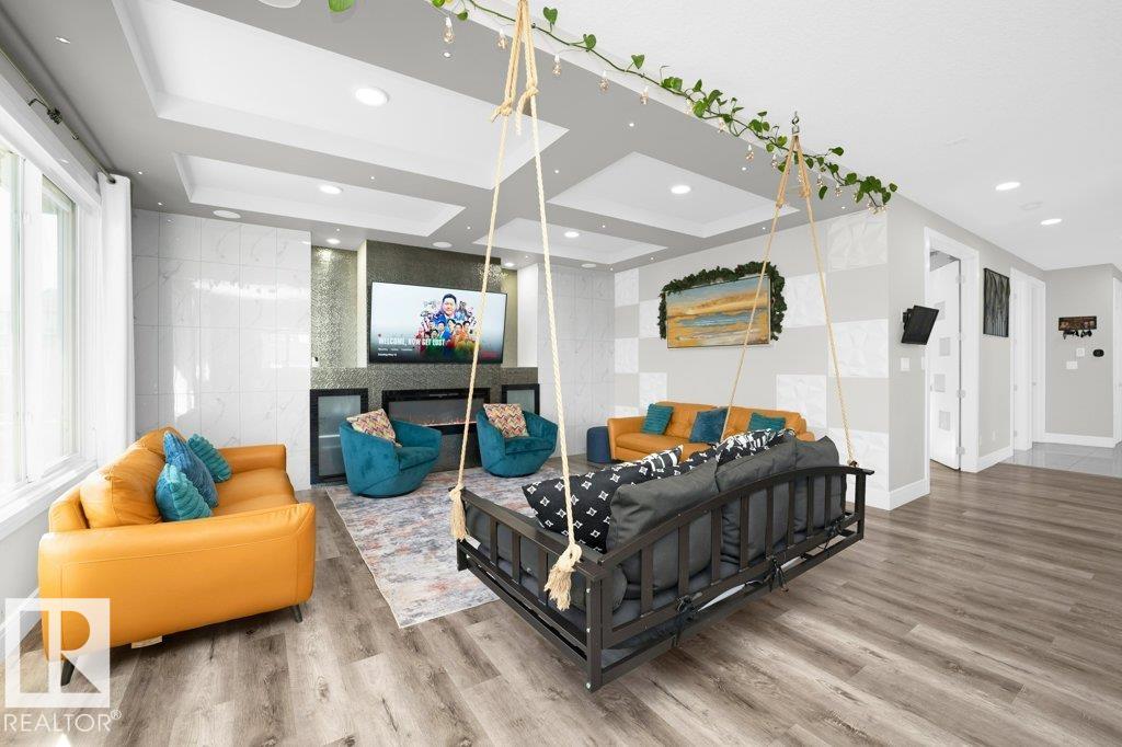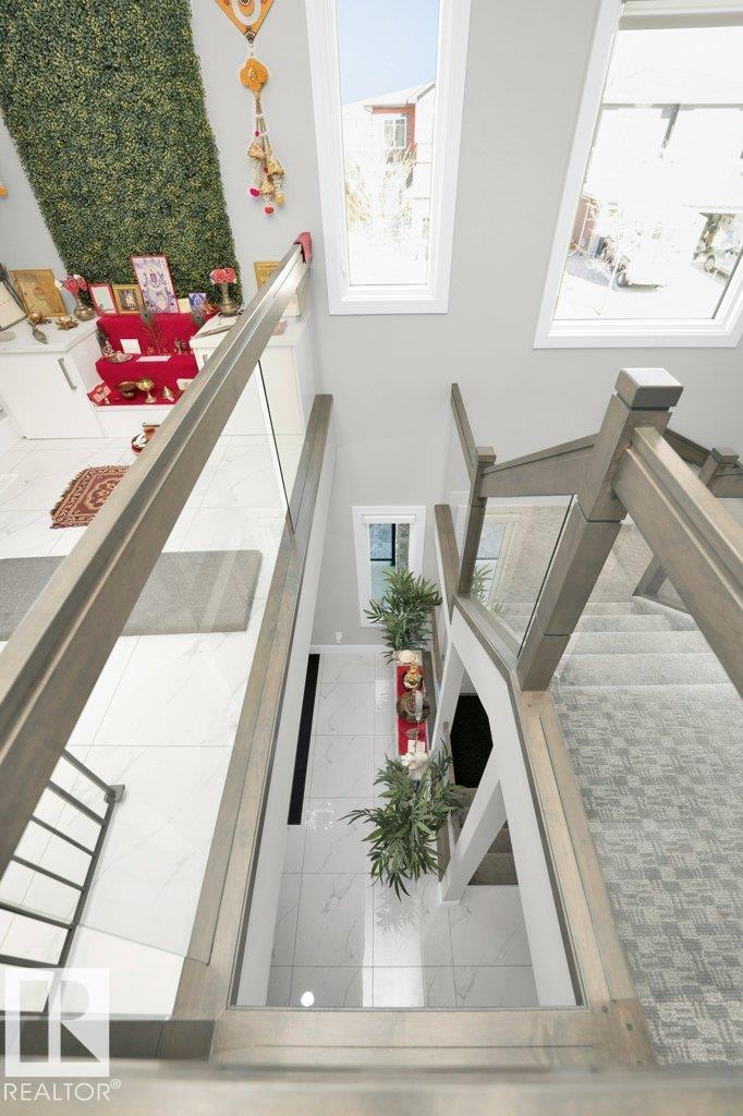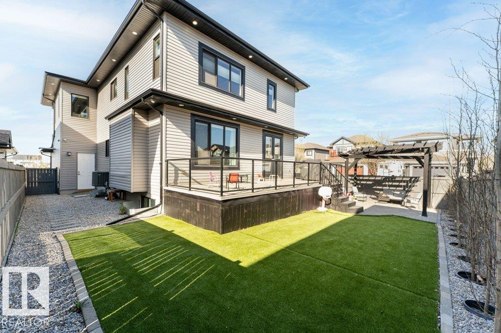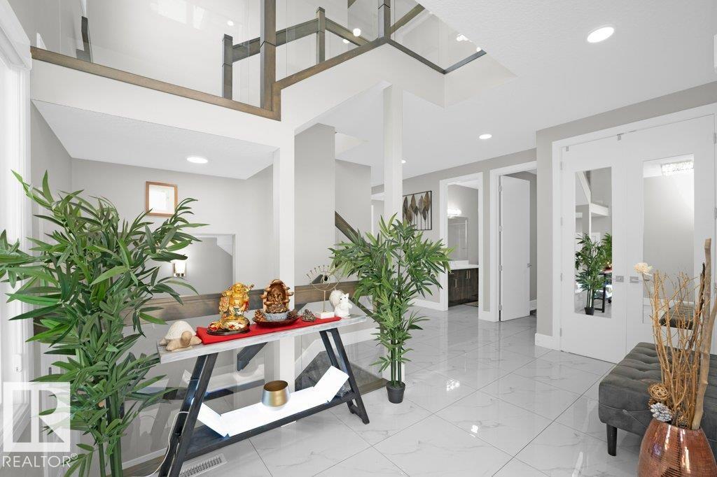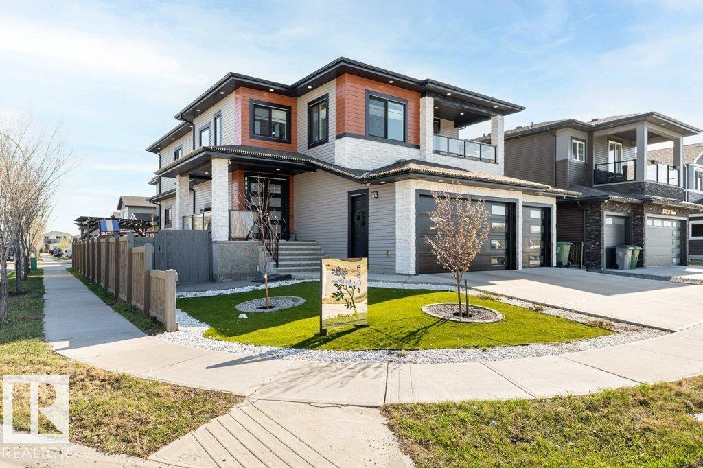 LUXURY, COMFORT, VASTU Harmony come together beautifully on a prized corner lot in Beaumont. Step through the grand 8-ft DOUBLE DOORS into bright, airy spaces framed by 9-ft ceilings & an inviting open layout. The main floor offers a cozy office, a welcoming living room with FIREPLACE & swing, & a CHEF's kitchen designed for gathering?complete with GAS cooktop, waterfall granite island, premium cabinetry, & walk-in pantry. Upstairs, unwind with PEACEFUL LAKEVIEW from the BALCONY & retreat to a serene primary suite featuring a spa-inspired 5-pc ensuite, jetted tub, shower panel, & meditation nook. A dedicated Laundry room adds everyday ease. The HEATED TRIPLE Garage includes a 220V EV charger, hot/cold sink & floor drain. The FINISHED BASEMENT extends your living space with a Party room, Wet Bar, Bedroom, Bath. Outdoors, enjoy LOW-Maintenance living with Artificial Grass, concrete pad, Built-in Deck with Gasline & custom GAZEBO. Enhanced with A/C, Water Softener, ceiling speakers & CCTV. Welcome to HOME !