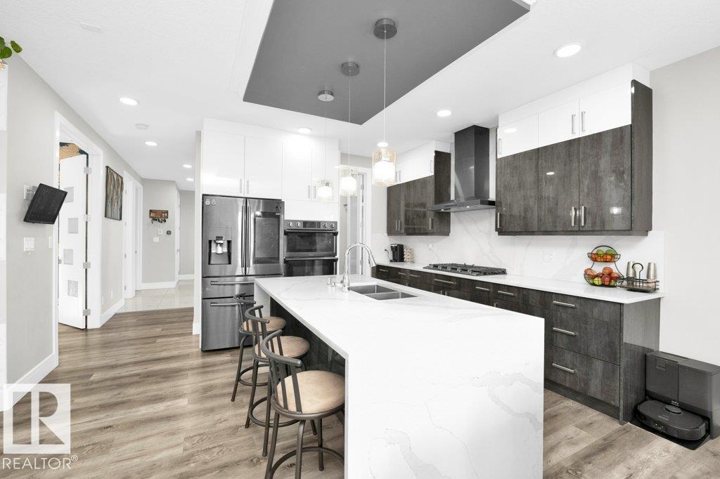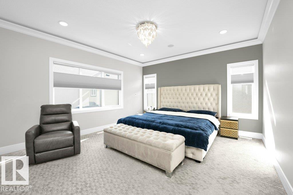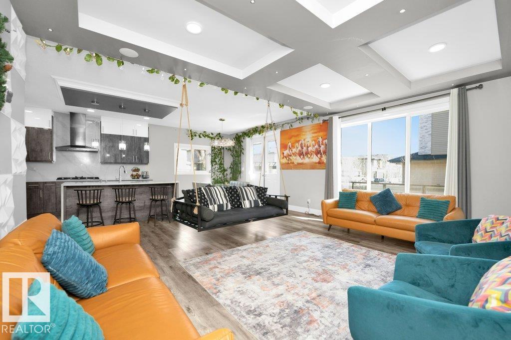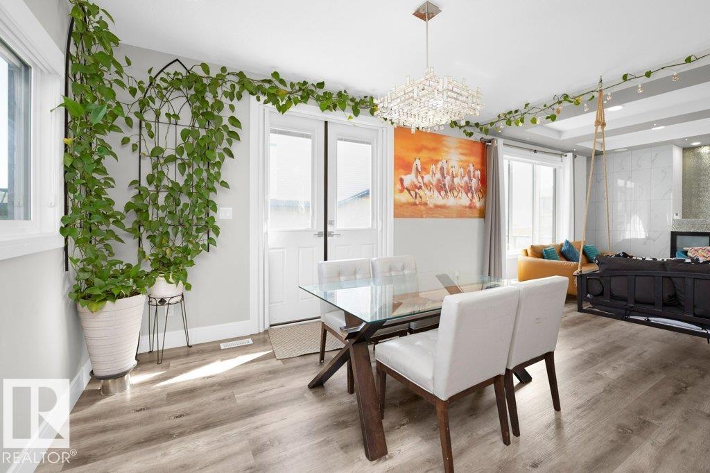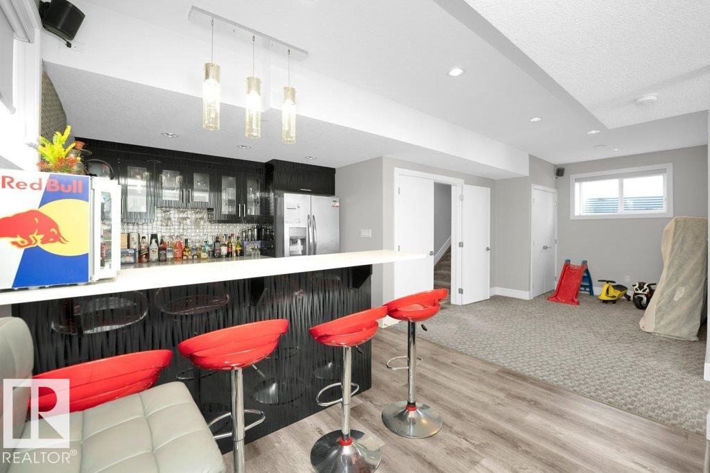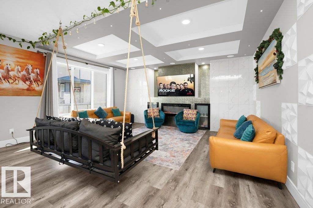 LUXURY, COMFORT, VASTU Harmony come together beautifully on a prized corner lot in Beaumont. Step through the grand 8-ft DOUBLE DOORS into bright, airy spaces framed by 9-ft ceilings & an inviting open layout. The main floor offers a cozy office, a welcoming living room with FIREPLACE & swing, & a CHEF's kitchen designed for gathering?complete with GAS cooktop, waterfall granite island, premium cabinetry, & walk-in pantry. Upstairs, unwind with PEACEFUL LAKEVIEW from the BALCONY & retreat to a serene primary suite featuring a spa-inspired 5-pc ensuite, jetted tub, shower panel, & meditation nook. A dedicated Laundry room adds everyday ease. The HEATED TRIPLE Garage includes a 220V EV charger, hot/cold sink & floor drain. The FINISHED BASEMENT extends your living space with a Party room, Wet Bar, Bedroom, Bath. Outdoors, enjoy LOW-Maintenance living with Artificial Grass, concrete pad, Built-in Deck with Gasline & custom GAZEBO. Enhanced with A/C, Water Softener, ceiling speakers & CCTV. Welcome to HOME !